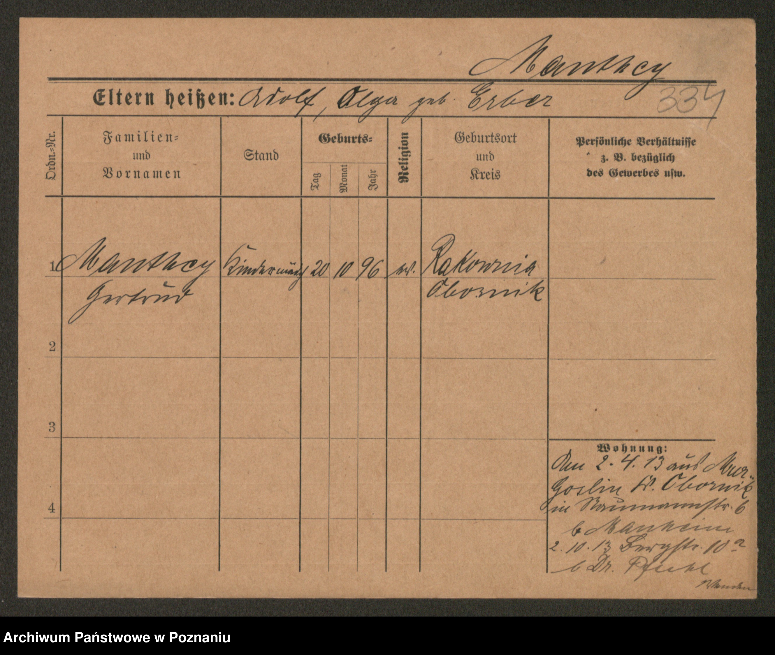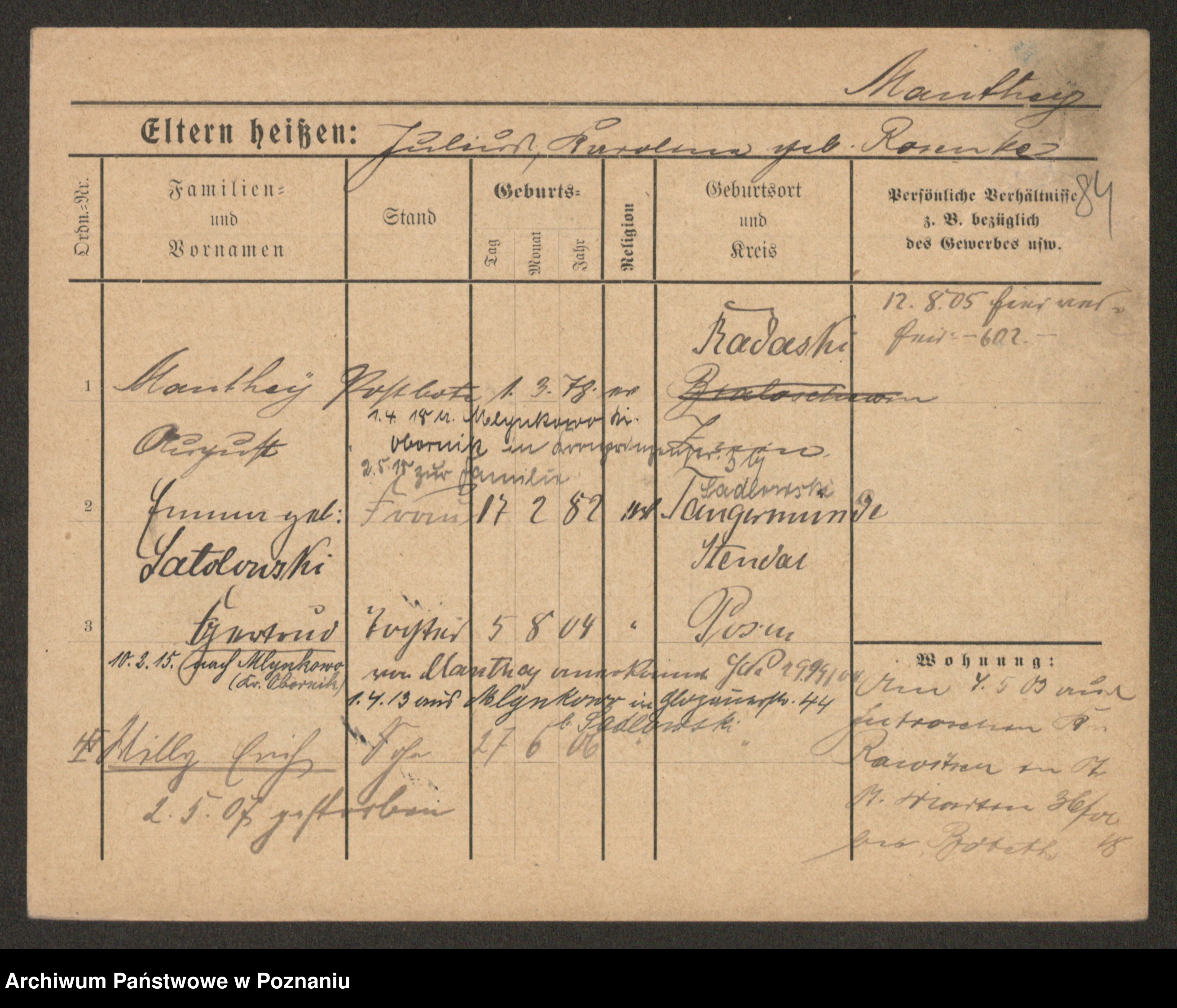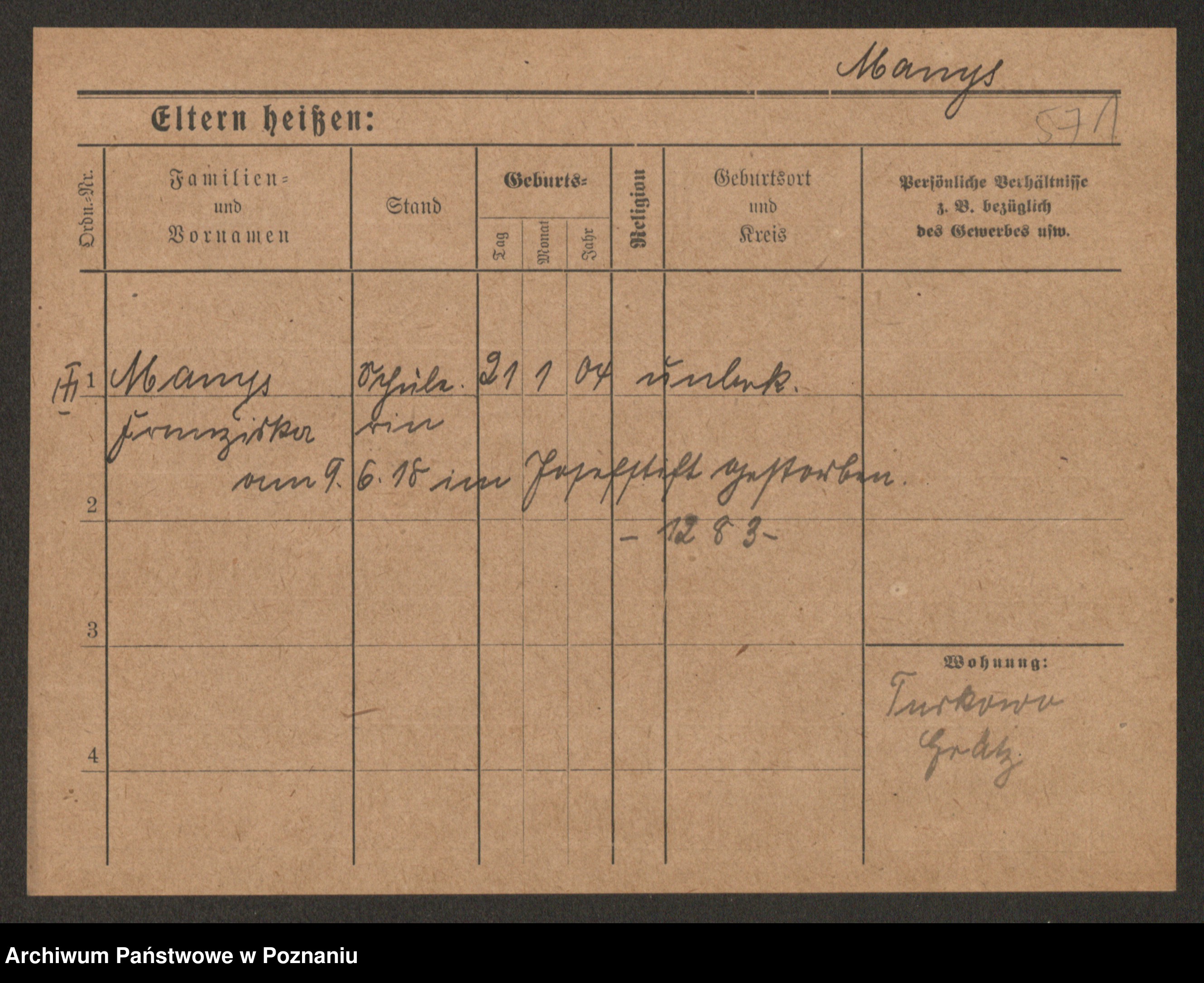 Mański zd. Gniatczyk, Katharina