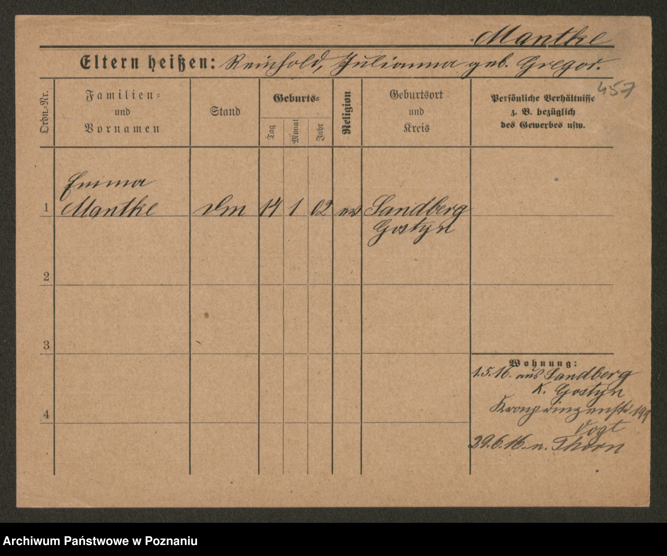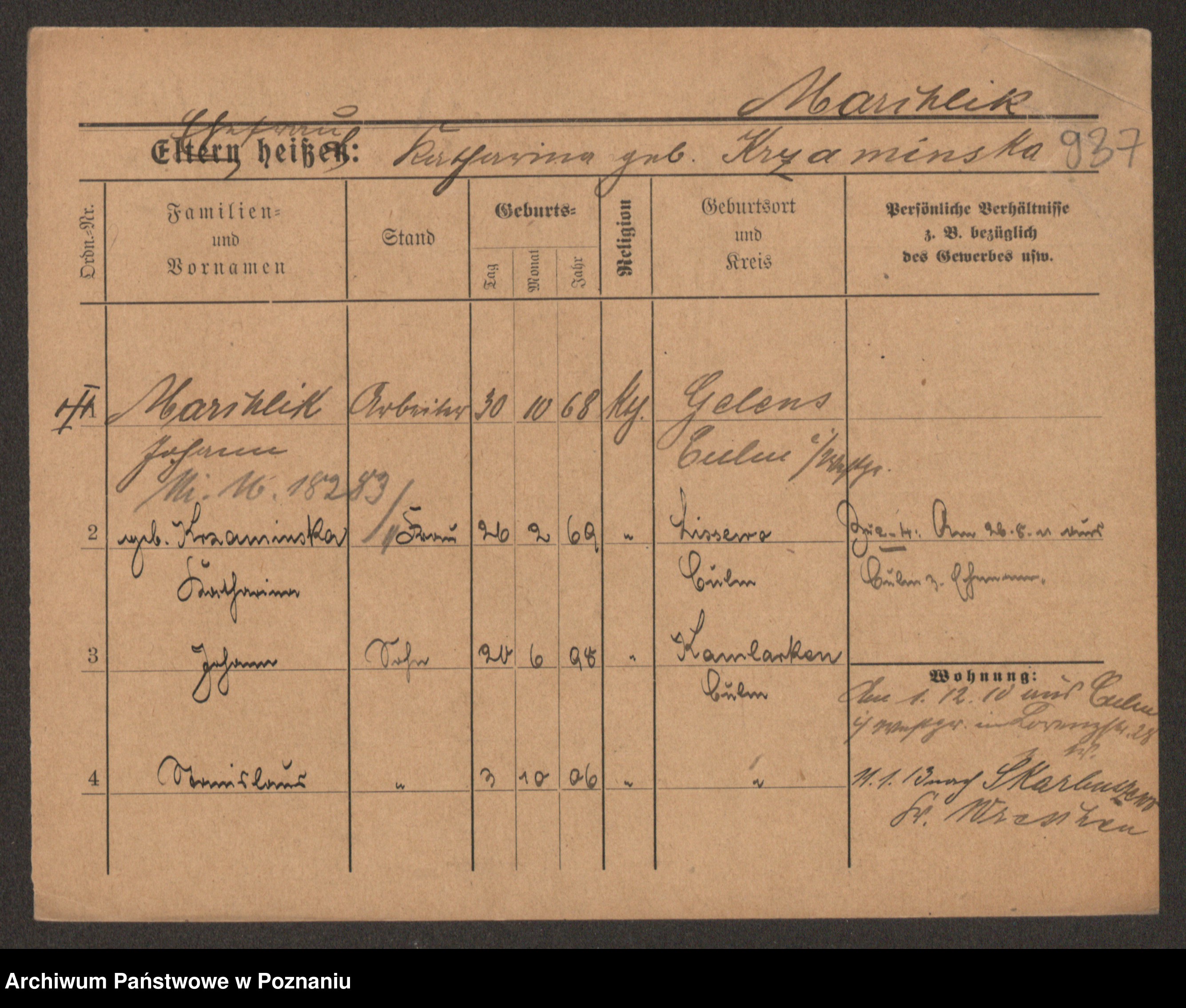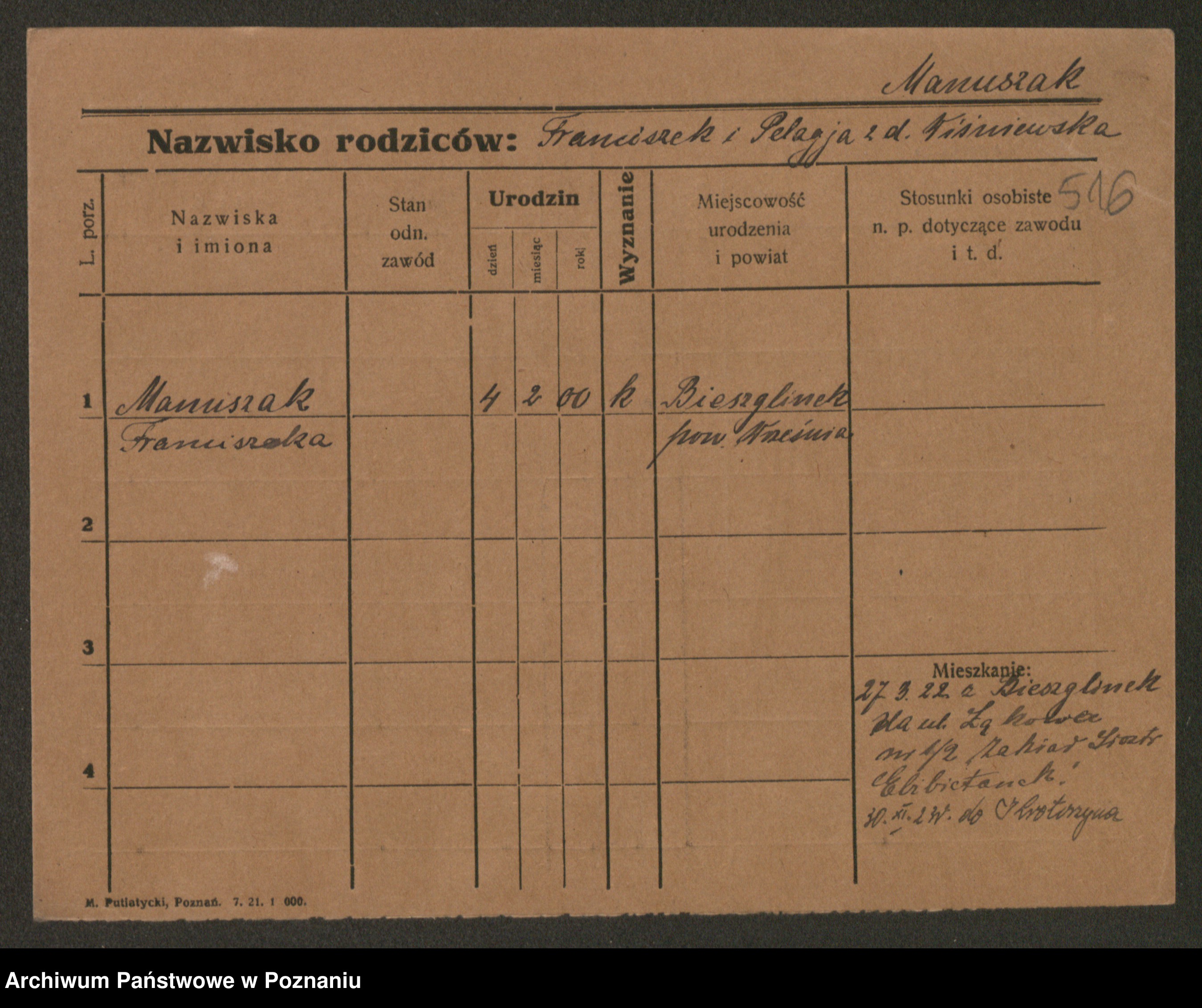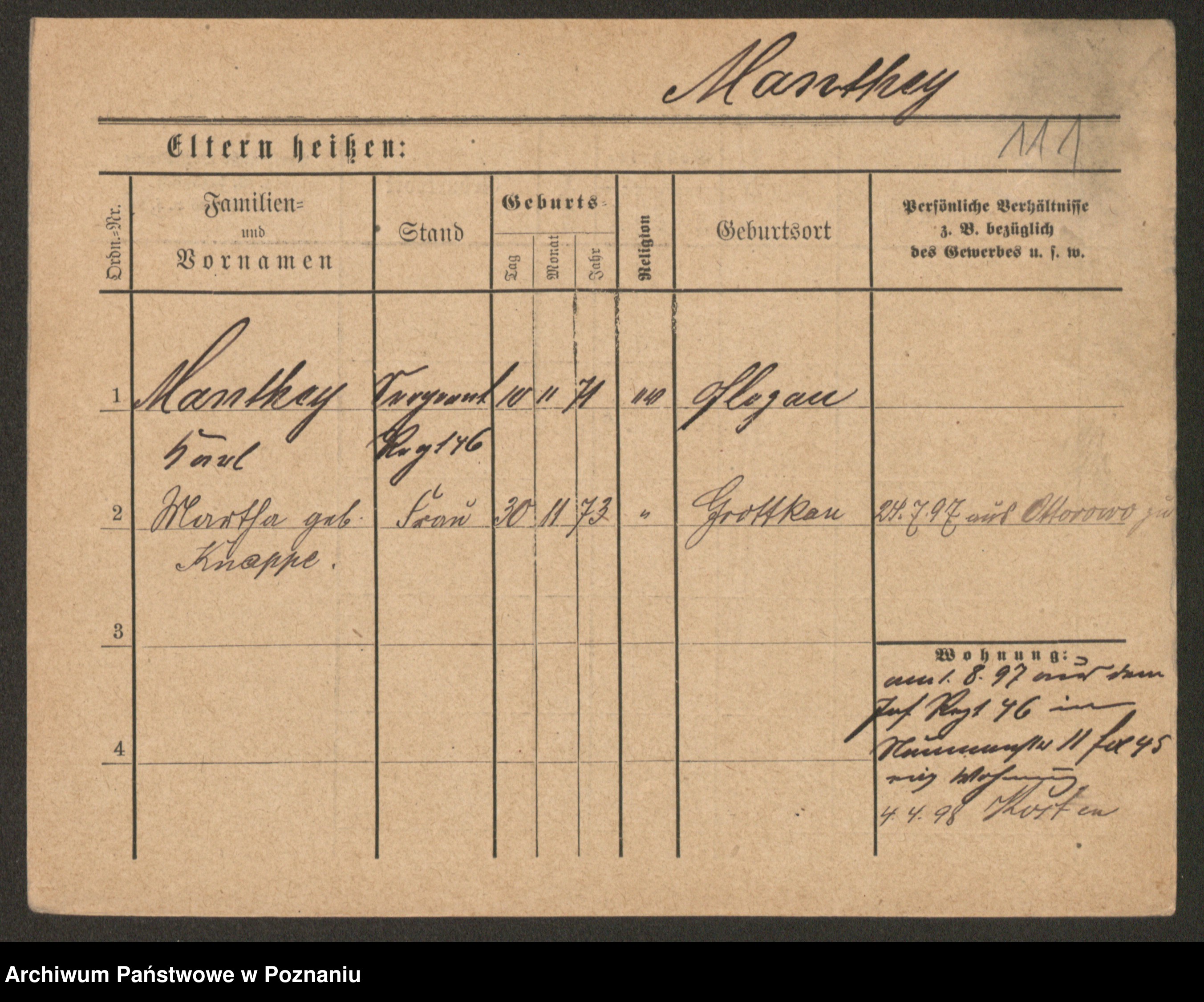 Mański zd. Gniatczyk, Katharina