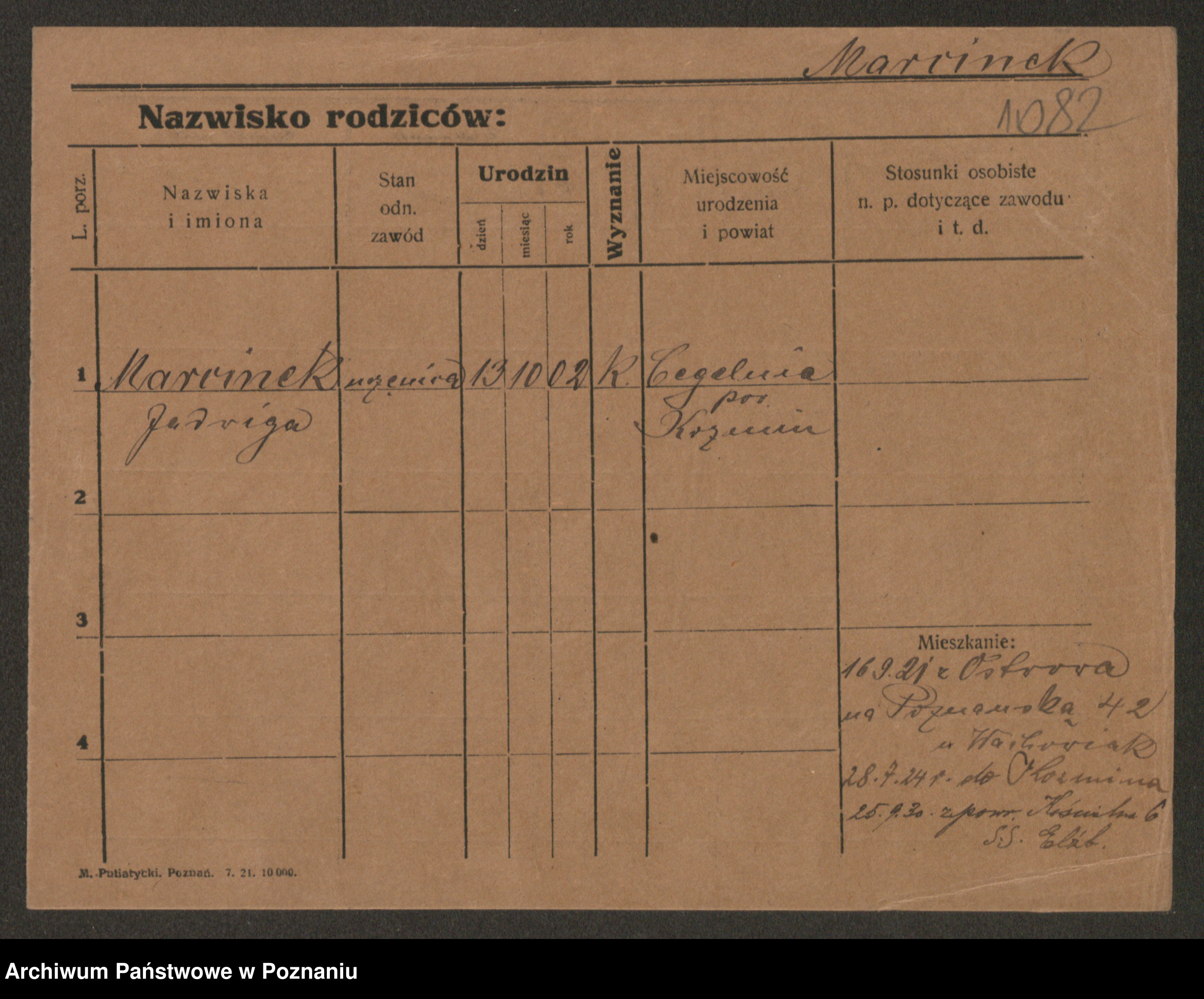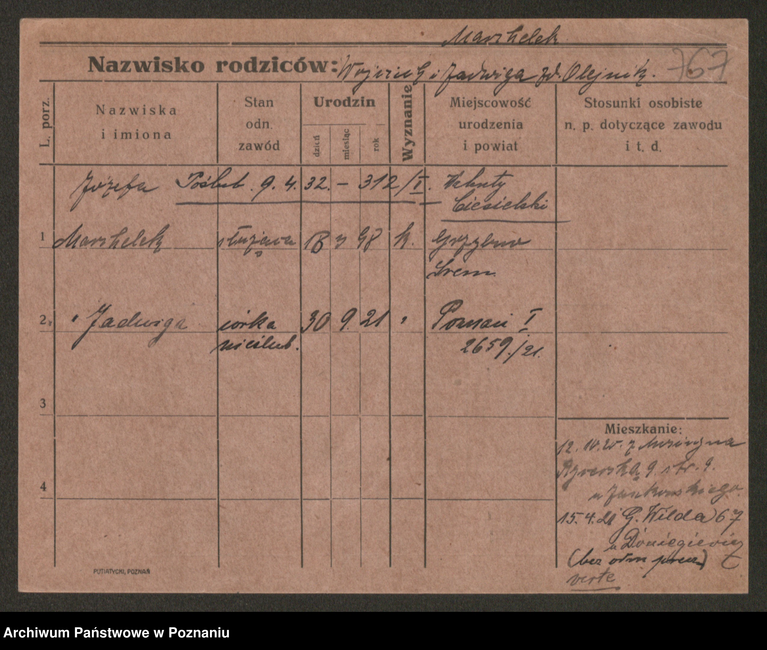 Marcinek, Jadwiga Zofja