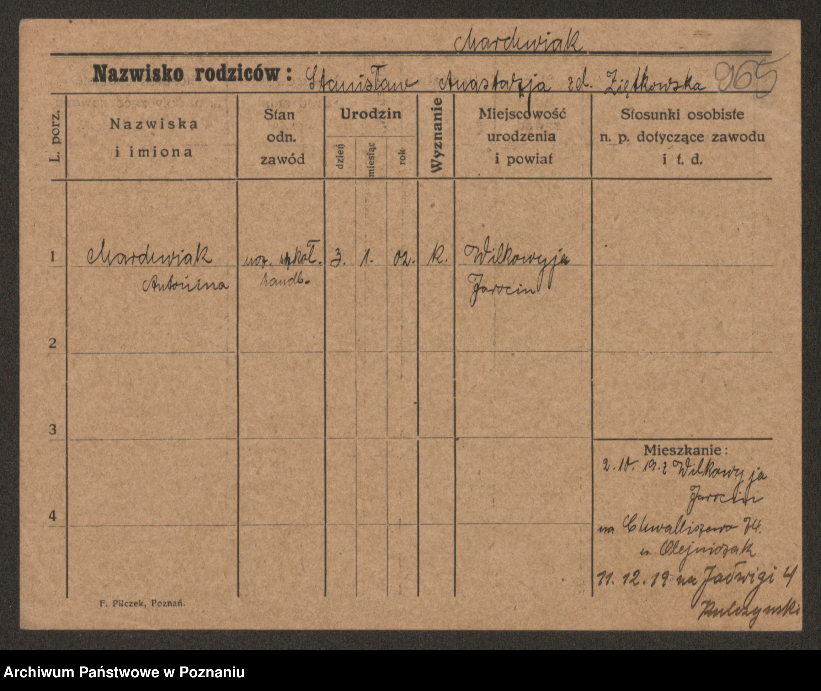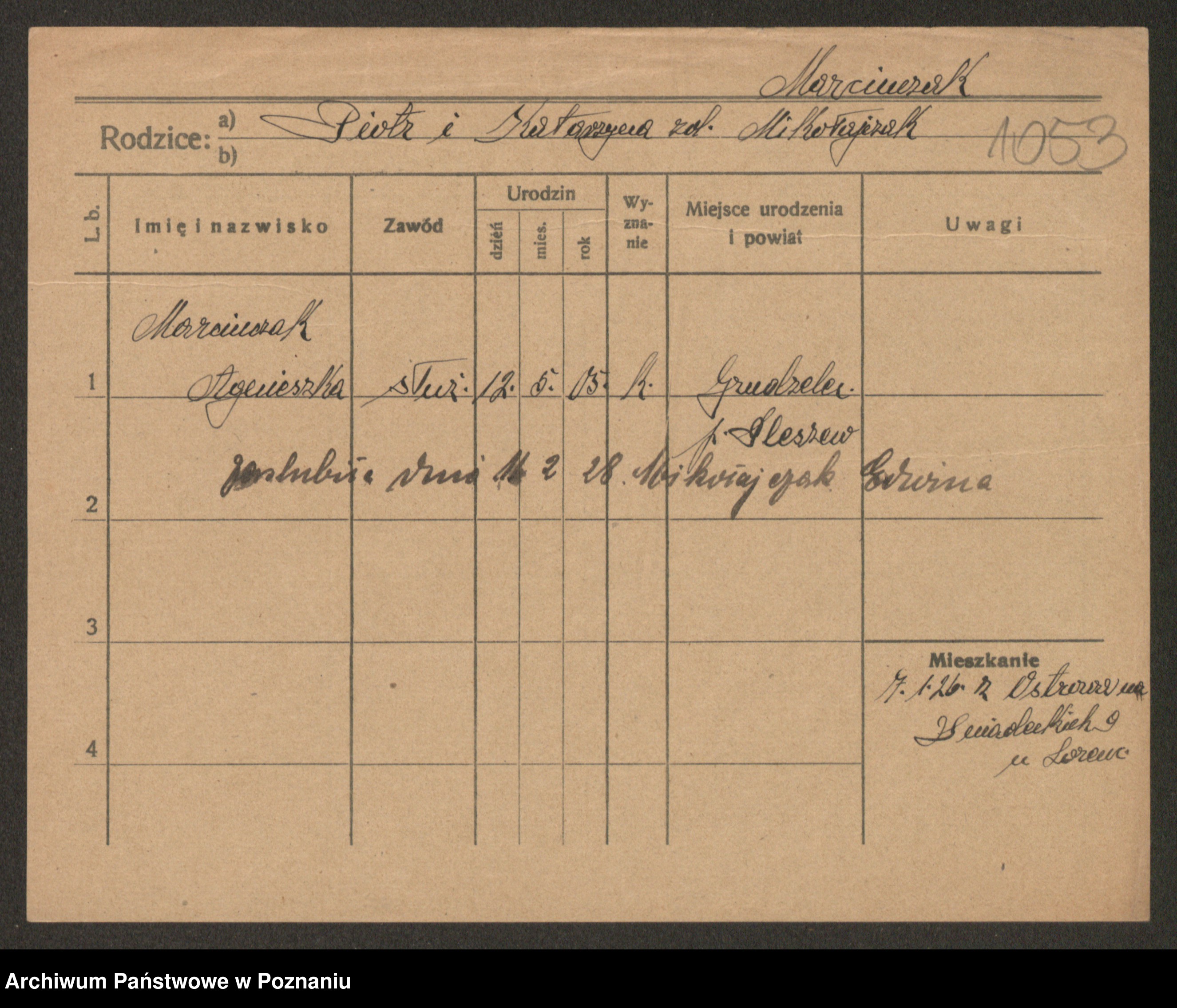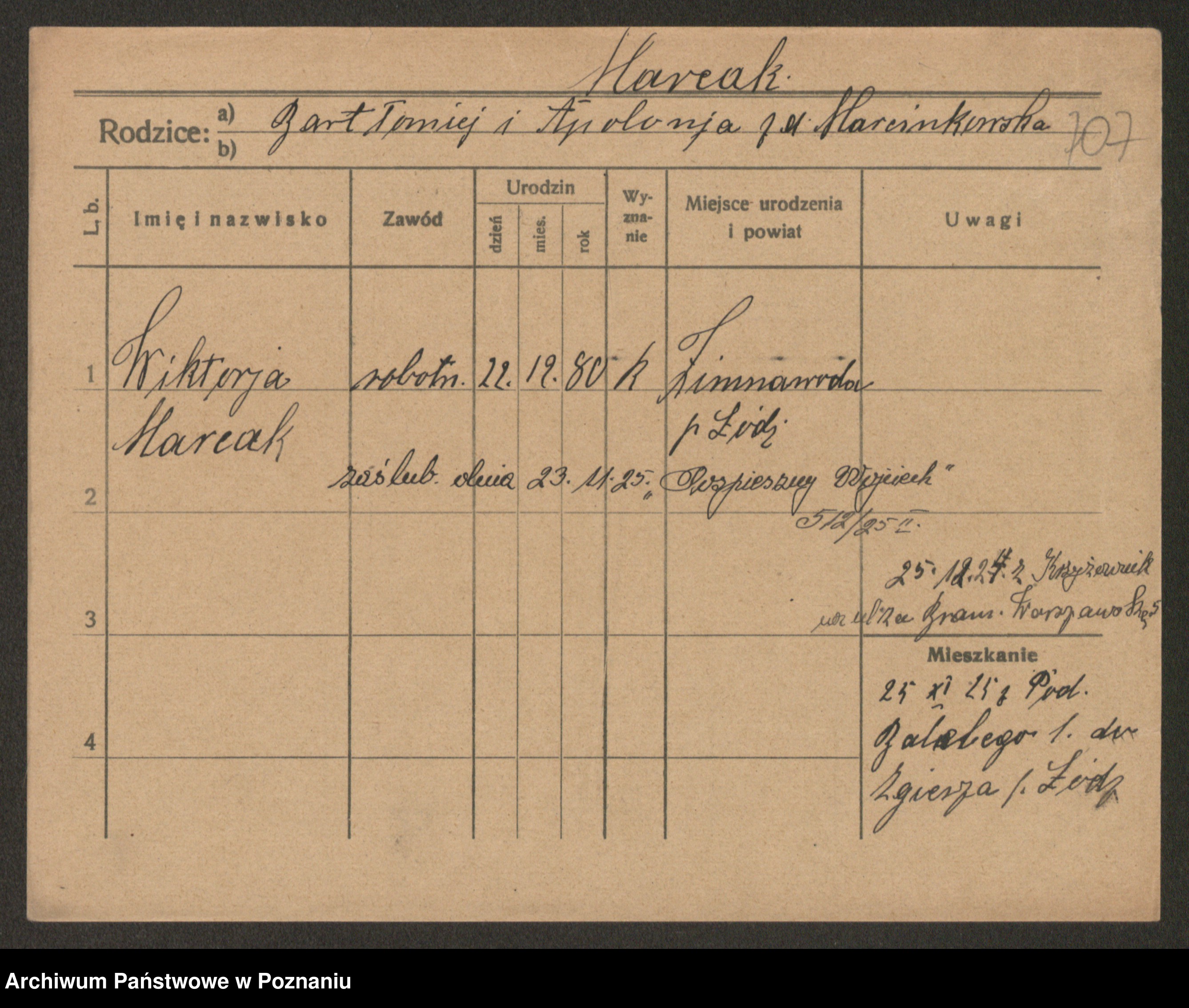 Marcinczak zd. Radlinska, Marja