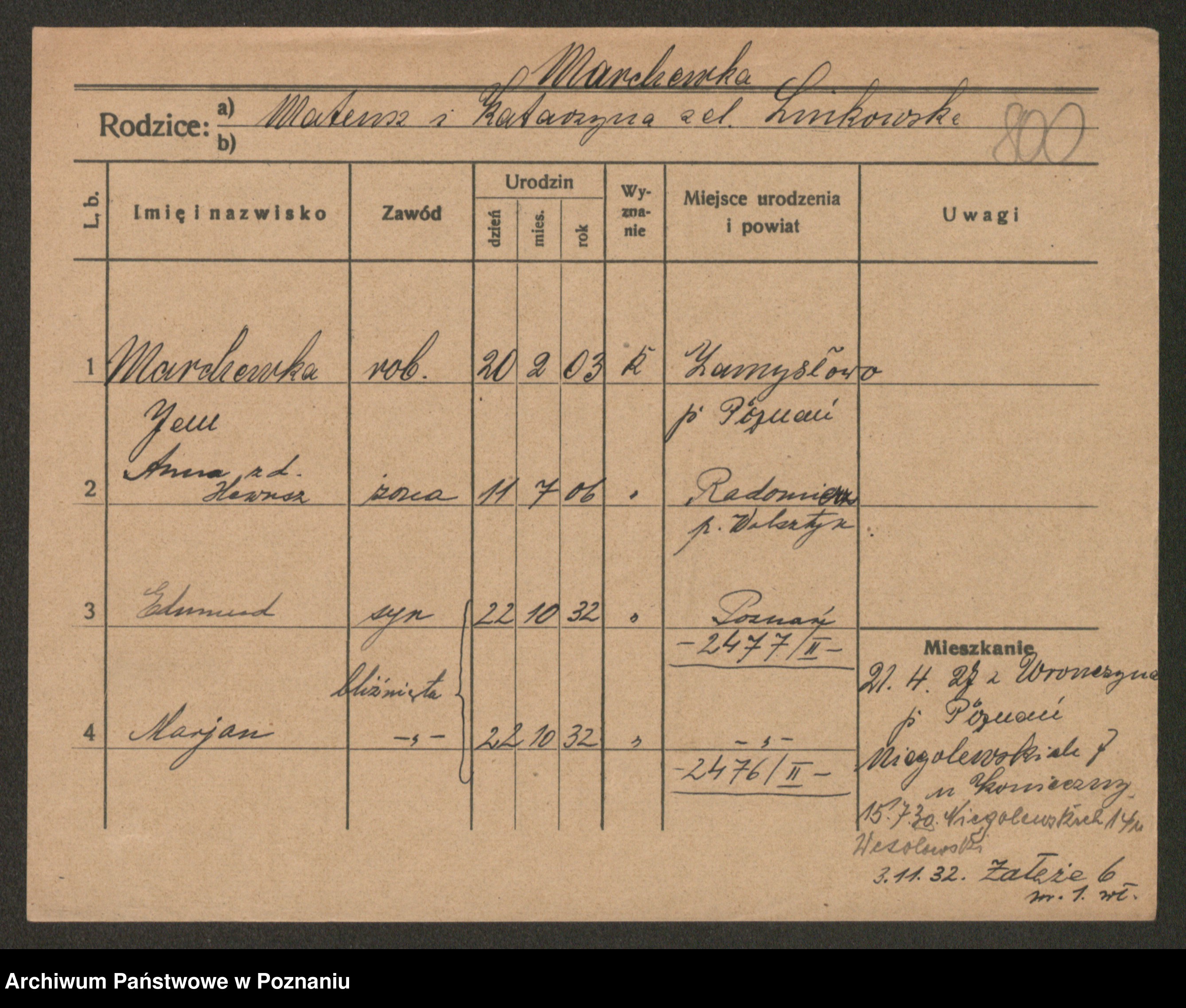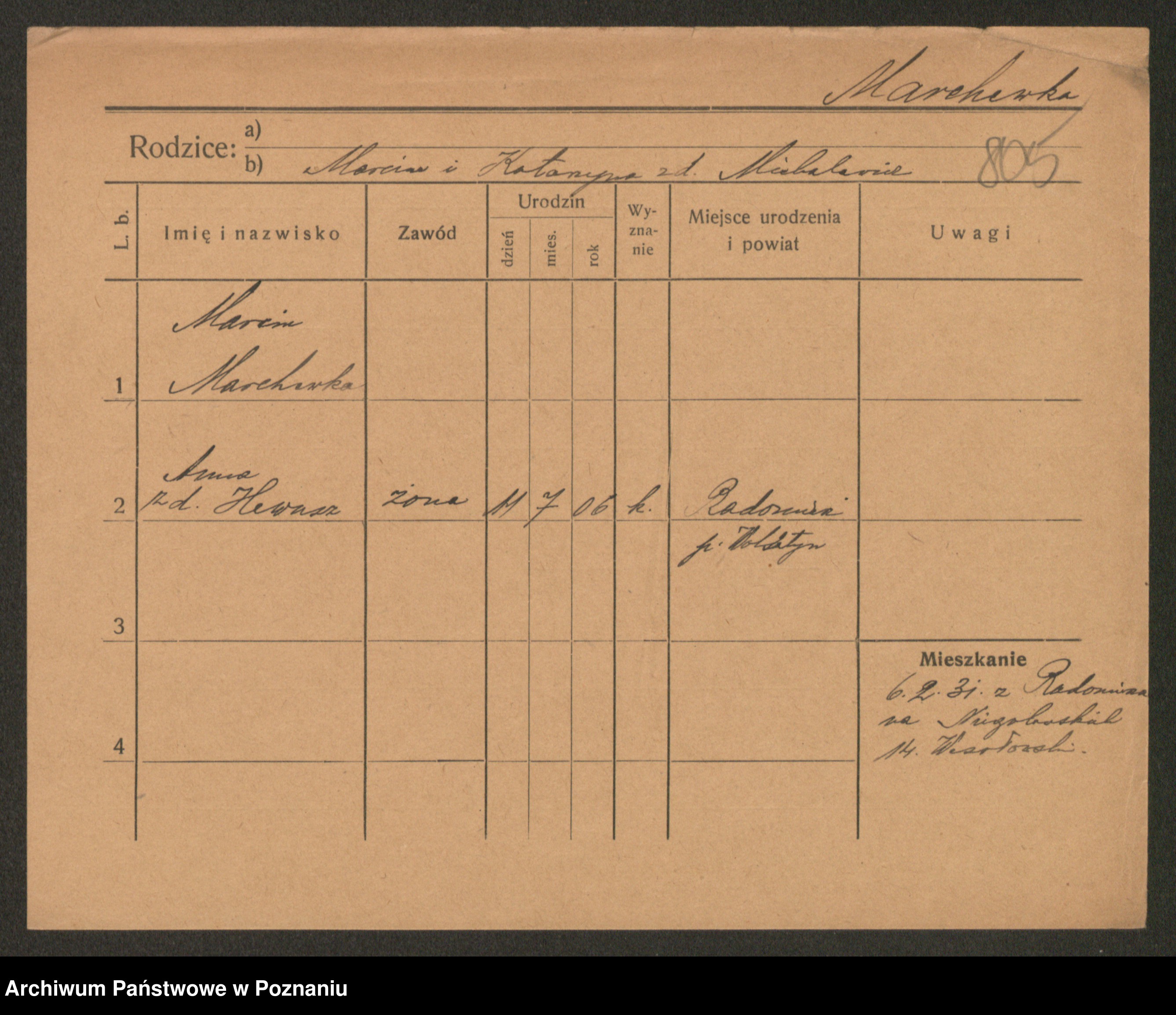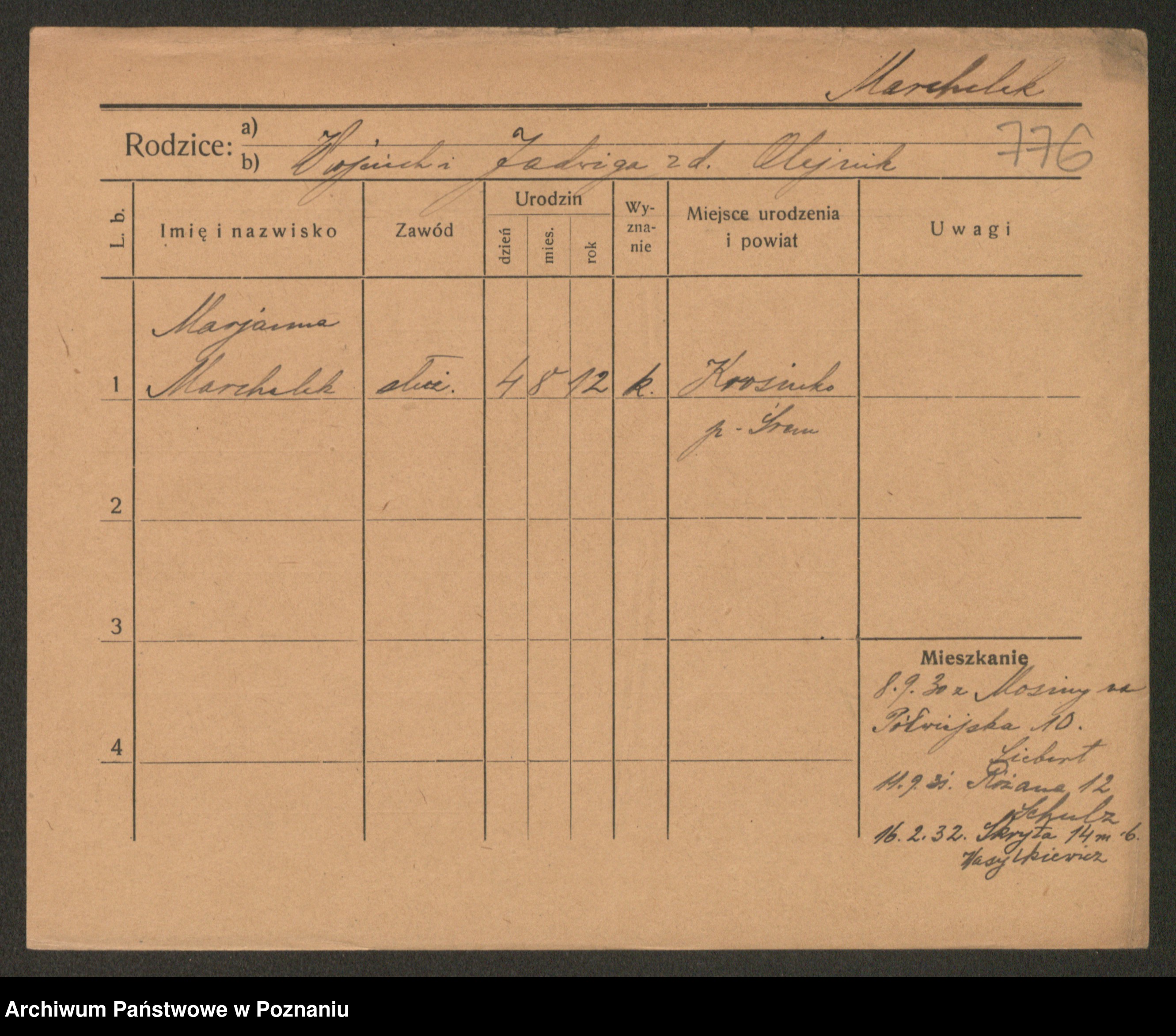 Marcinczak zd. Radlinska, Marja