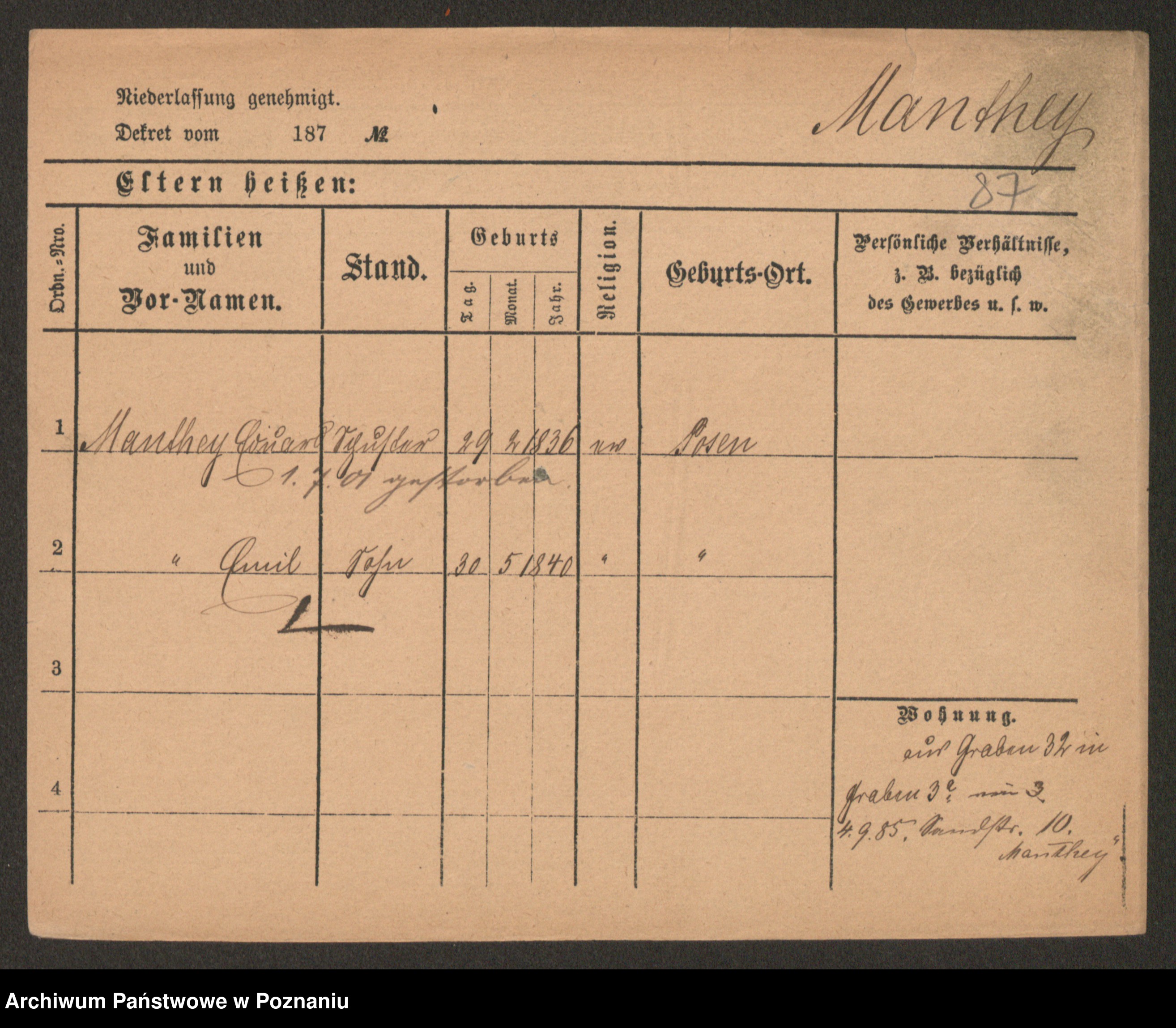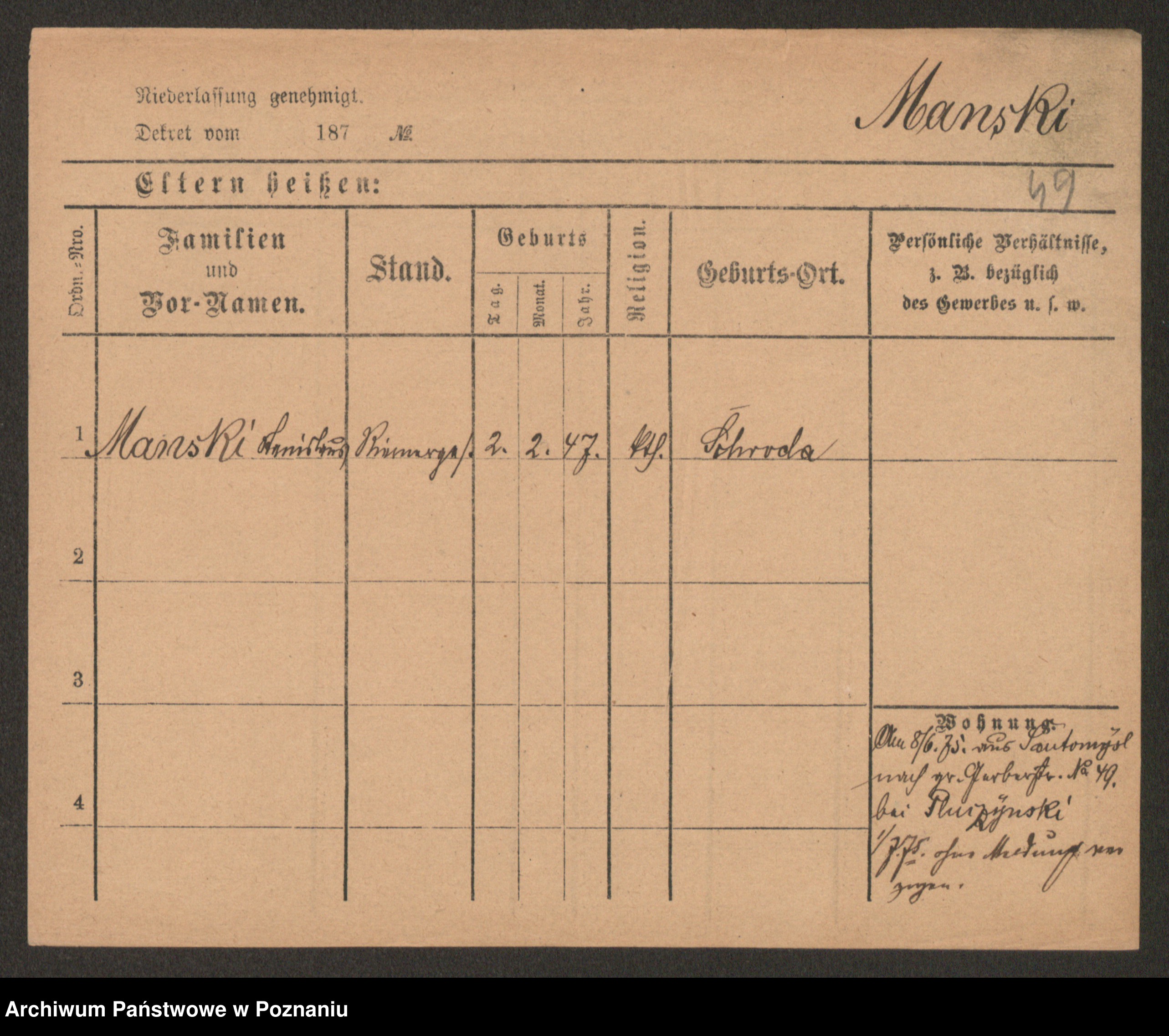 Manske, Adref