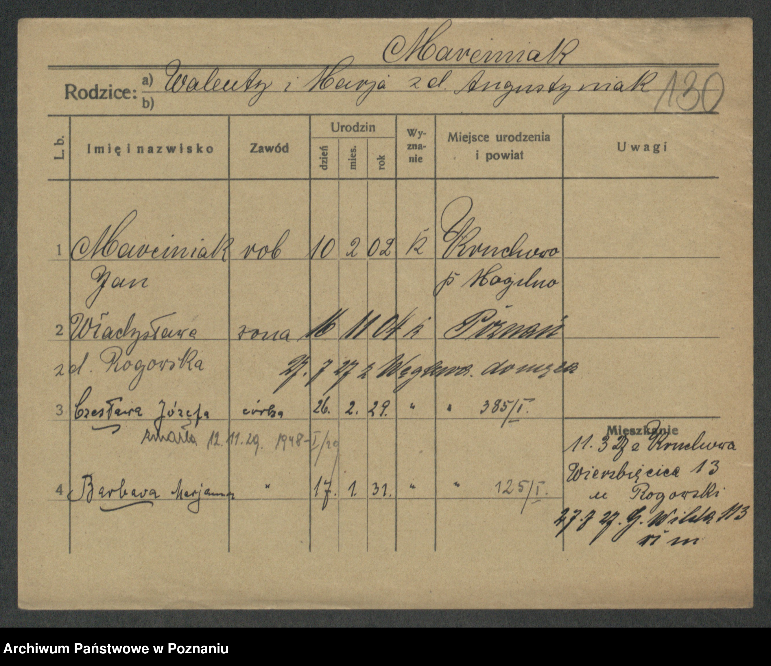 Marciniak zd. Maychrzak Iv. Antkowiak, Josepha