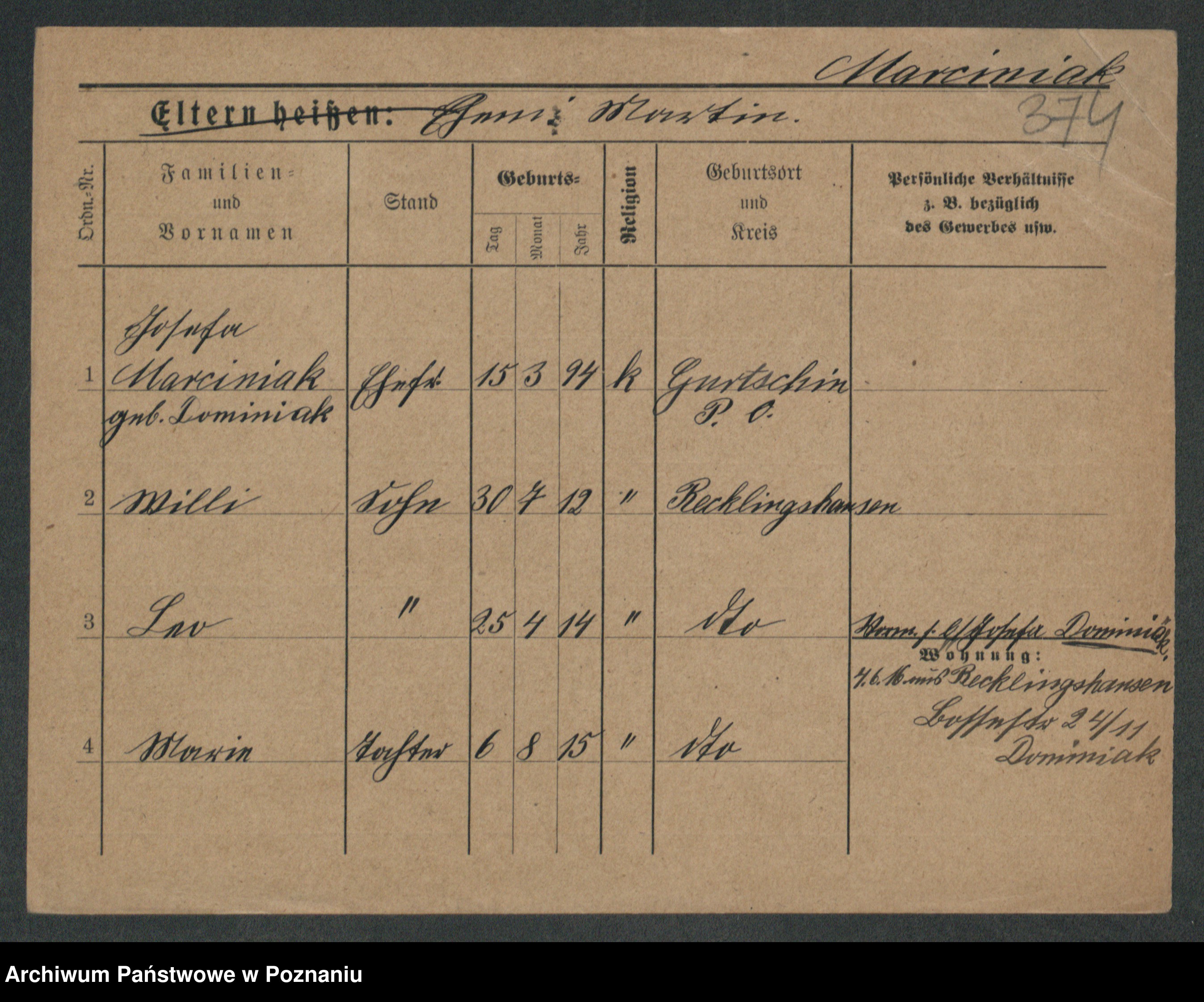 Marciniak zd. Aumüller Iv.Koperska IIv.Kuczma, Kunegunda