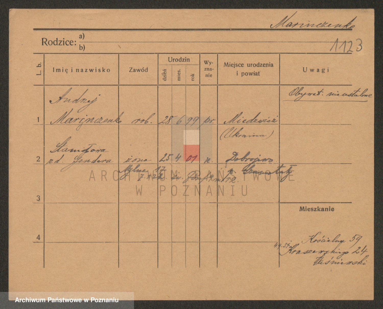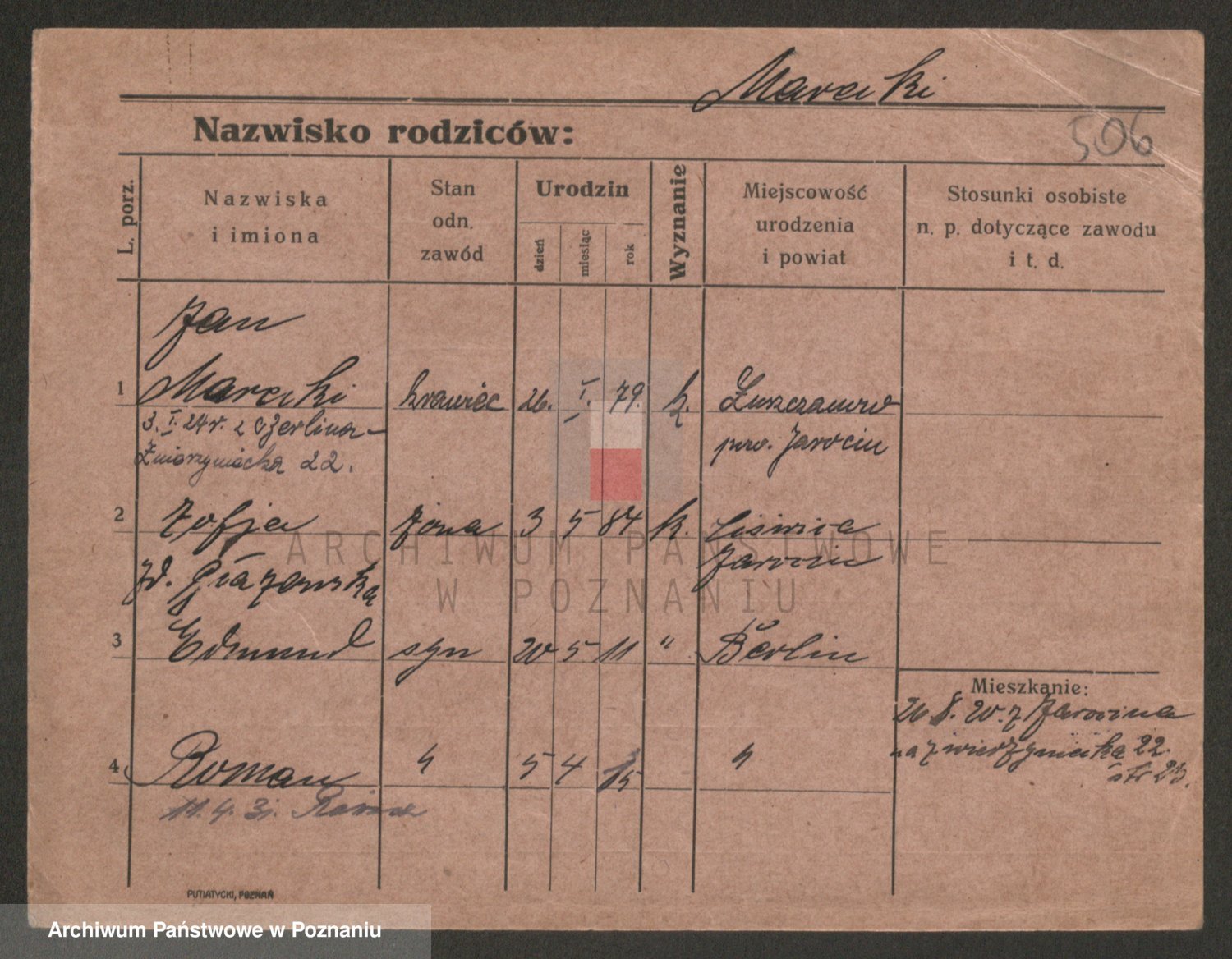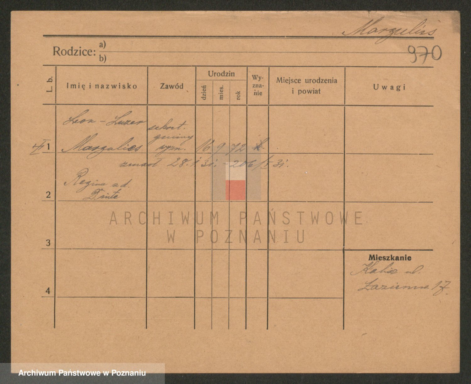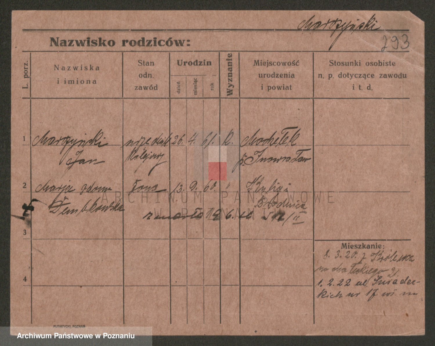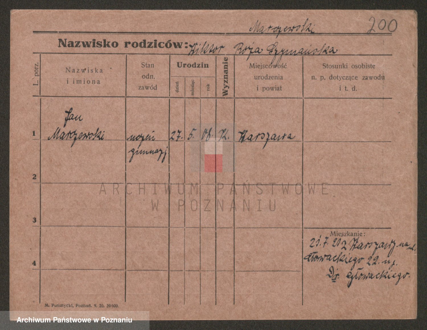 Podgląd karty osobowej dostępny jest po kliknięciu na nazwisko lub ikonkę karty. Można dokonywać powiększenia (ikony na górze) lub przechodzić między kolejnymi skanami (strzałki po bokach).