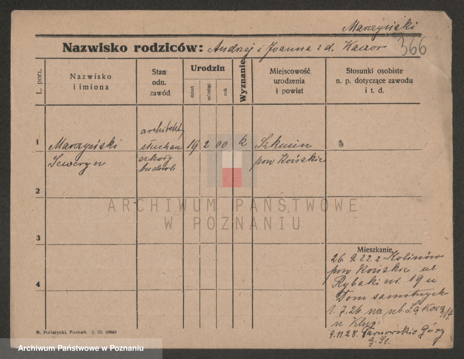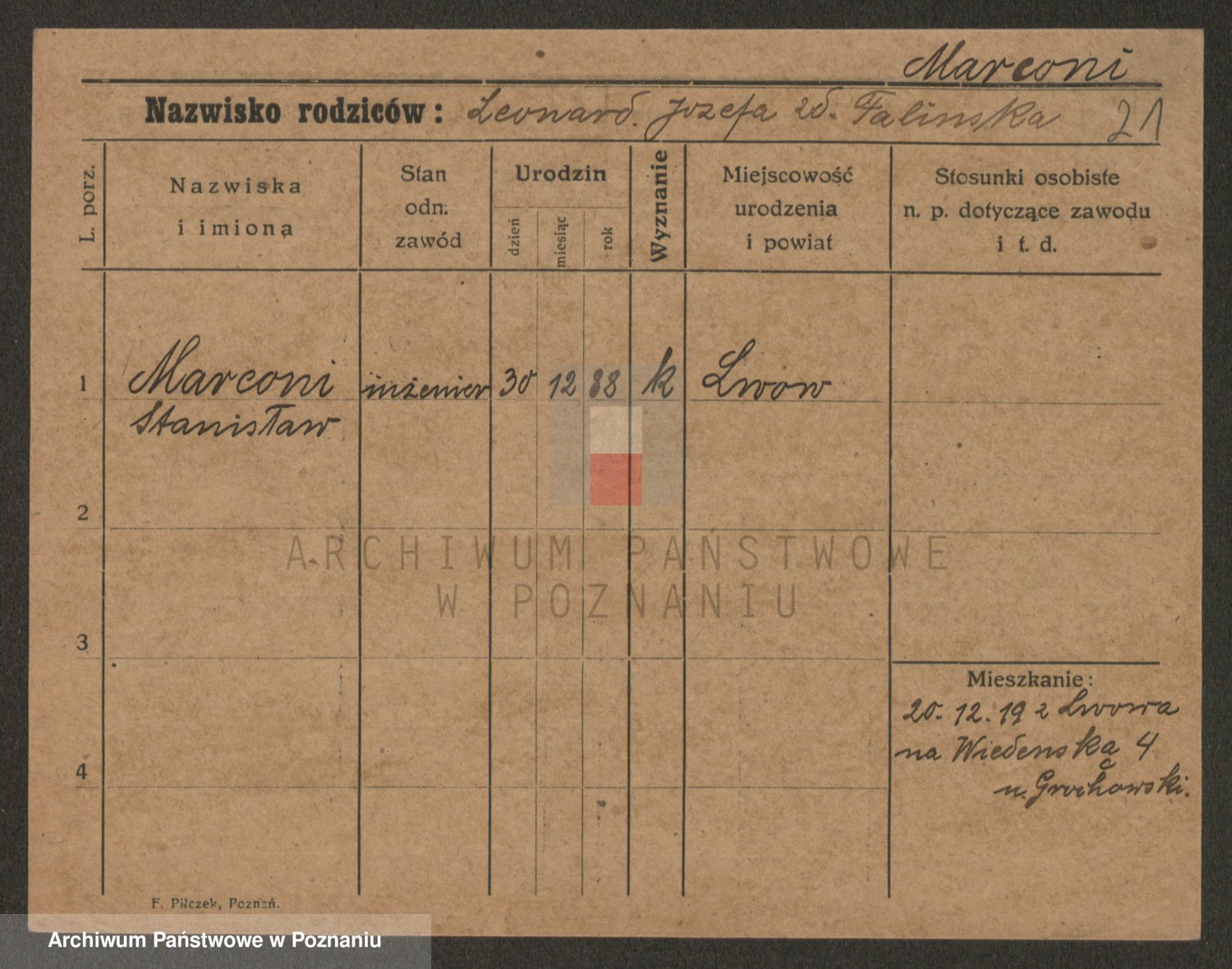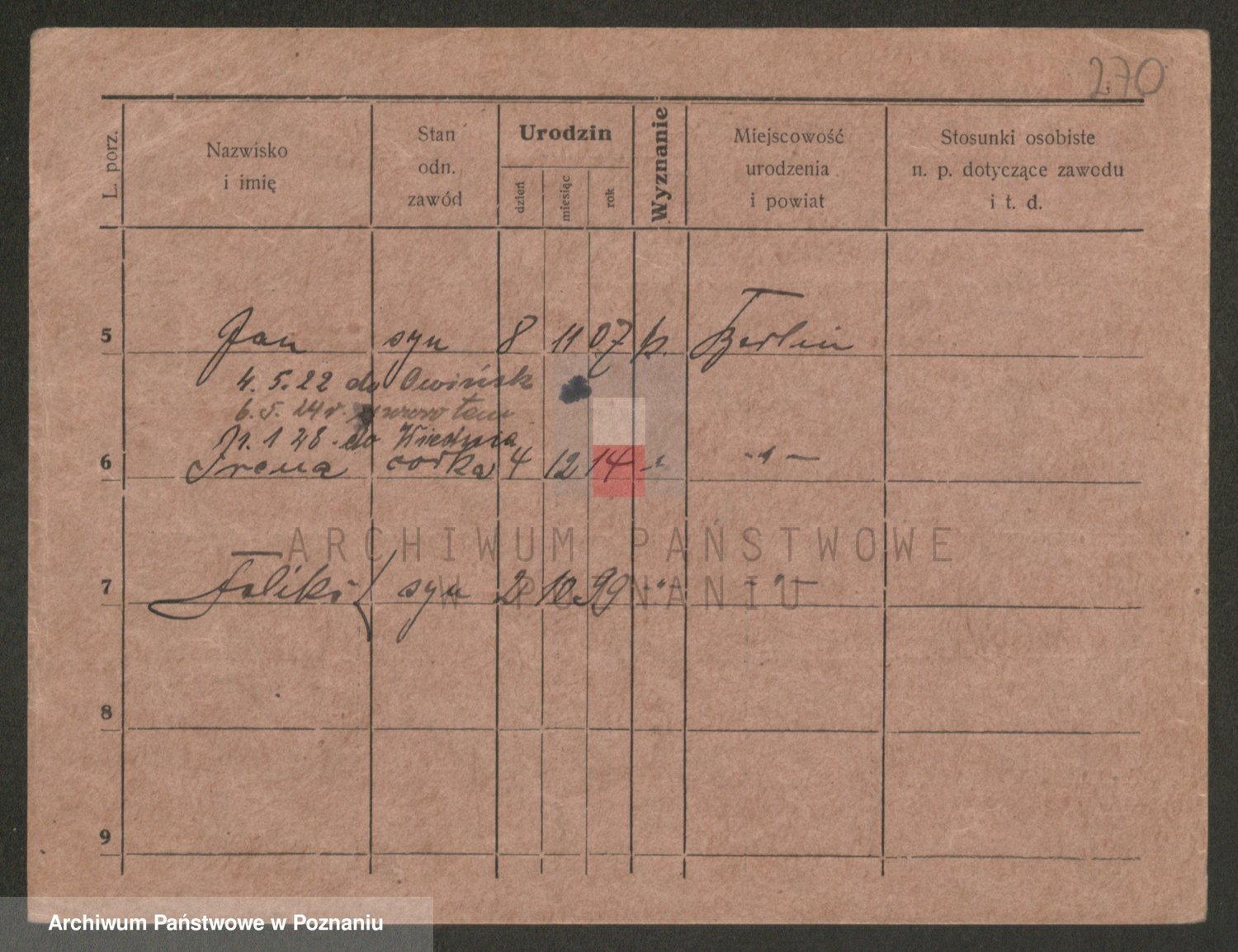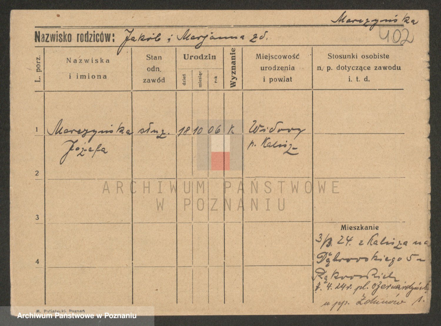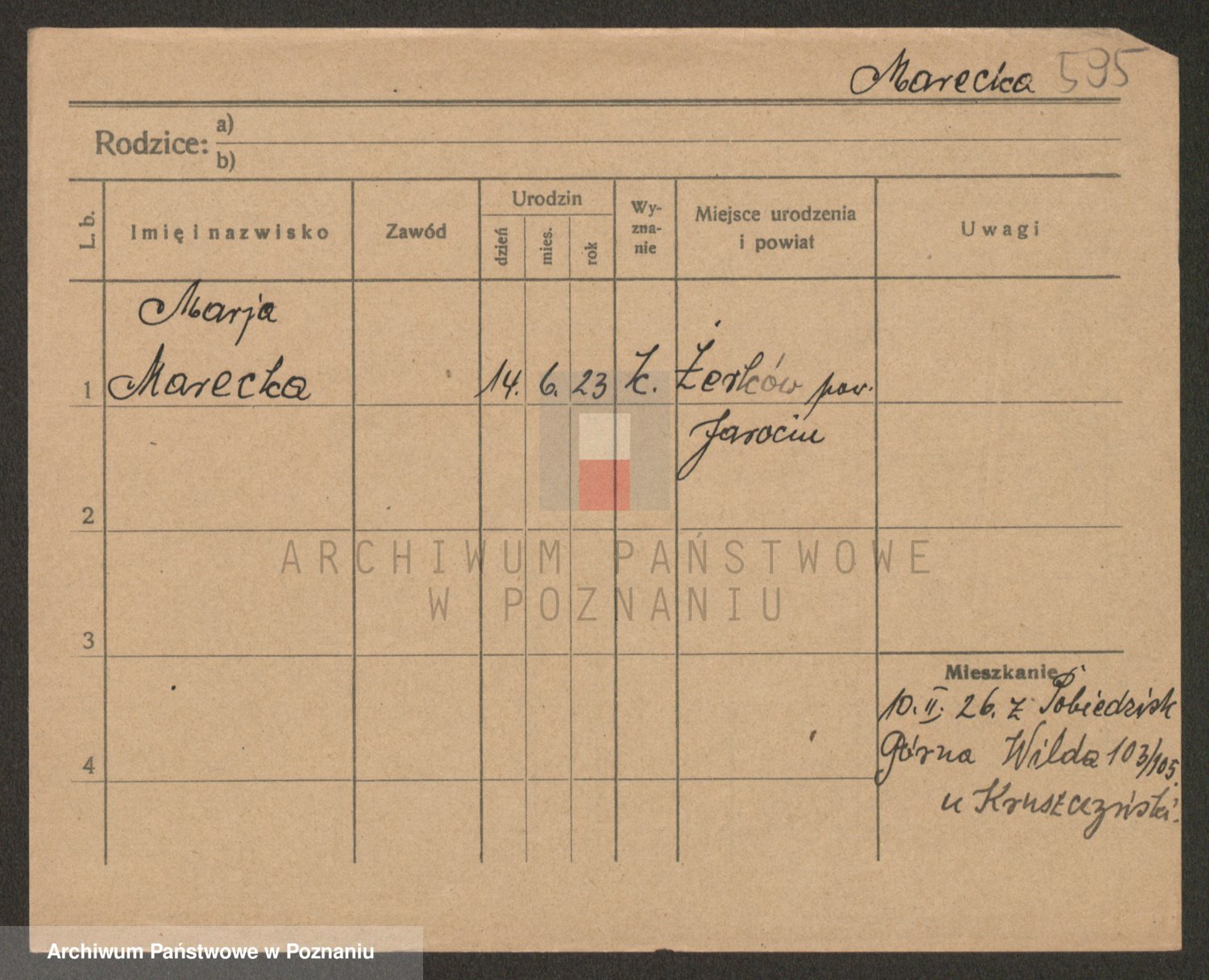 Podgląd karty osobowej dostępny jest po kliknięciu na nazwisko lub ikonkę karty. Można dokonywać powiększenia (ikony na górze) lub przechodzić między kolejnymi skanami (strzałki po bokach).