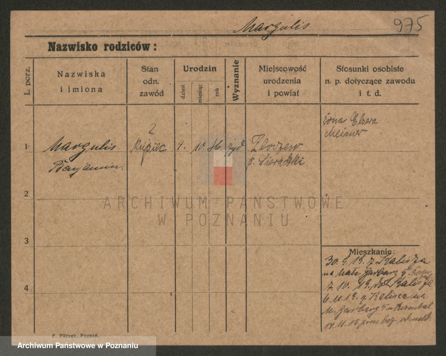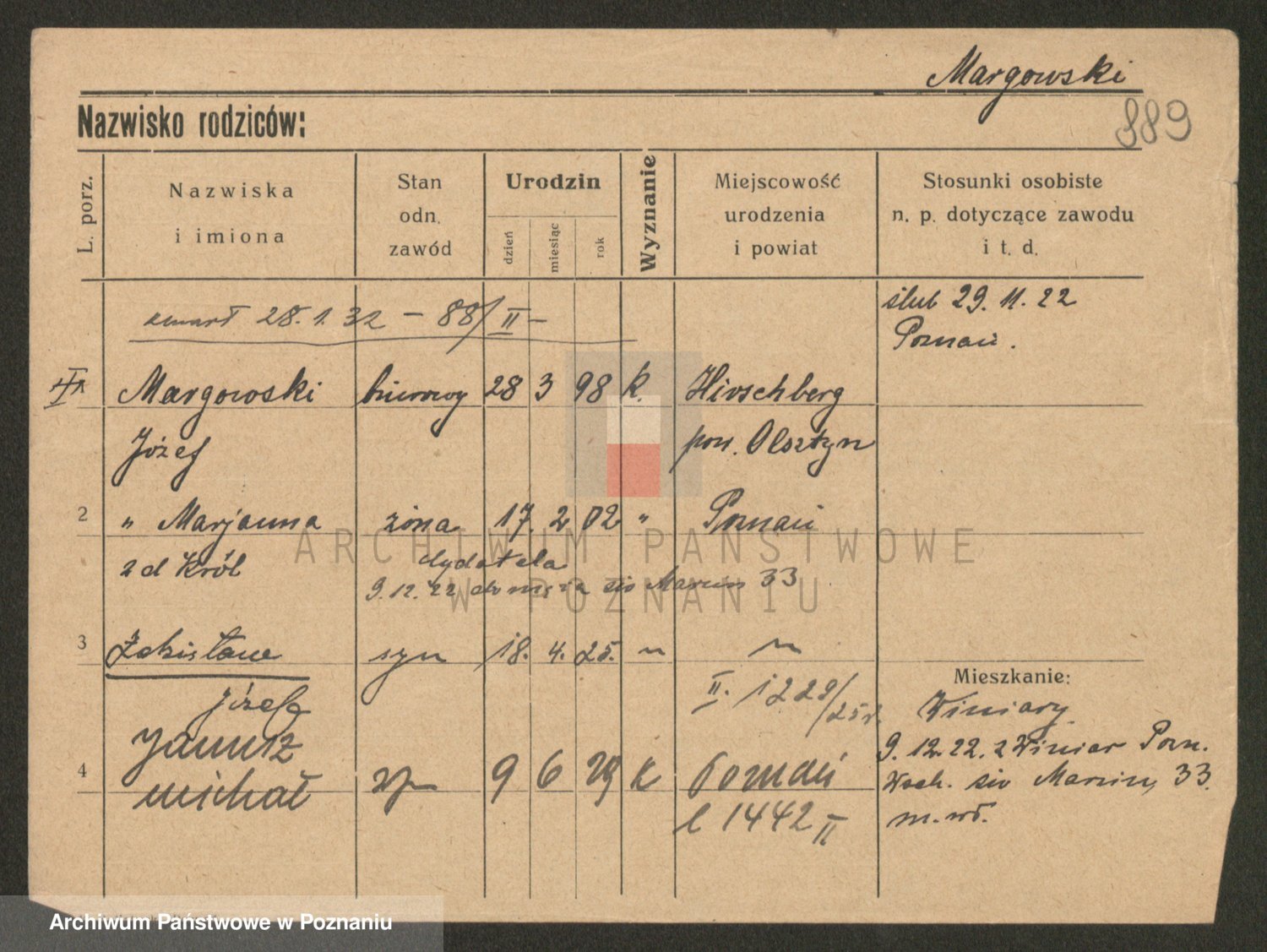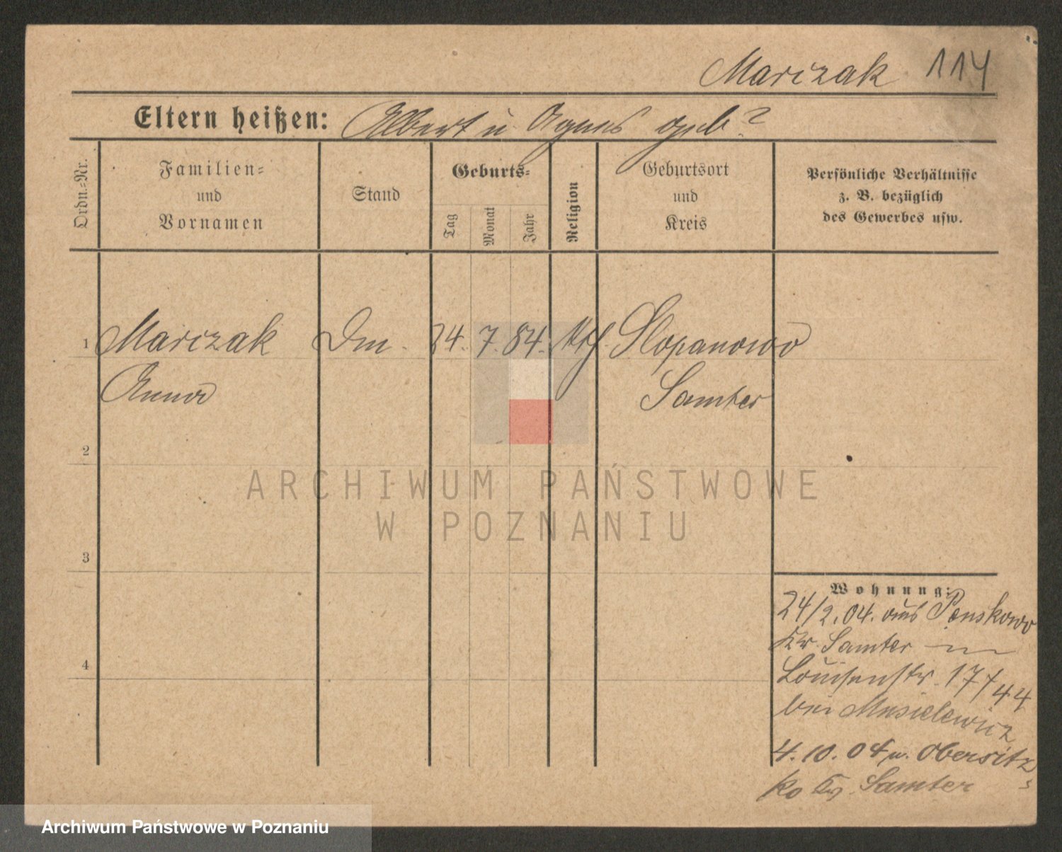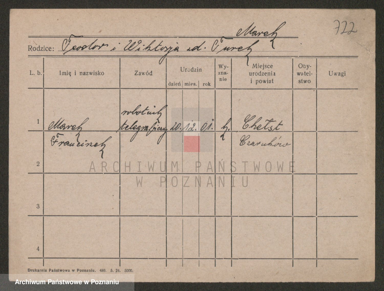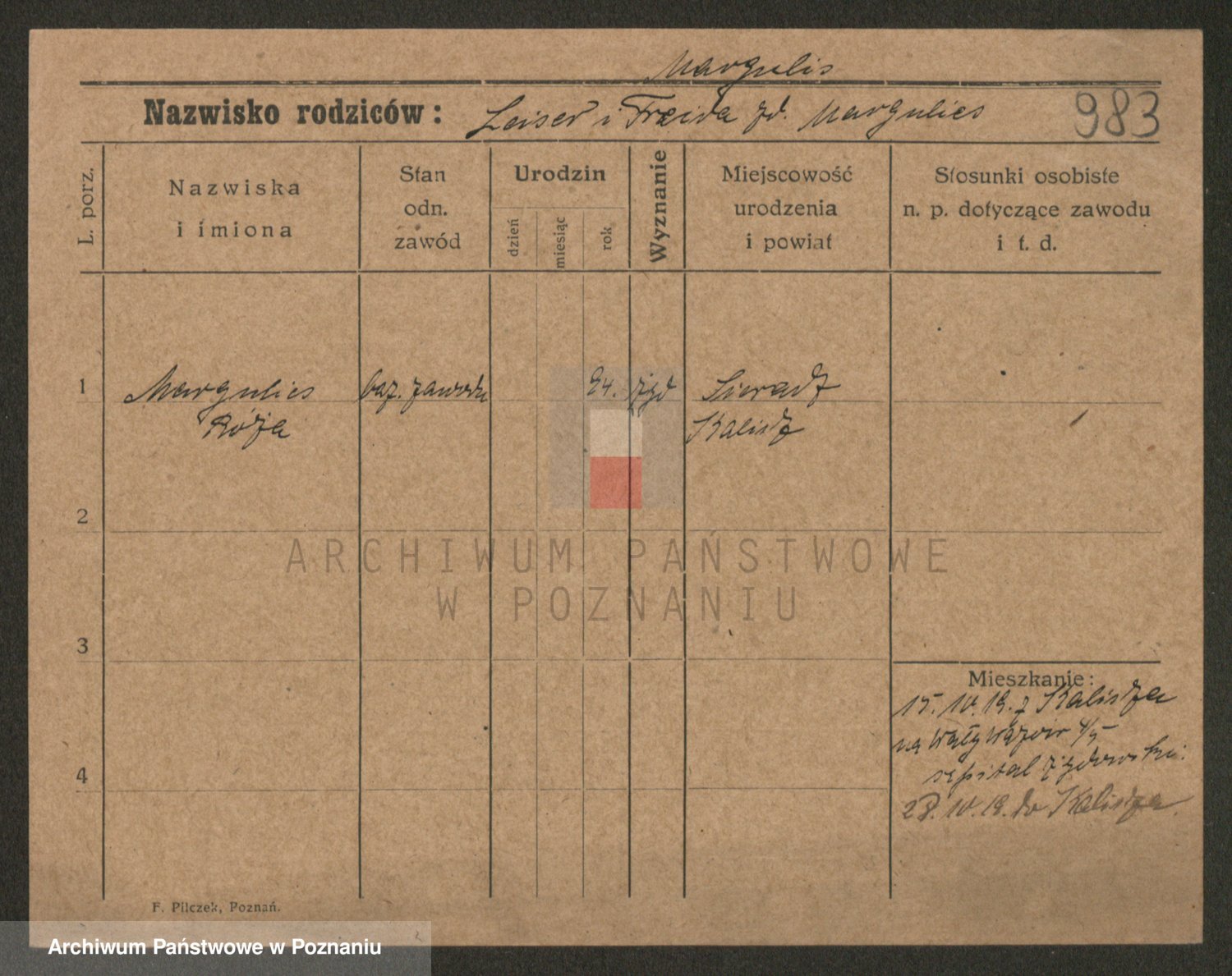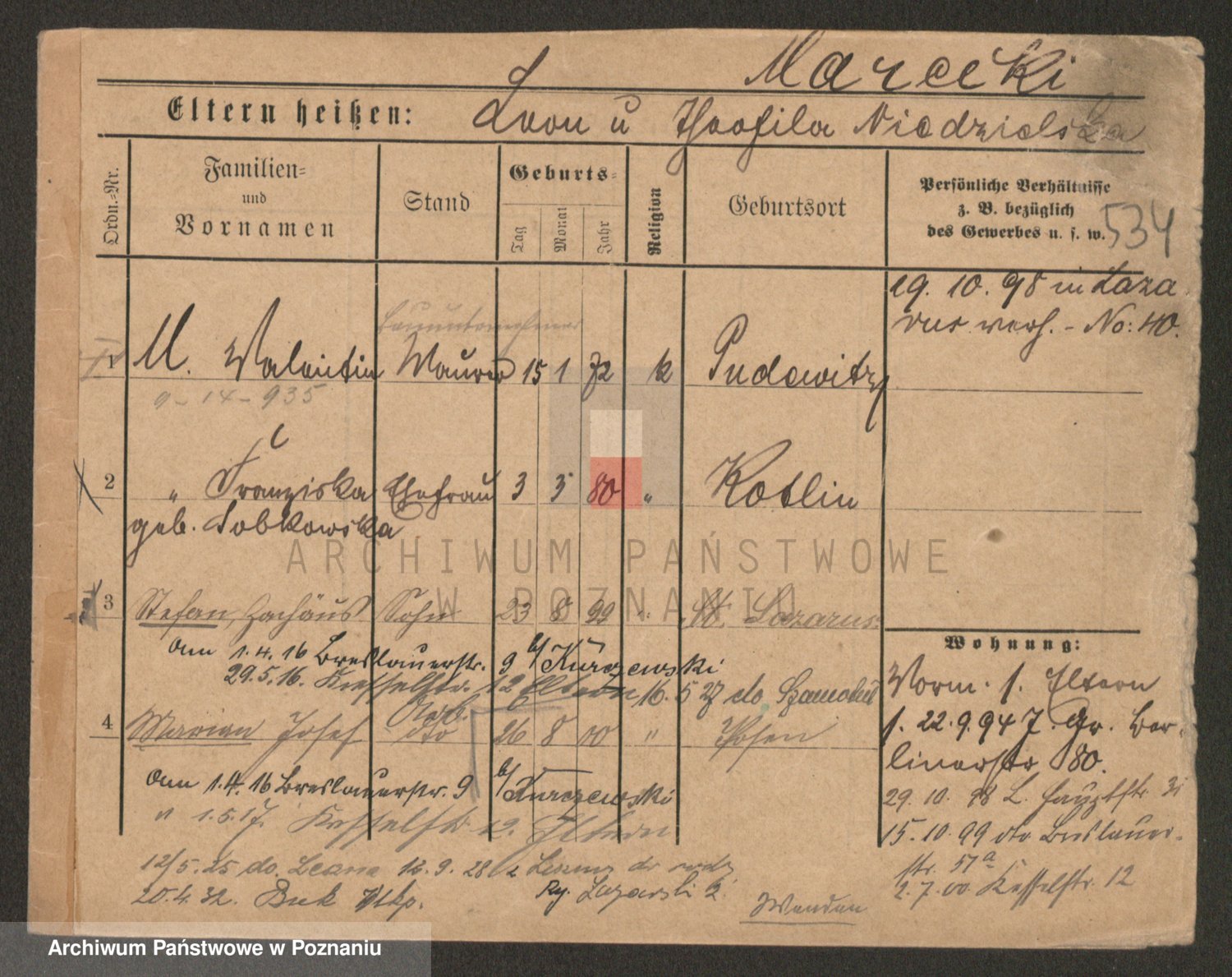 Podgląd karty osobowej dostępny jest po kliknięciu na nazwisko lub ikonkę karty. Można dokonywać powiększenia (ikony na górze) lub przechodzić między kolejnymi skanami (strzałki po bokach).