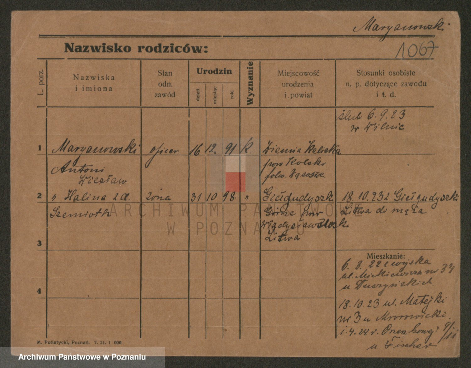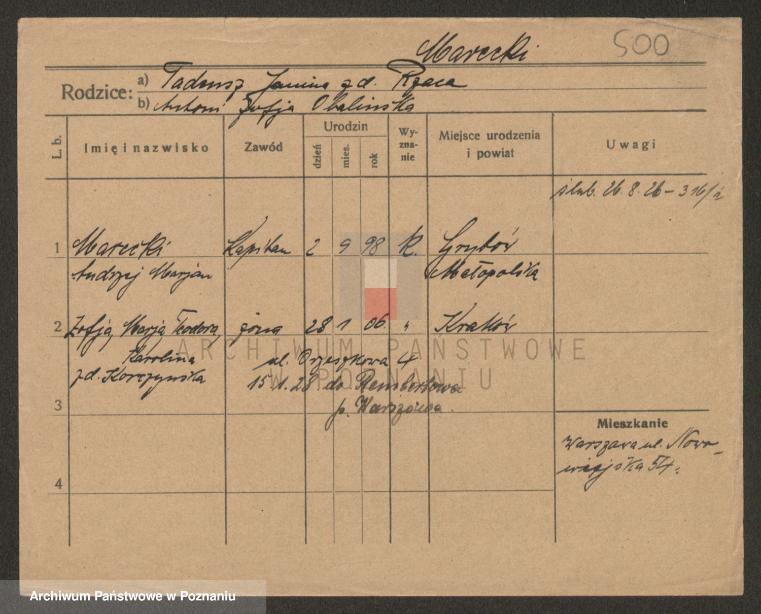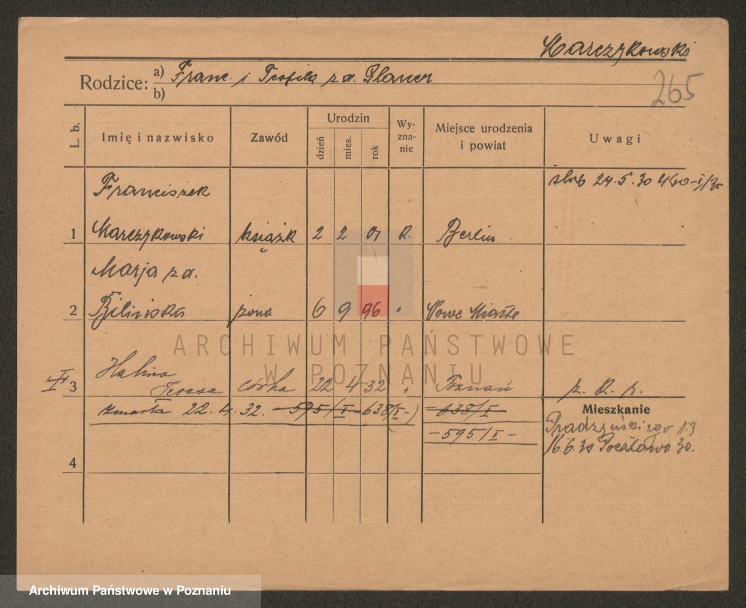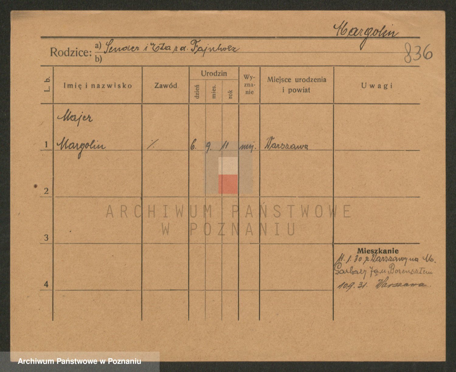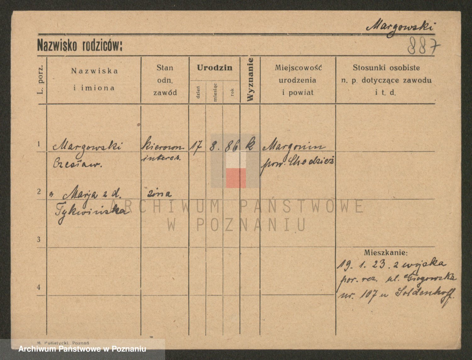 Podgląd karty osobowej dostępny jest po kliknięciu na nazwisko lub ikonkę karty. Można dokonywać powiększenia (ikony na górze) lub przechodzić między kolejnymi skanami (strzałki po bokach).