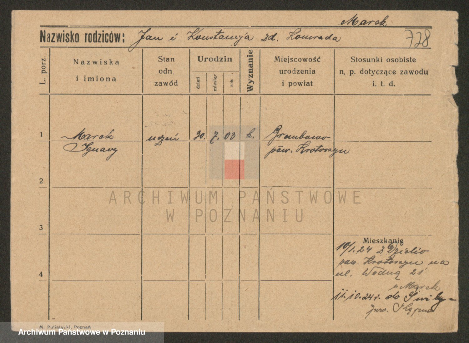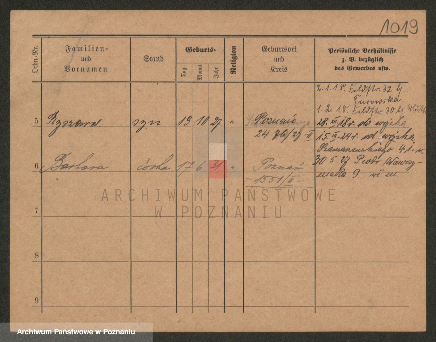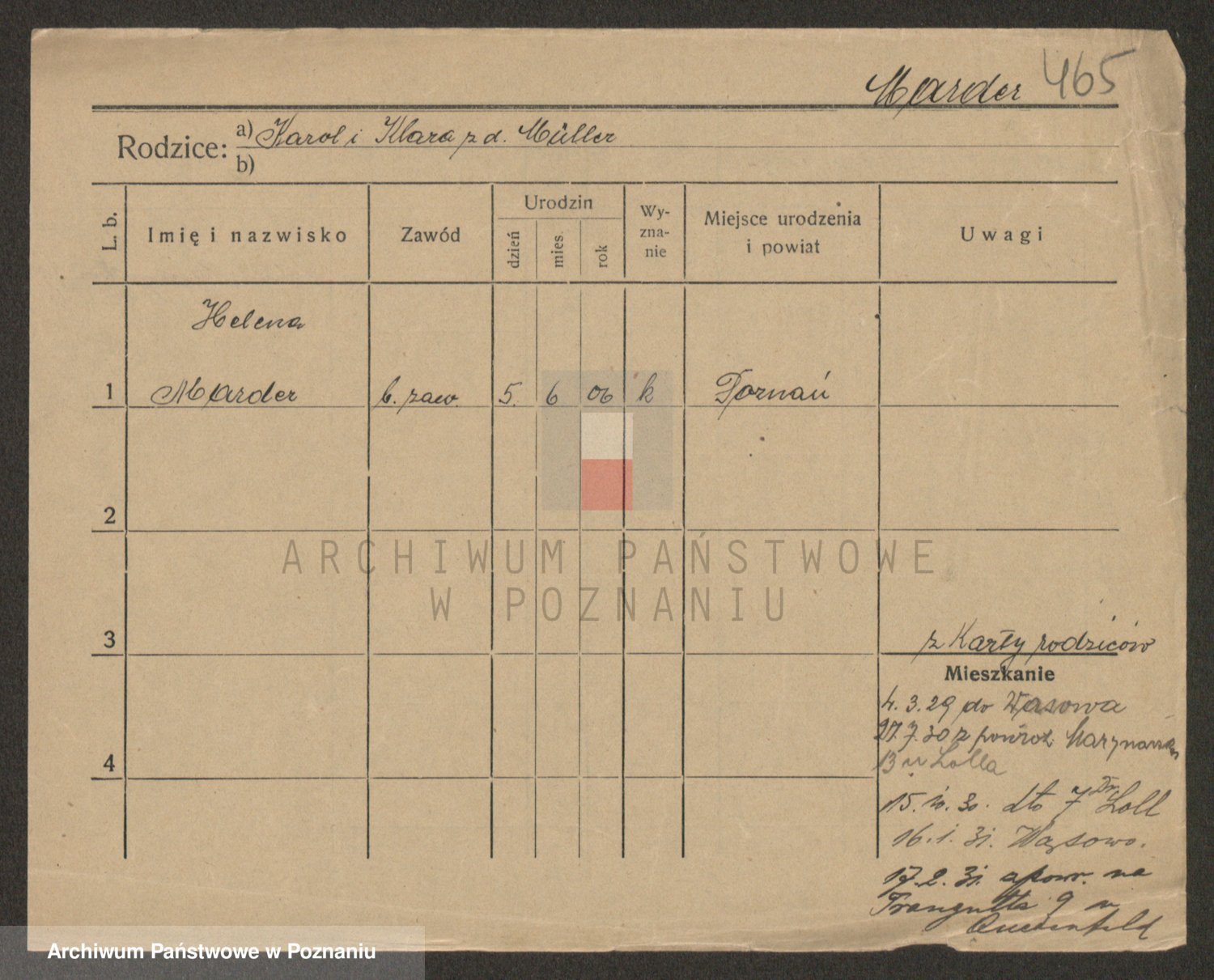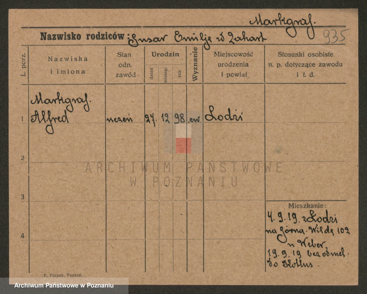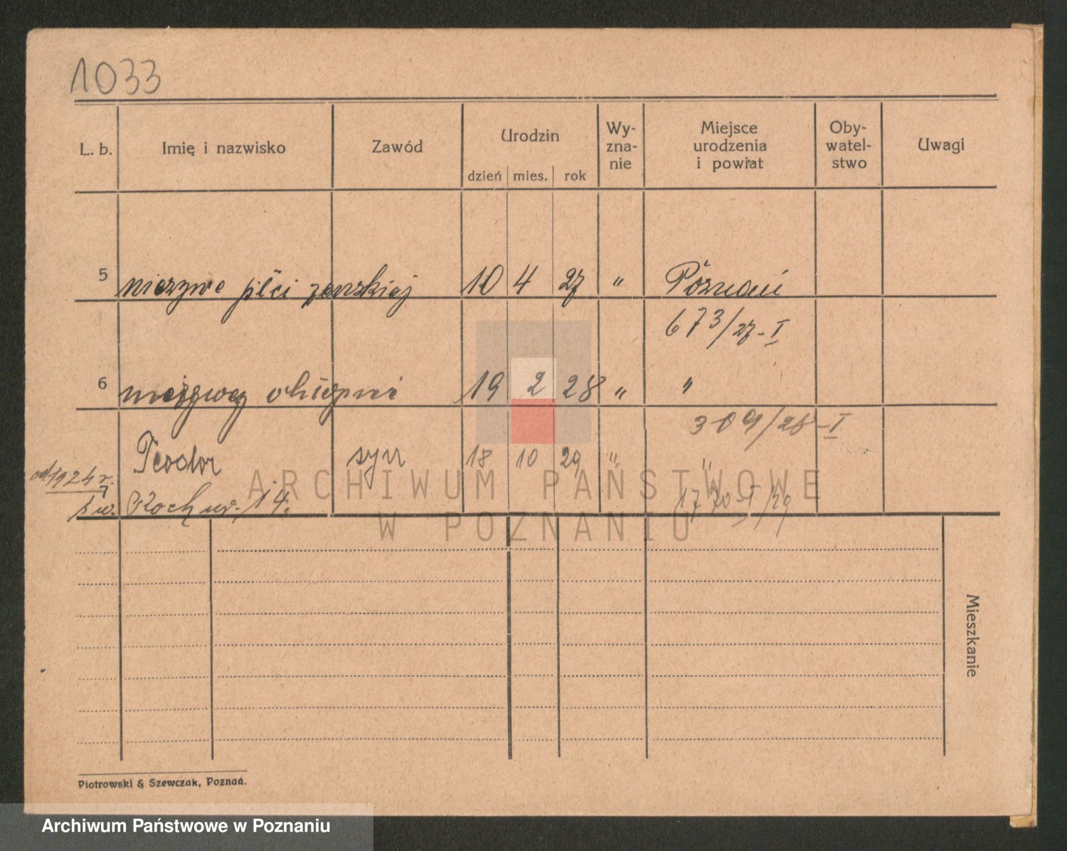 Podgląd karty osobowej dostępny jest po kliknięciu na nazwisko lub ikonkę karty. Można dokonywać powiększenia (ikony na górze) lub przechodzić między kolejnymi skanami (strzałki po bokach).