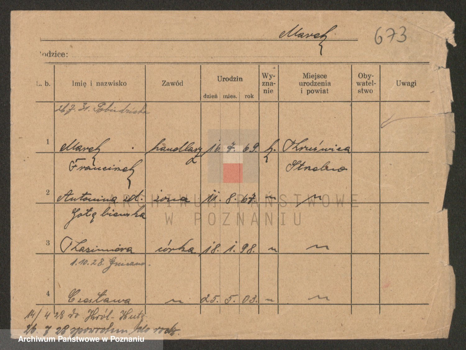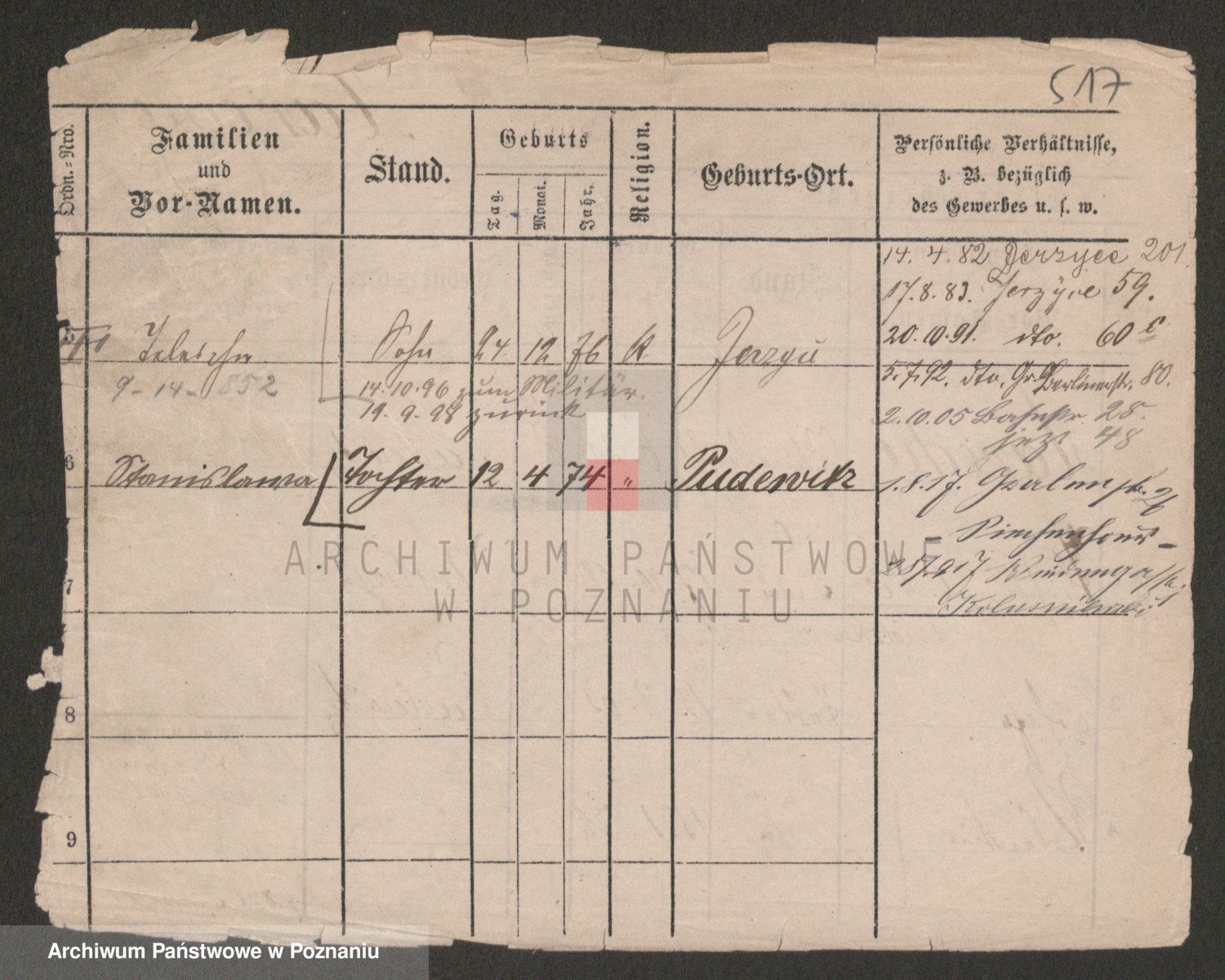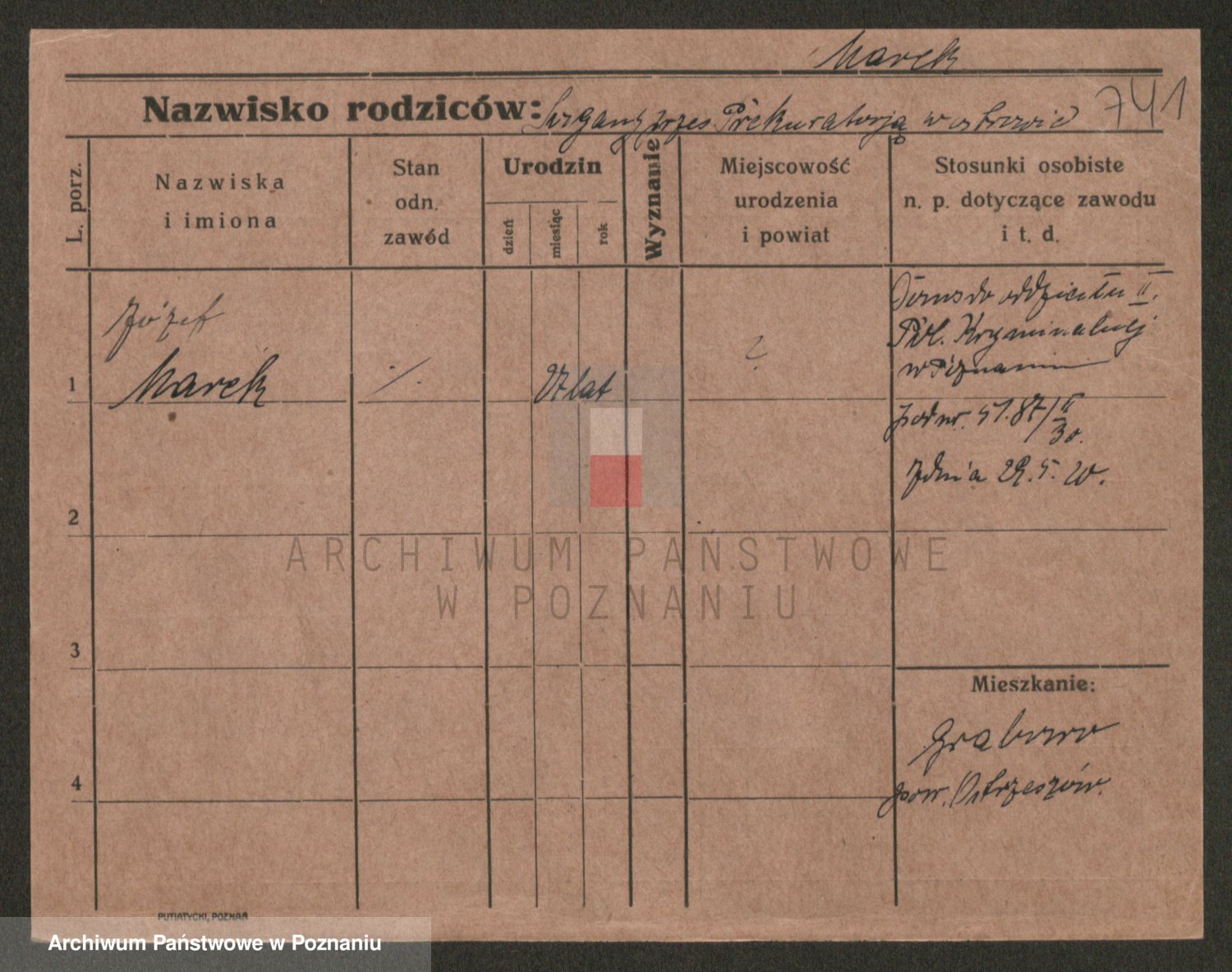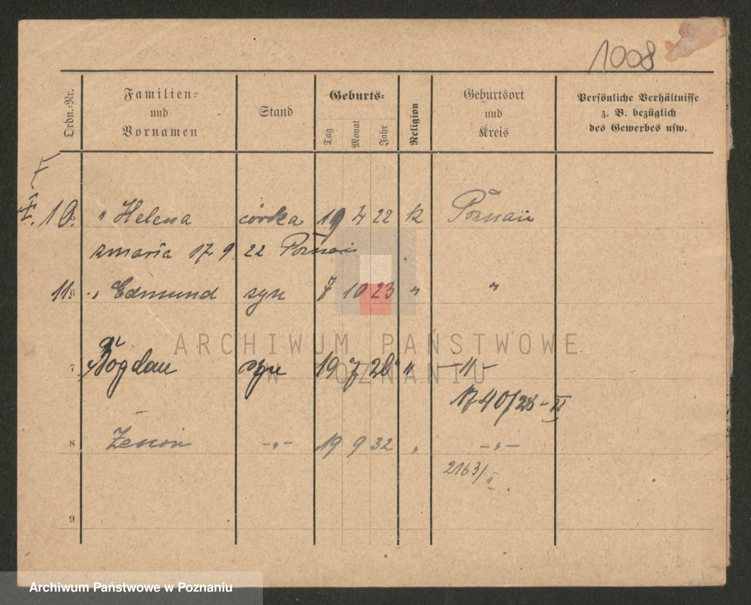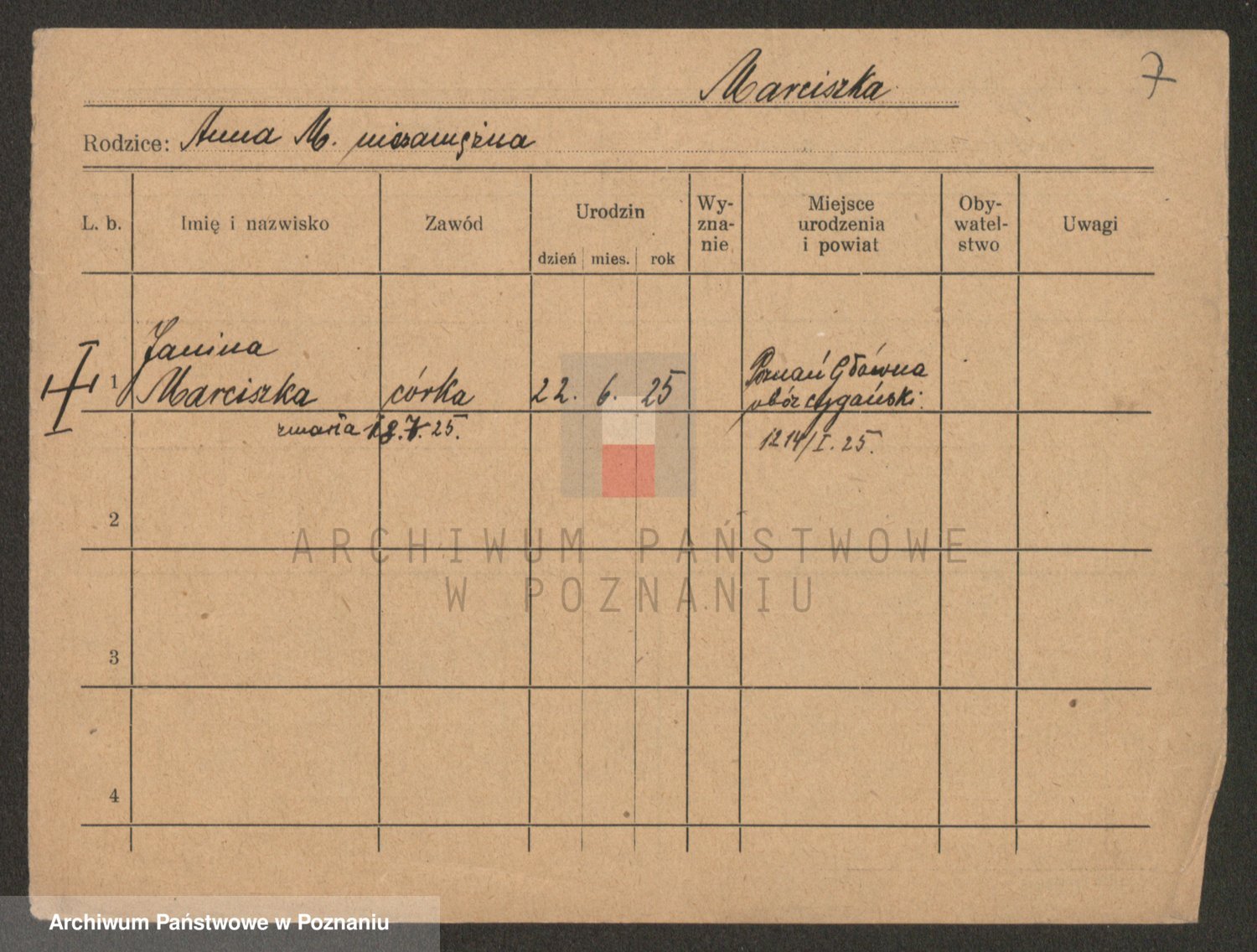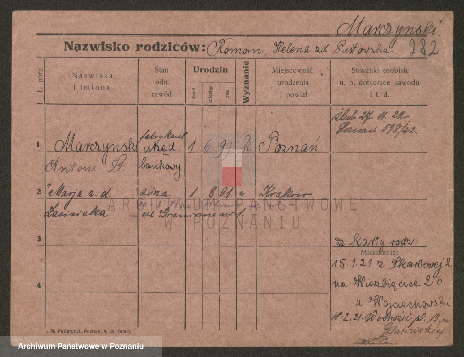 Podgląd karty osobowej dostępny jest po kliknięciu na nazwisko lub ikonkę karty. Można dokonywać powiększenia (ikony na górze) lub przechodzić między kolejnymi skanami (strzałki po bokach).