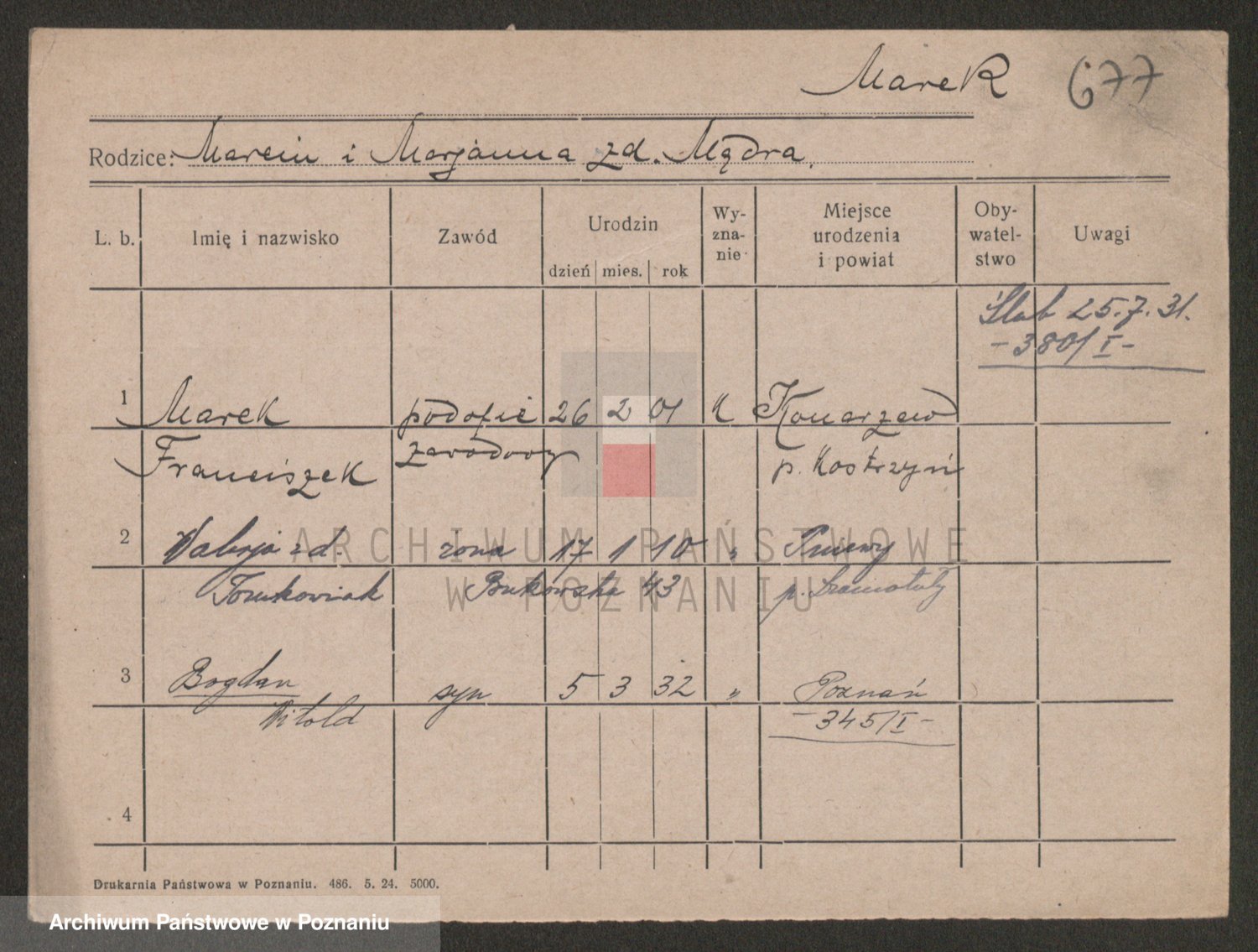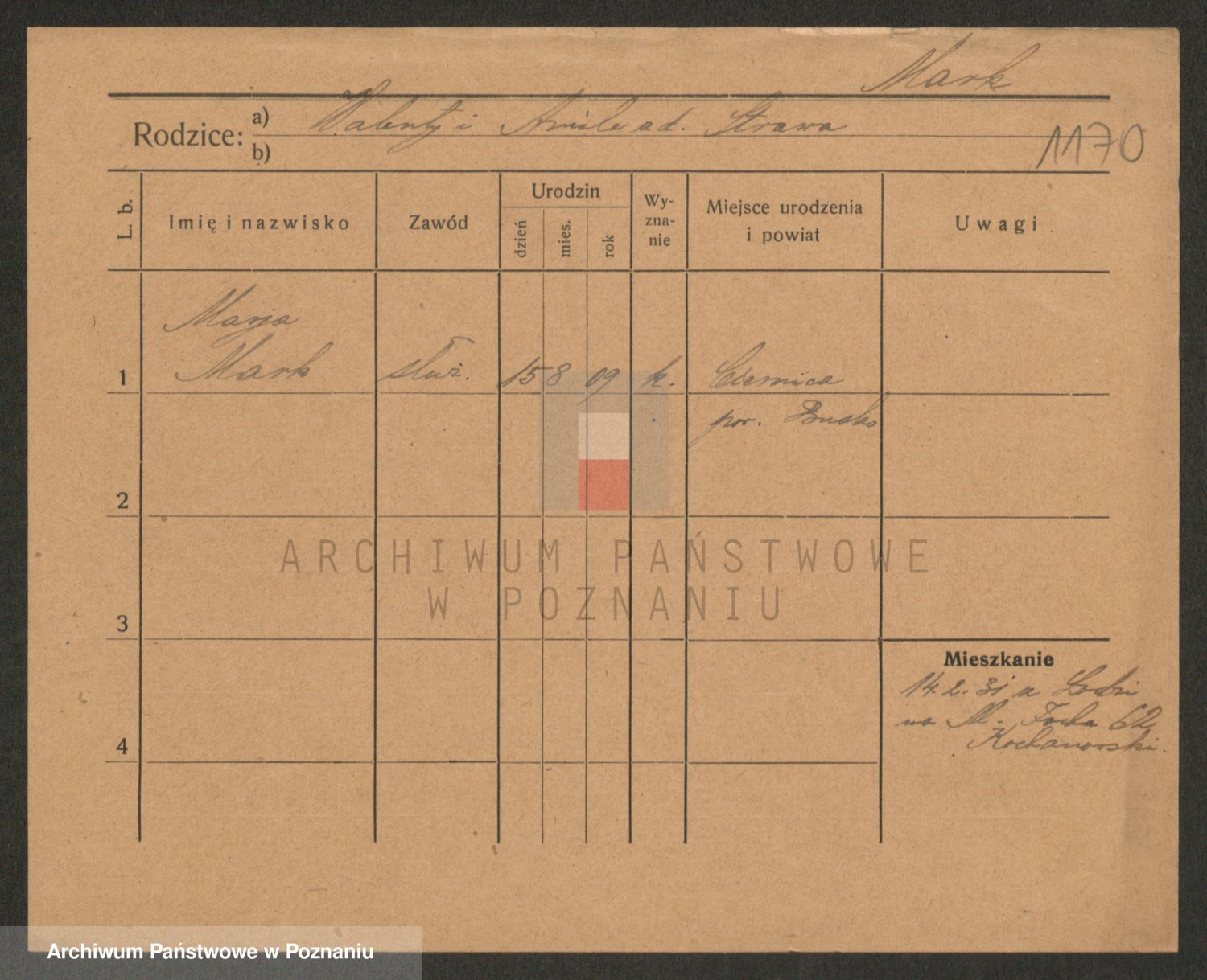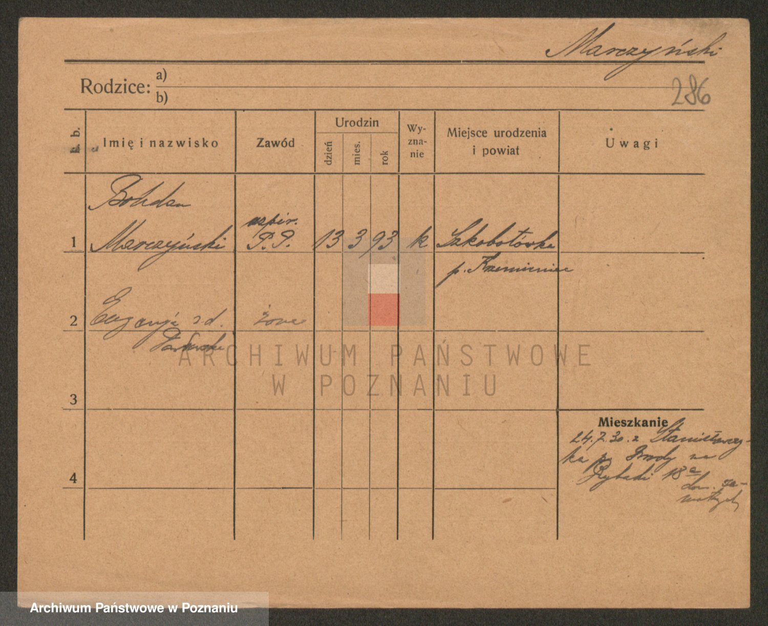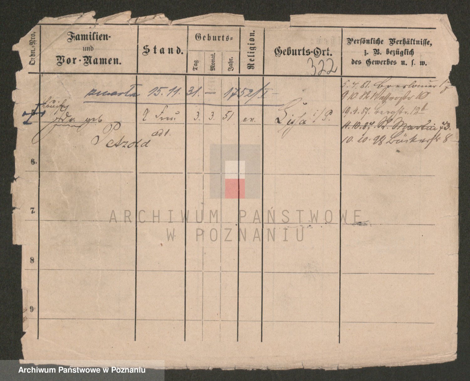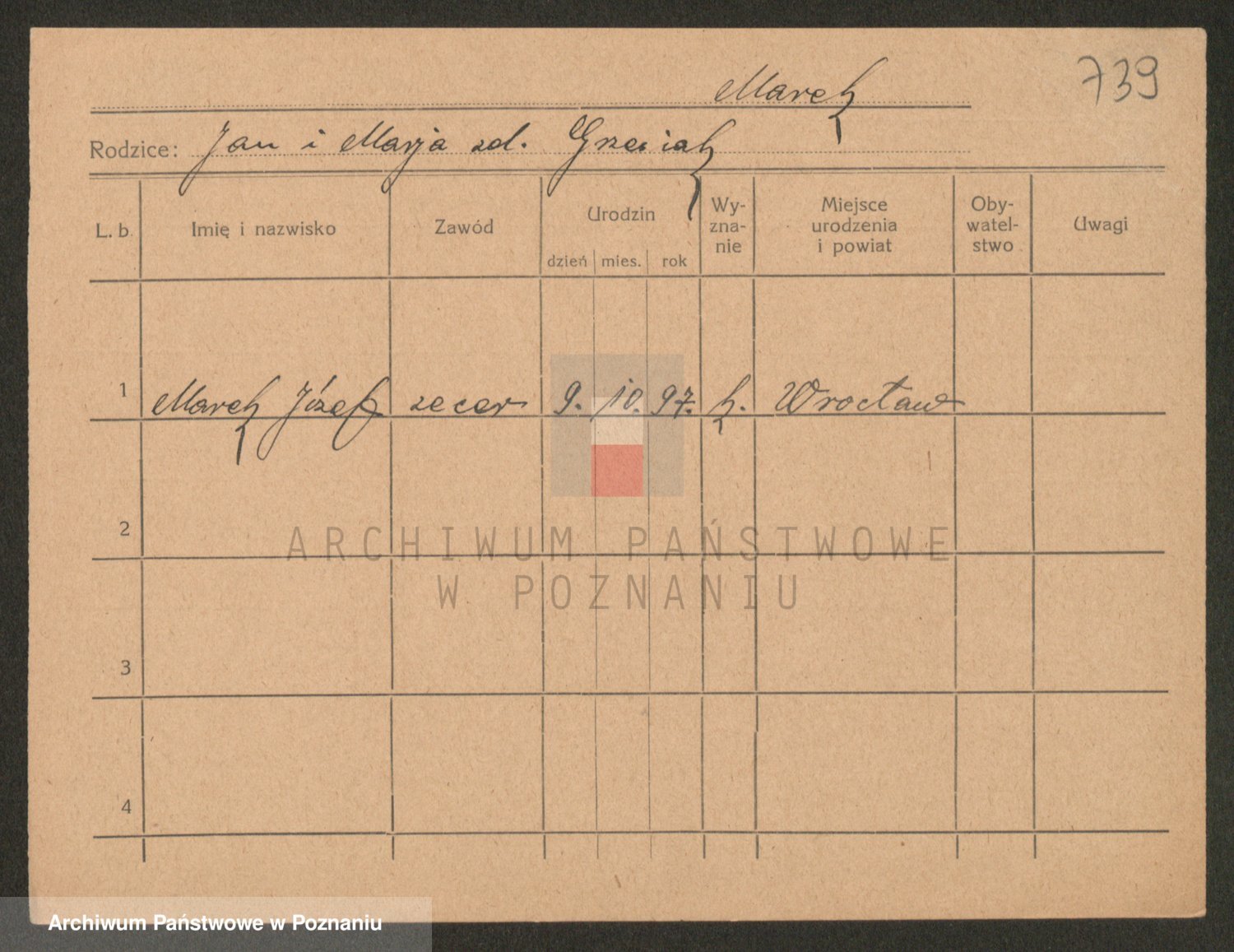 Podgląd karty osobowej dostępny jest po kliknięciu na nazwisko lub ikonkę karty. Można dokonywać powiększenia (ikony na górze) lub przechodzić między kolejnymi skanami (strzałki po bokach).