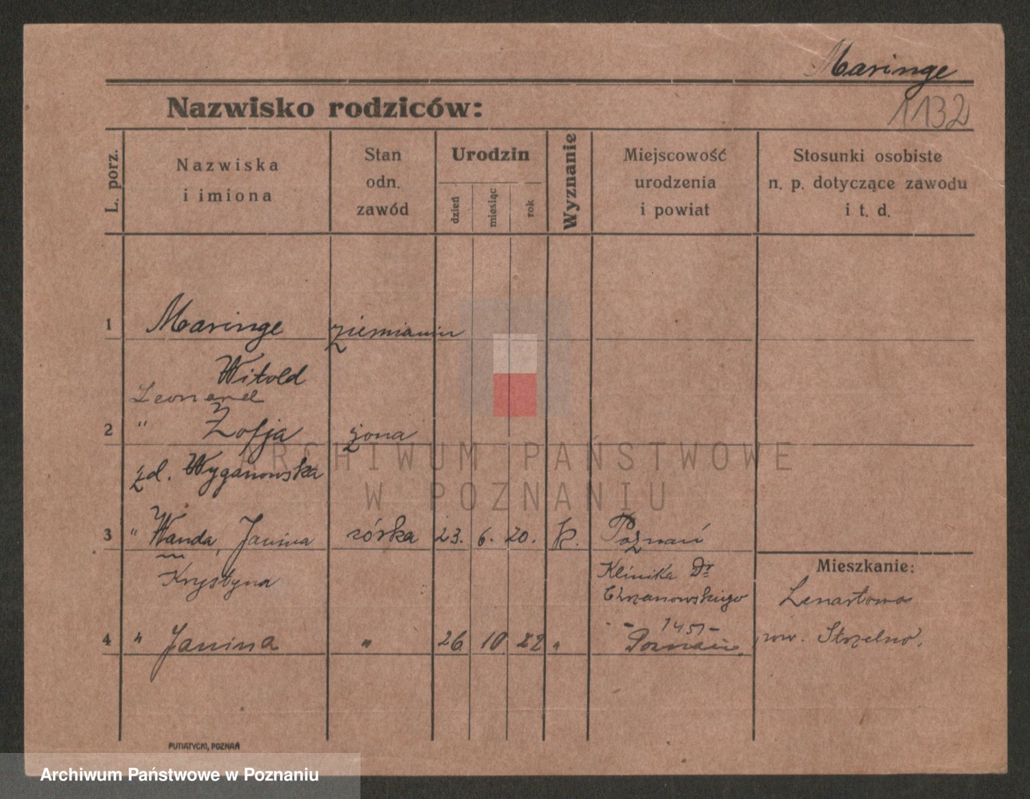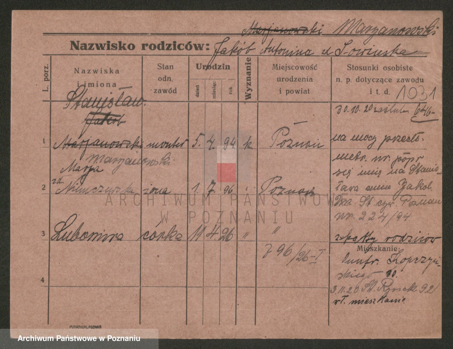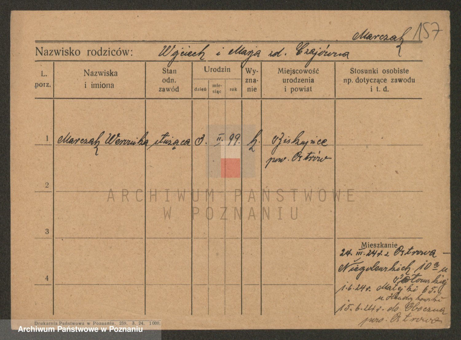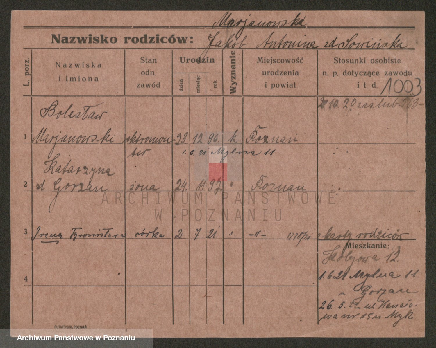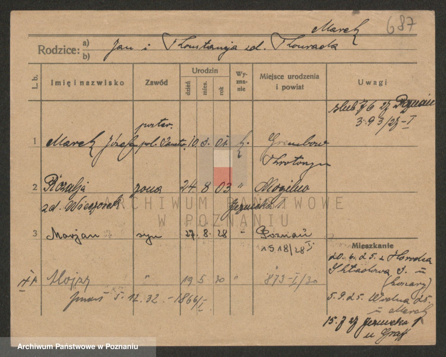 Podgląd karty osobowej dostępny jest po kliknięciu na nazwisko lub ikonkę karty. Można dokonywać powiększenia (ikony na górze) lub przechodzić między kolejnymi skanami (strzałki po bokach).