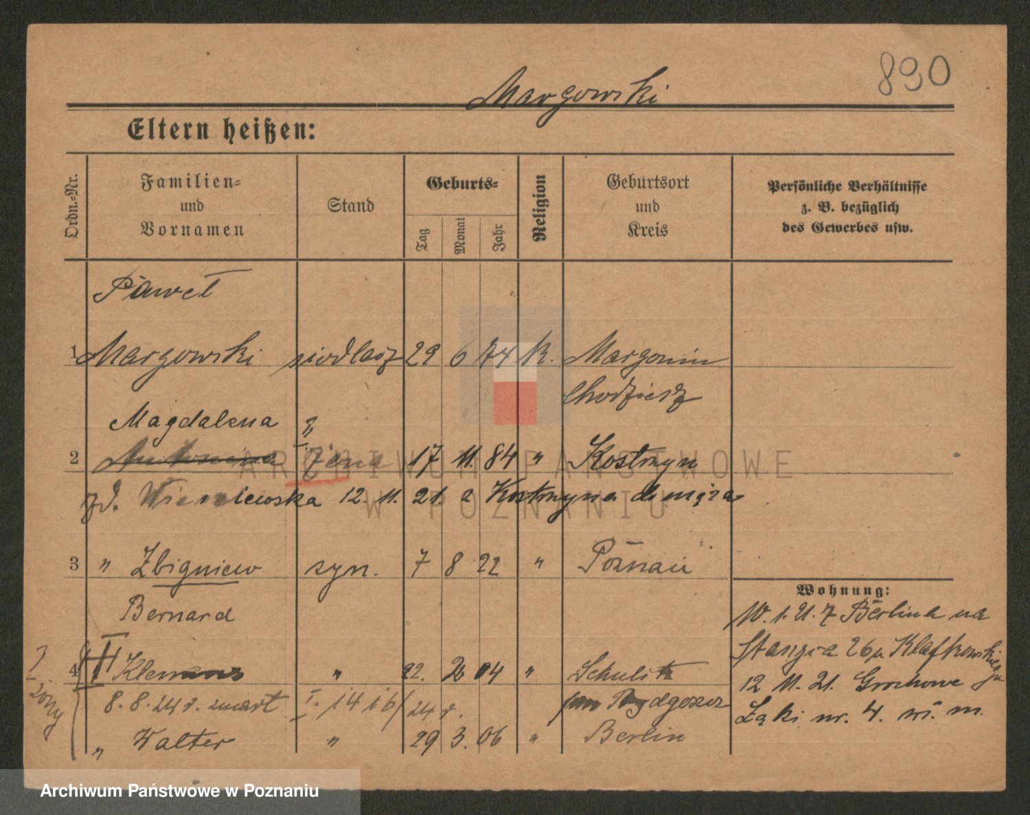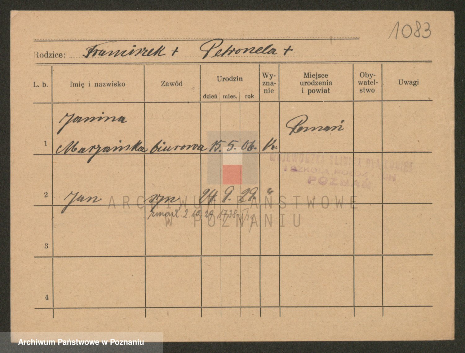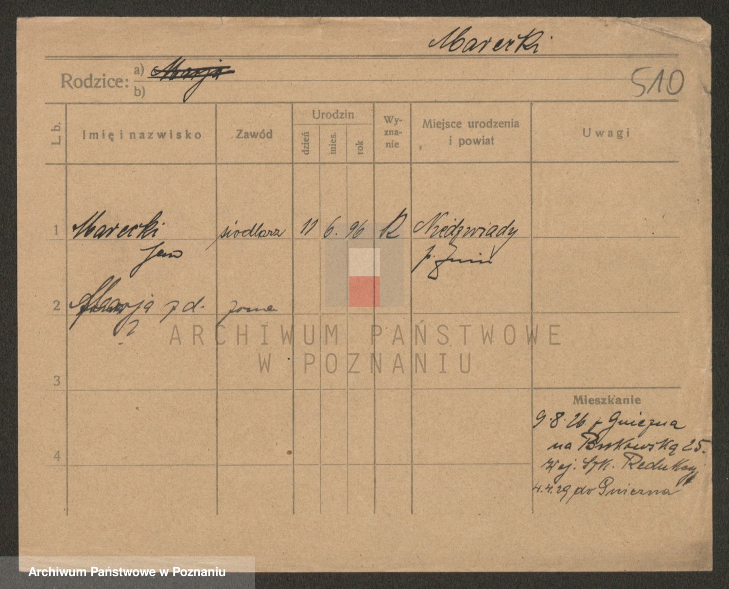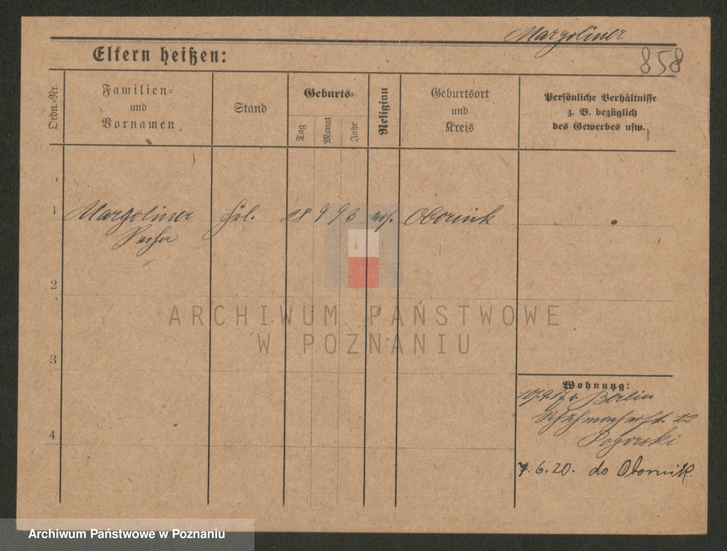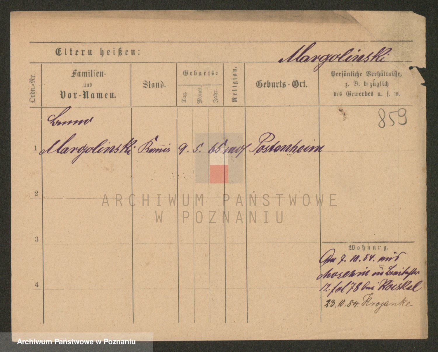 Podgląd karty osobowej dostępny jest po kliknięciu na nazwisko lub ikonkę karty. Można dokonywać powiększenia (ikony na górze) lub przechodzić między kolejnymi skanami (strzałki po bokach).
