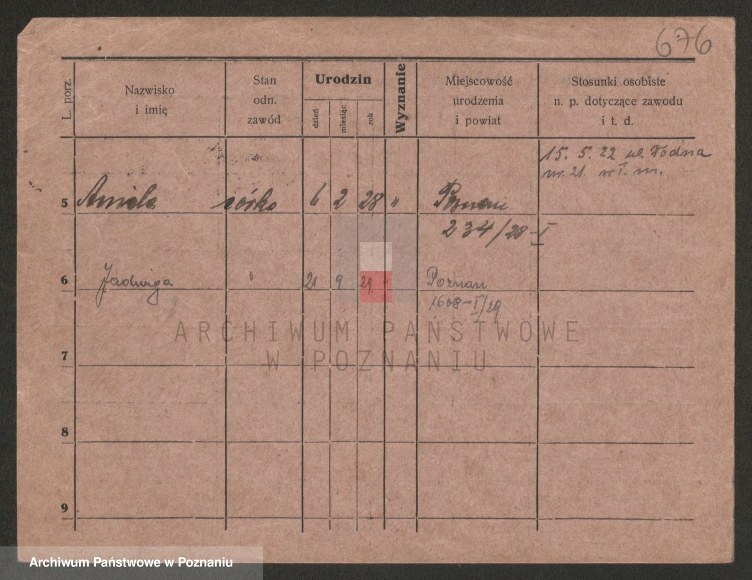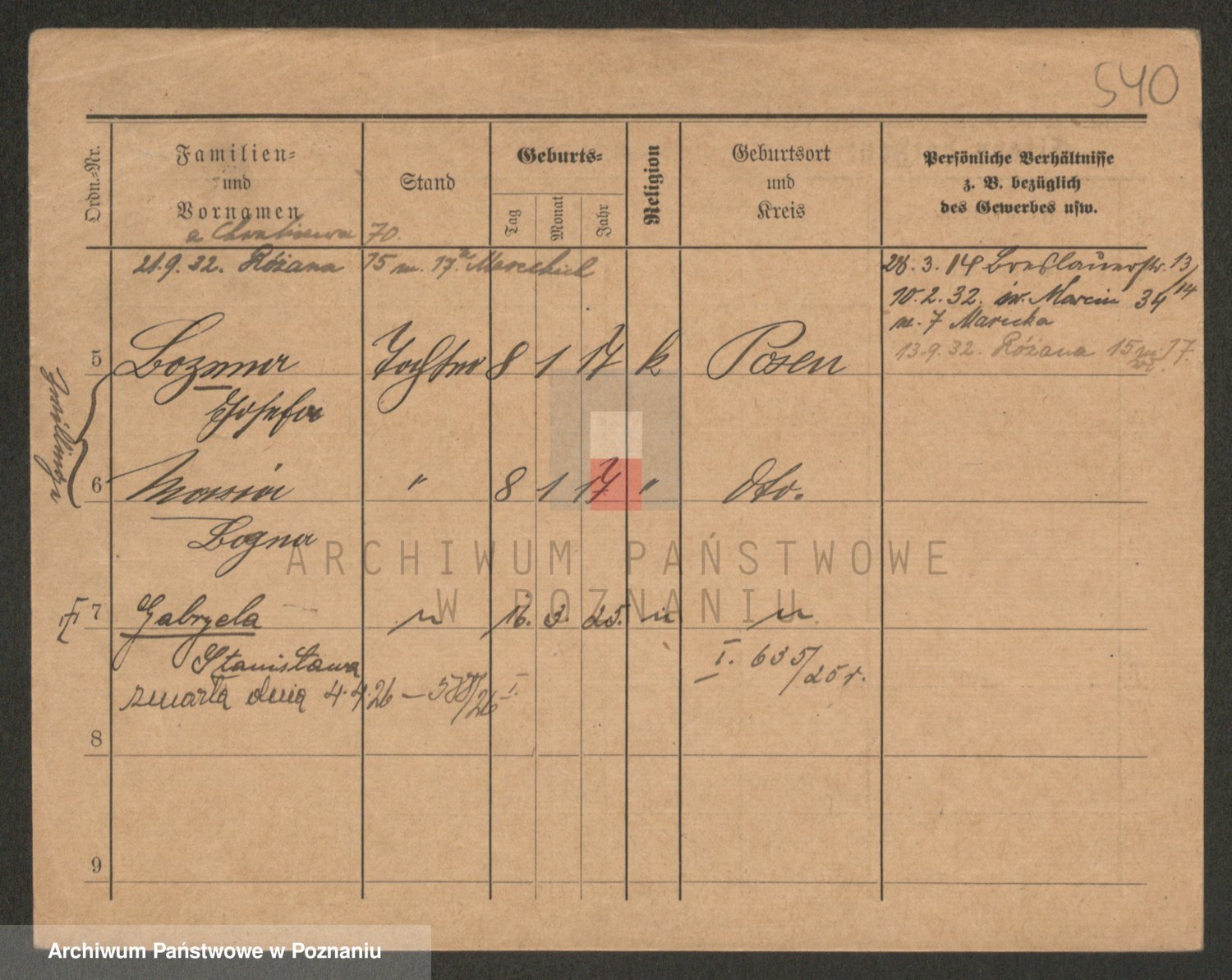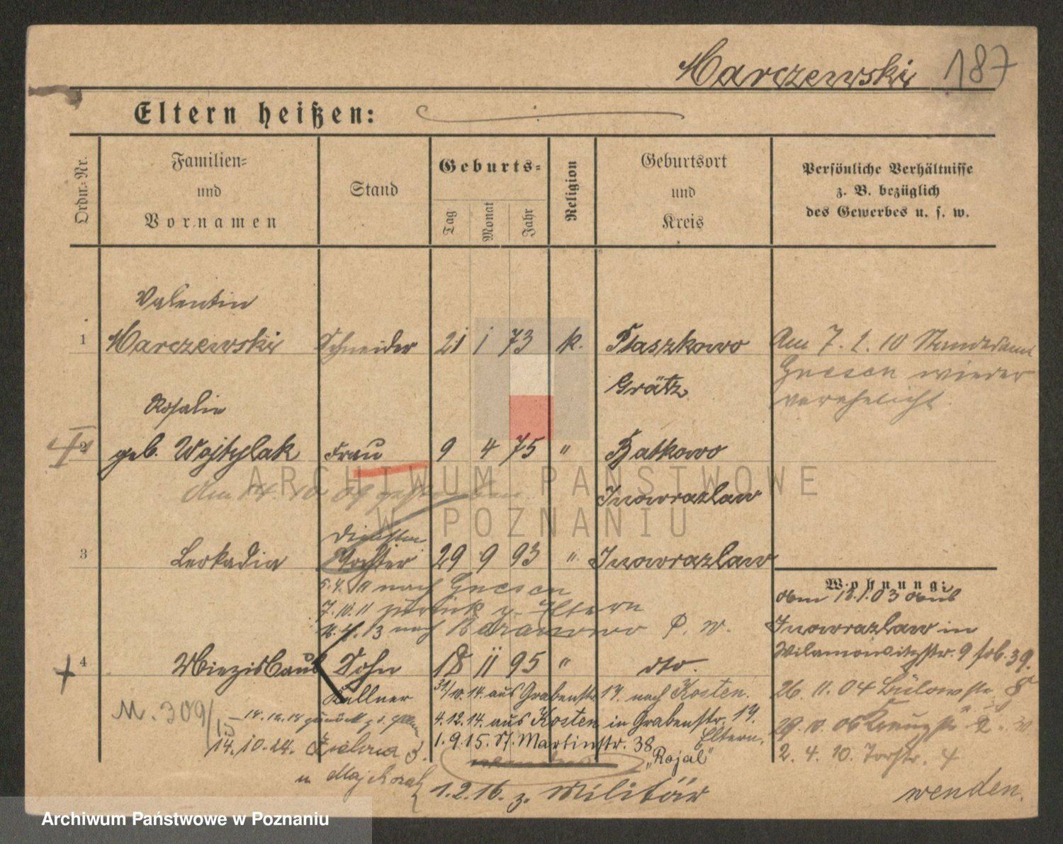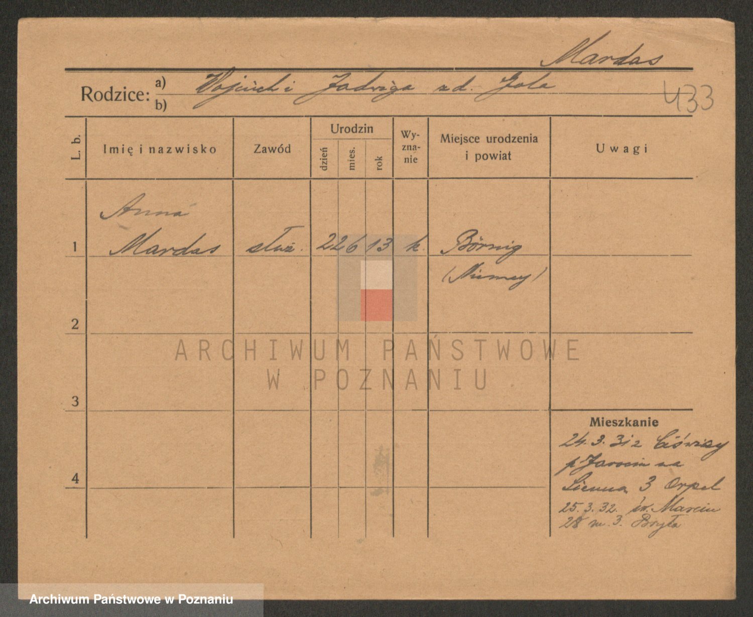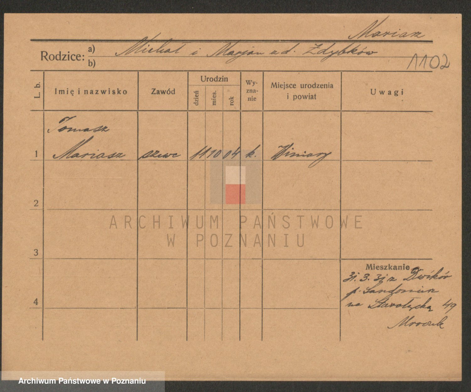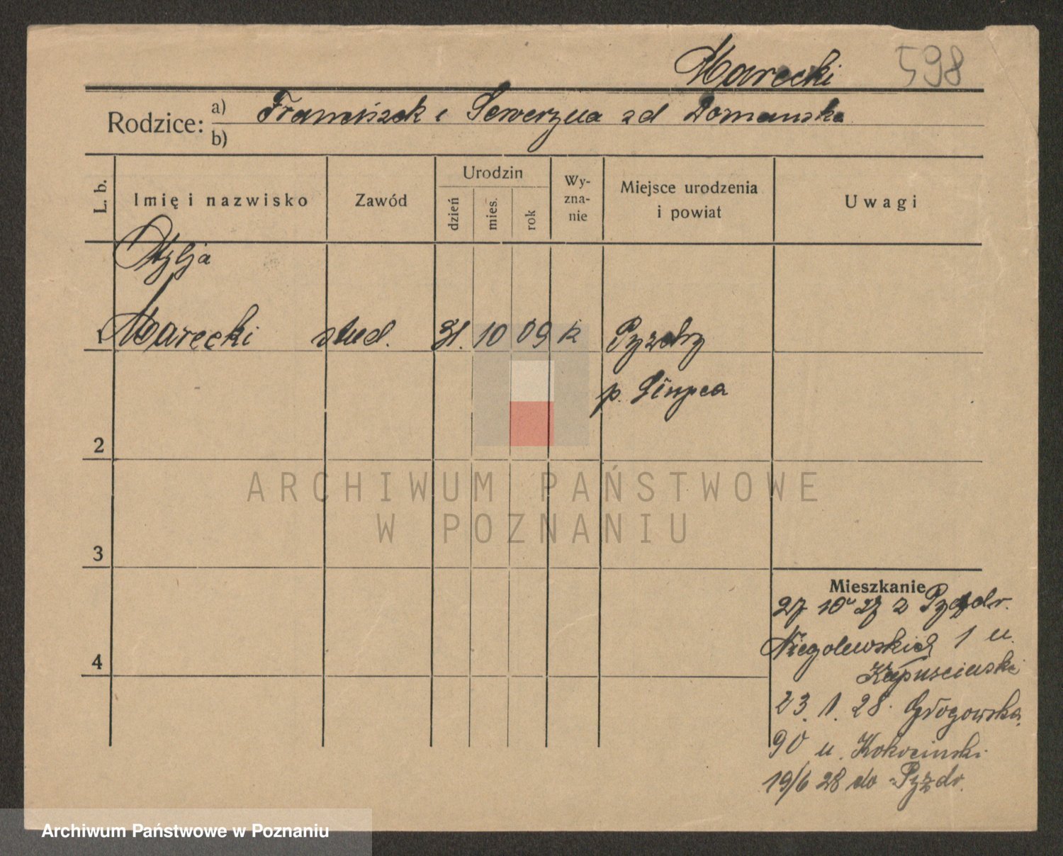 Podgląd karty osobowej dostępny jest po kliknięciu na nazwisko lub ikonkę karty. Można dokonywać powiększenia (ikony na górze) lub przechodzić między kolejnymi skanami (strzałki po bokach).