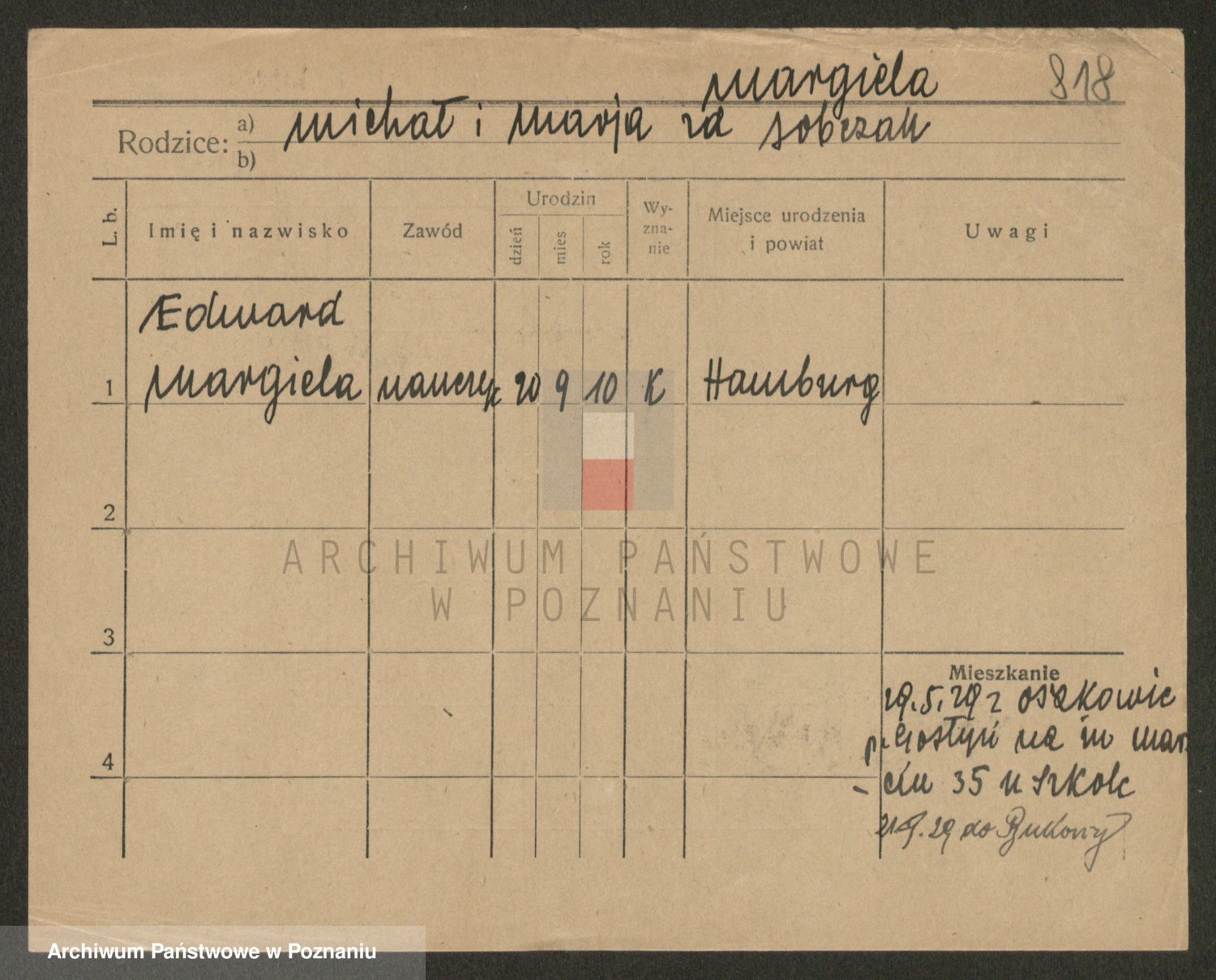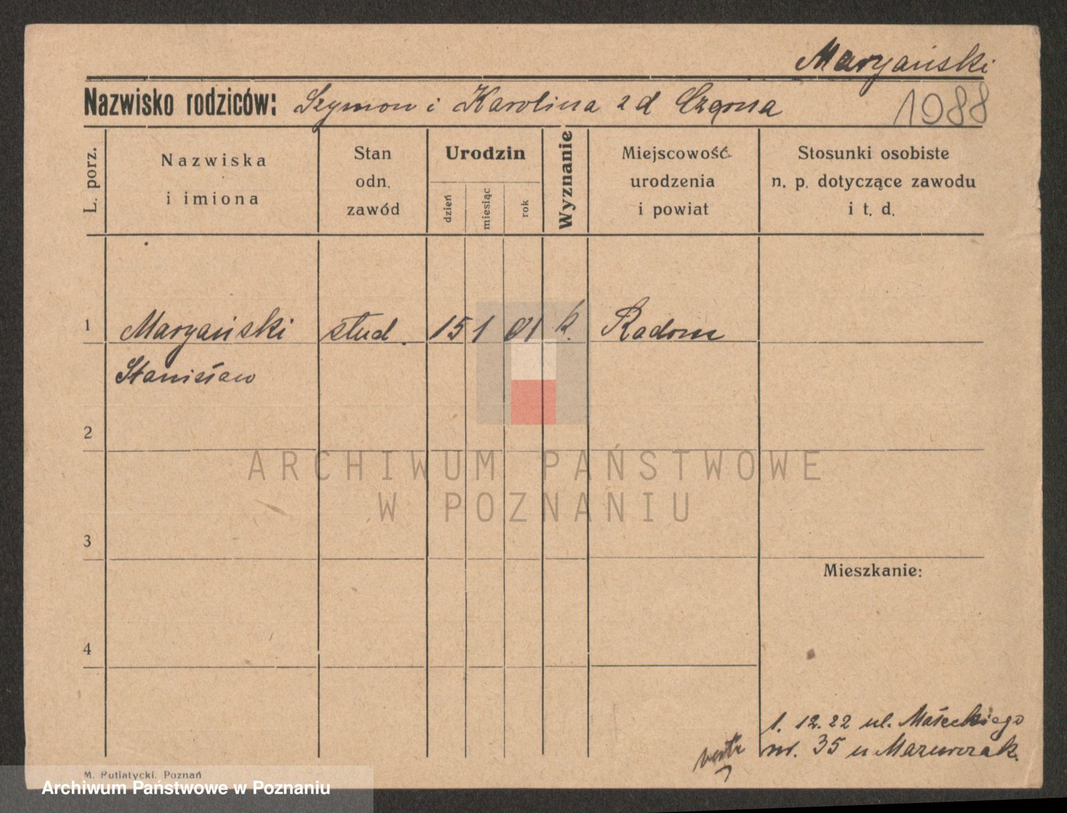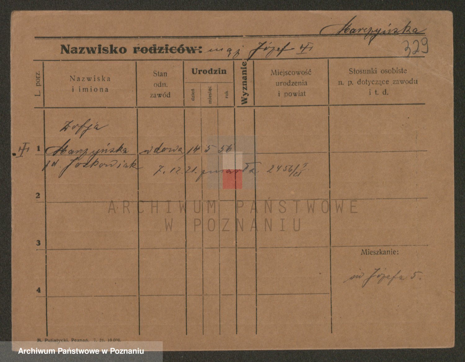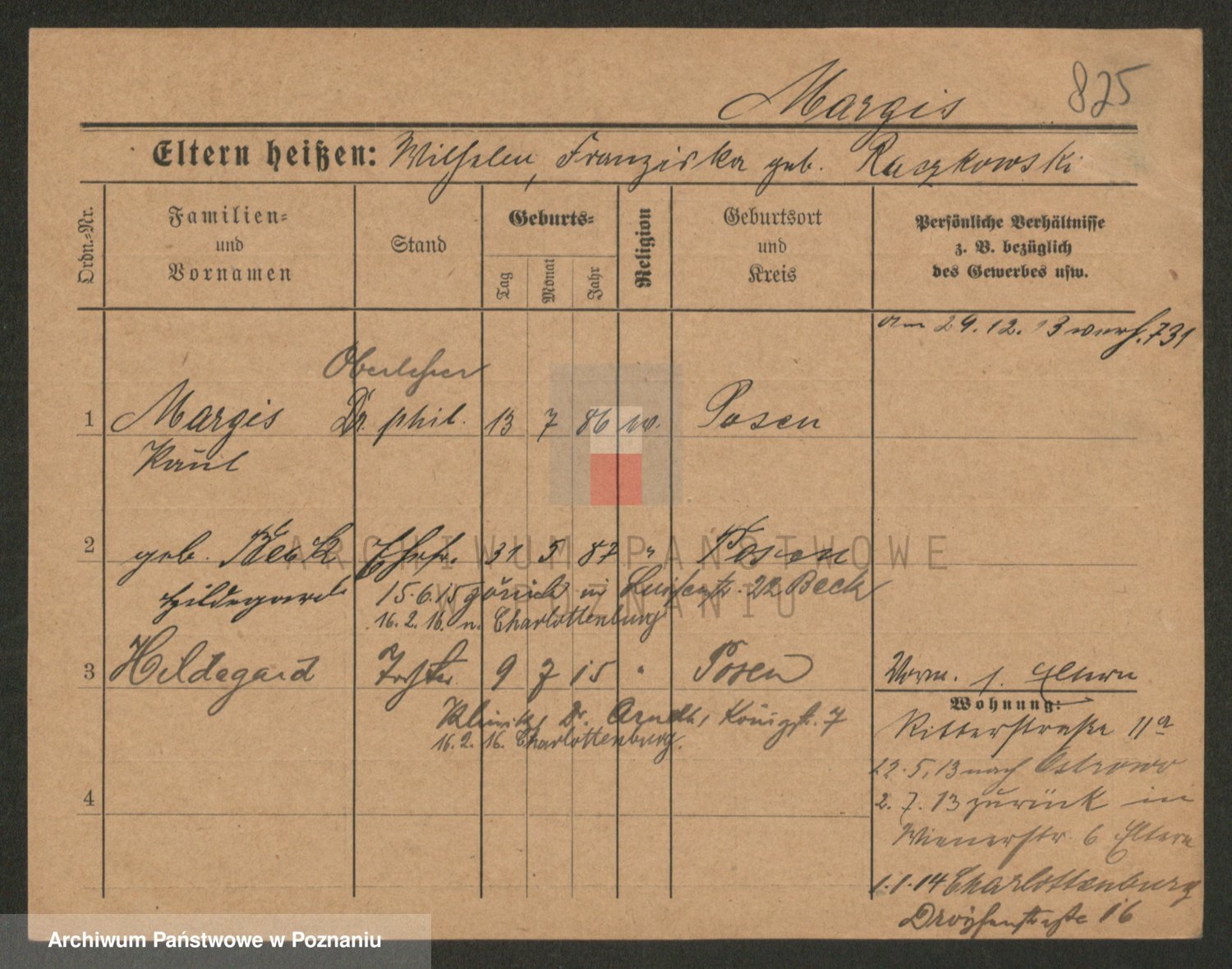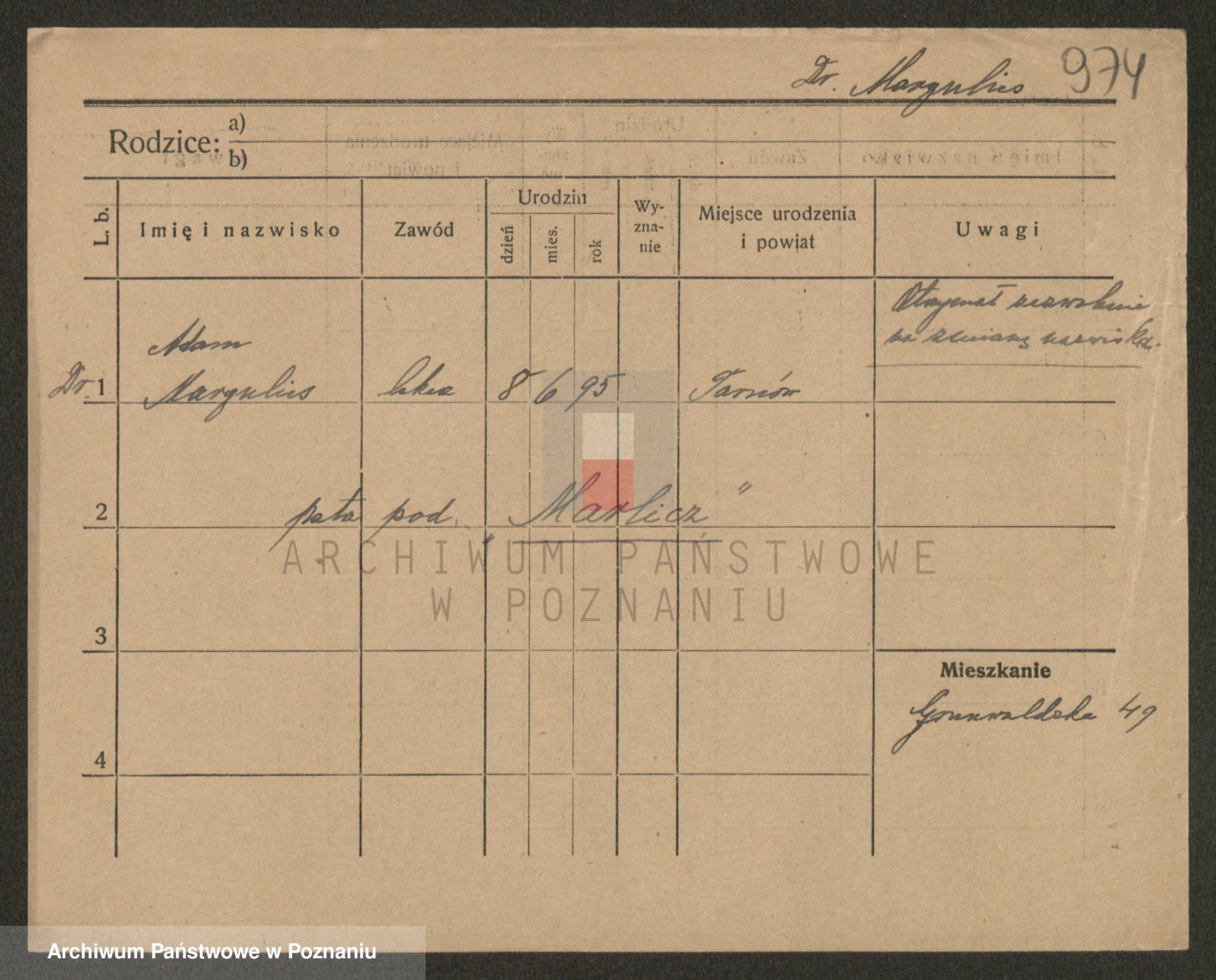 Podgląd karty osobowej dostępny jest po kliknięciu na nazwisko lub ikonkę karty. Można dokonywać powiększenia (ikony na górze) lub przechodzić między kolejnymi skanami (strzałki po bokach).