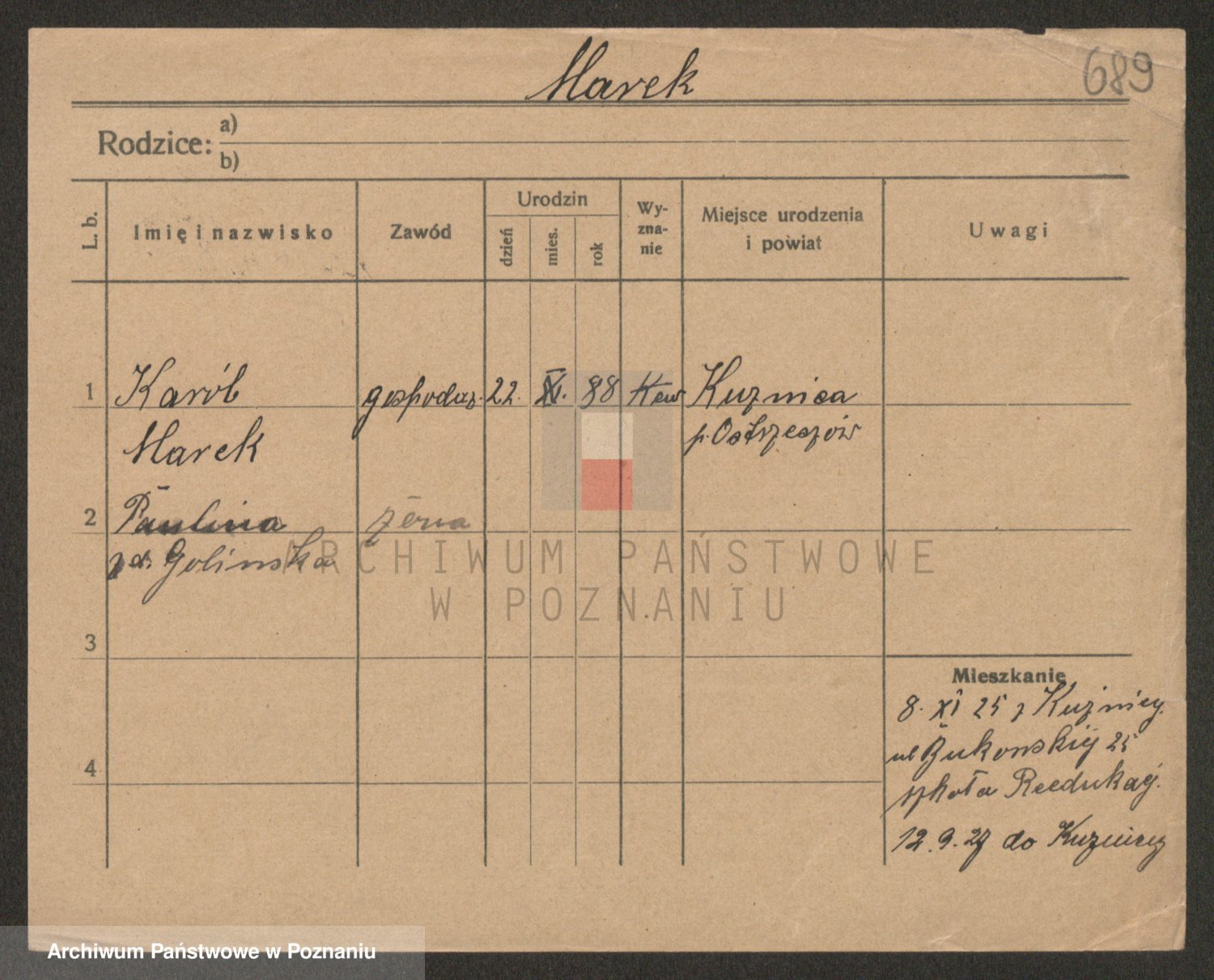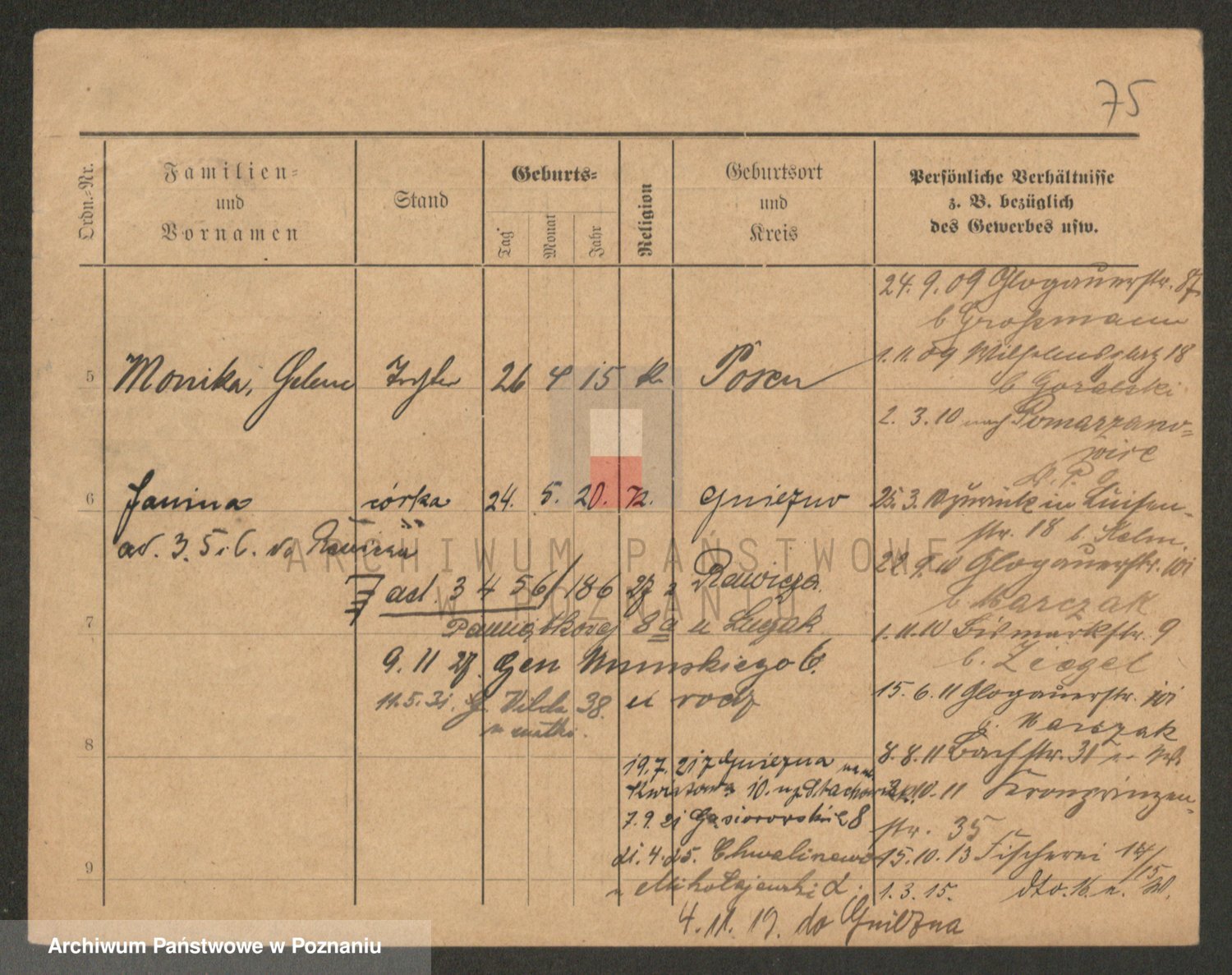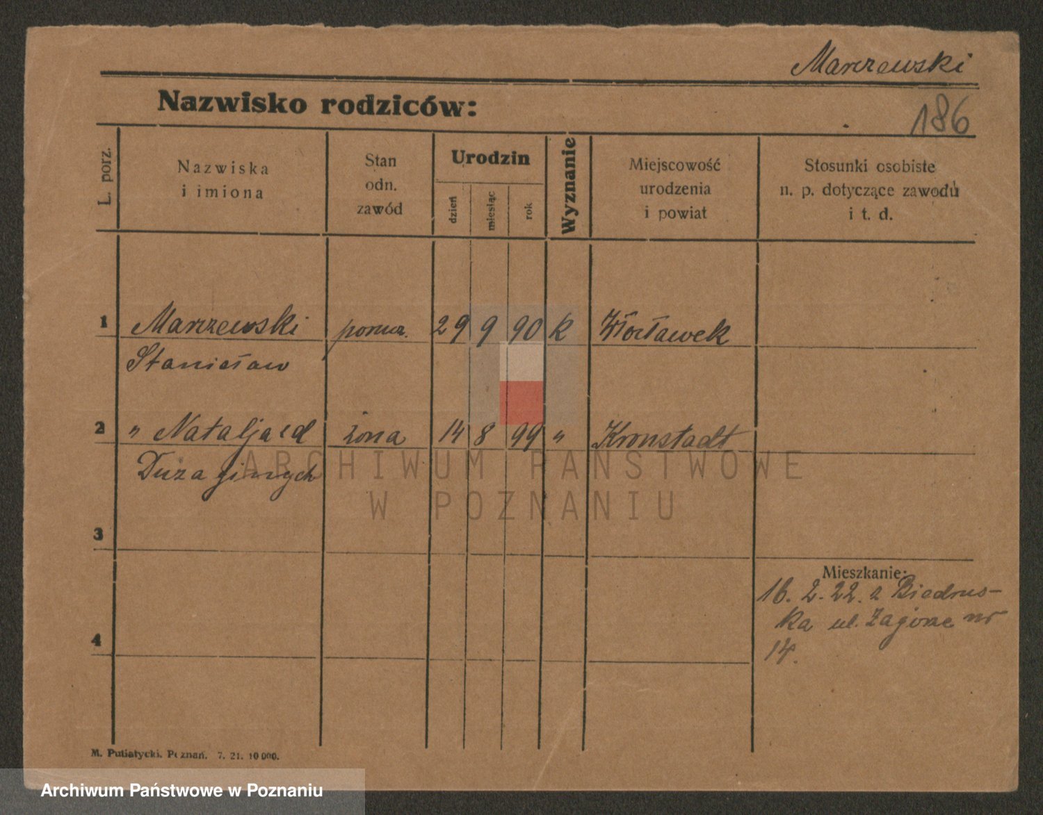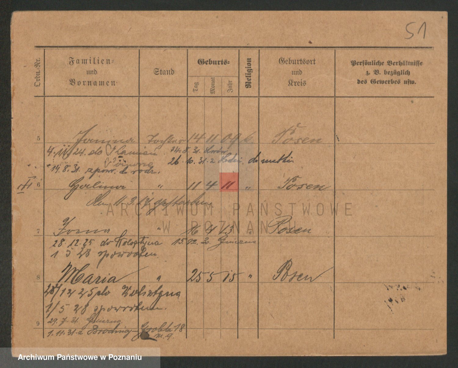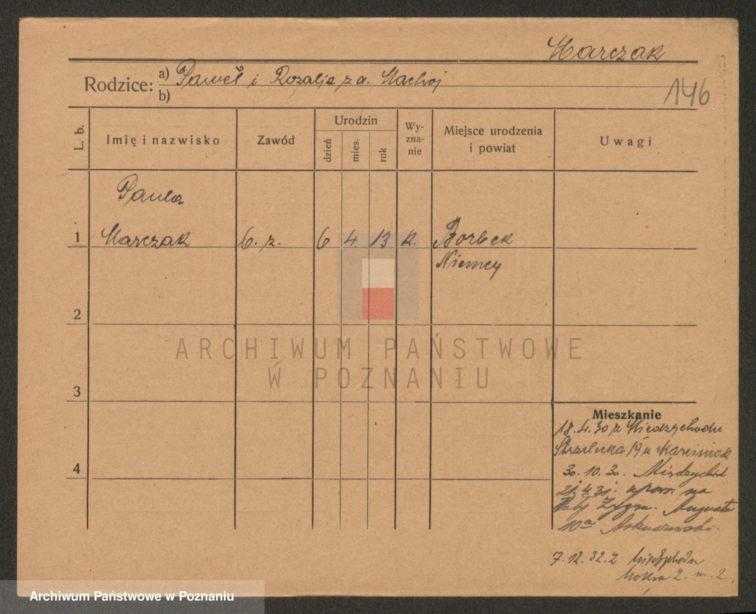 Podgląd karty osobowej dostępny jest po kliknięciu na nazwisko lub ikonkę karty. Można dokonywać powiększenia (ikony na górze) lub przechodzić między kolejnymi skanami (strzałki po bokach).