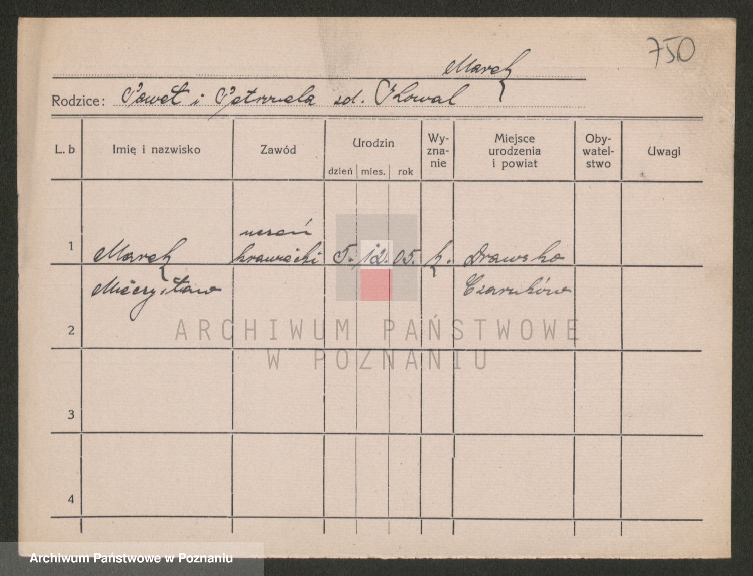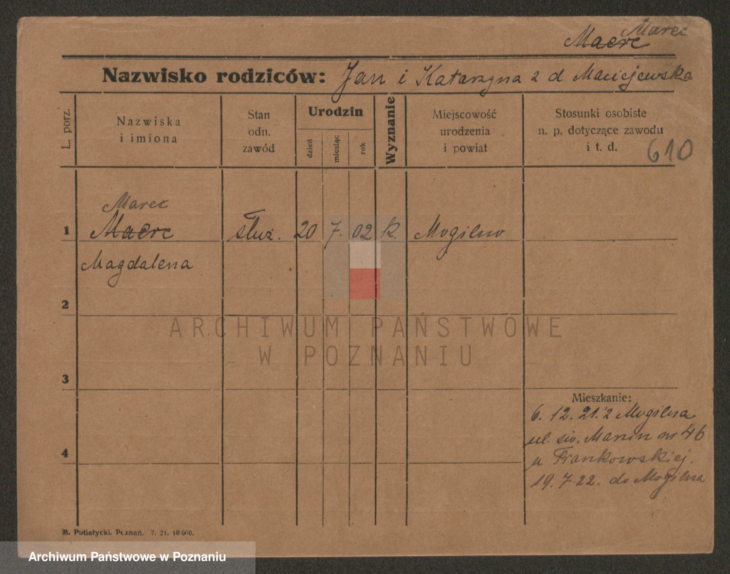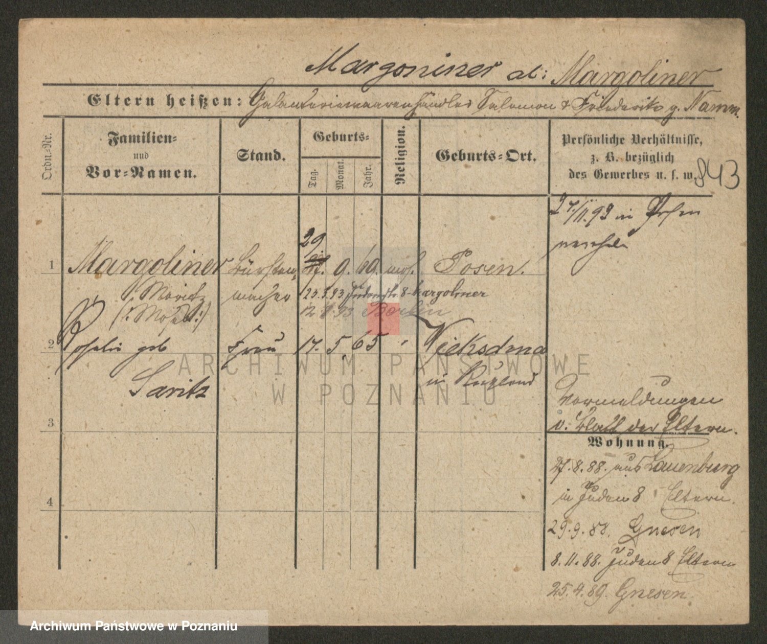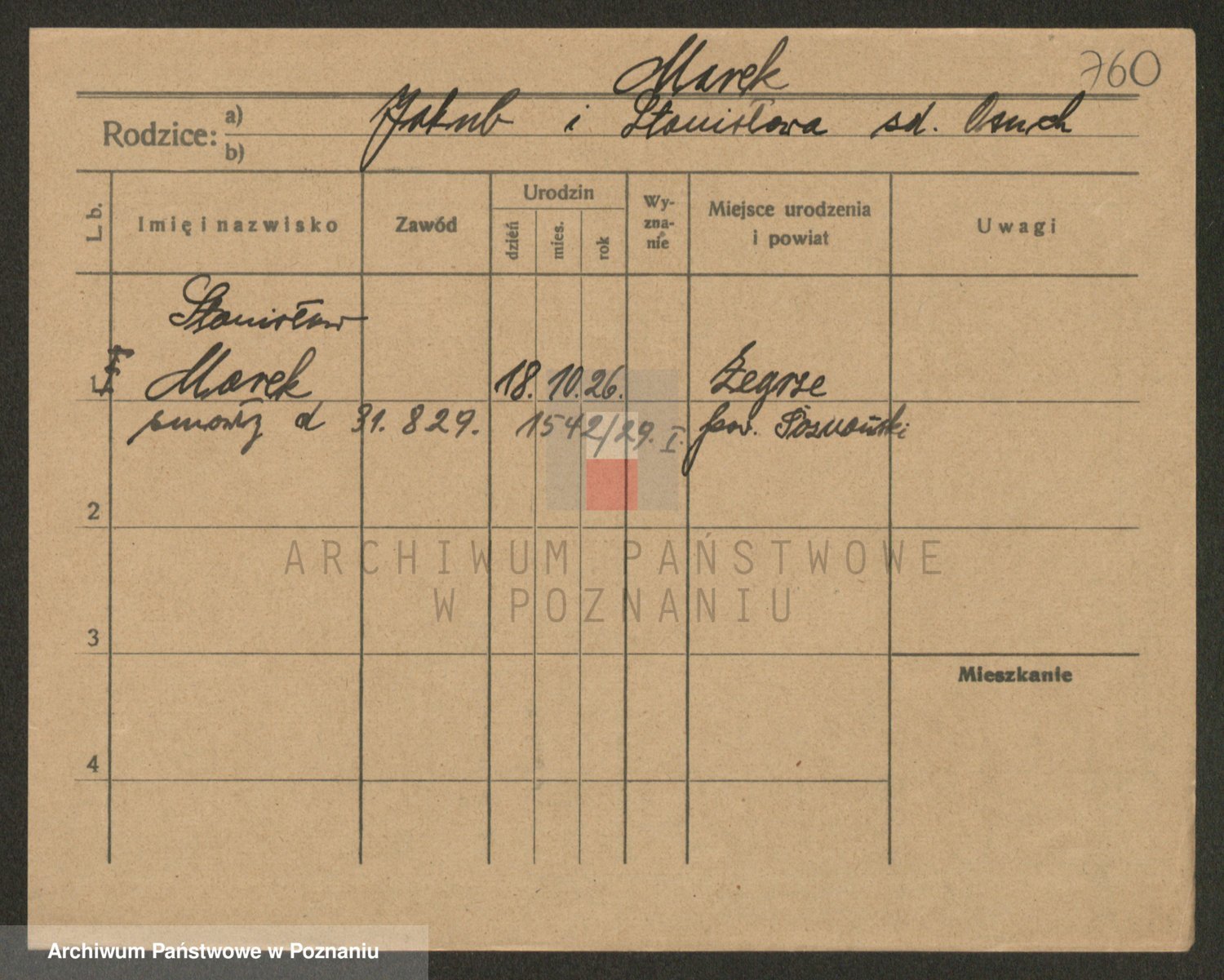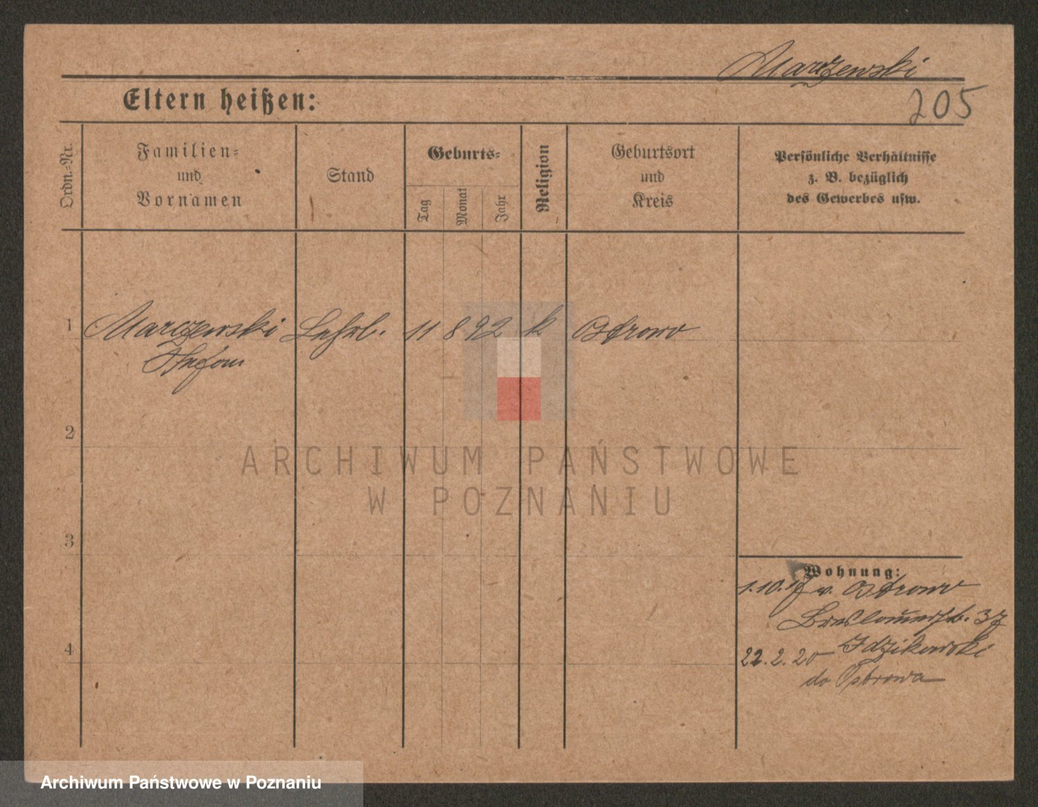 Podgląd karty osobowej dostępny jest po kliknięciu na nazwisko lub ikonkę karty. Można dokonywać powiększenia (ikony na górze) lub przechodzić między kolejnymi skanami (strzałki po bokach).
