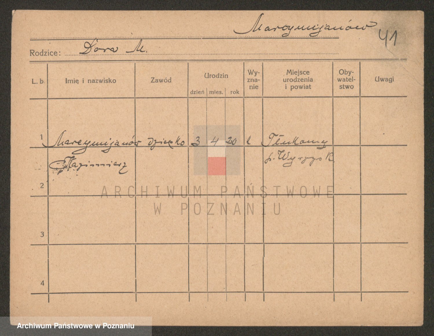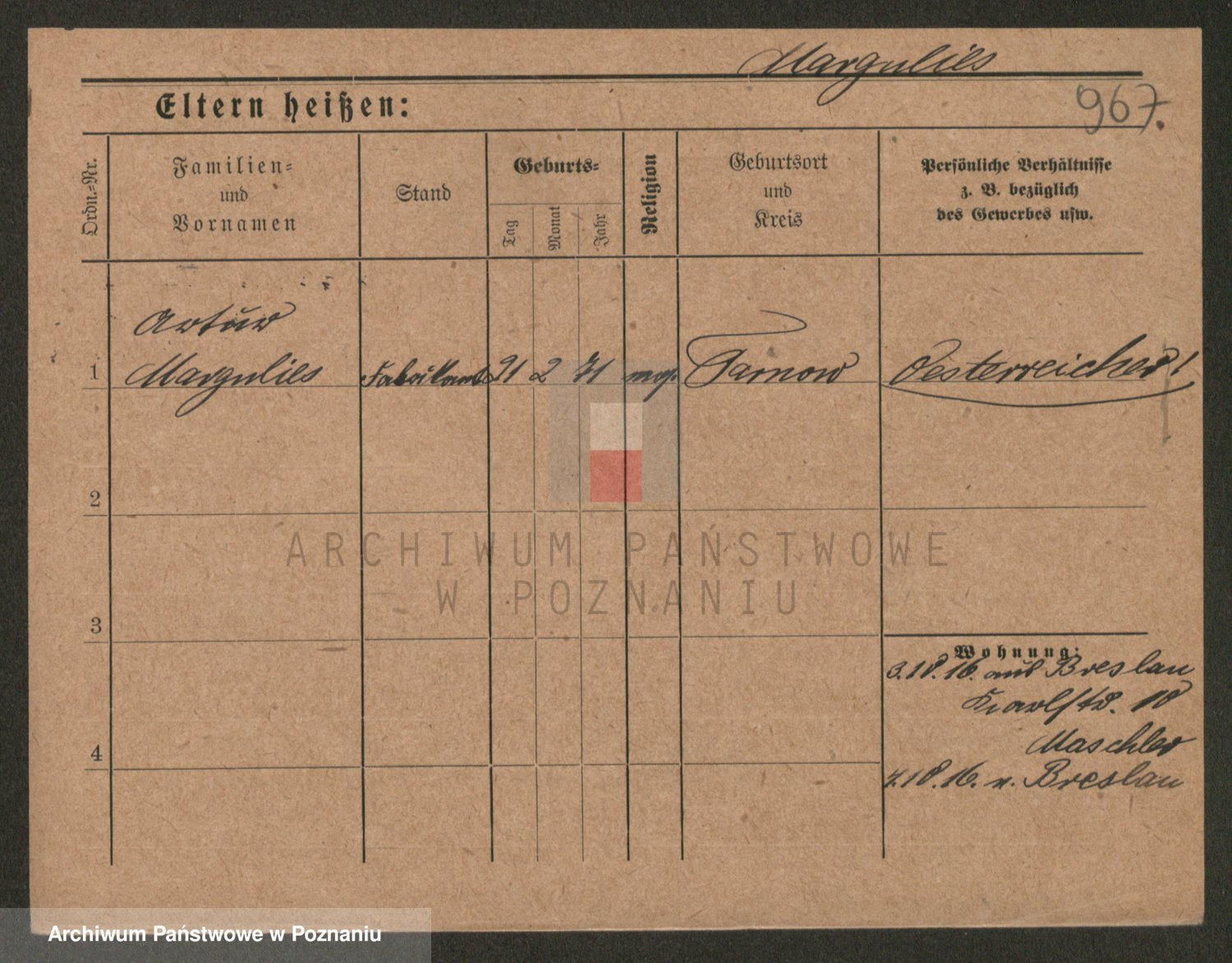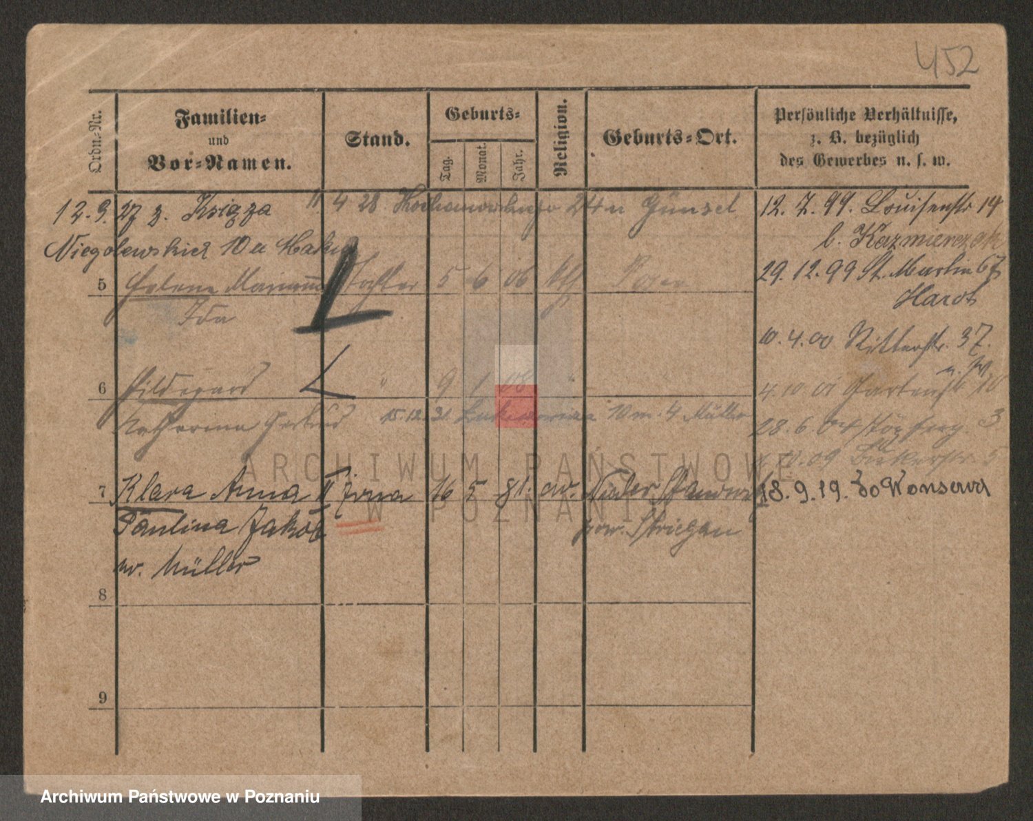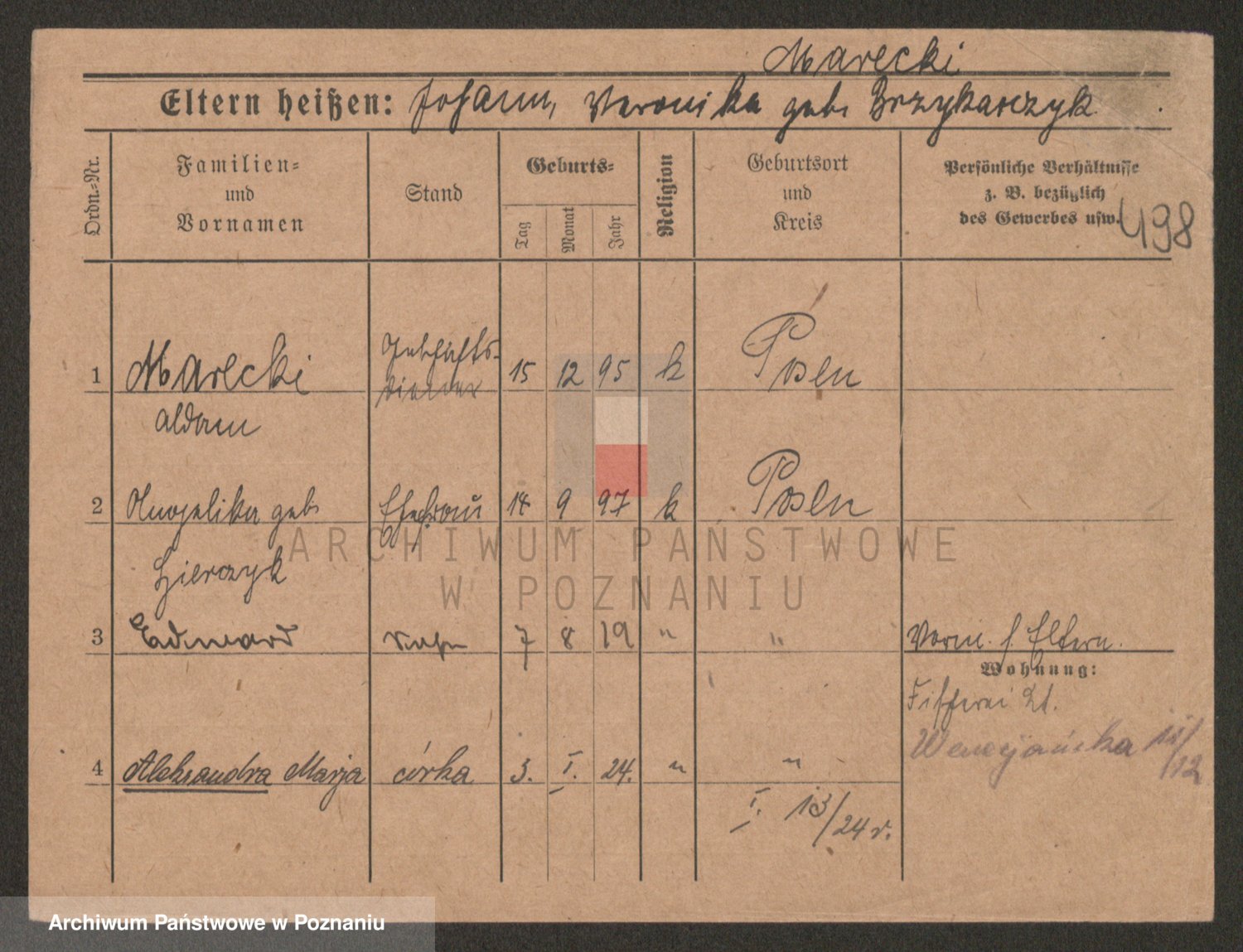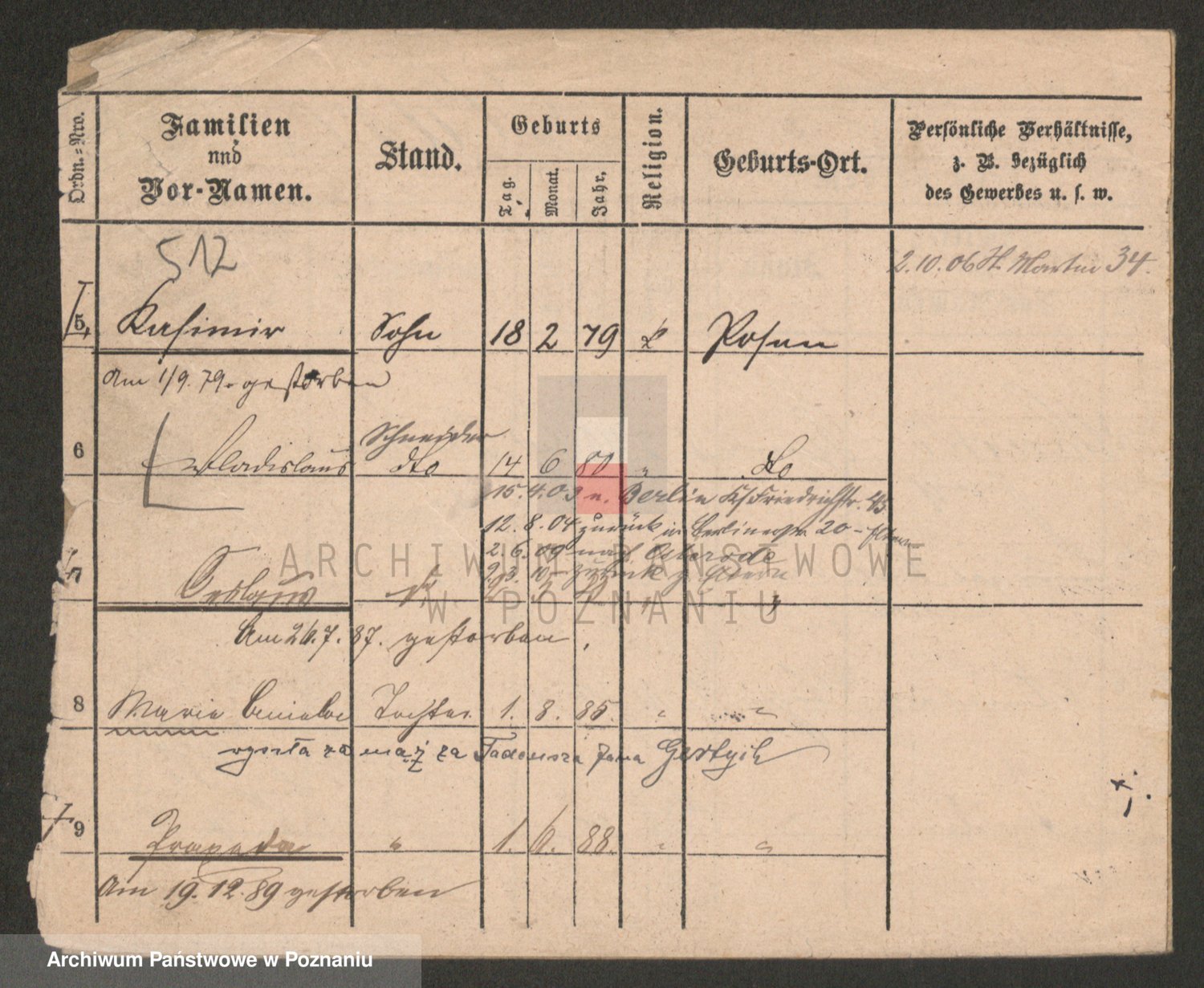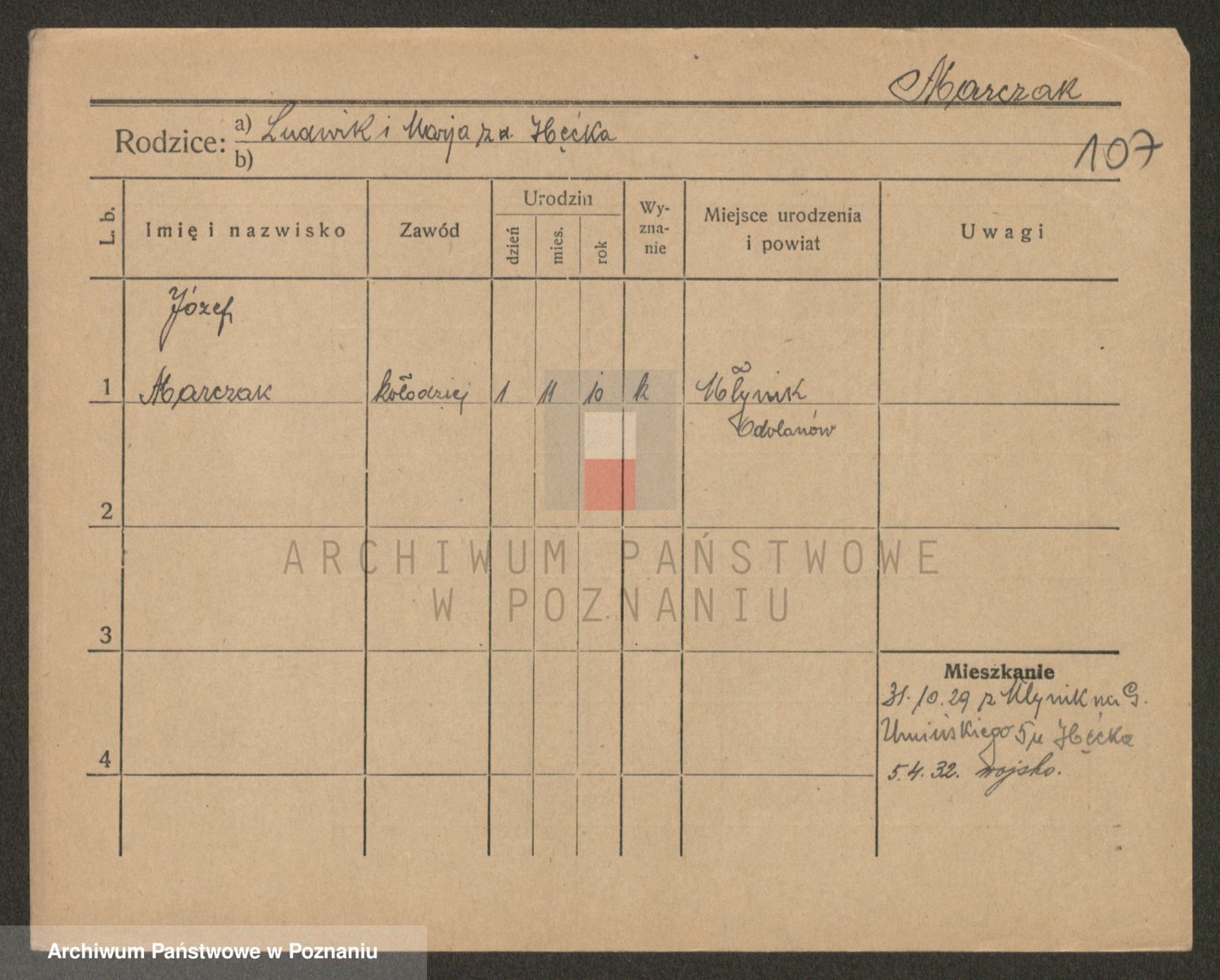 Podgląd karty osobowej dostępny jest po kliknięciu na nazwisko lub ikonkę karty. Można dokonywać powiększenia (ikony na górze) lub przechodzić między kolejnymi skanami (strzałki po bokach).