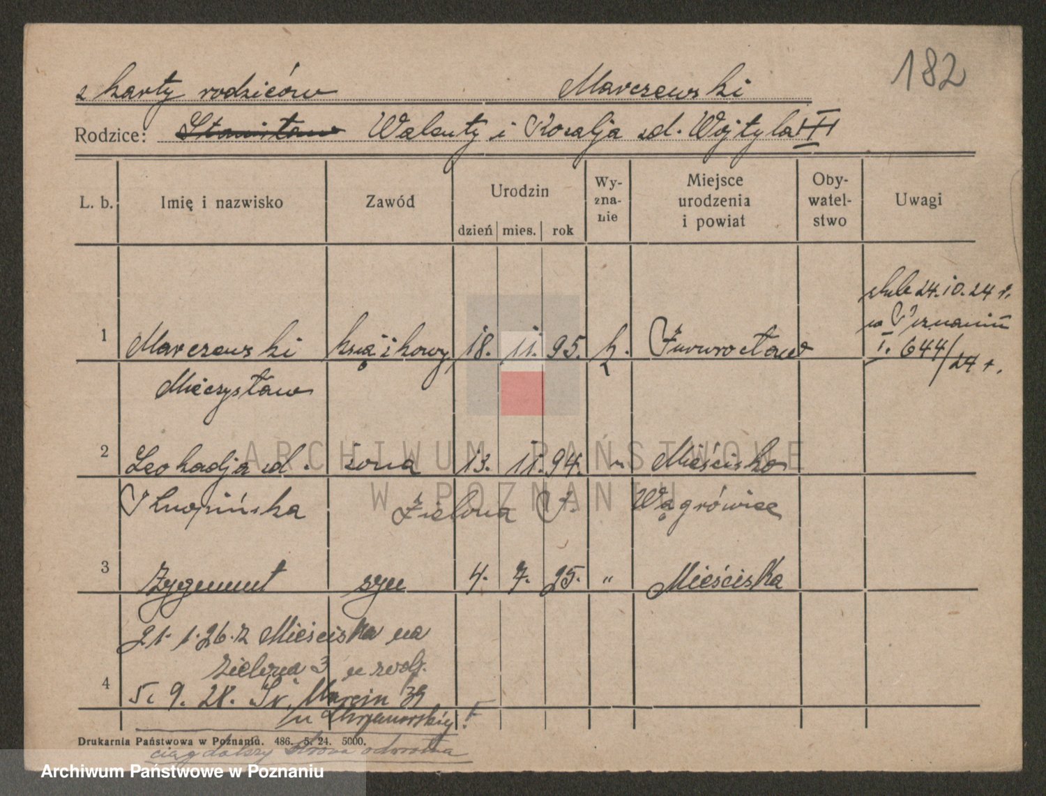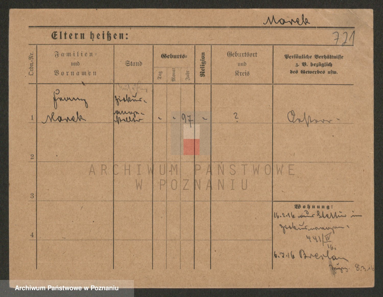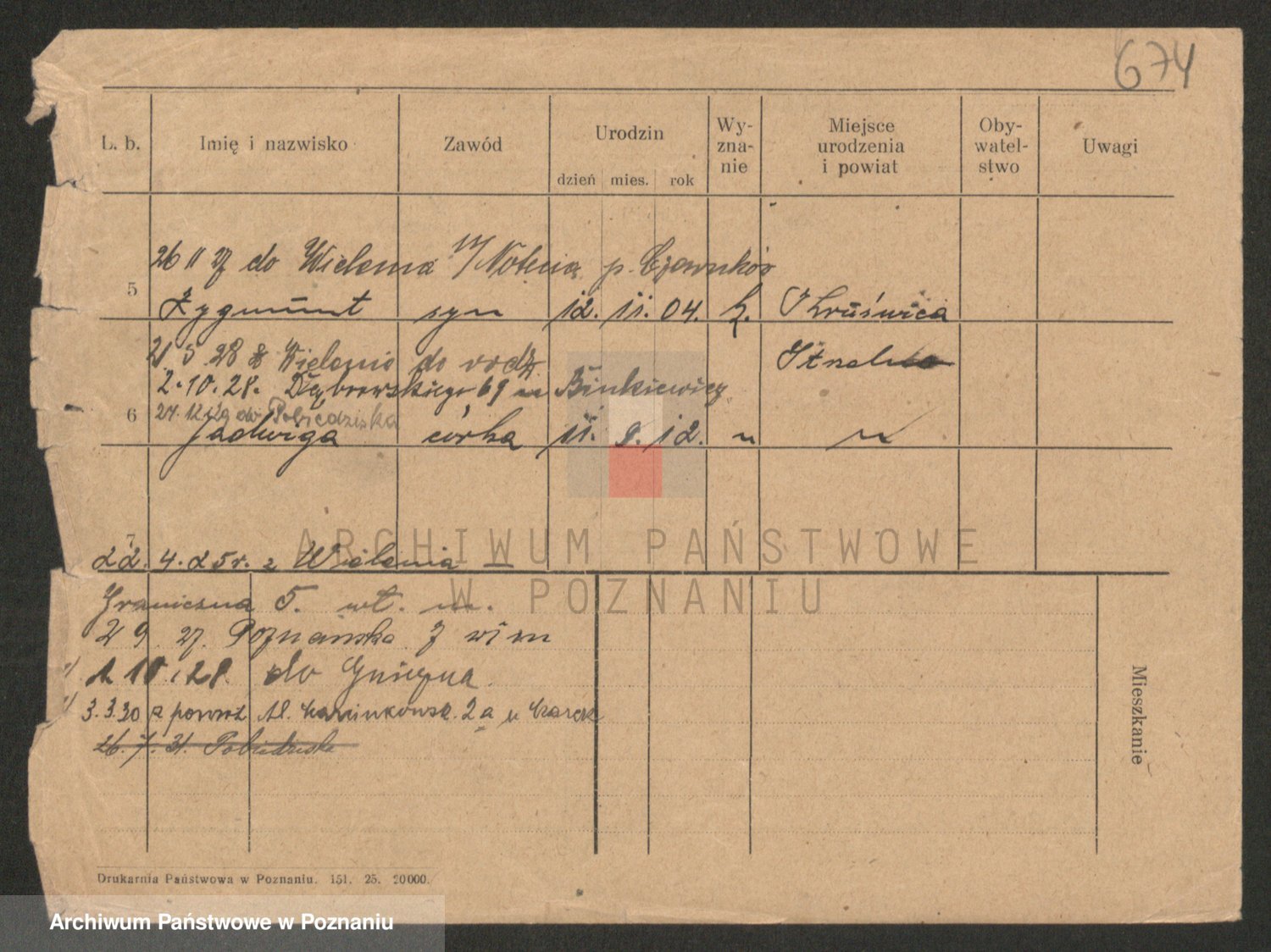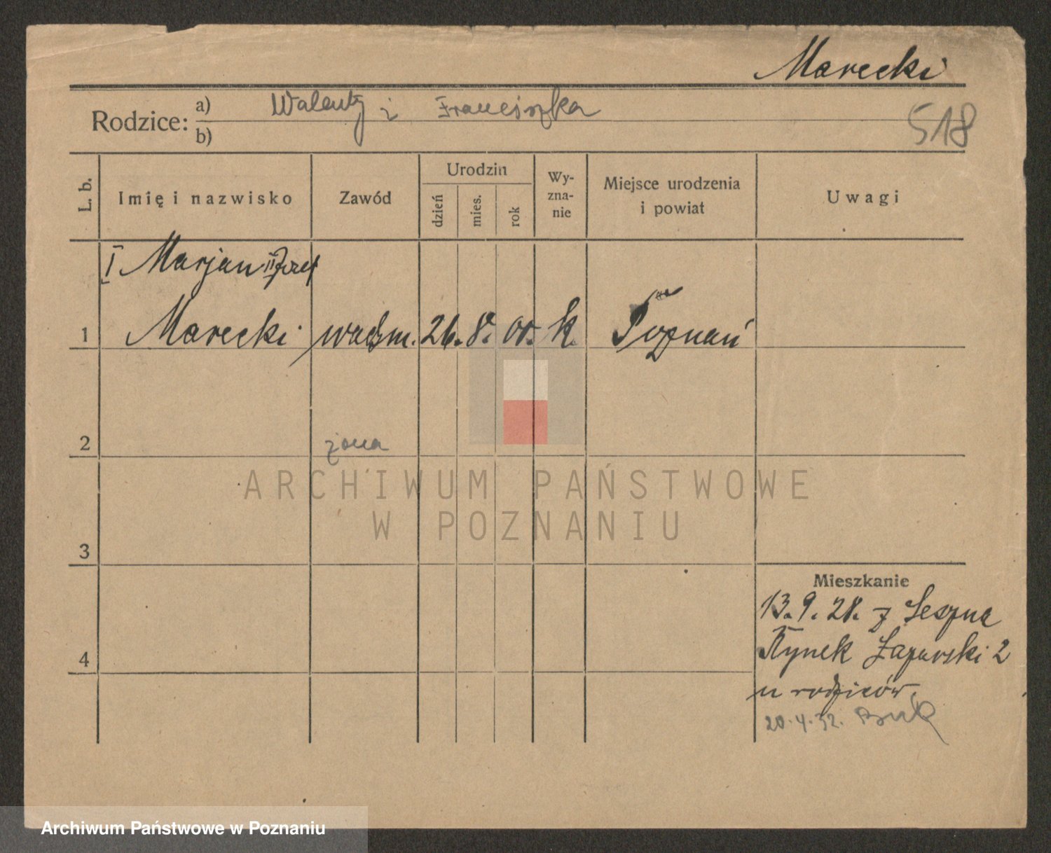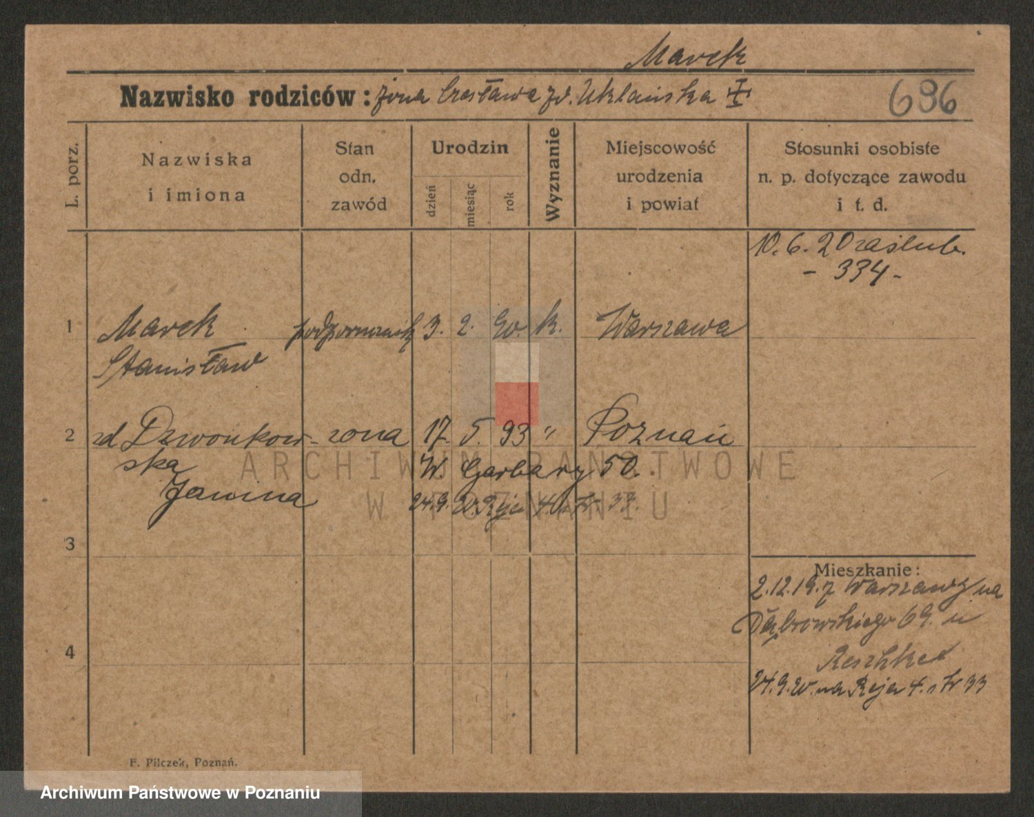 Podgląd karty osobowej dostępny jest po kliknięciu na nazwisko lub ikonkę karty. Można dokonywać powiększenia (ikony na górze) lub przechodzić między kolejnymi skanami (strzałki po bokach).