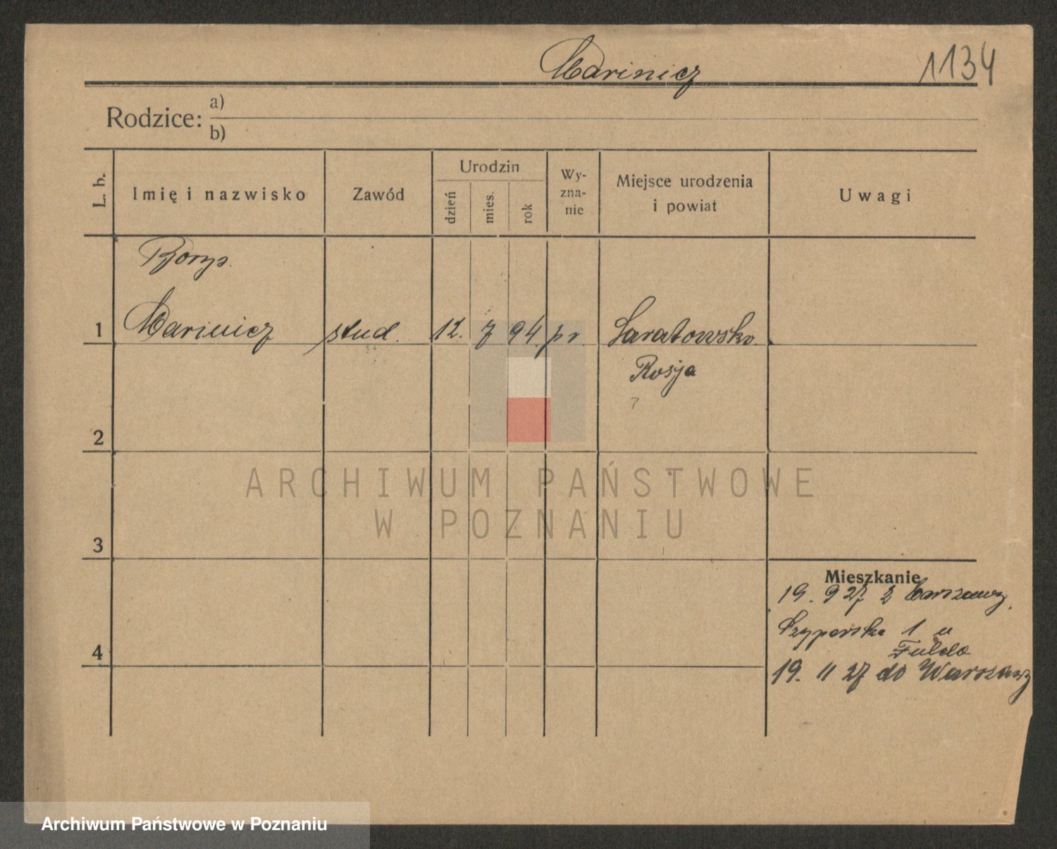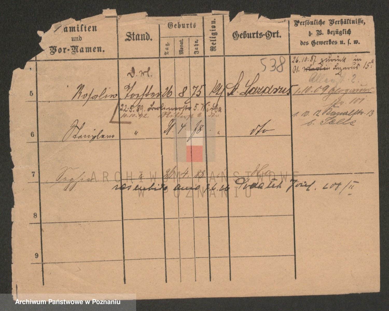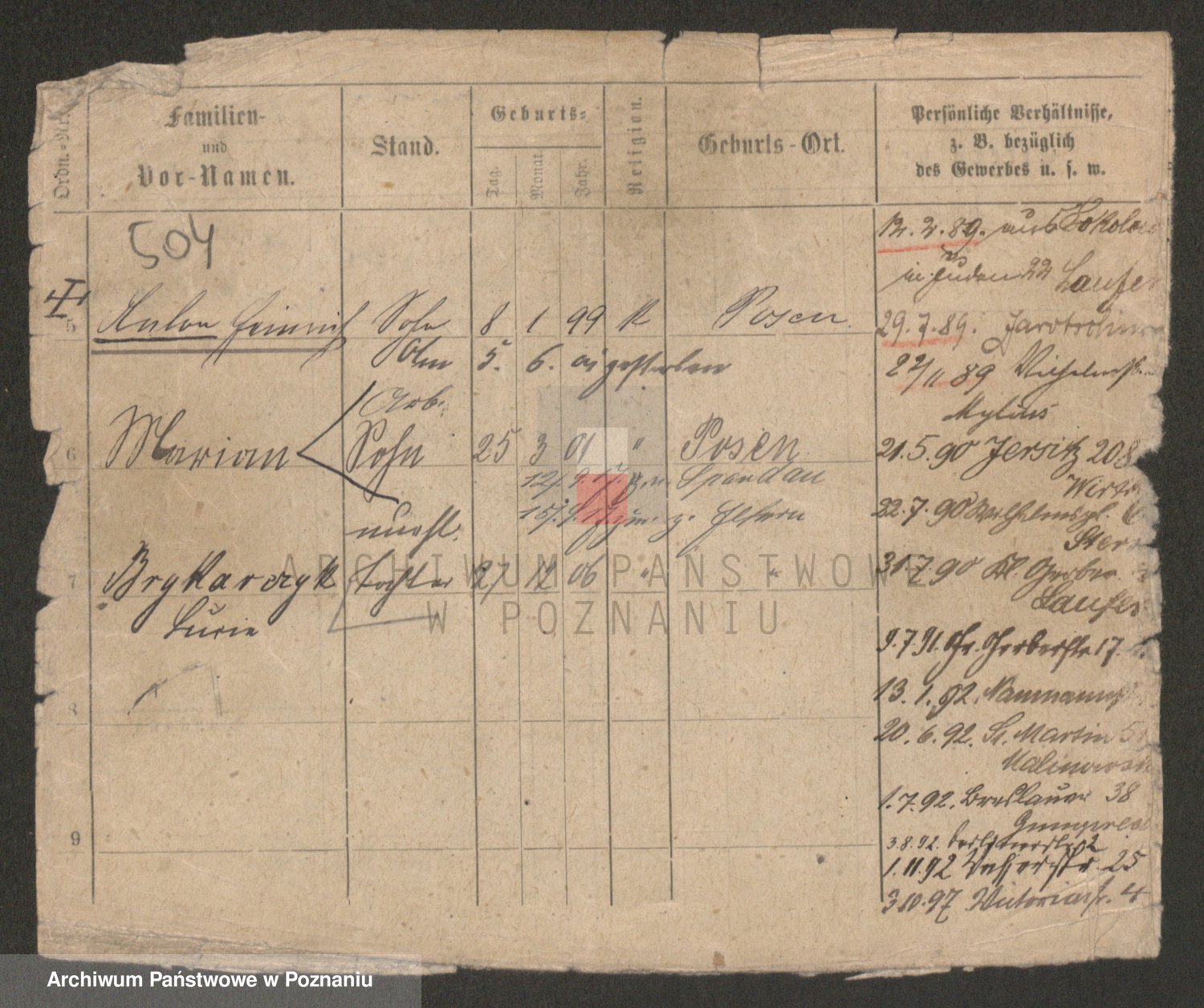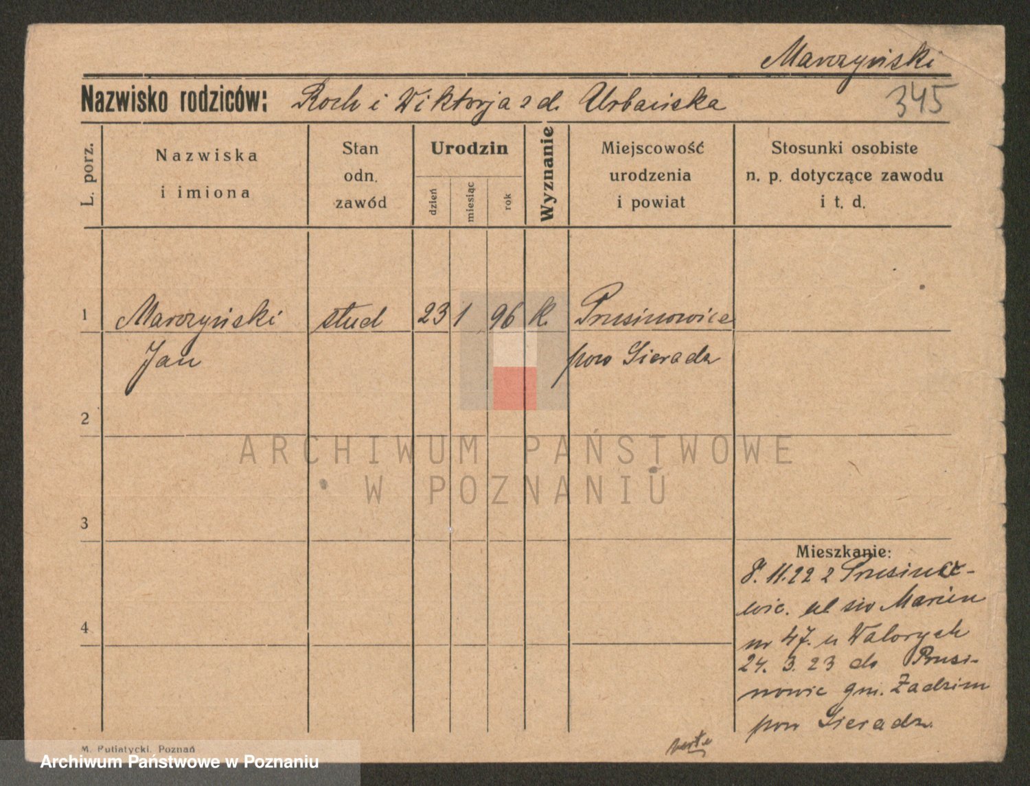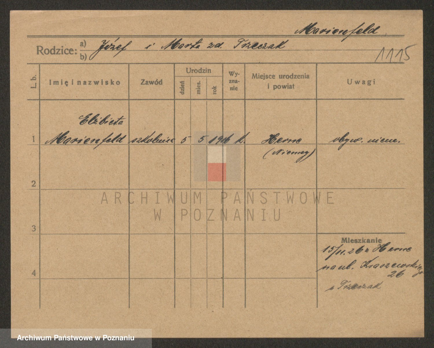 Podgląd karty osobowej dostępny jest po kliknięciu na nazwisko lub ikonkę karty. Można dokonywać powiększenia (ikony na górze) lub przechodzić między kolejnymi skanami (strzałki po bokach).
