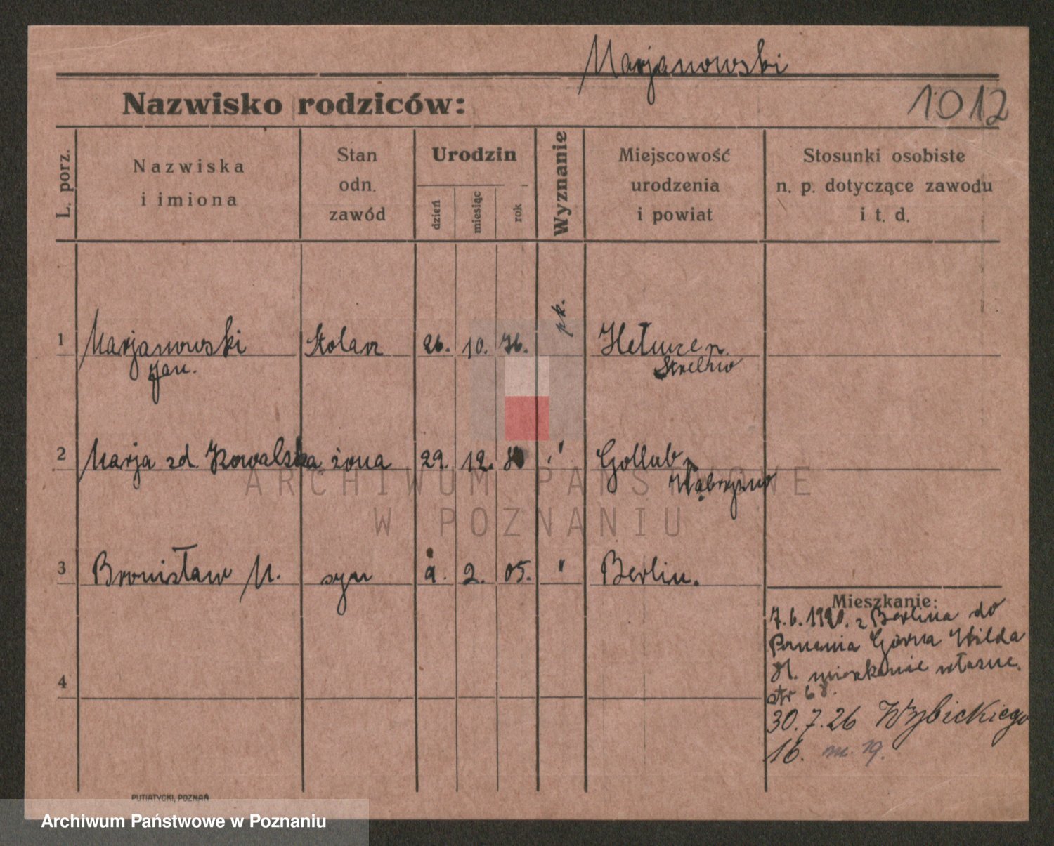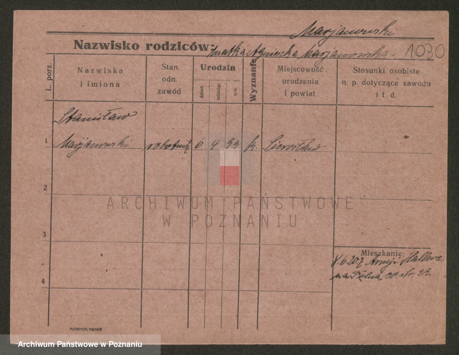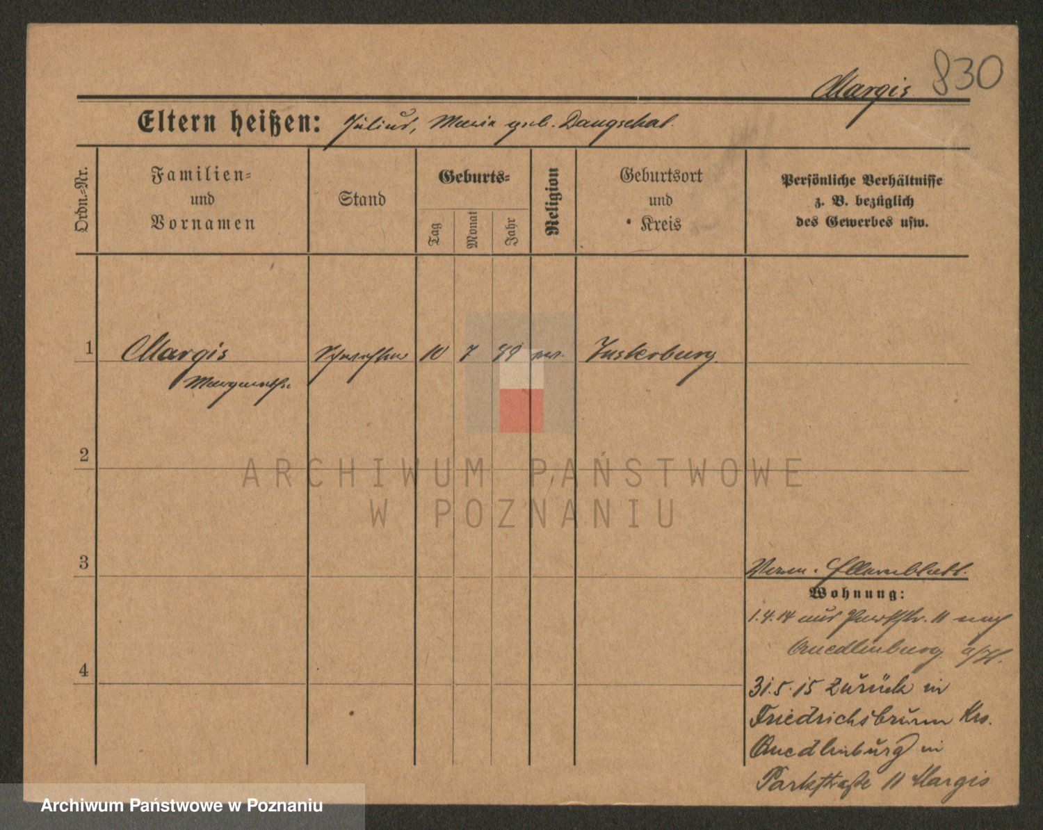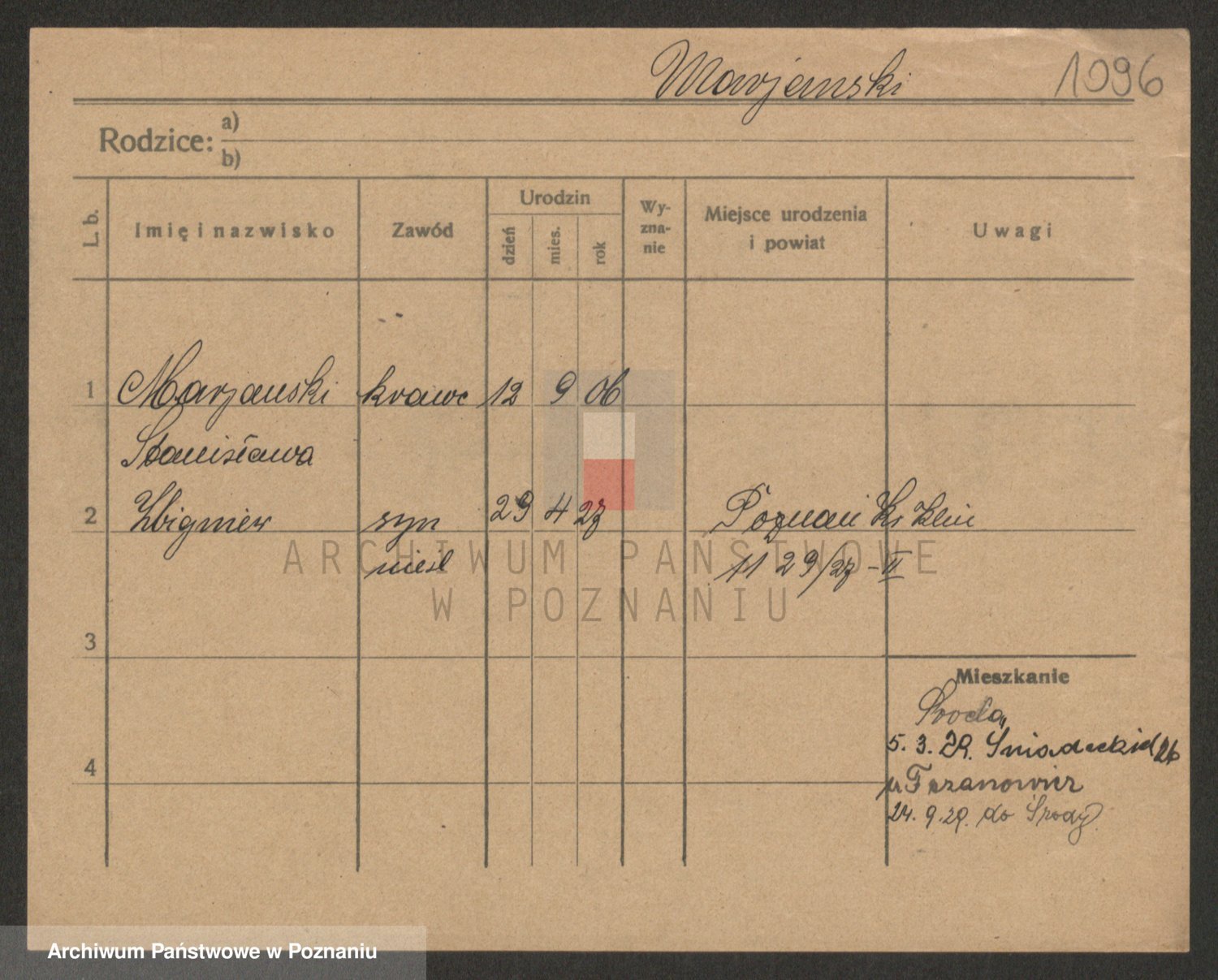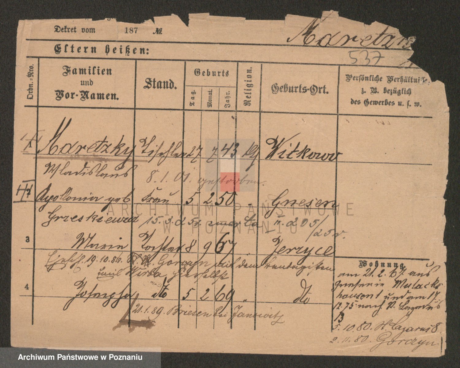 Podgląd karty osobowej dostępny jest po kliknięciu na nazwisko lub ikonkę karty. Można dokonywać powiększenia (ikony na górze) lub przechodzić między kolejnymi skanami (strzałki po bokach).