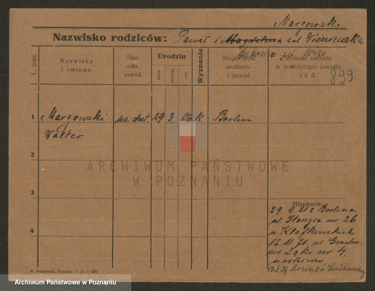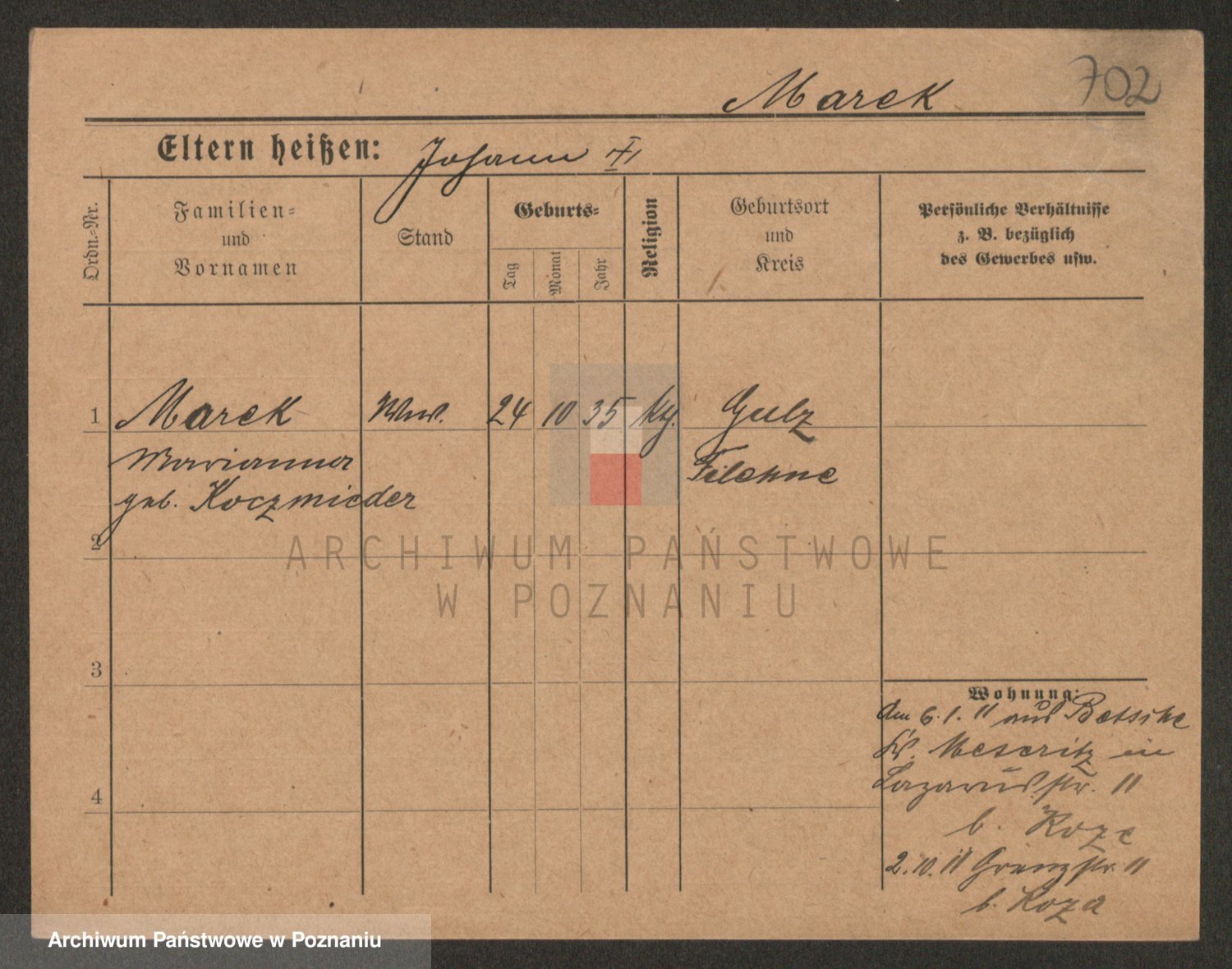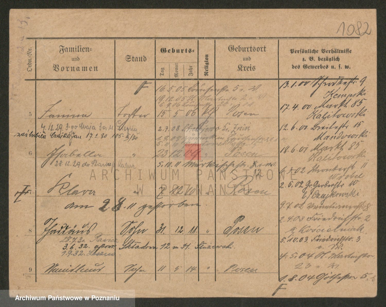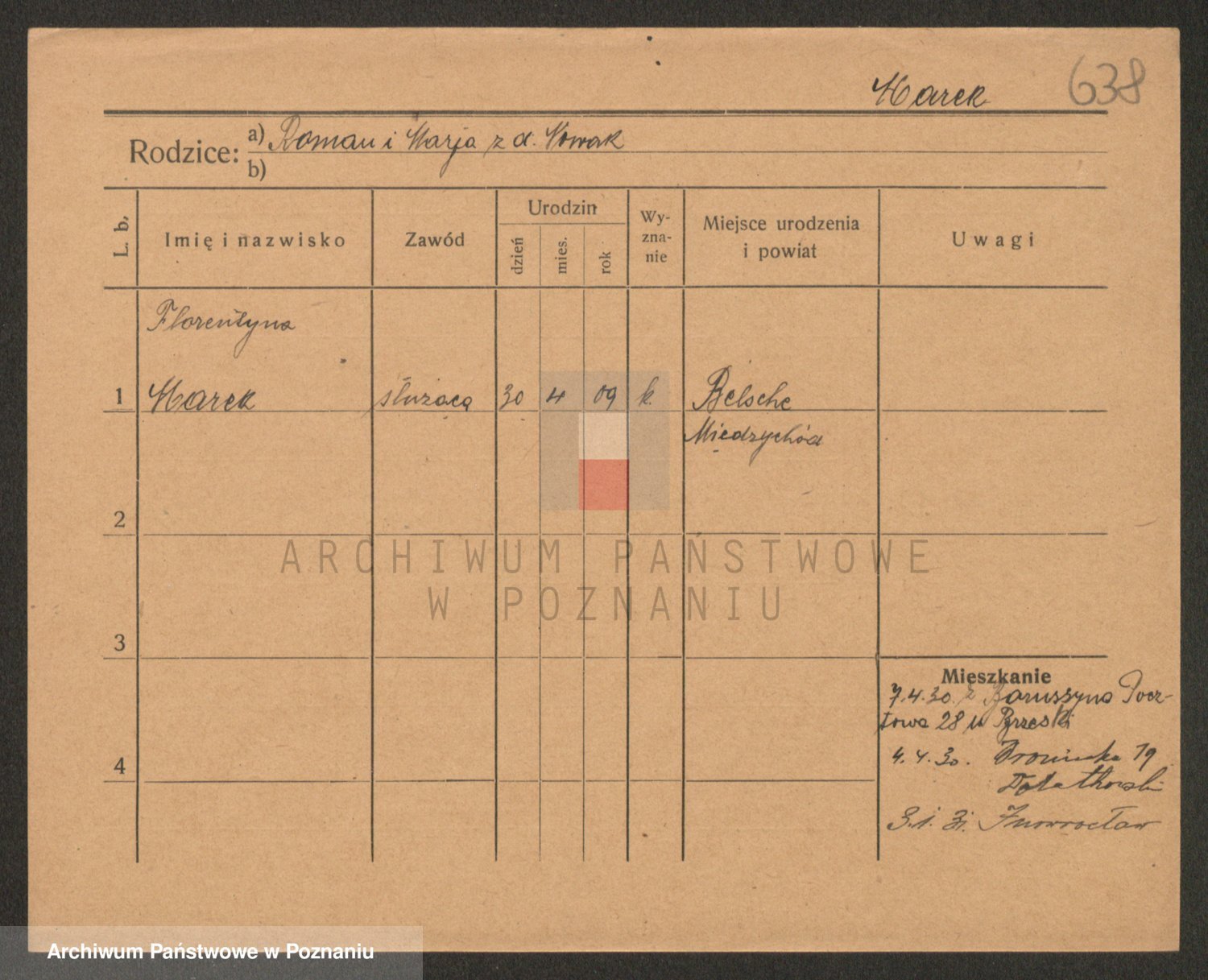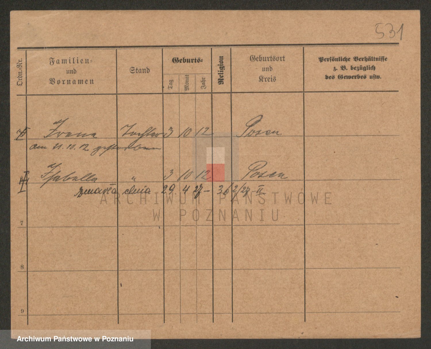 Podgląd karty osobowej dostępny jest po kliknięciu na nazwisko lub ikonkę karty. Można dokonywać powiększenia (ikony na górze) lub przechodzić między kolejnymi skanami (strzałki po bokach).