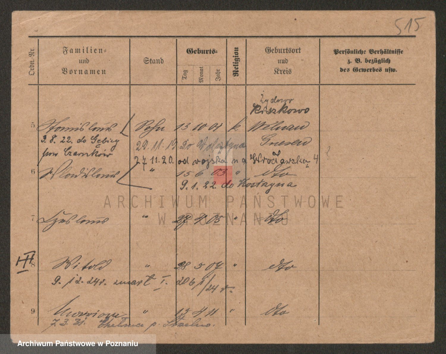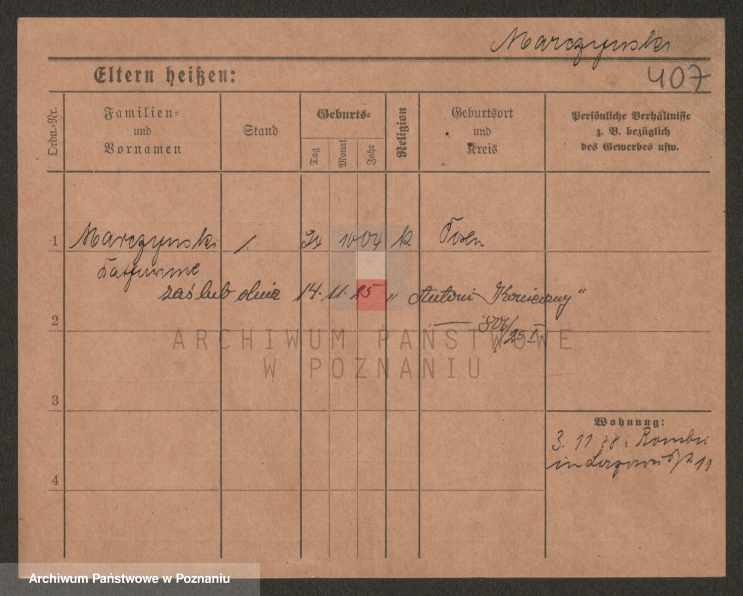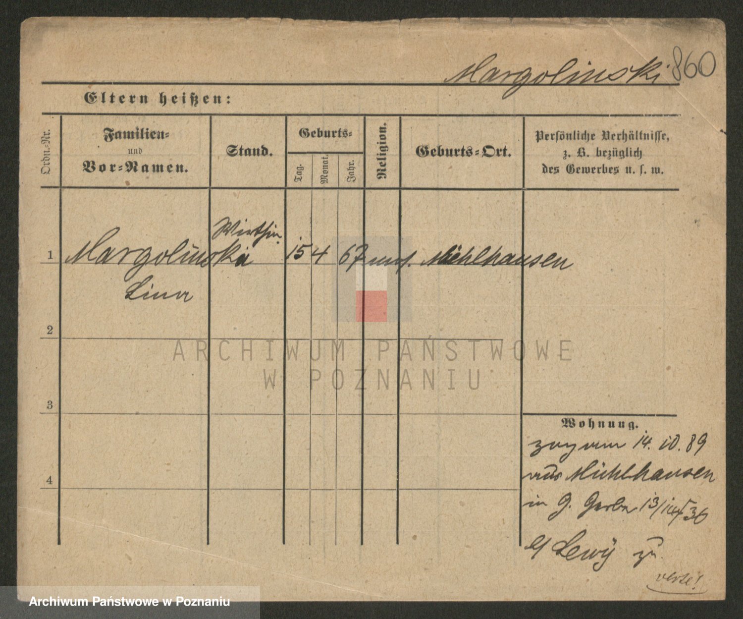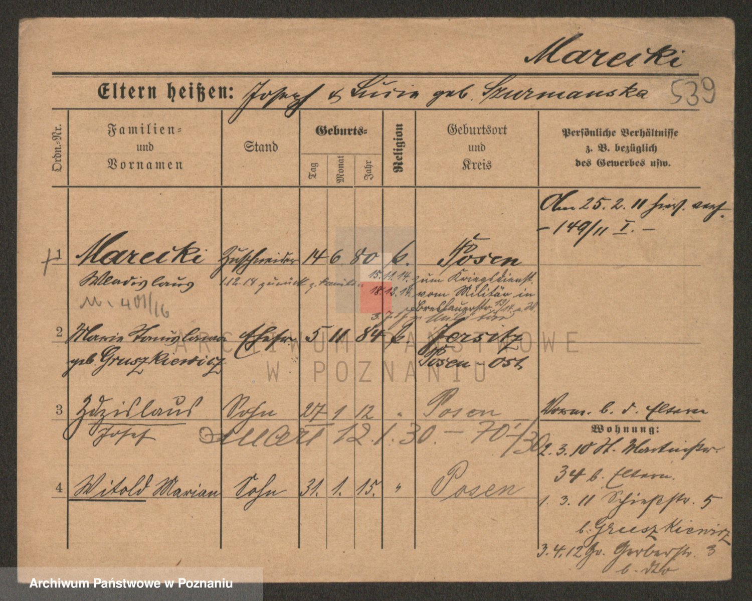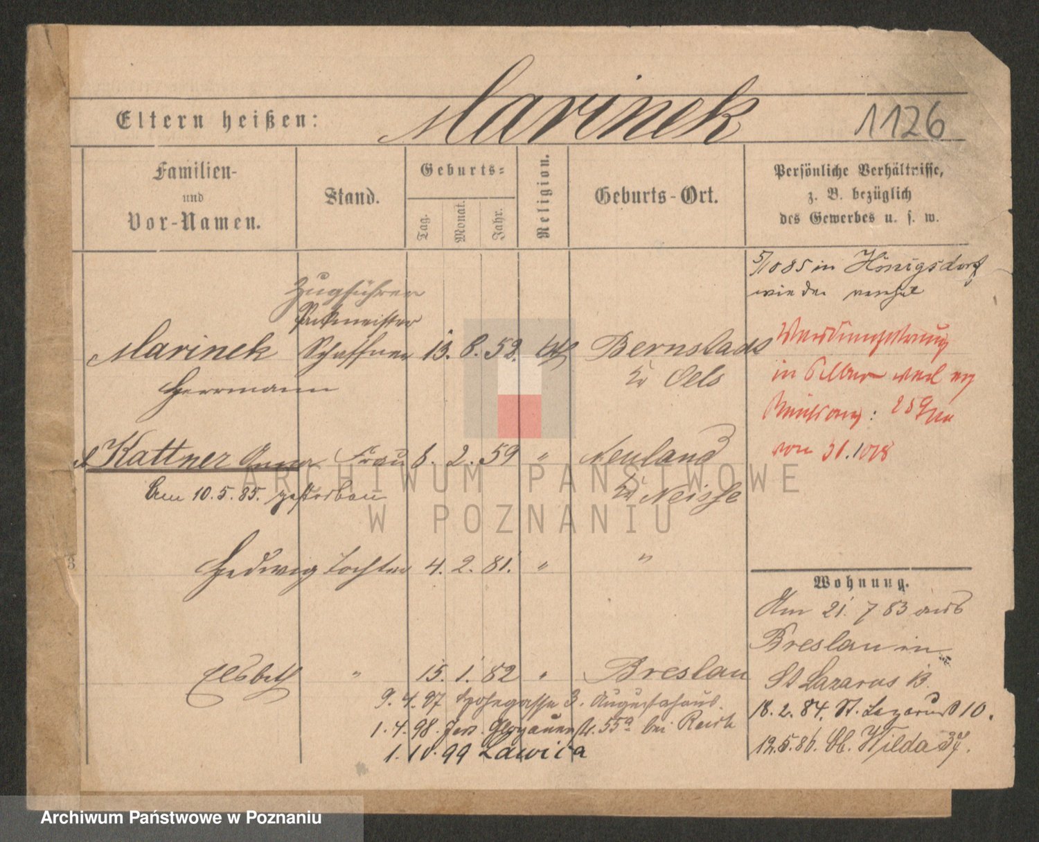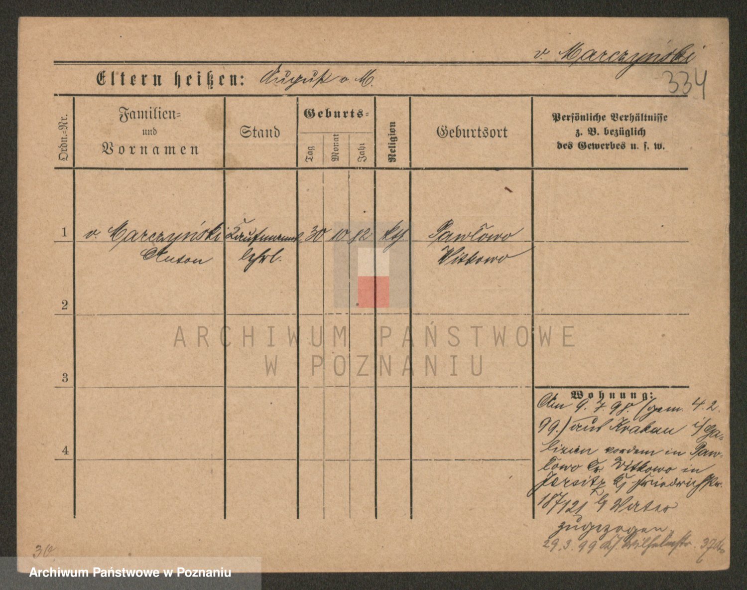Podgląd karty osobowej dostępny jest po kliknięciu na nazwisko lub ikonkę karty. Można dokonywać powiększenia (ikony na górze) lub przechodzić między kolejnymi skanami (strzałki po bokach).