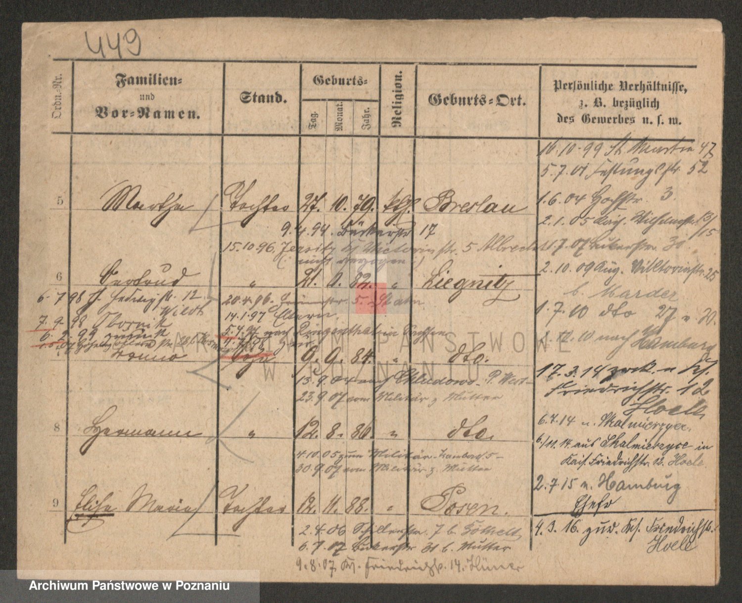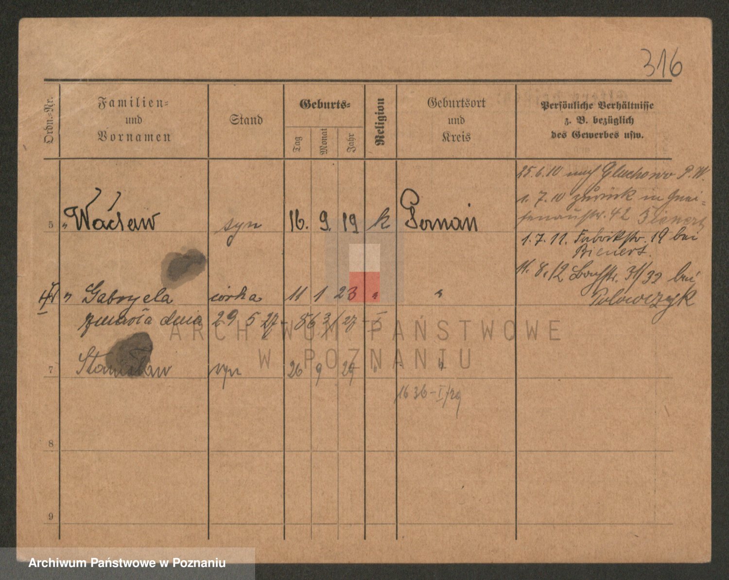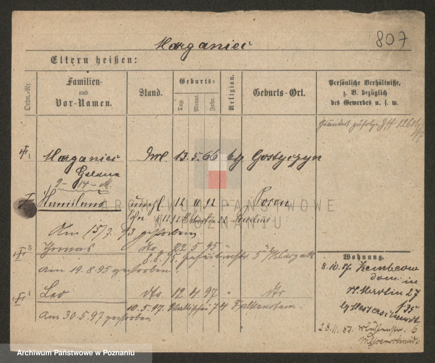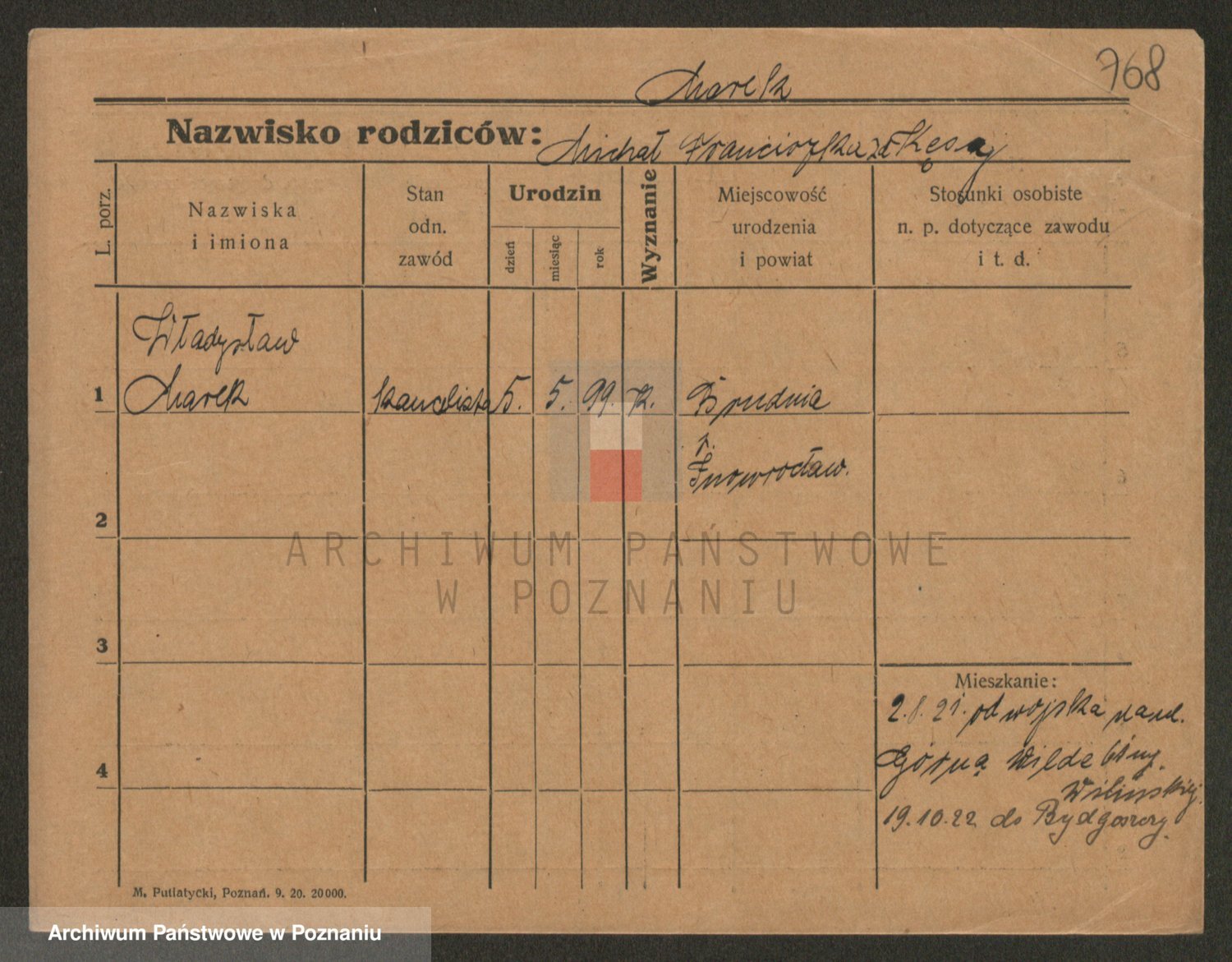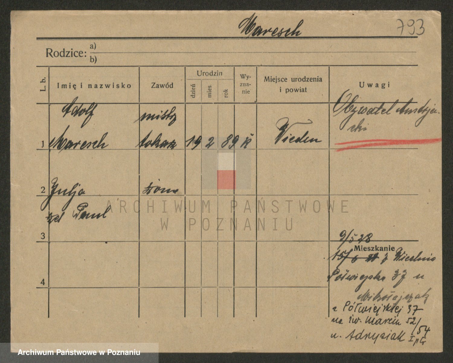 Podgląd karty osobowej dostępny jest po kliknięciu na nazwisko lub ikonkę karty. Można dokonywać powiększenia (ikony na górze) lub przechodzić między kolejnymi skanami (strzałki po bokach).