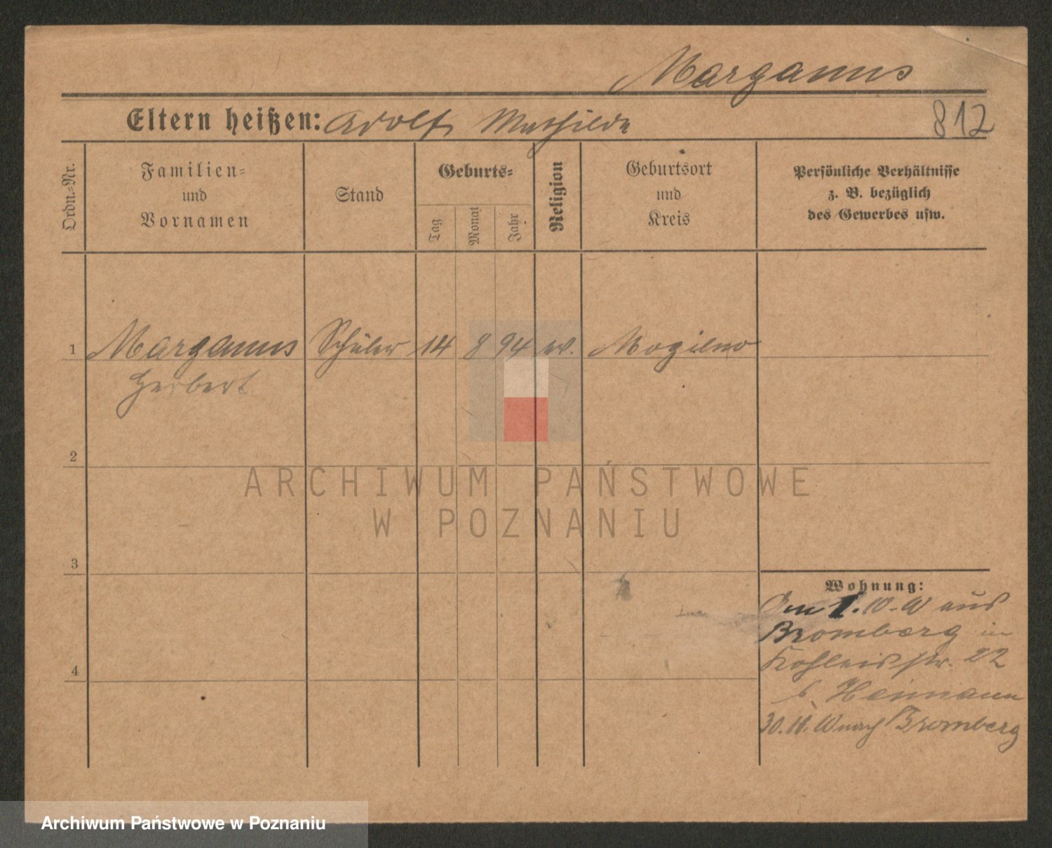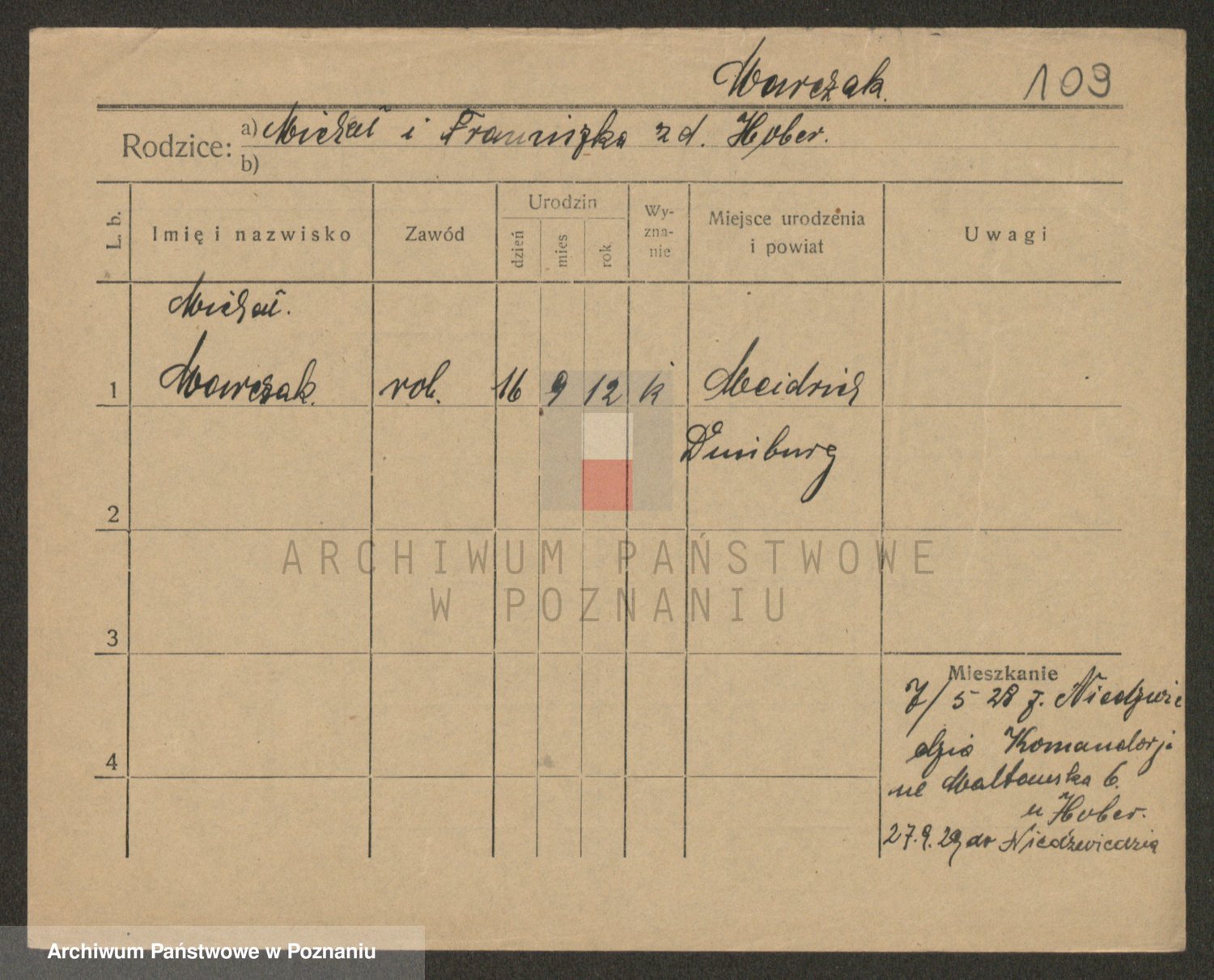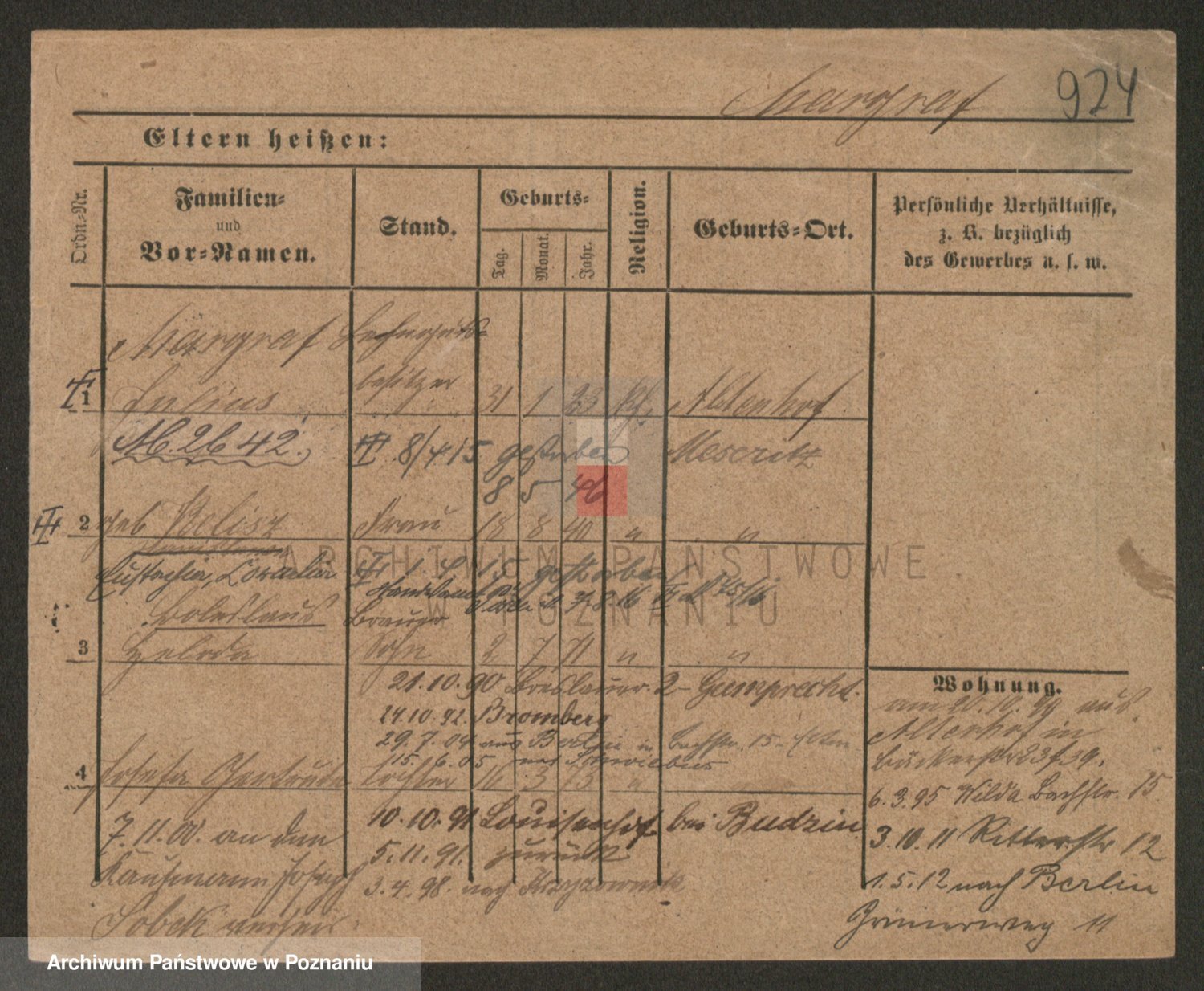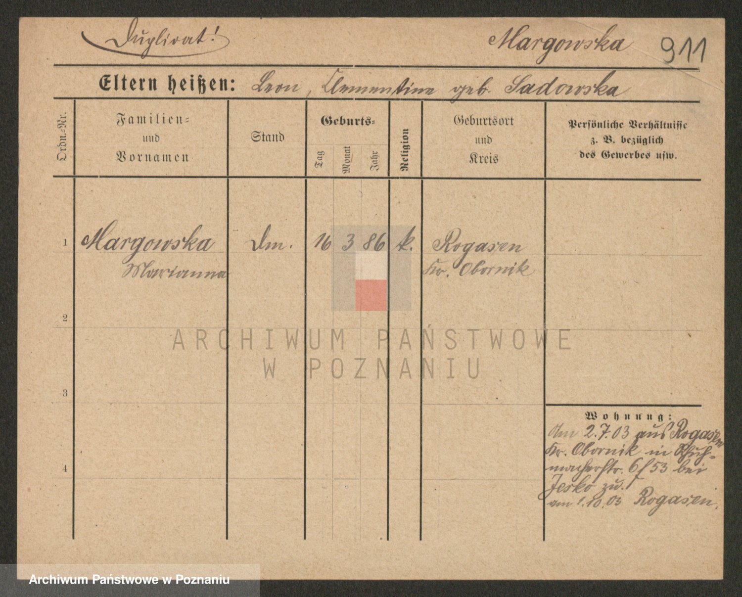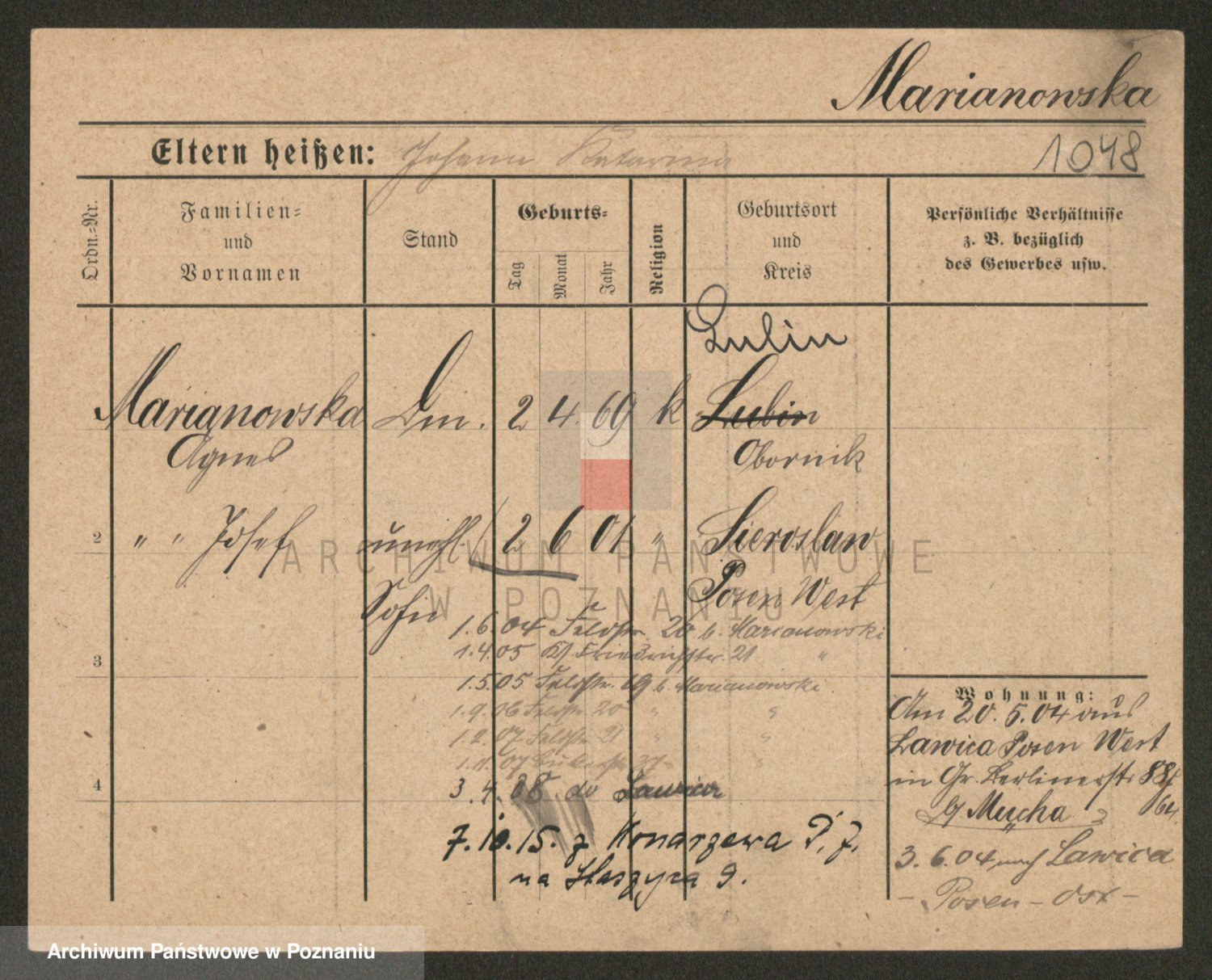 Podgląd karty osobowej dostępny jest po kliknięciu na nazwisko lub ikonkę karty. Można dokonywać powiększenia (ikony na górze) lub przechodzić między kolejnymi skanami (strzałki po bokach).