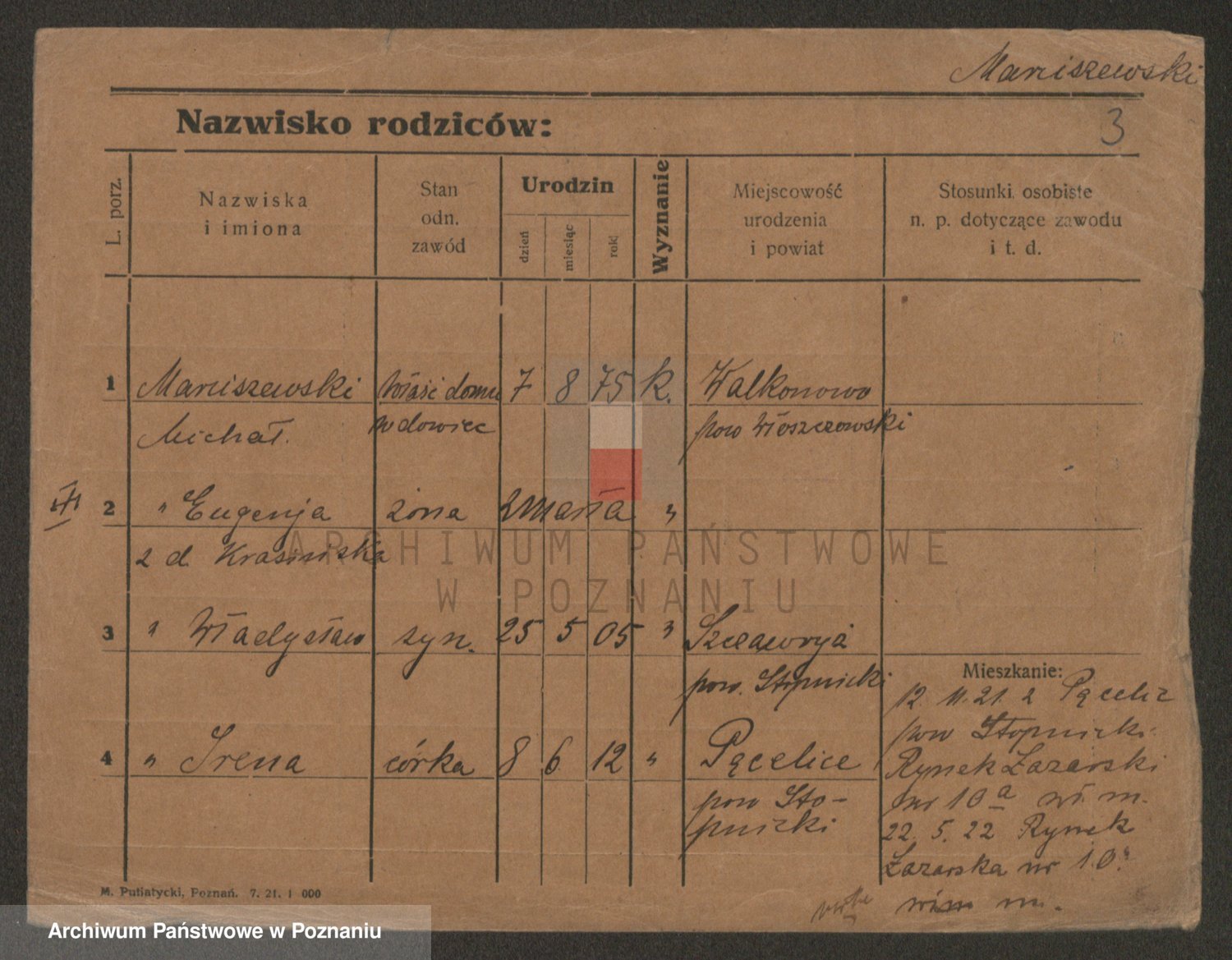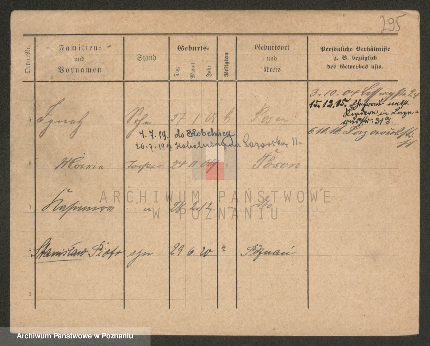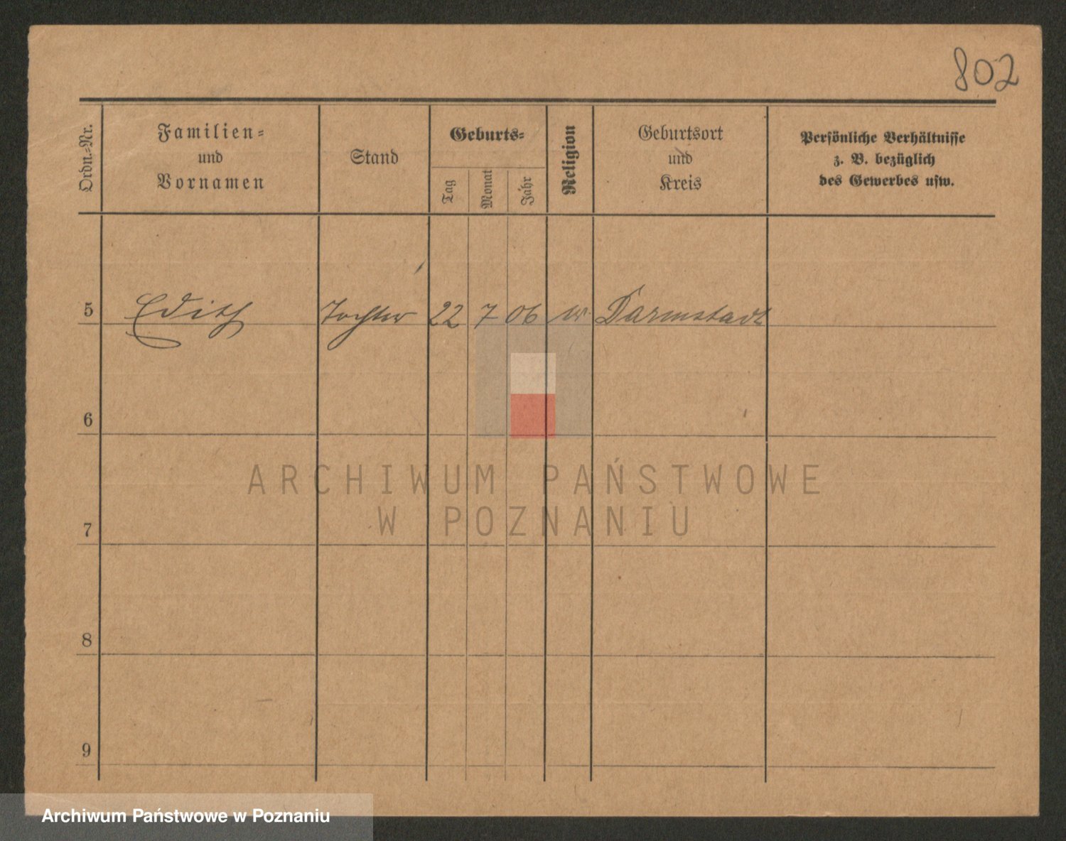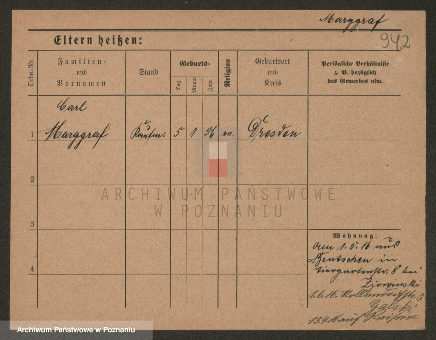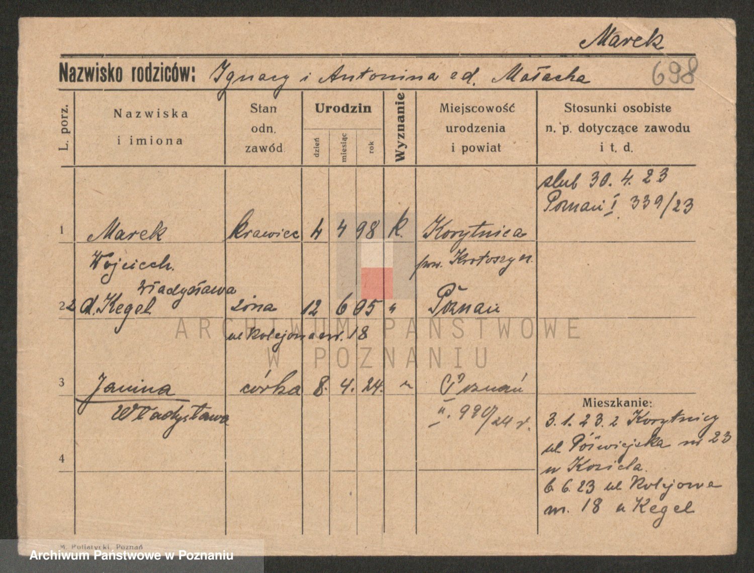 Podgląd karty osobowej dostępny jest po kliknięciu na nazwisko lub ikonkę karty. Można dokonywać powiększenia (ikony na górze) lub przechodzić między kolejnymi skanami (strzałki po bokach).