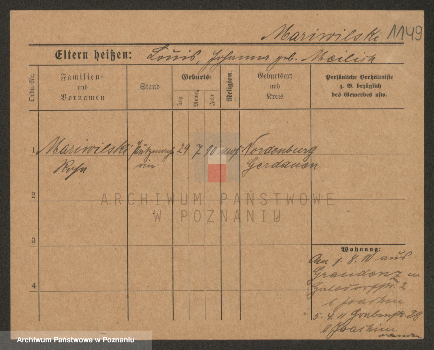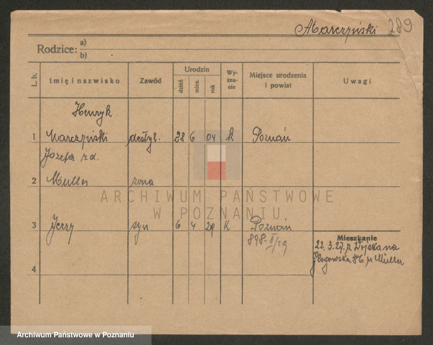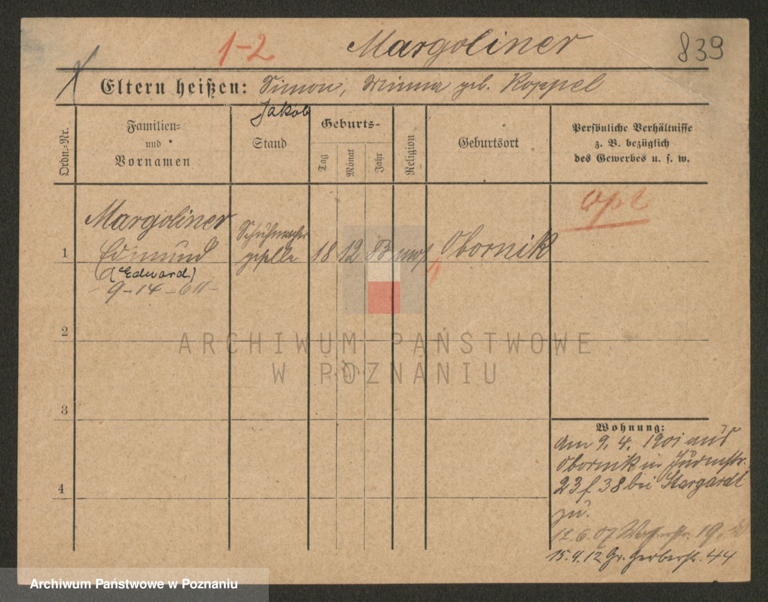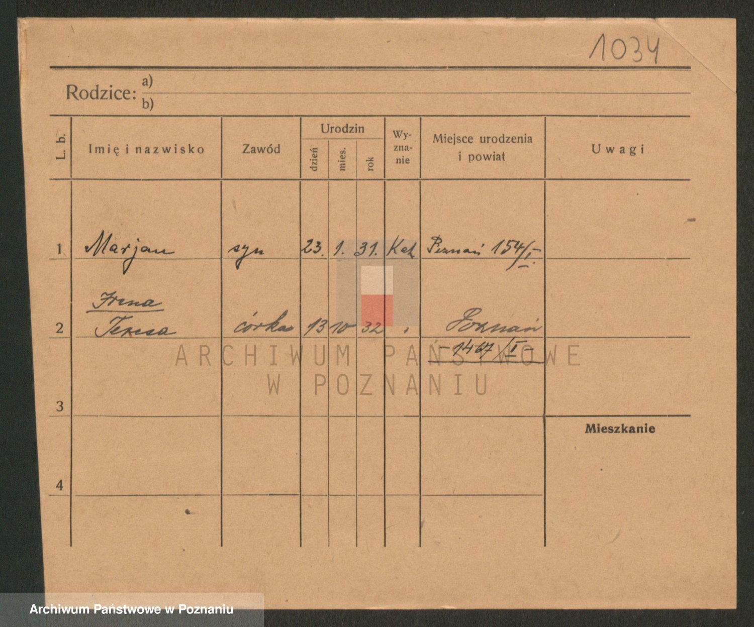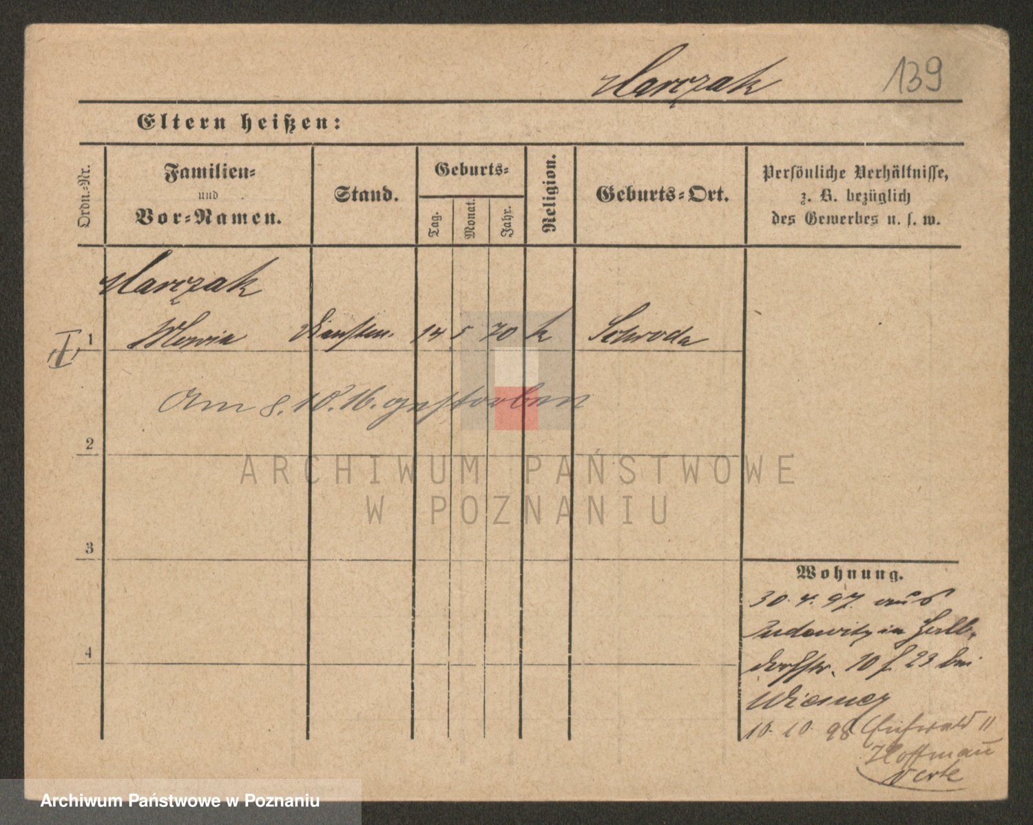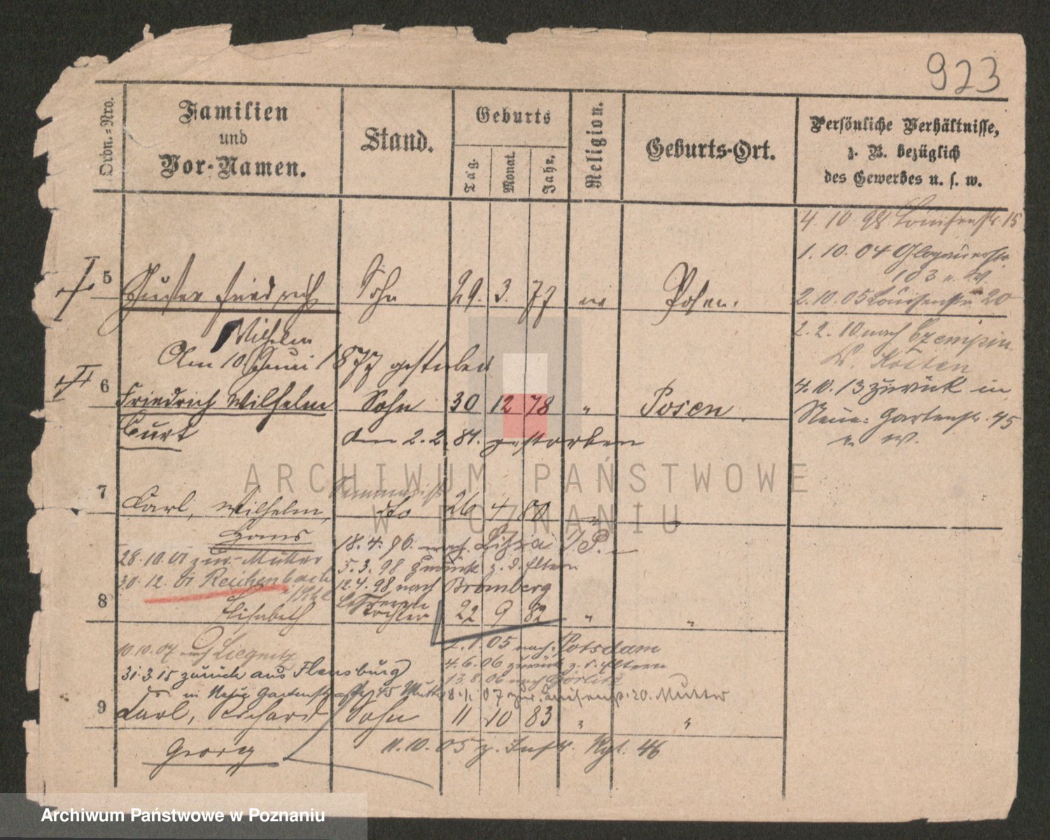 Podgląd karty osobowej dostępny jest po kliknięciu na nazwisko lub ikonkę karty. Można dokonywać powiększenia (ikony na górze) lub przechodzić między kolejnymi skanami (strzałki po bokach).