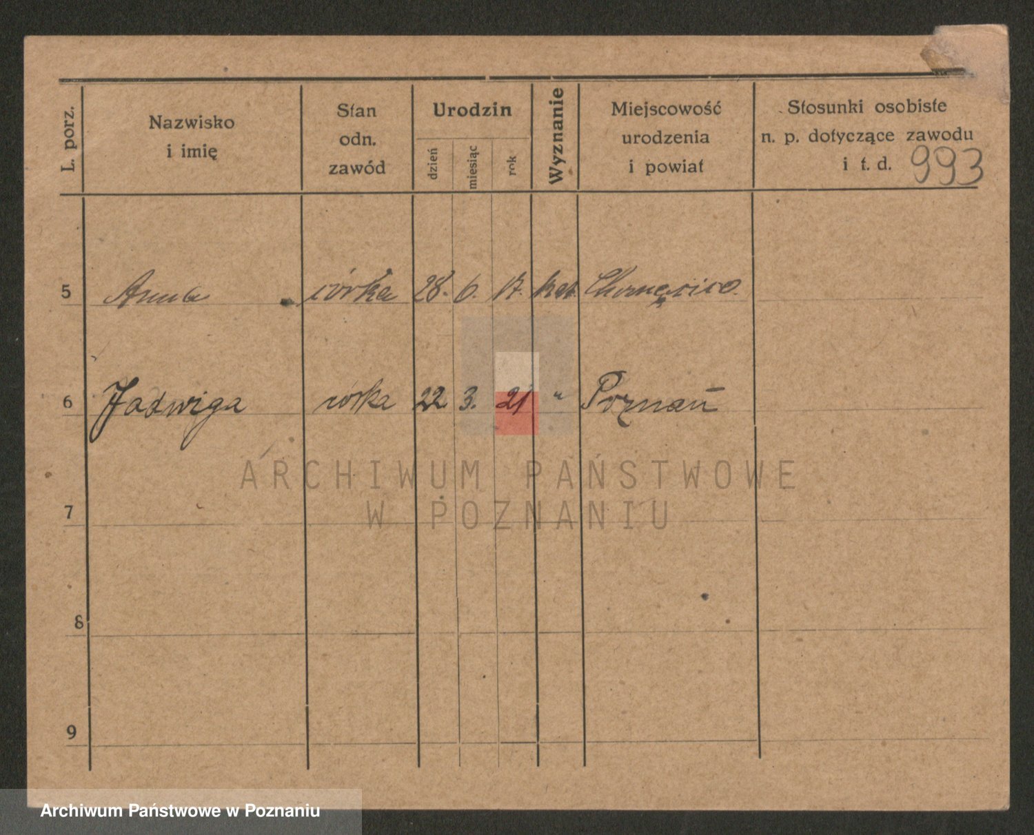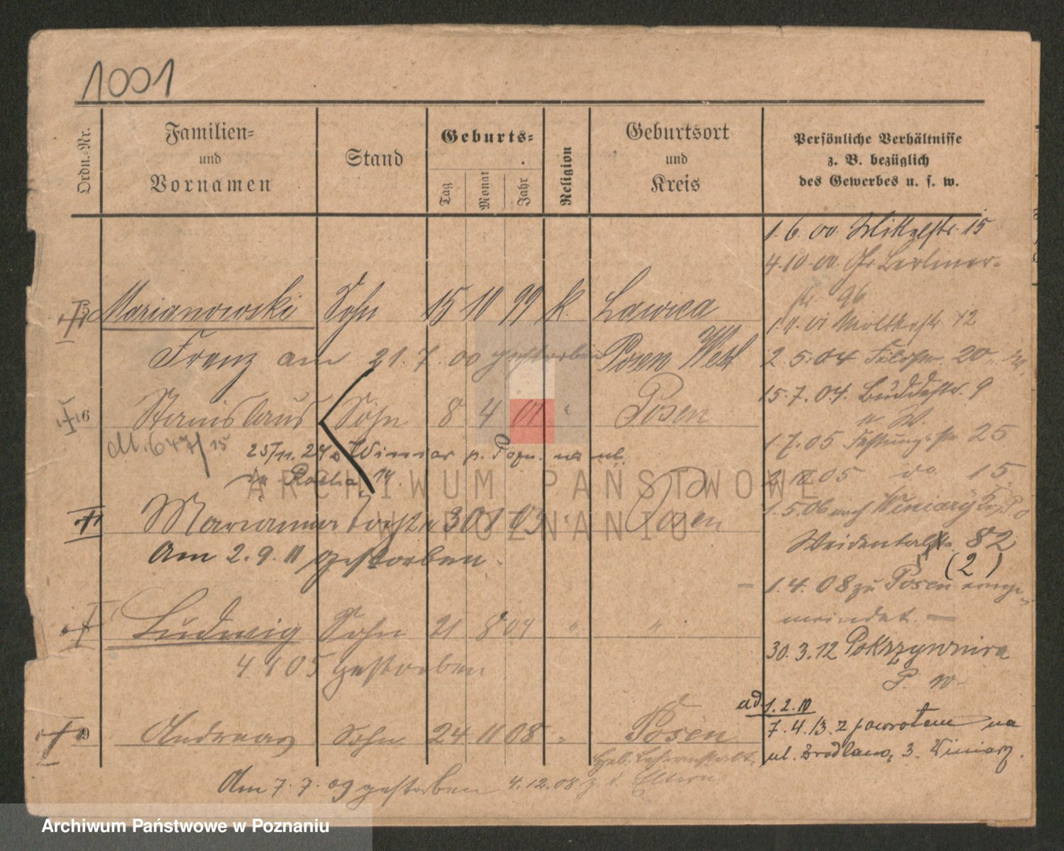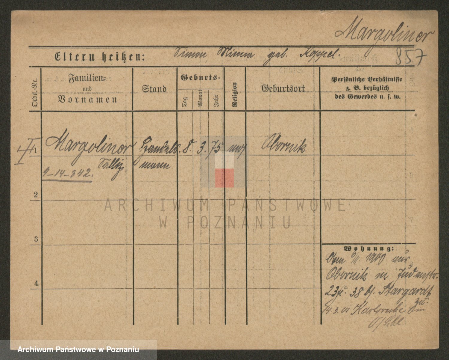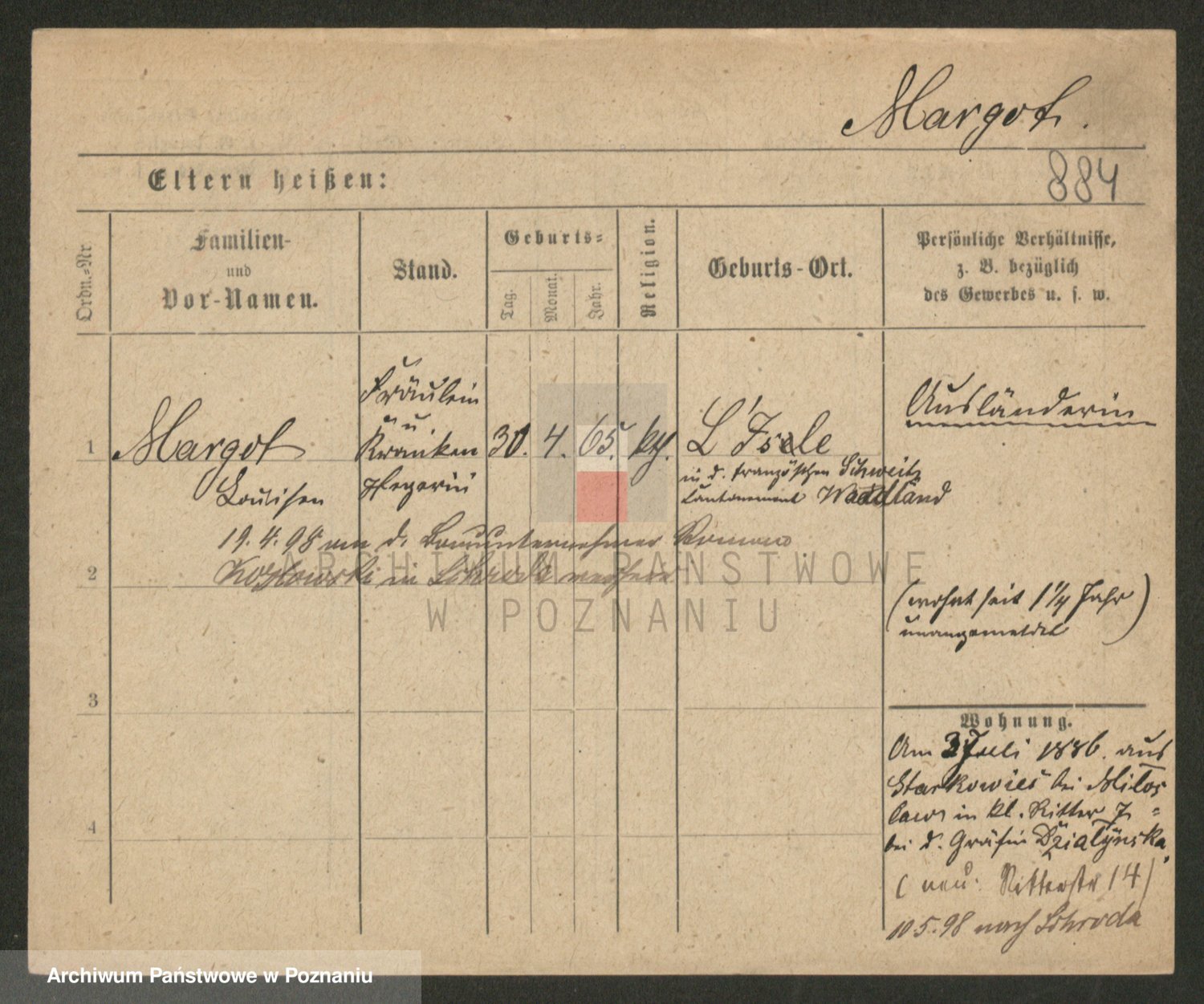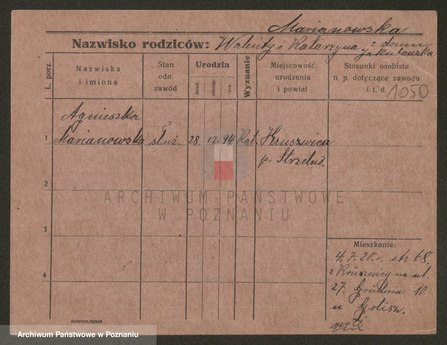 Podgląd karty osobowej dostępny jest po kliknięciu na nazwisko lub ikonkę karty. Można dokonywać powiększenia (ikony na górze) lub przechodzić między kolejnymi skanami (strzałki po bokach).