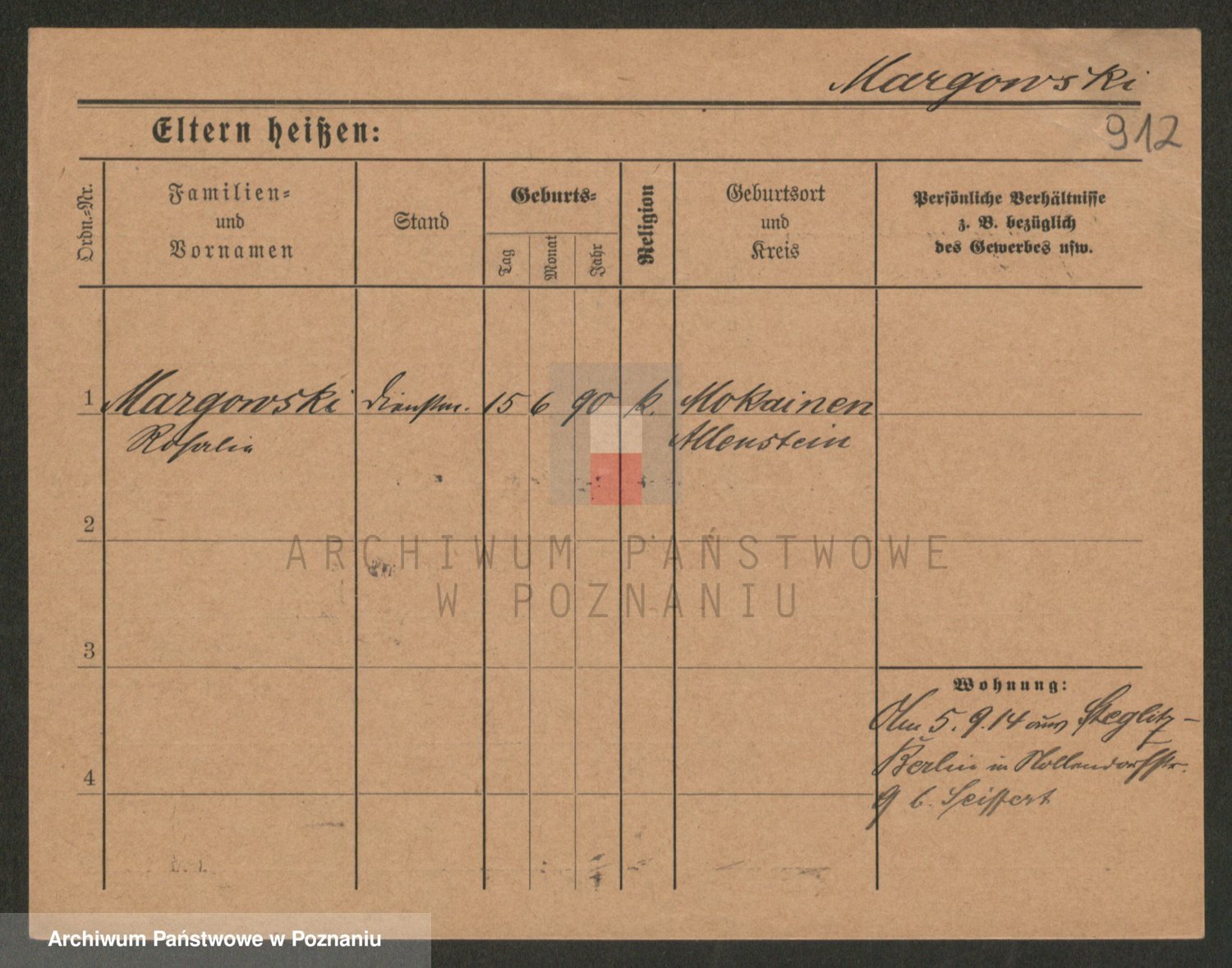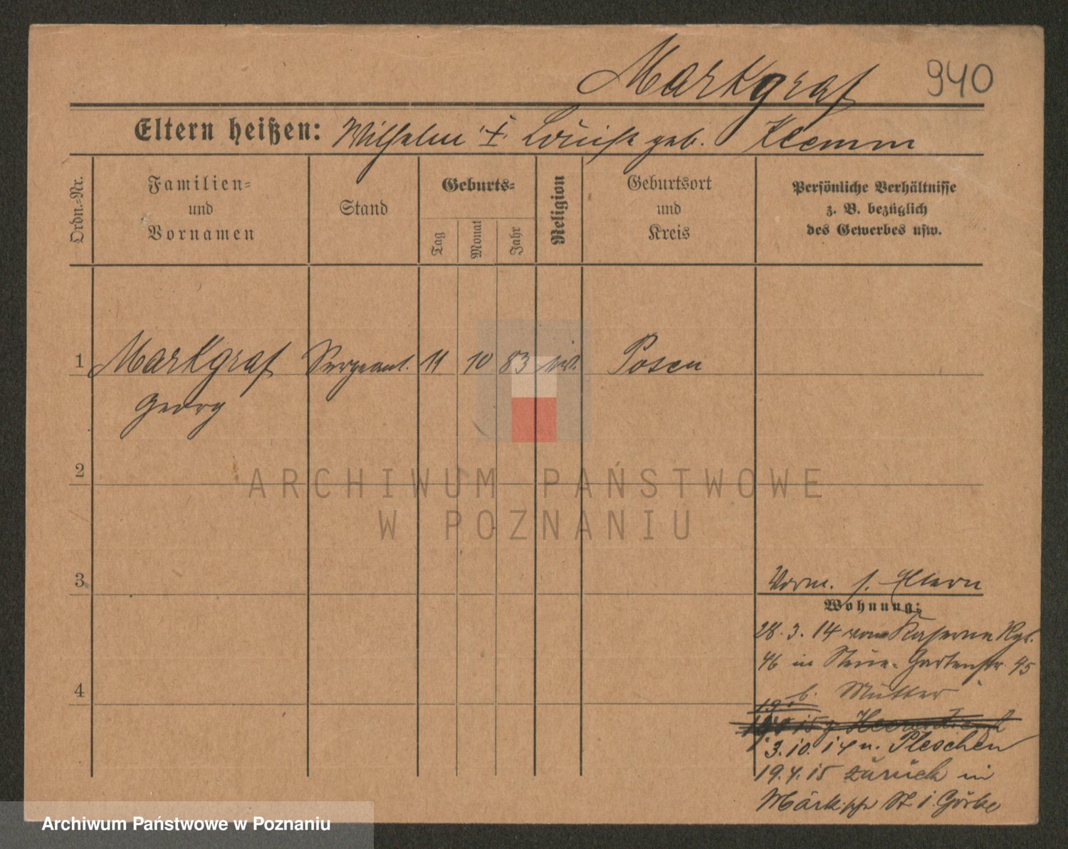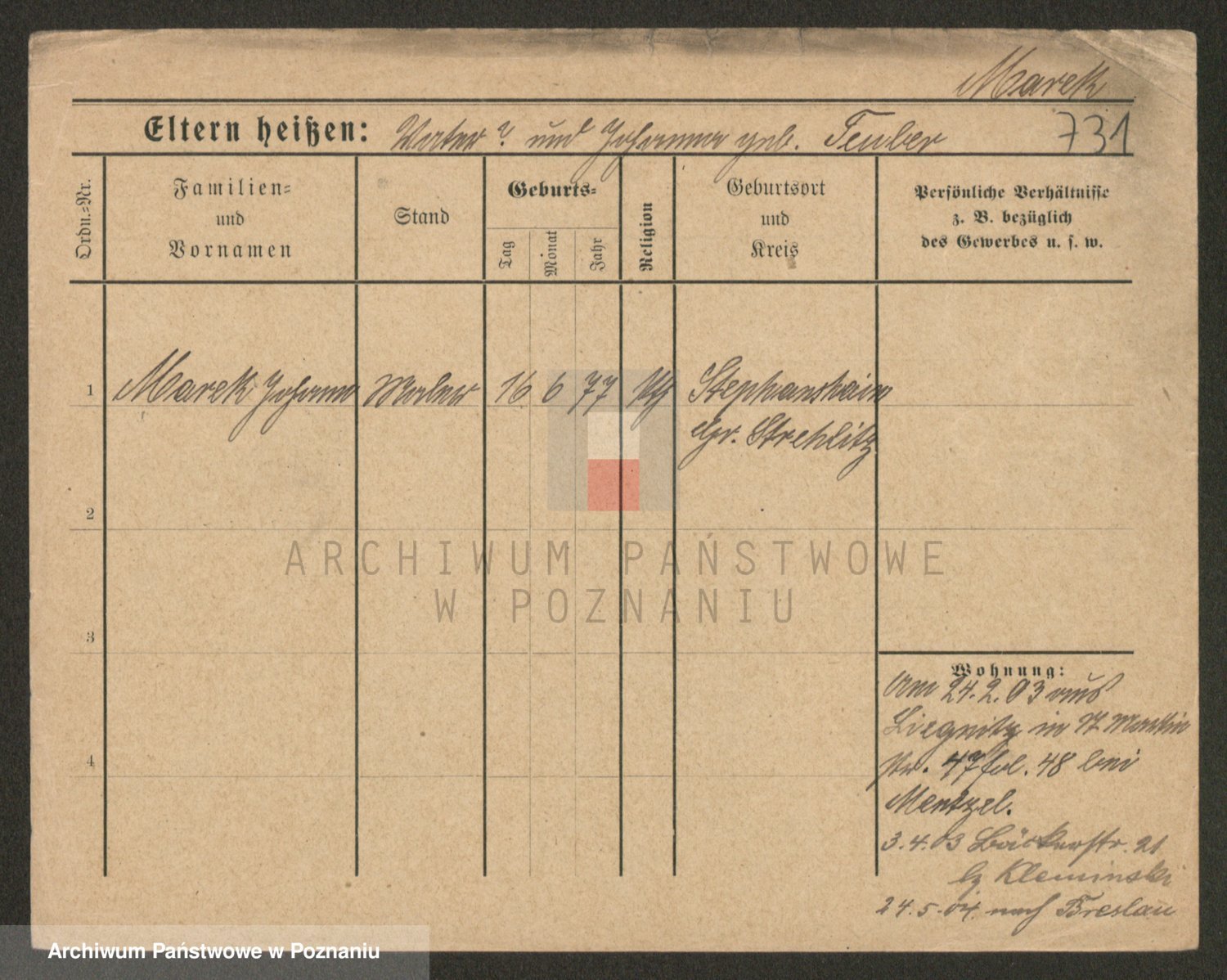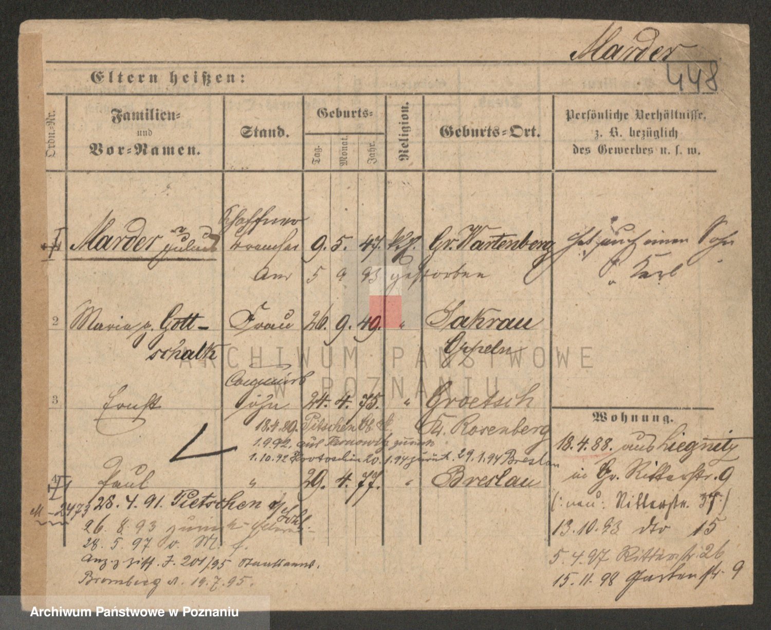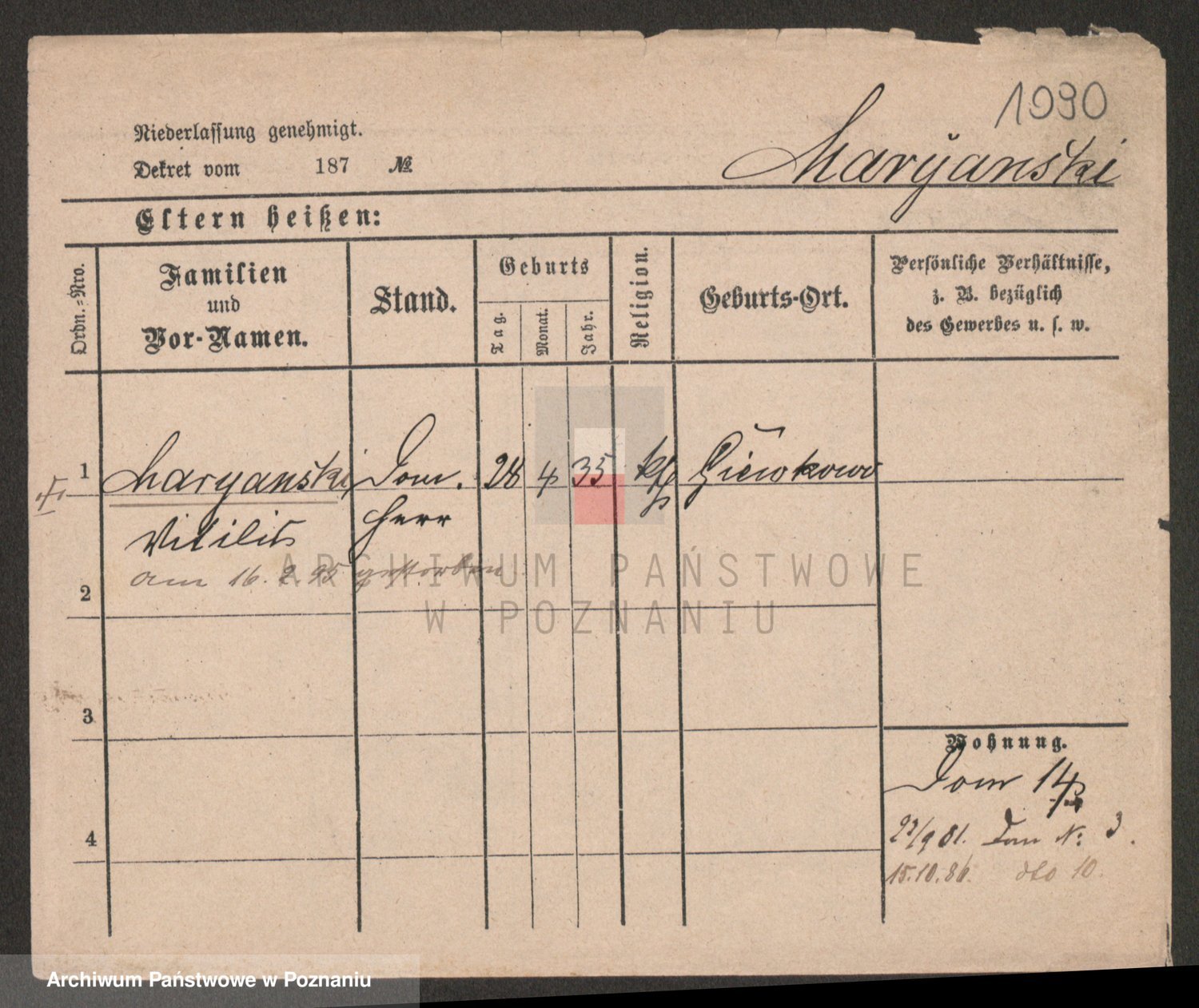 Podgląd karty osobowej dostępny jest po kliknięciu na nazwisko lub ikonkę karty. Można dokonywać powiększenia (ikony na górze) lub przechodzić między kolejnymi skanami (strzałki po bokach).