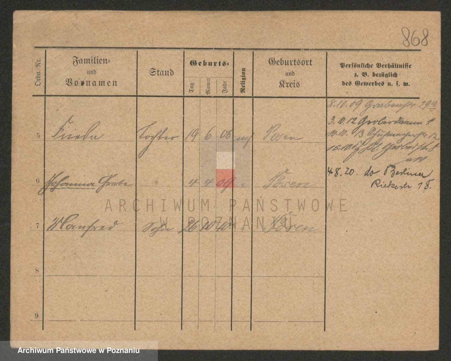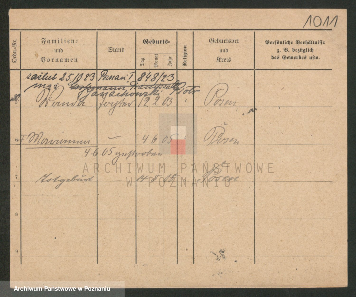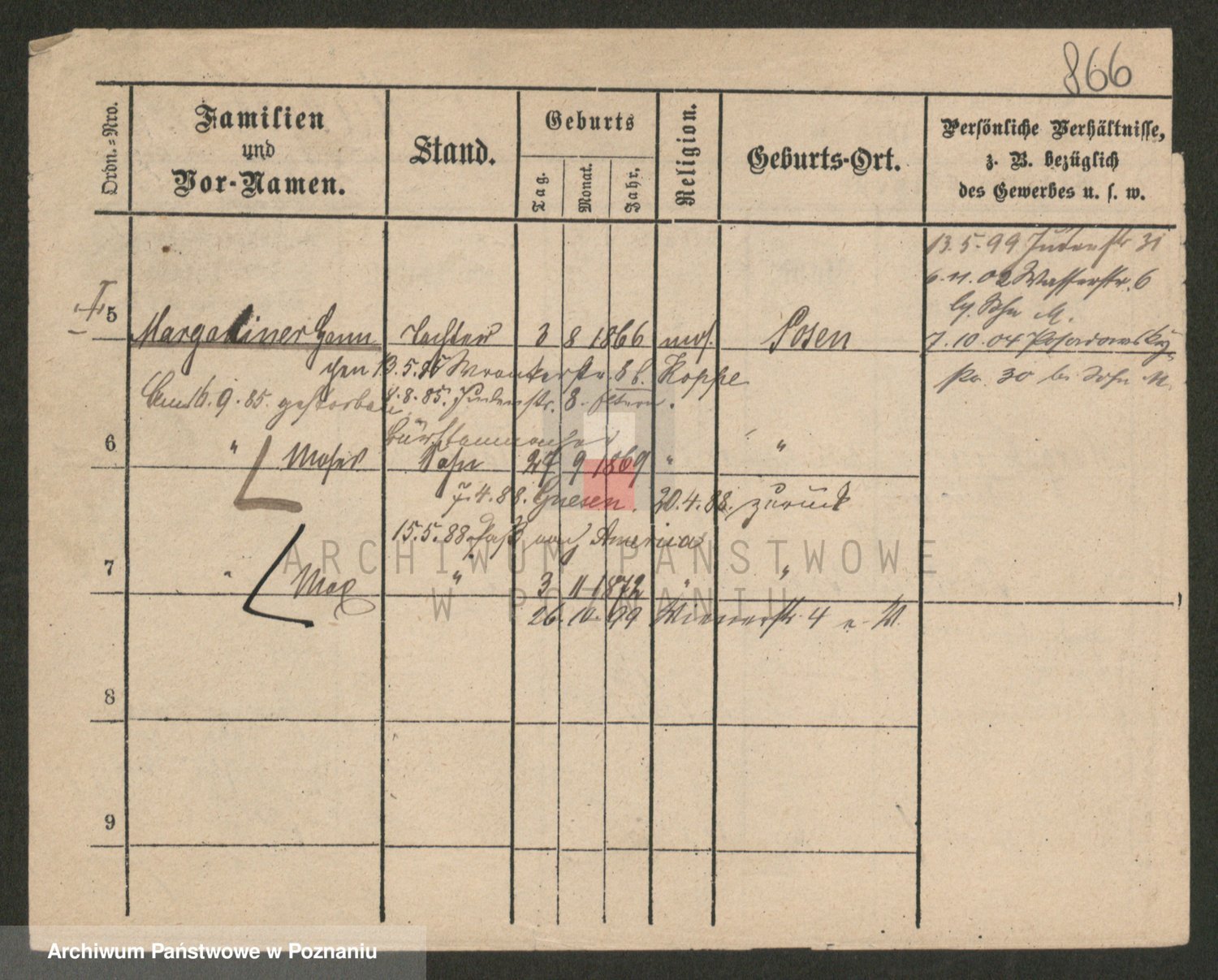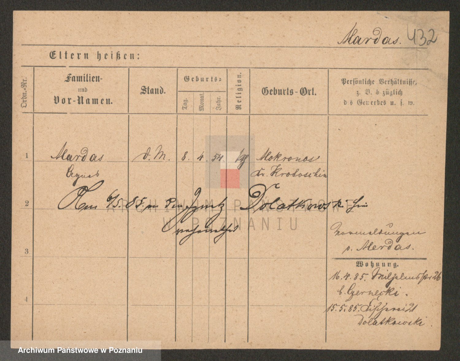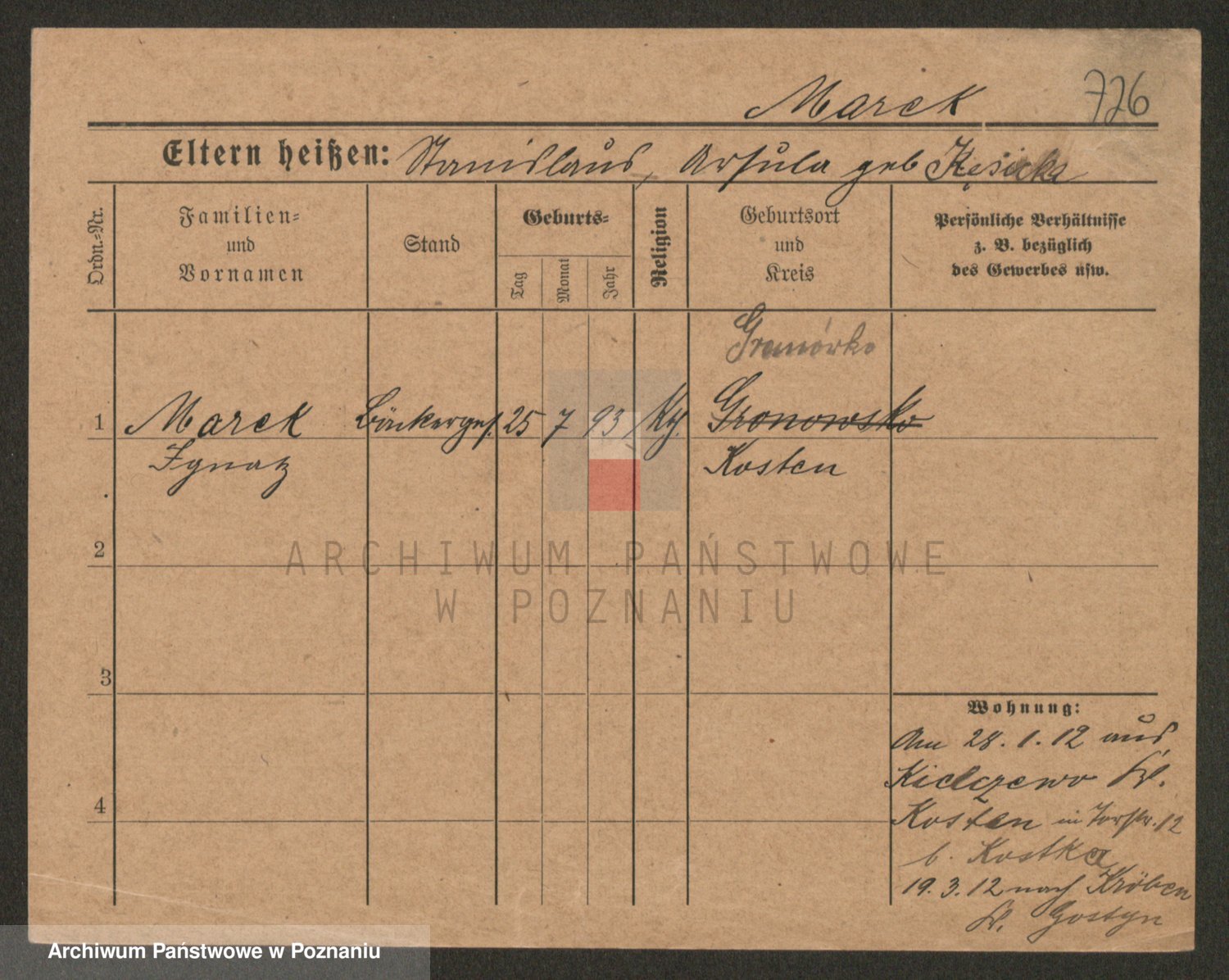 Podgląd karty osobowej dostępny jest po kliknięciu na nazwisko lub ikonkę karty. Można dokonywać powiększenia (ikony na górze) lub przechodzić między kolejnymi skanami (strzałki po bokach).