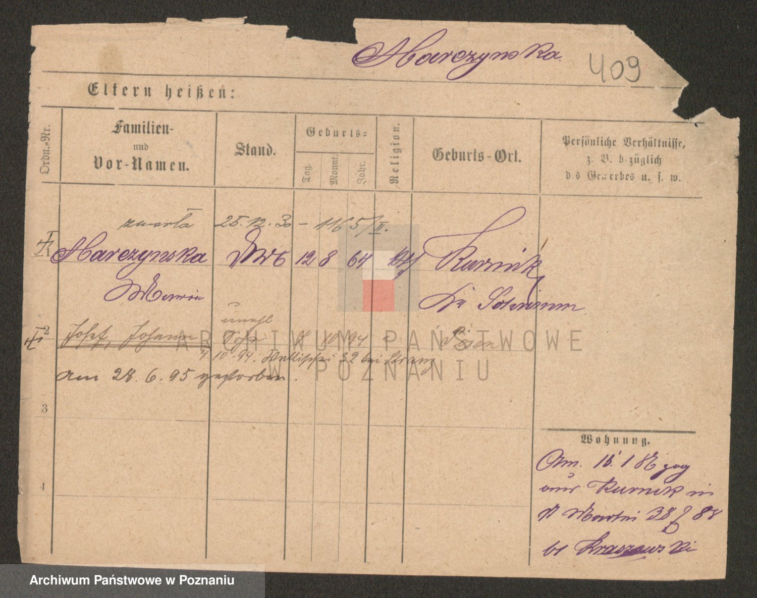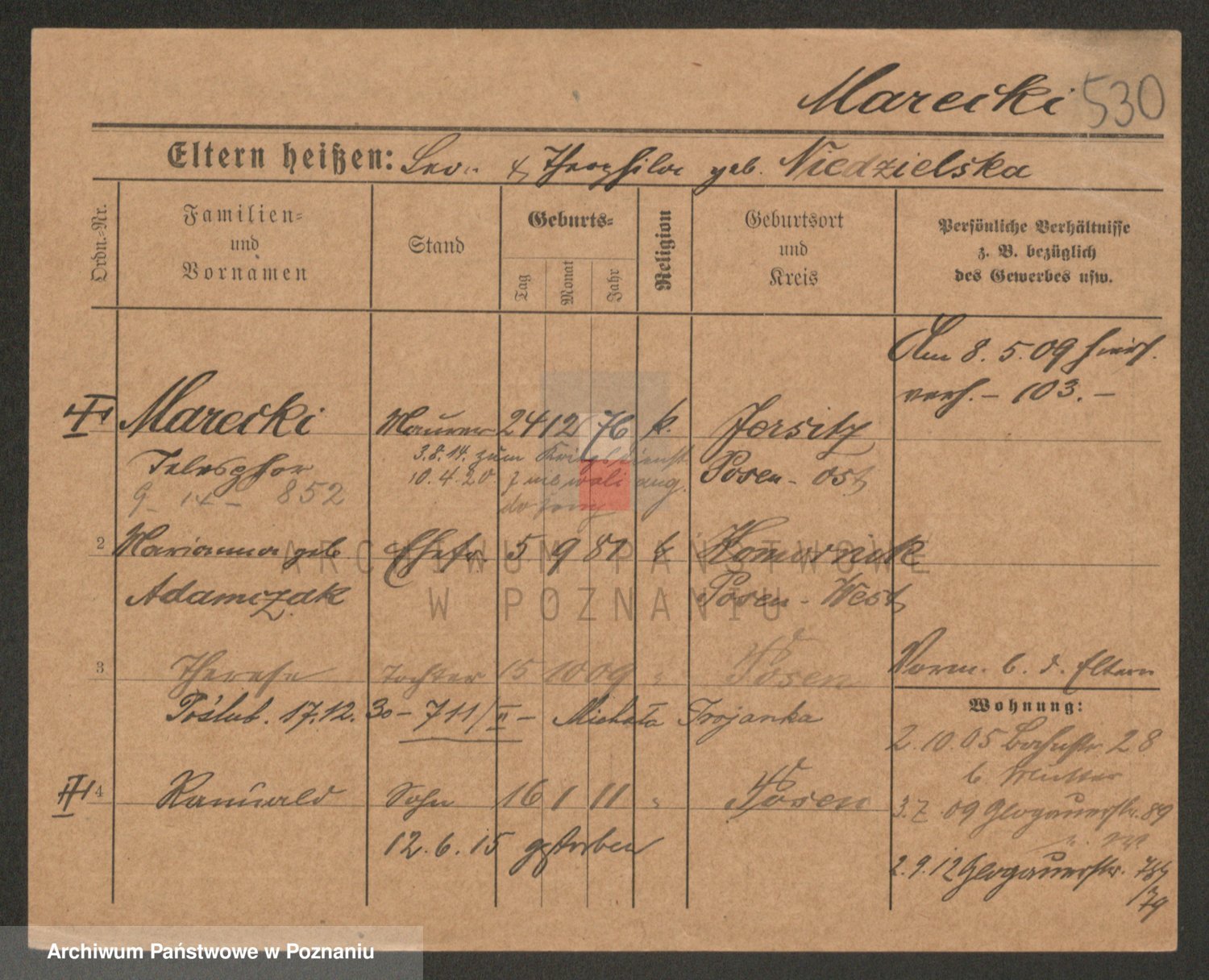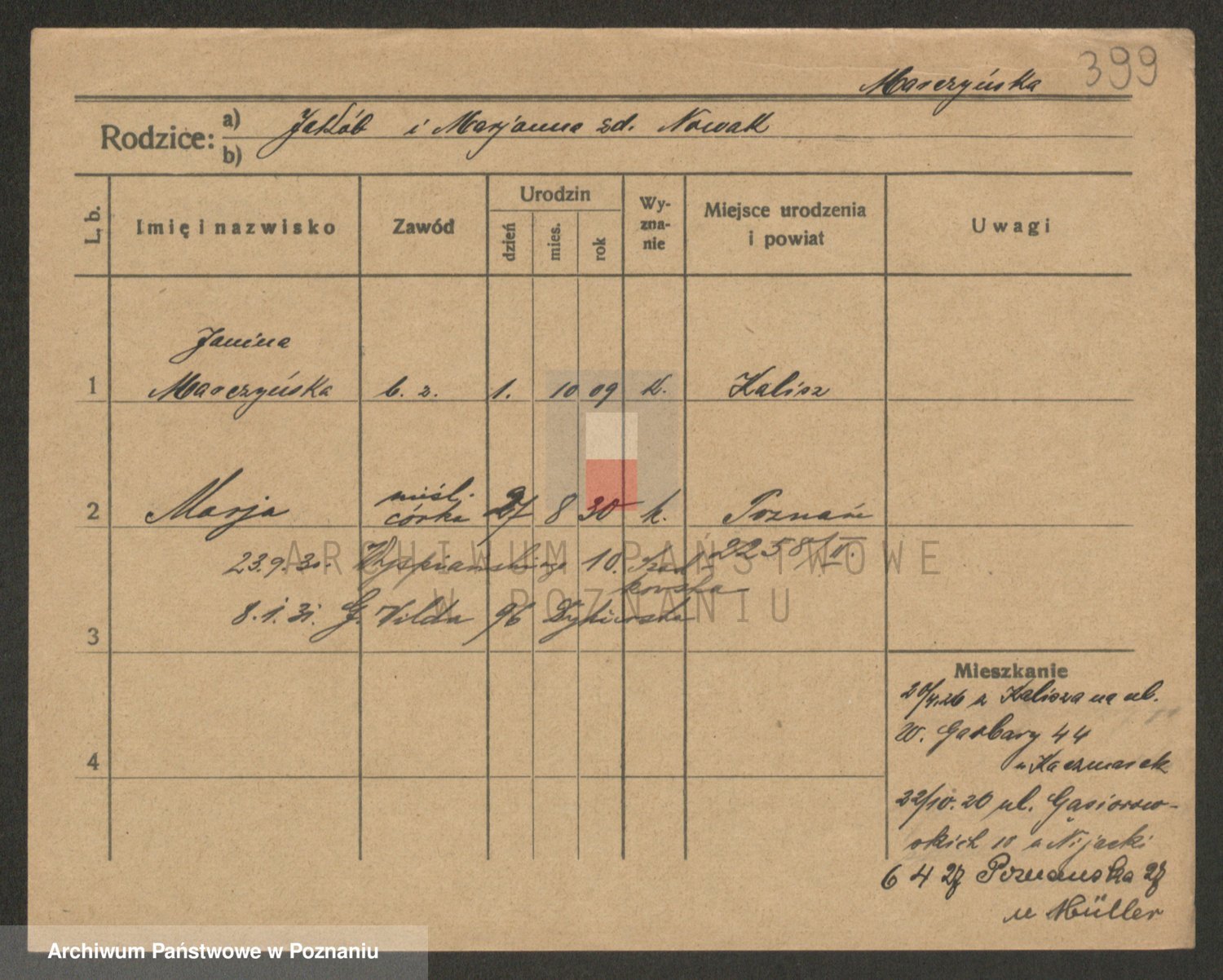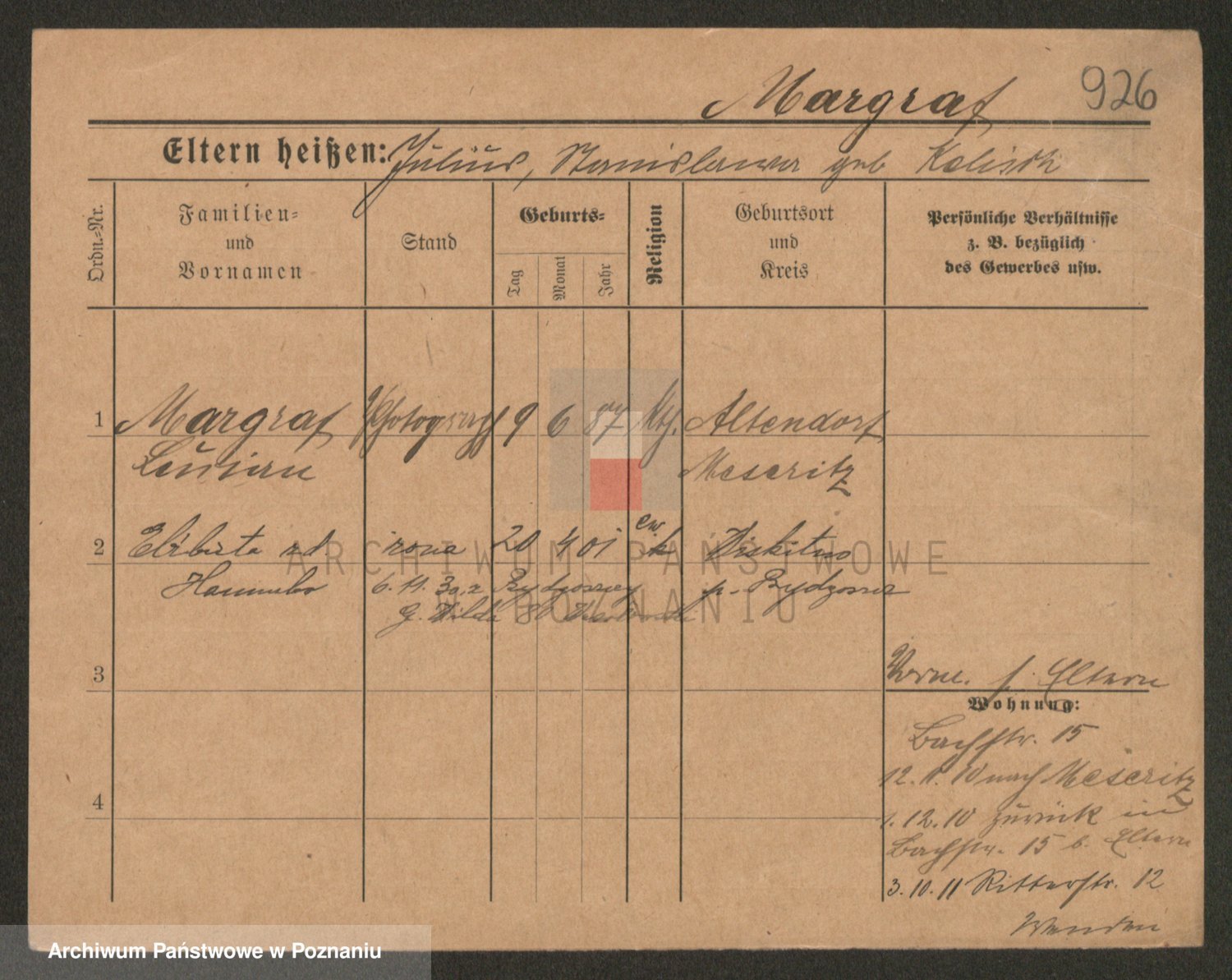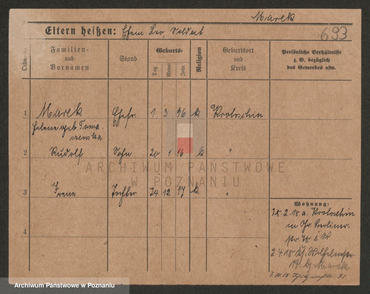 Podgląd karty osobowej dostępny jest po kliknięciu na nazwisko lub ikonkę karty. Można dokonywać powiększenia (ikony na górze) lub przechodzić między kolejnymi skanami (strzałki po bokach).