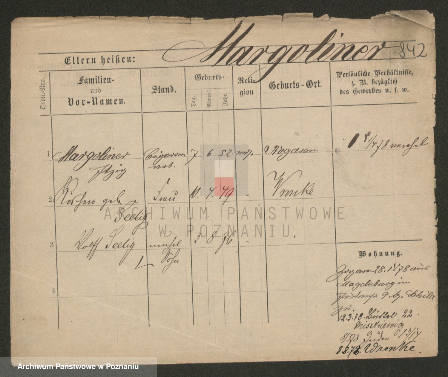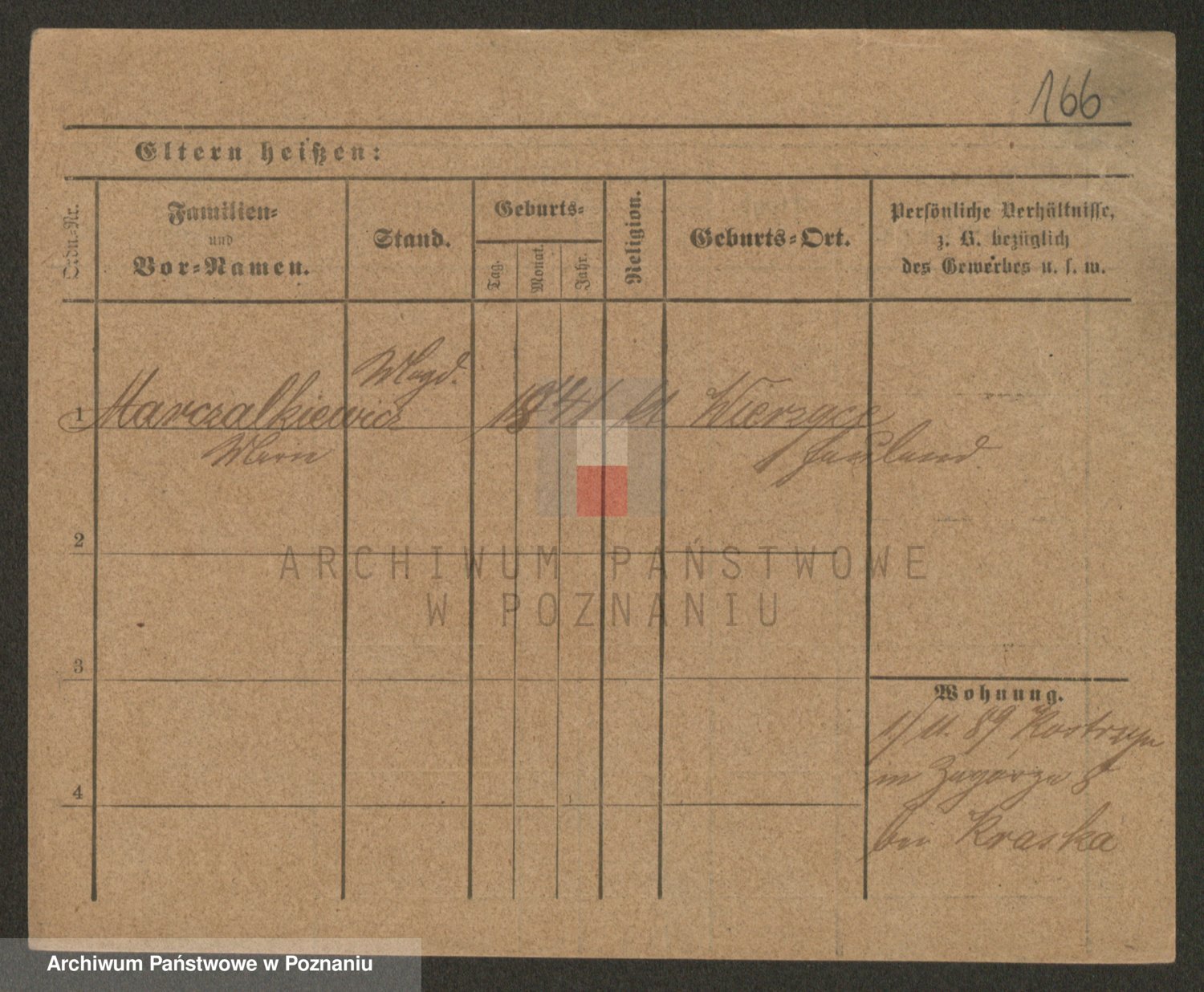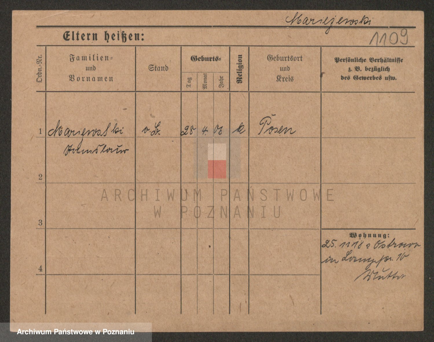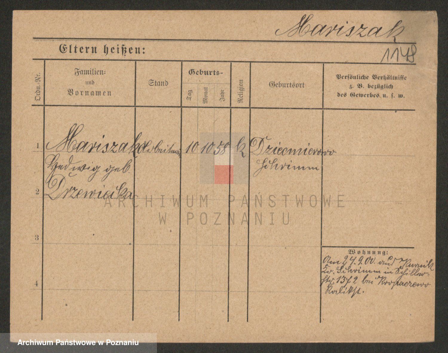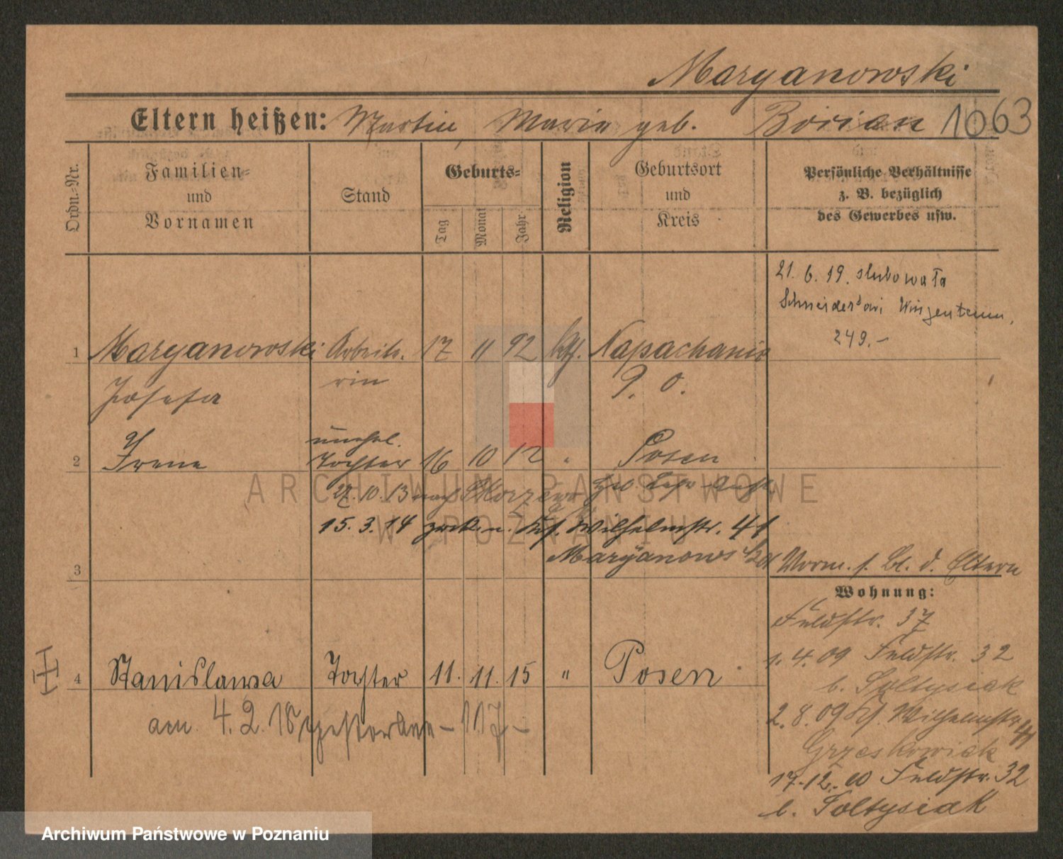 Podgląd karty osobowej dostępny jest po kliknięciu na nazwisko lub ikonkę karty. Można dokonywać powiększenia (ikony na górze) lub przechodzić między kolejnymi skanami (strzałki po bokach).