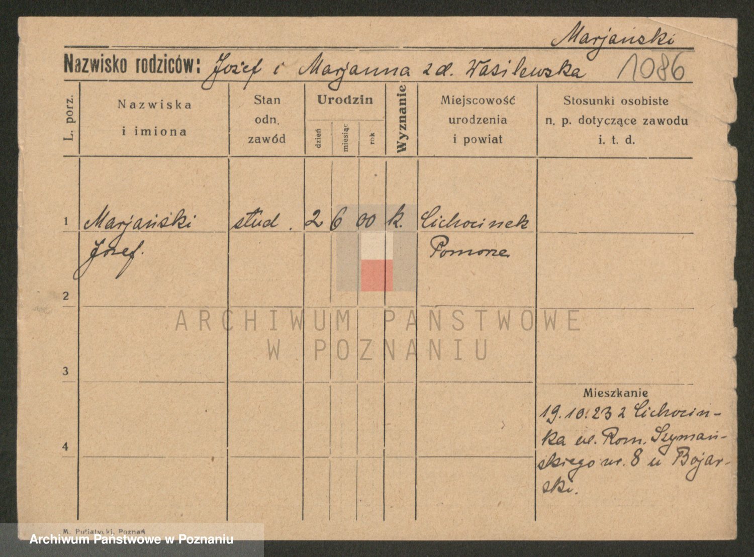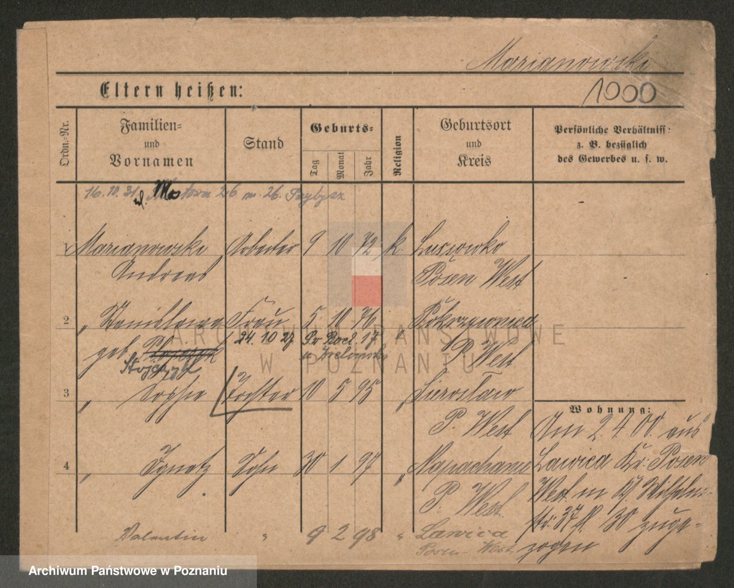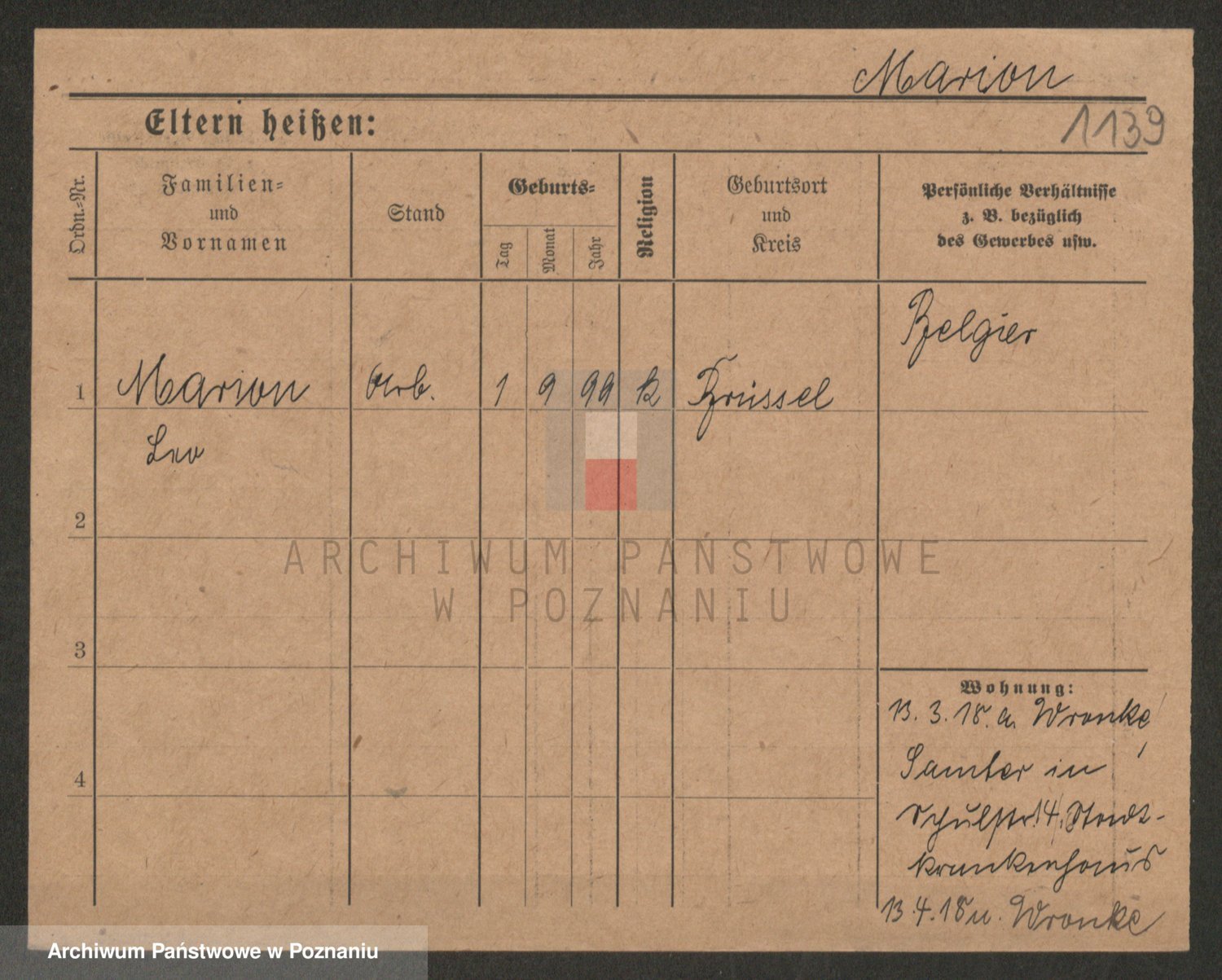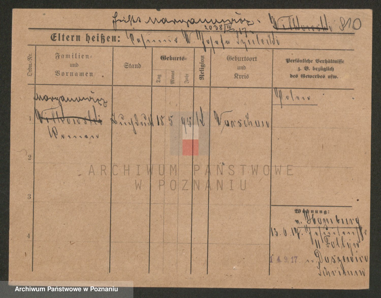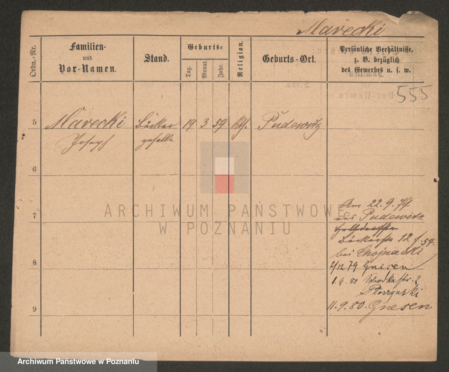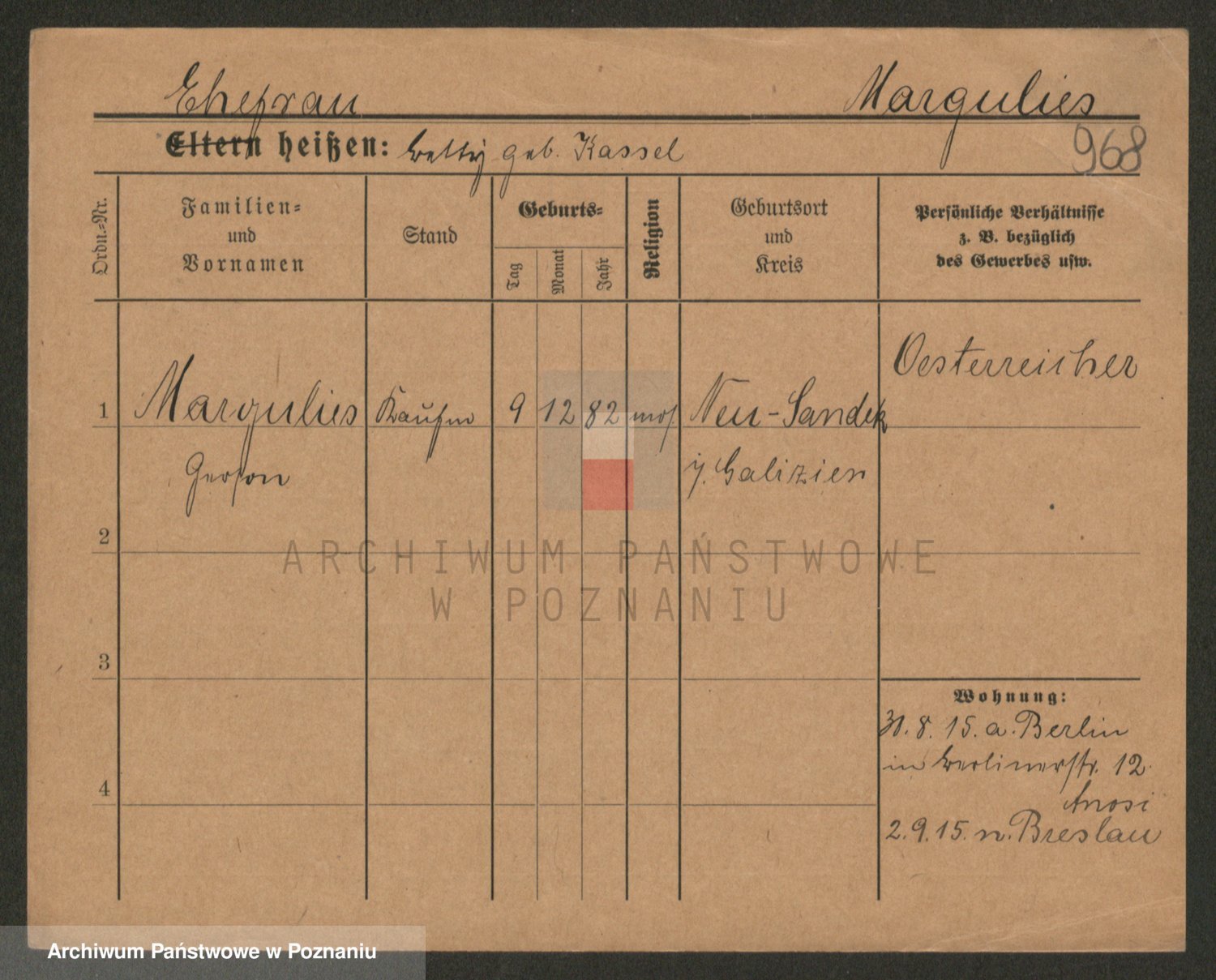 Podgląd karty osobowej dostępny jest po kliknięciu na nazwisko lub ikonkę karty. Można dokonywać powiększenia (ikony na górze) lub przechodzić między kolejnymi skanami (strzałki po bokach).