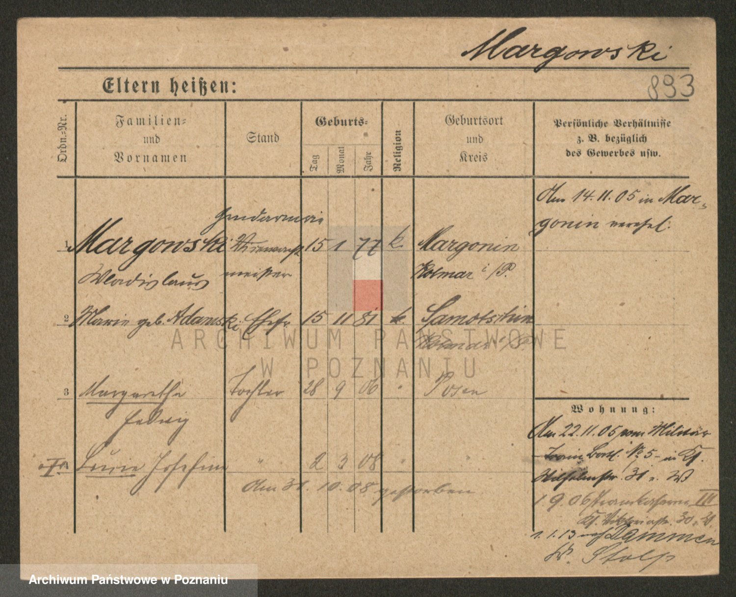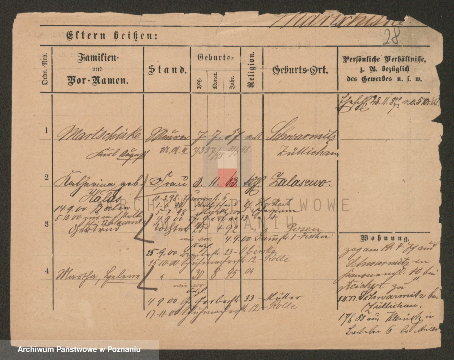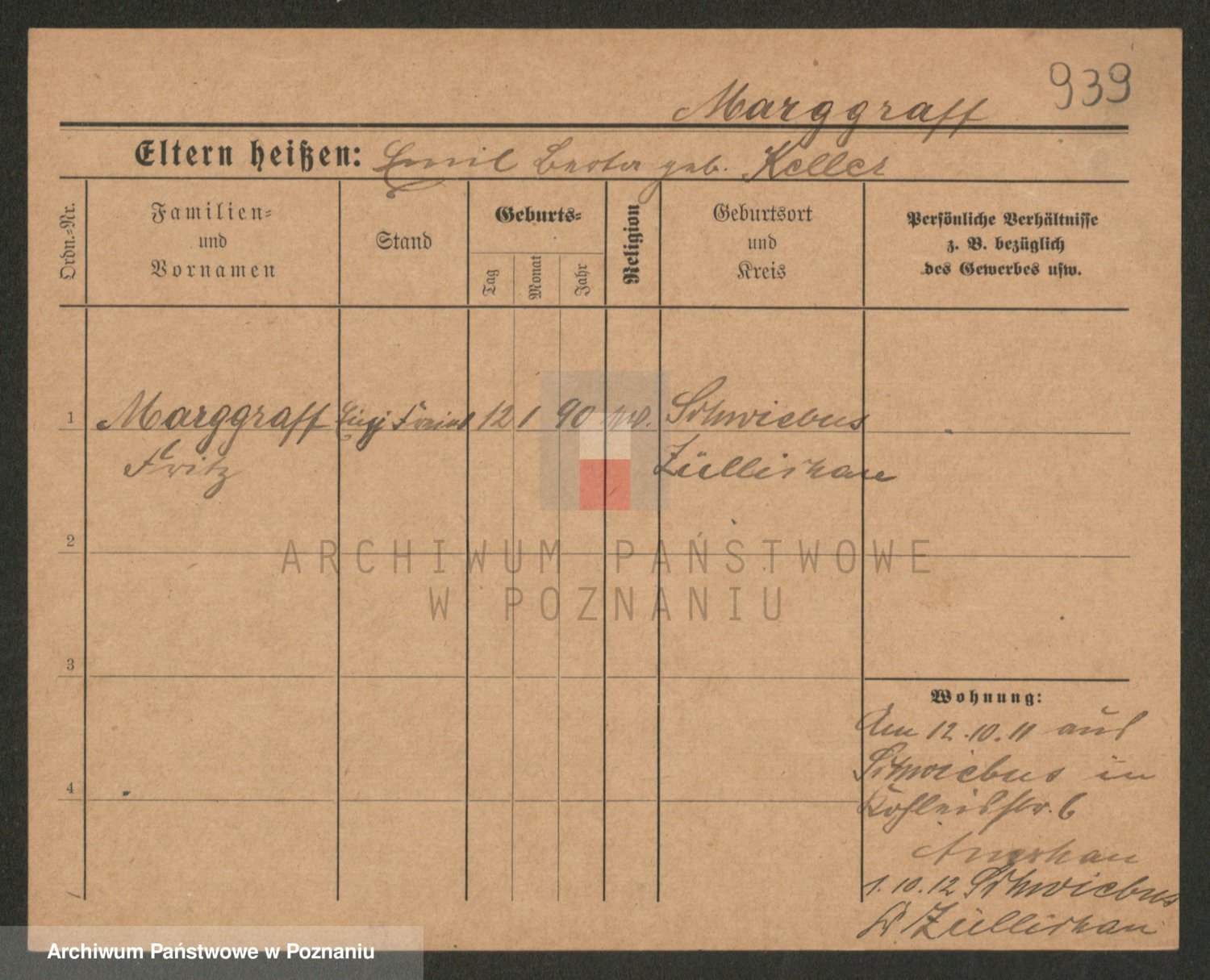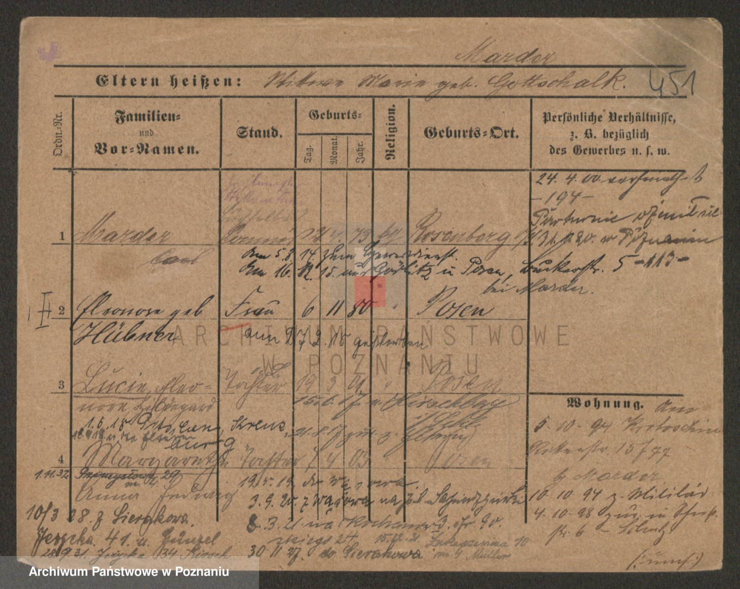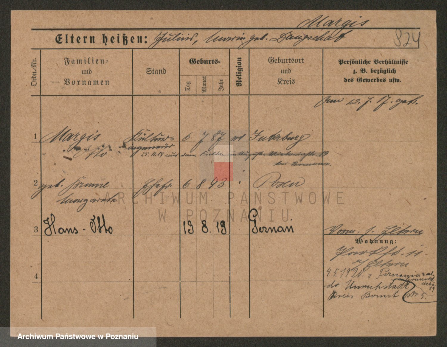 Podgląd karty osobowej dostępny jest po kliknięciu na nazwisko lub ikonkę karty. Można dokonywać powiększenia (ikony na górze) lub przechodzić między kolejnymi skanami (strzałki po bokach).