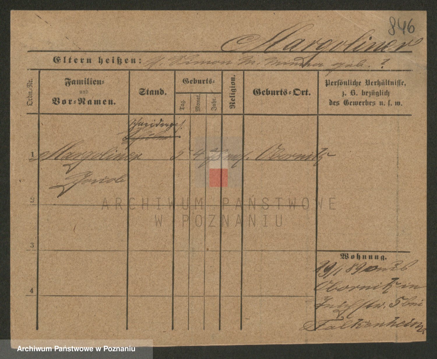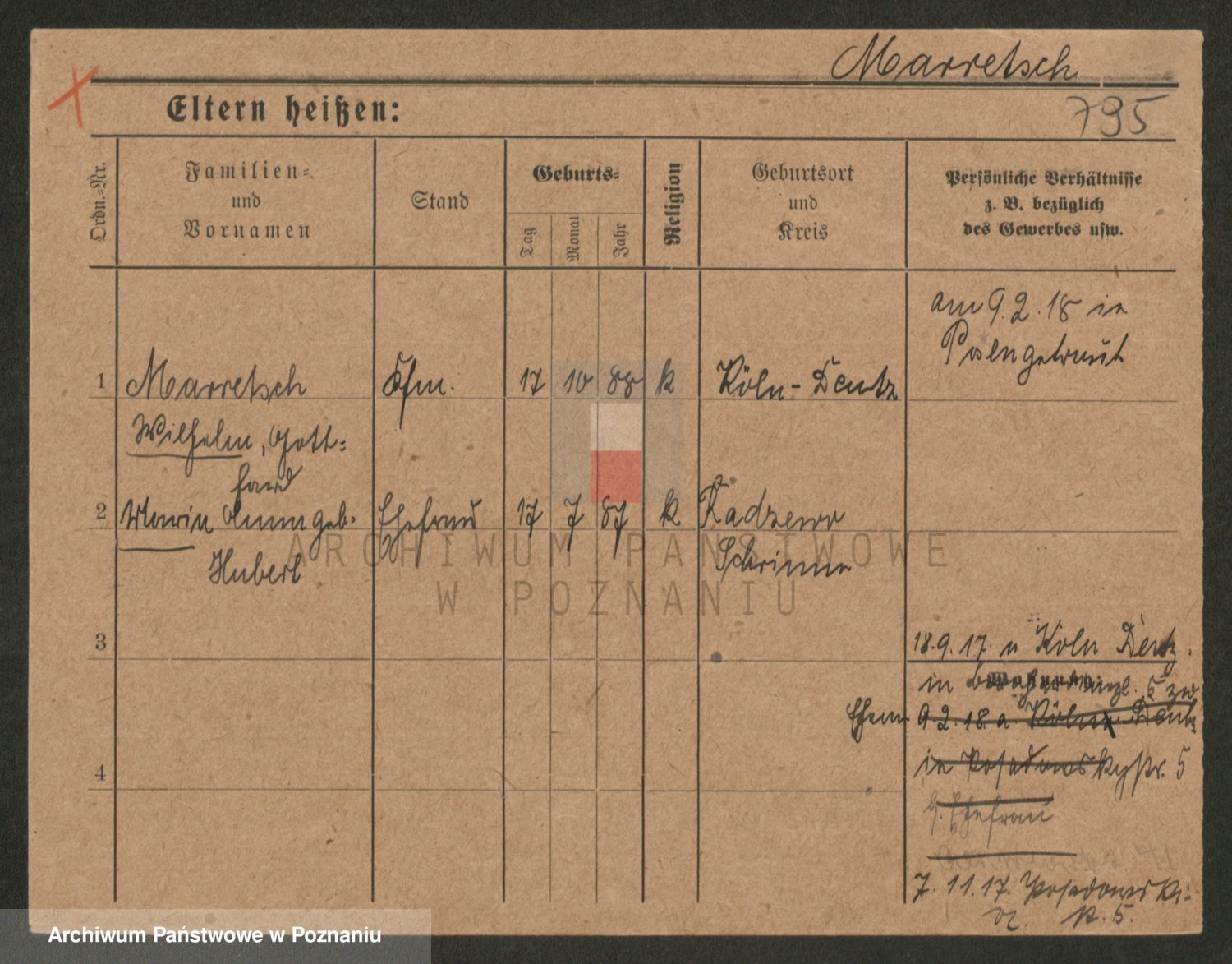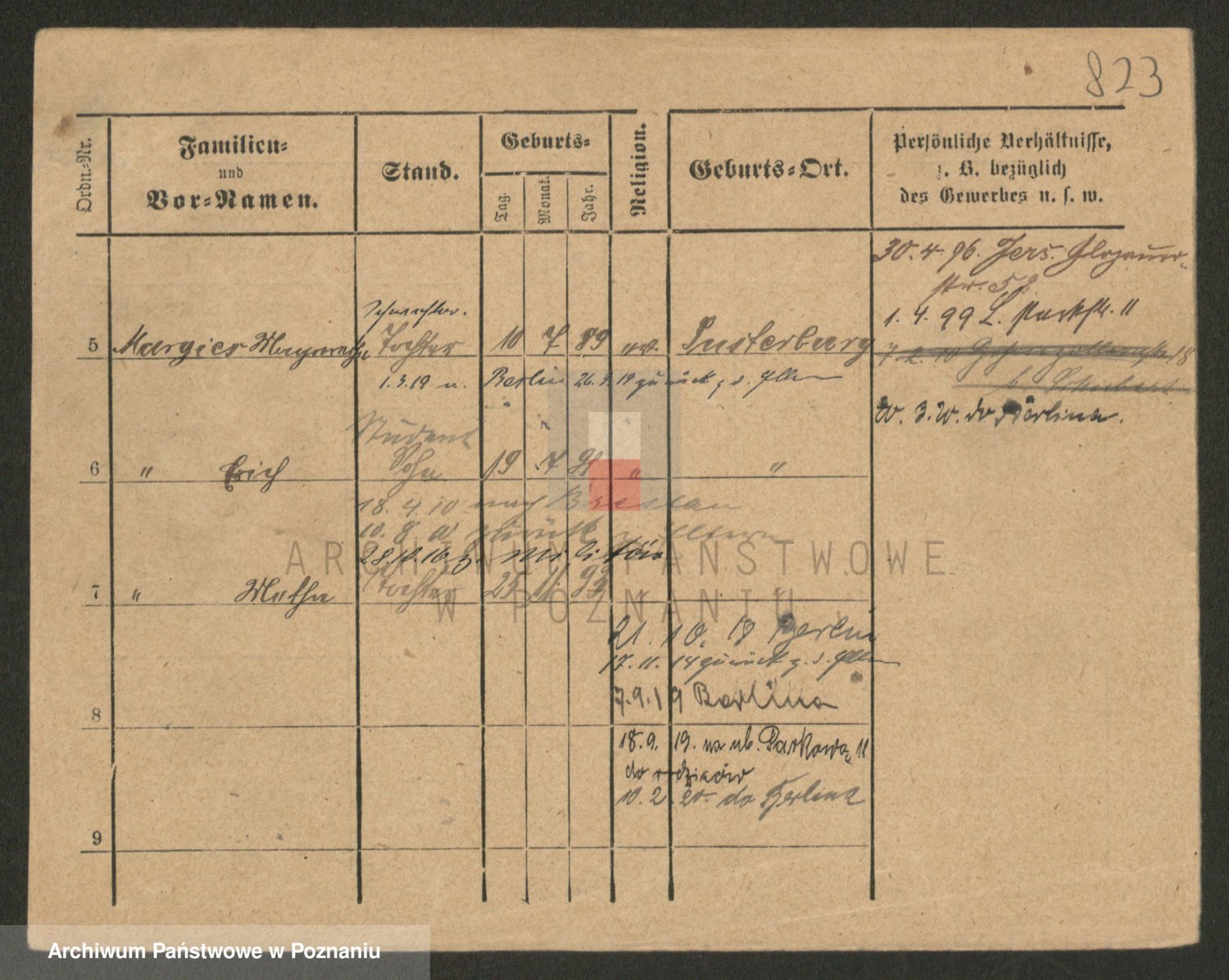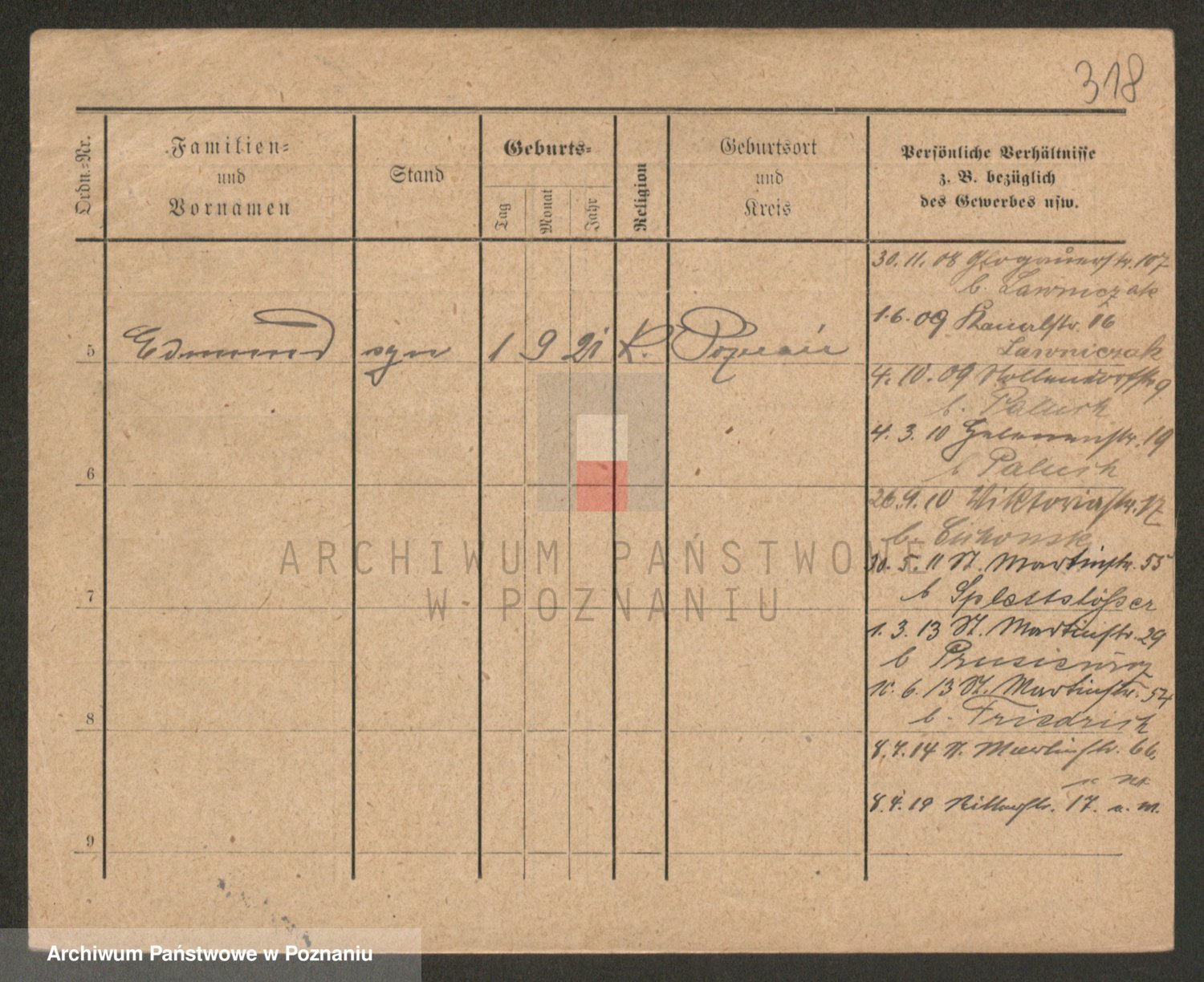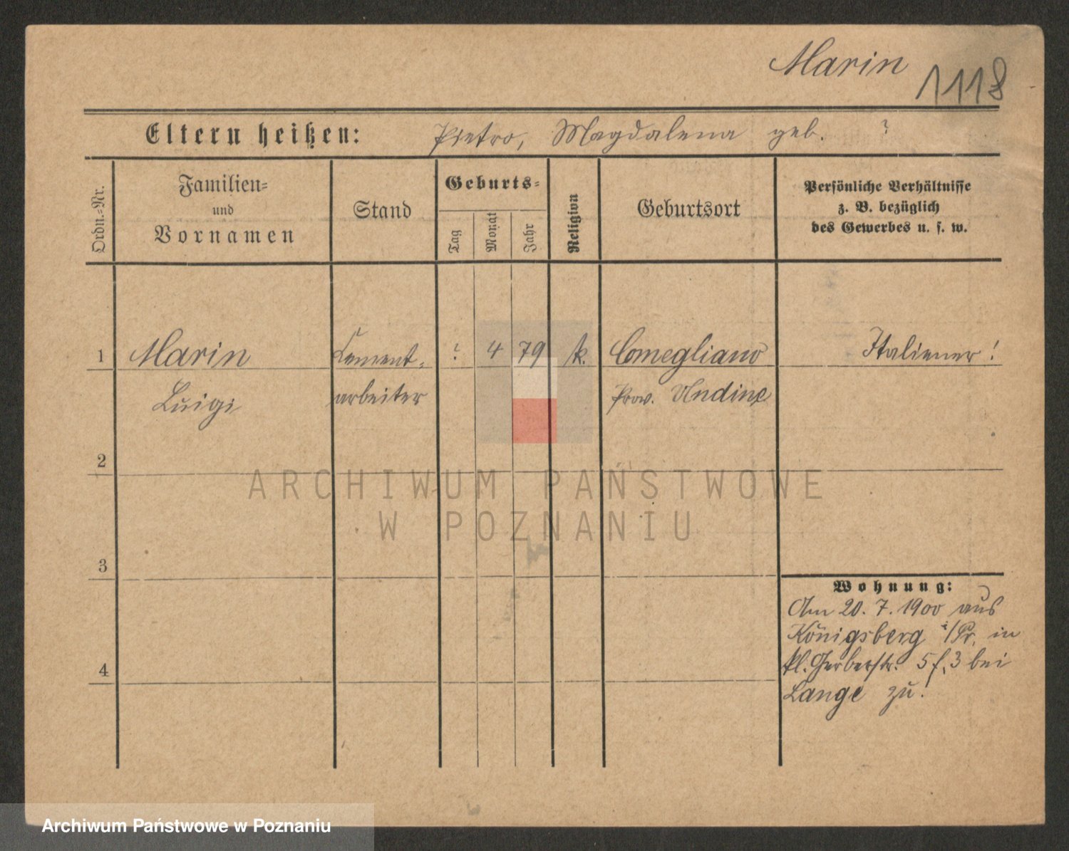 Podgląd karty osobowej dostępny jest po kliknięciu na nazwisko lub ikonkę karty. Można dokonywać powiększenia (ikony na górze) lub przechodzić między kolejnymi skanami (strzałki po bokach).