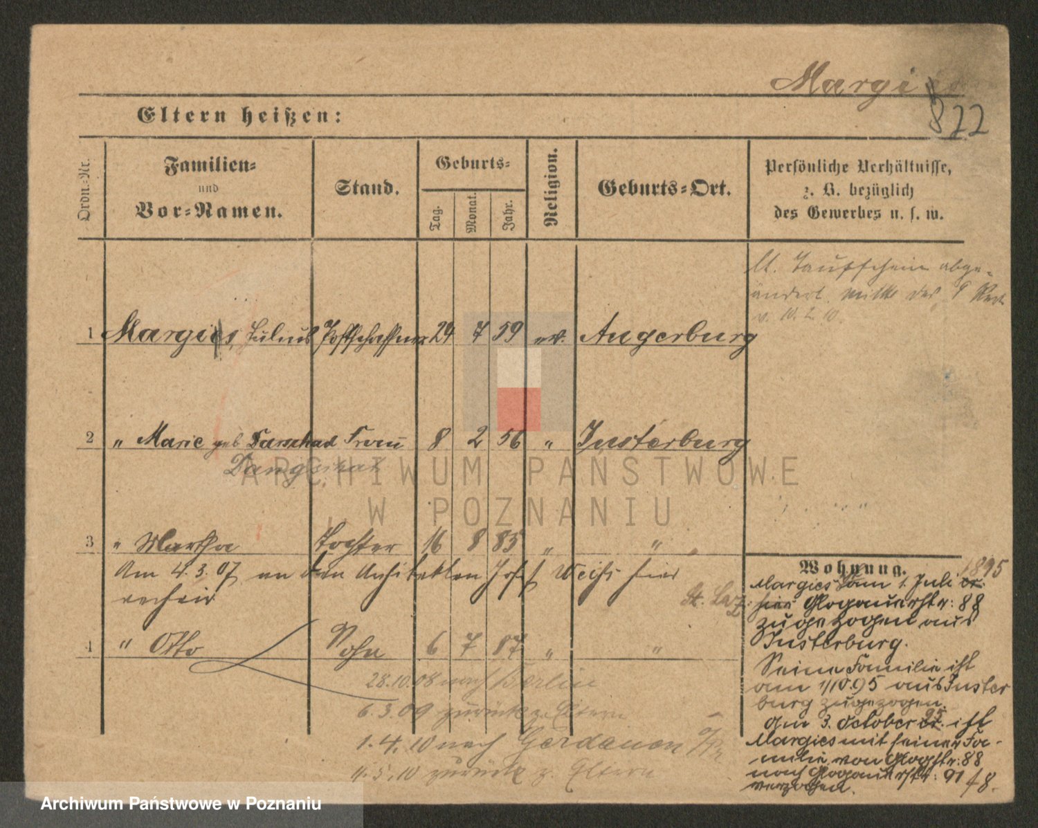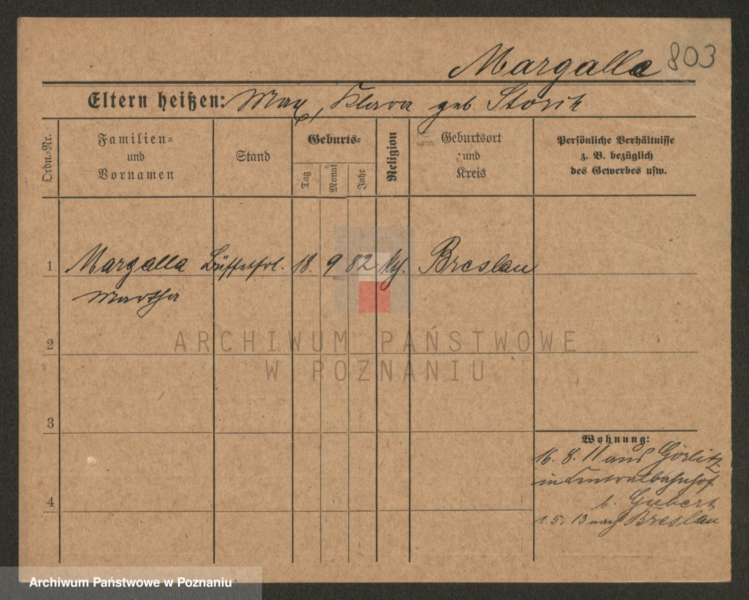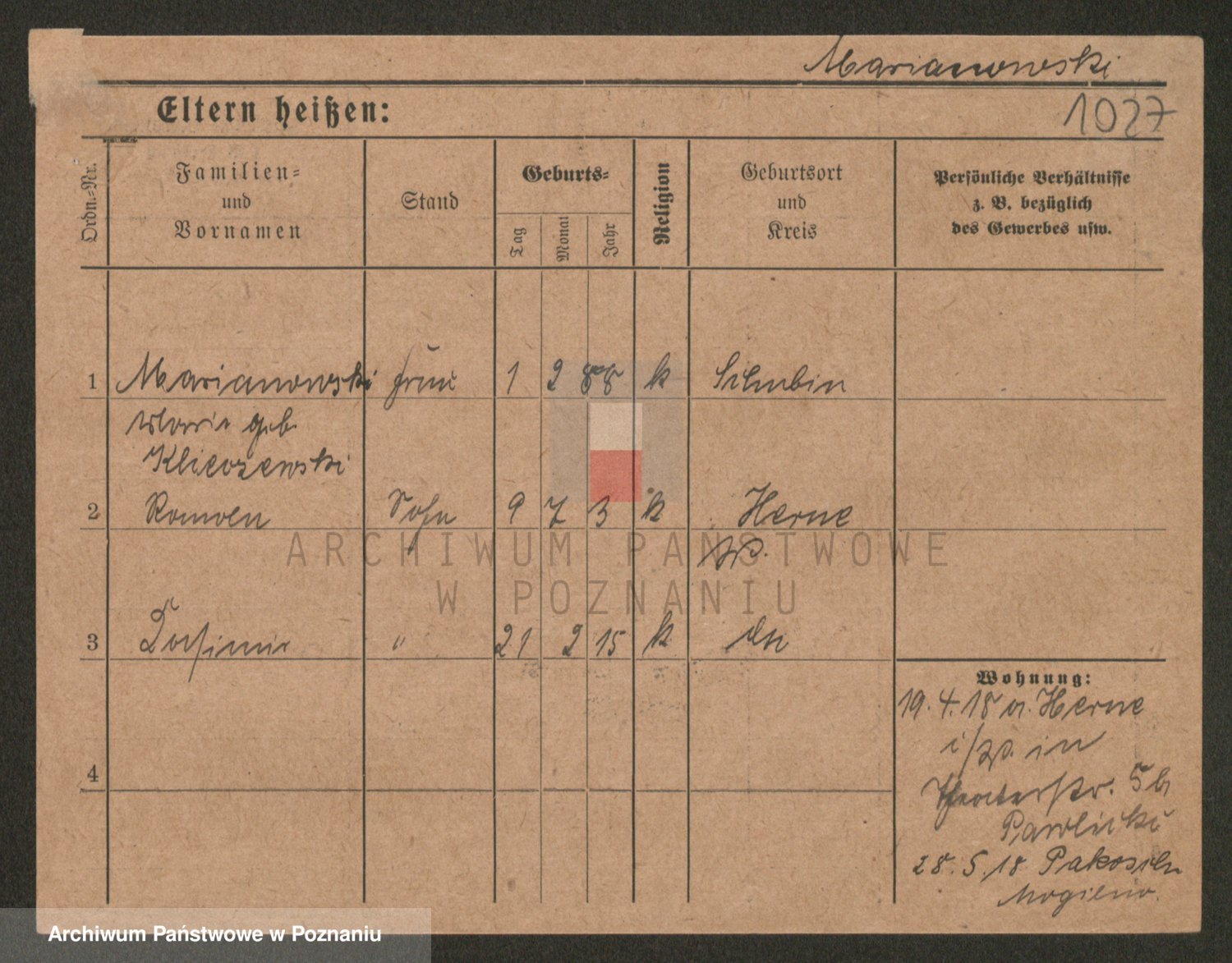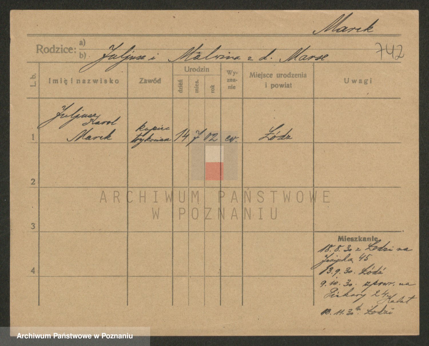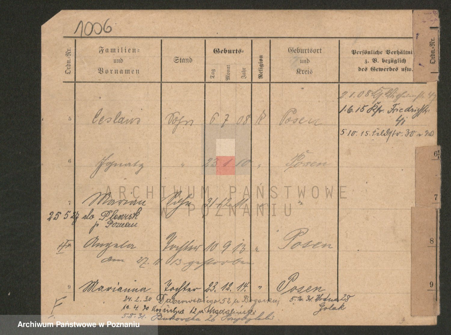 Podgląd karty osobowej dostępny jest po kliknięciu na nazwisko lub ikonkę karty. Można dokonywać powiększenia (ikony na górze) lub przechodzić między kolejnymi skanami (strzałki po bokach).