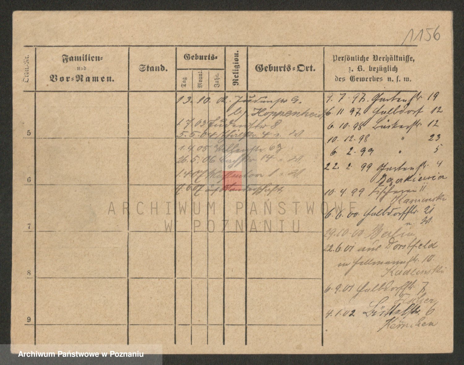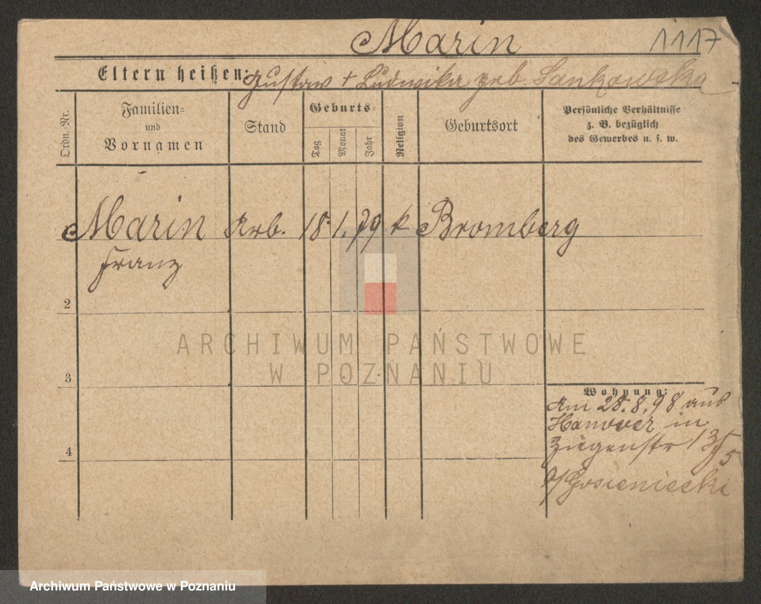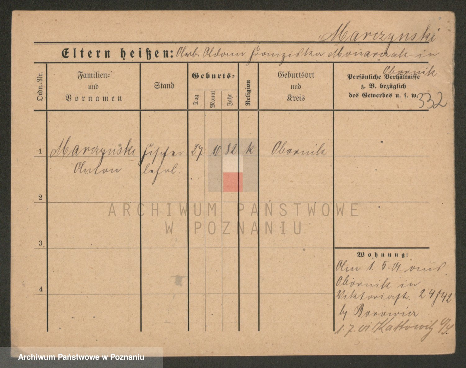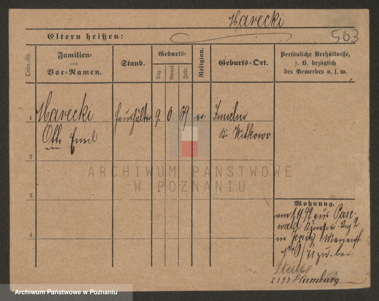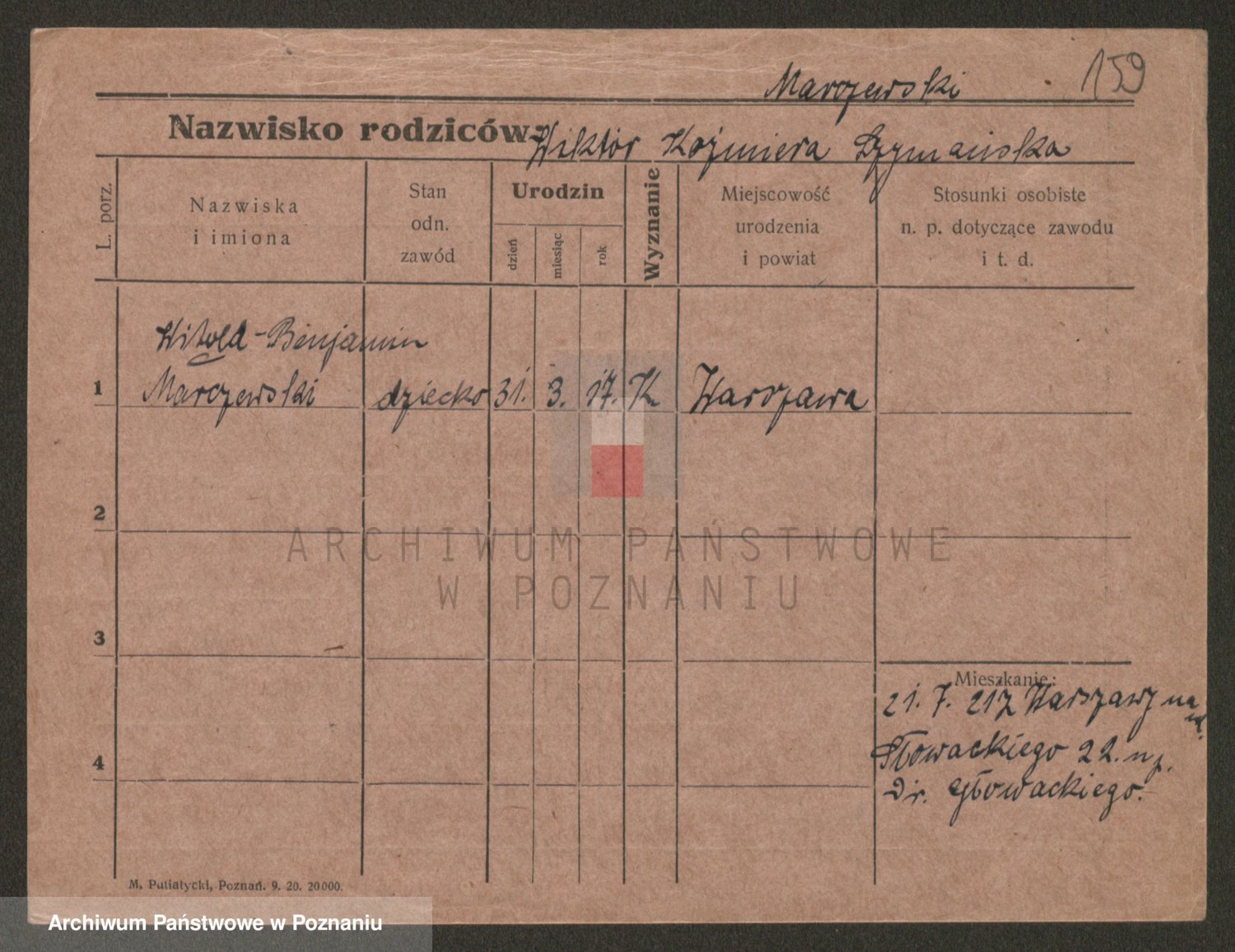 Podgląd karty osobowej dostępny jest po kliknięciu na nazwisko lub ikonkę karty. Można dokonywać powiększenia (ikony na górze) lub przechodzić między kolejnymi skanami (strzałki po bokach).