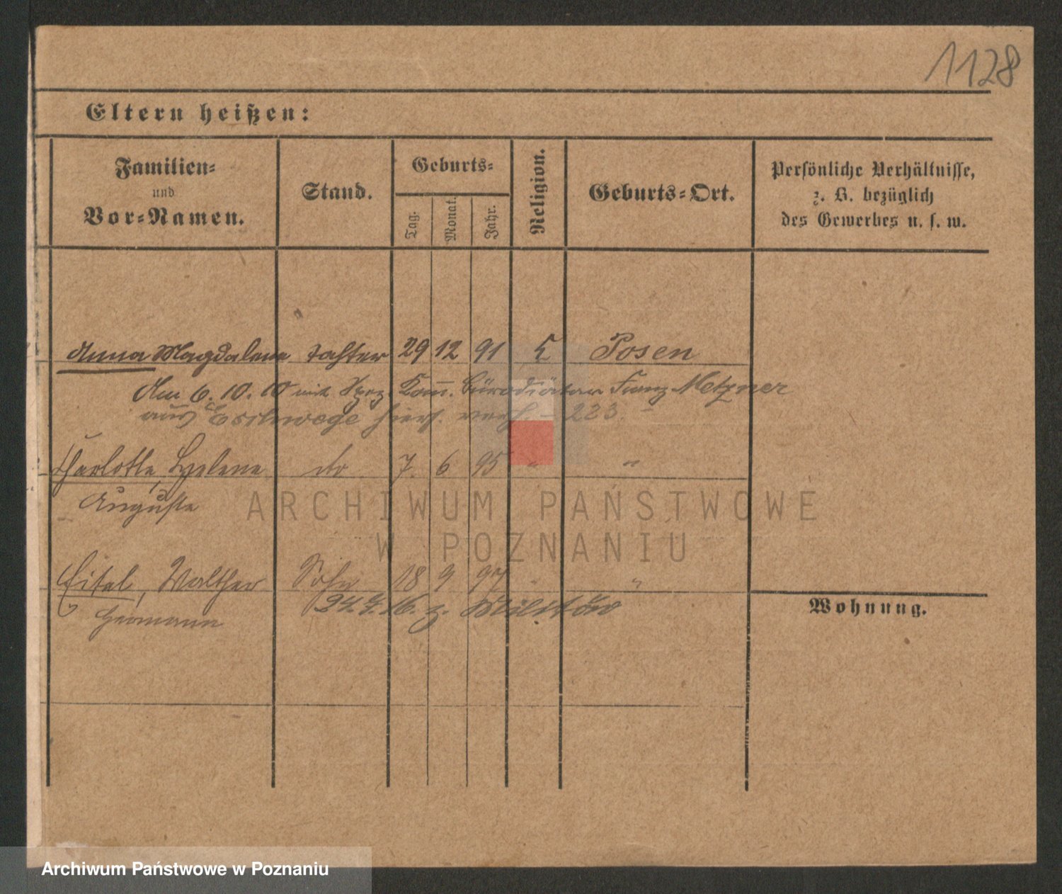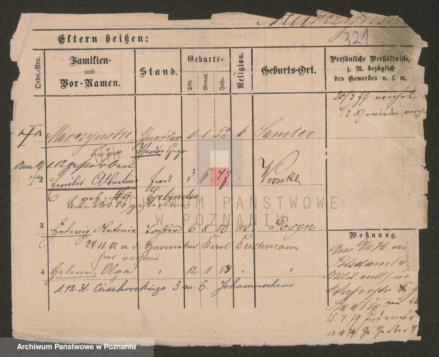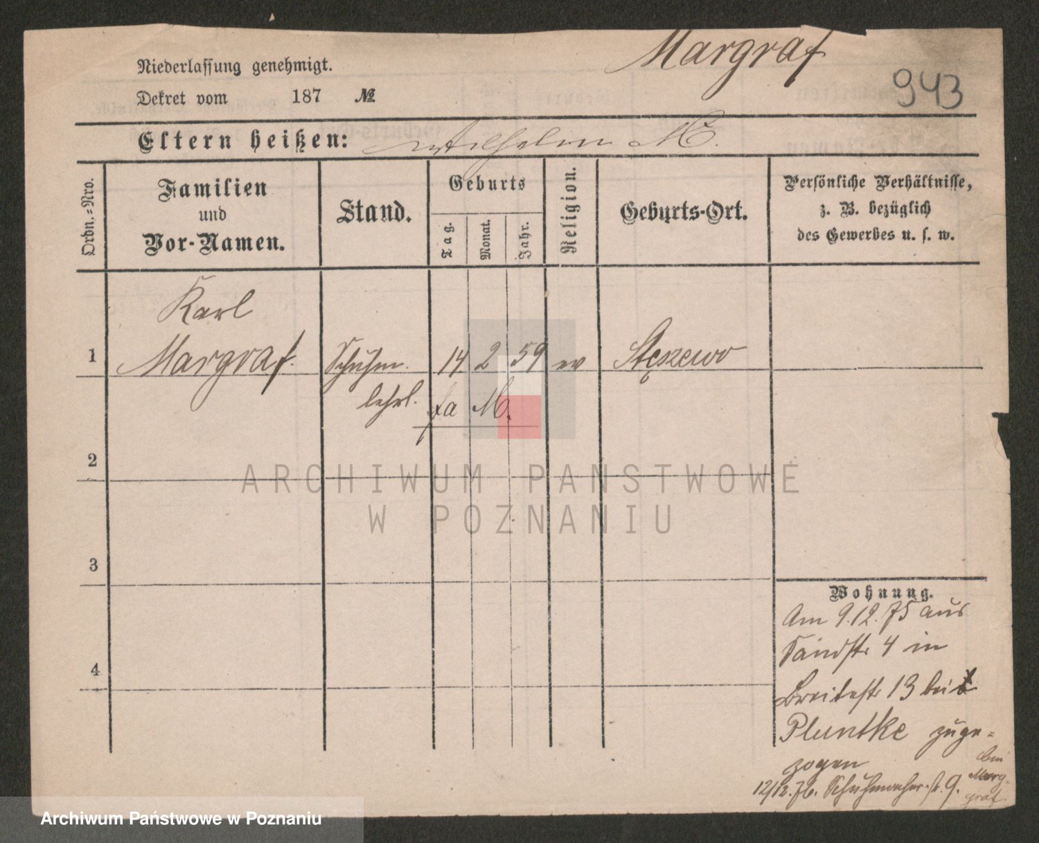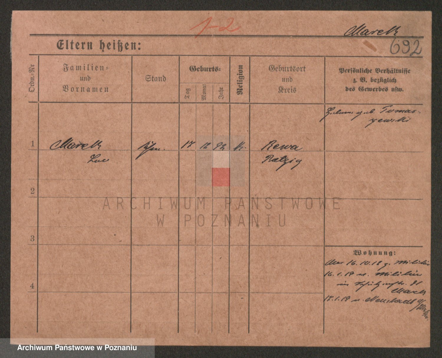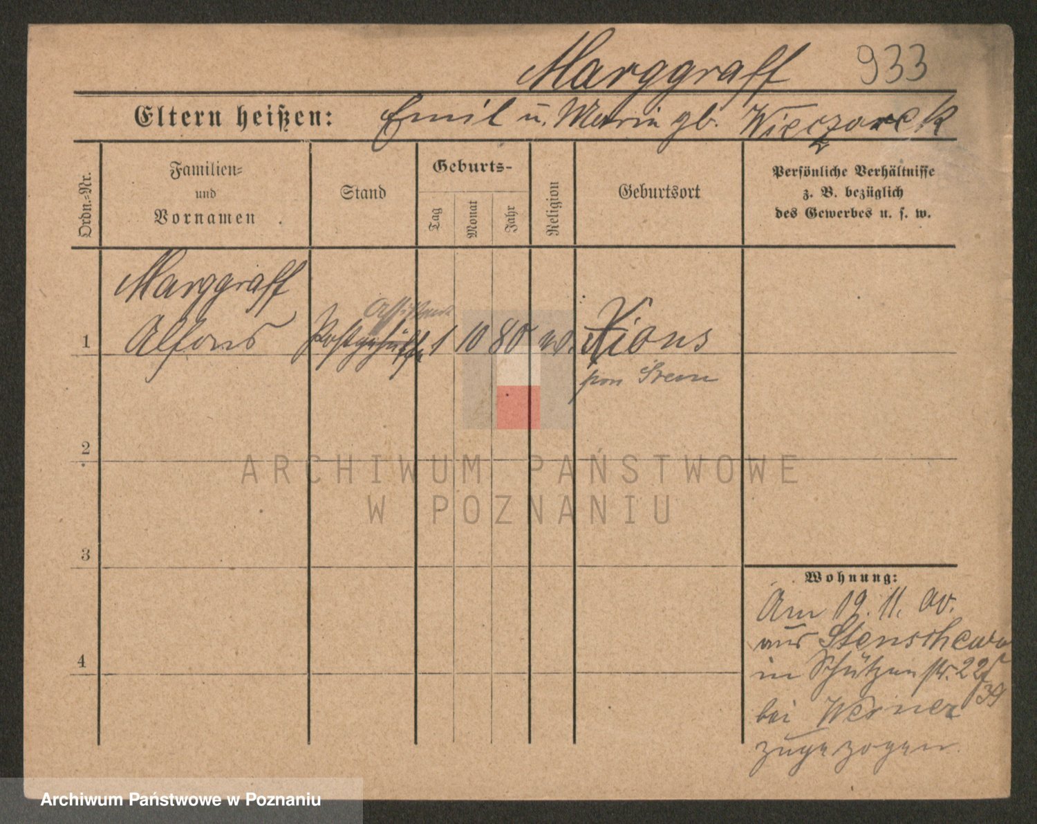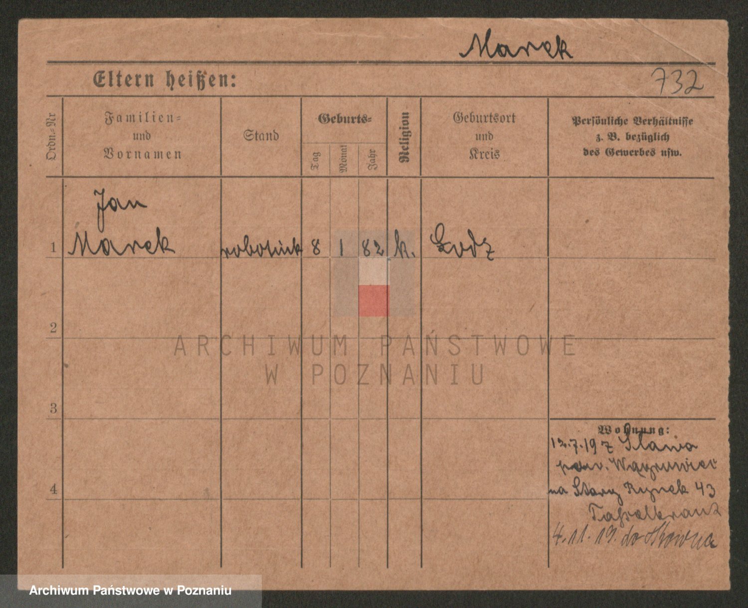 Podgląd karty osobowej dostępny jest po kliknięciu na nazwisko lub ikonkę karty. Można dokonywać powiększenia (ikony na górze) lub przechodzić między kolejnymi skanami (strzałki po bokach).