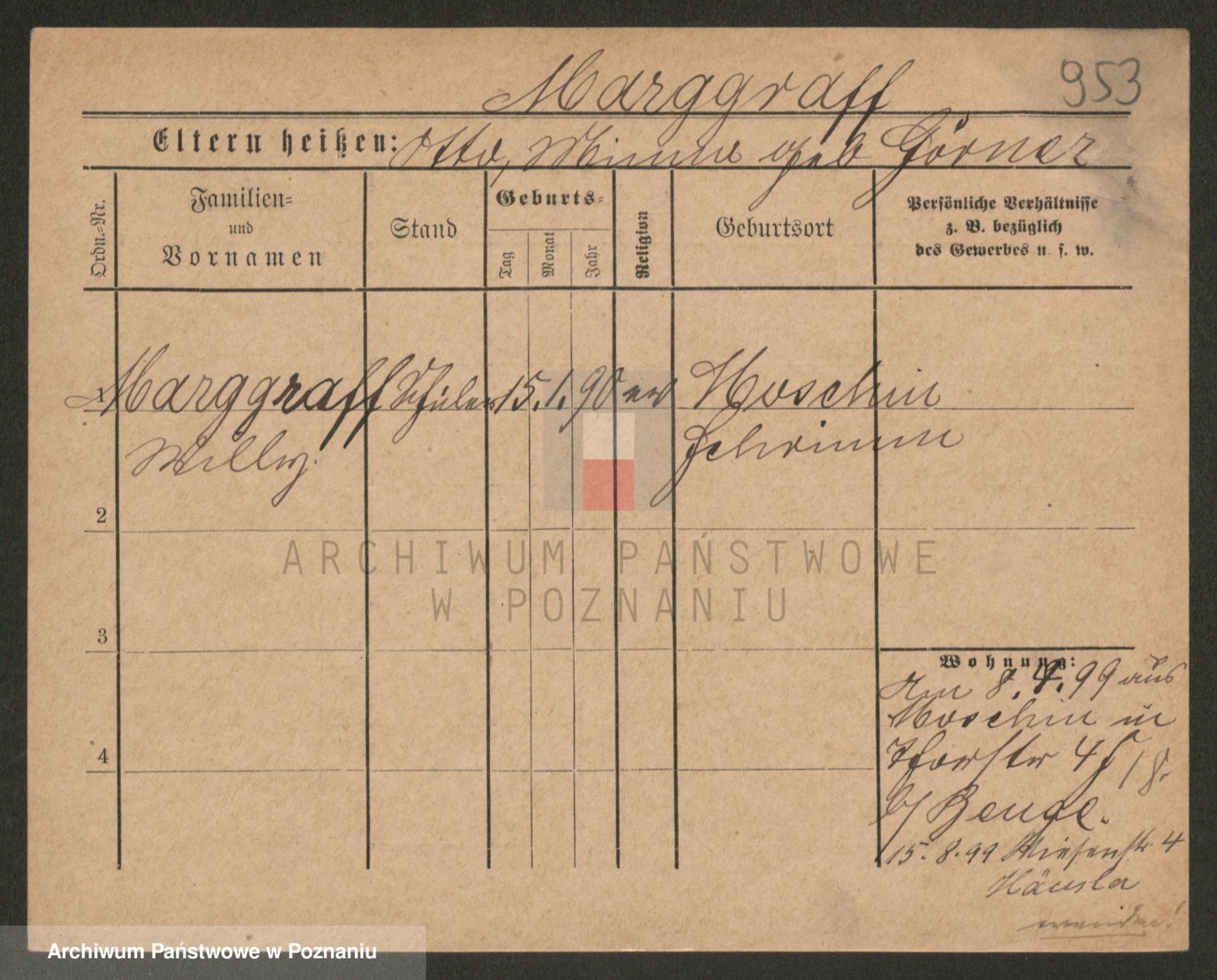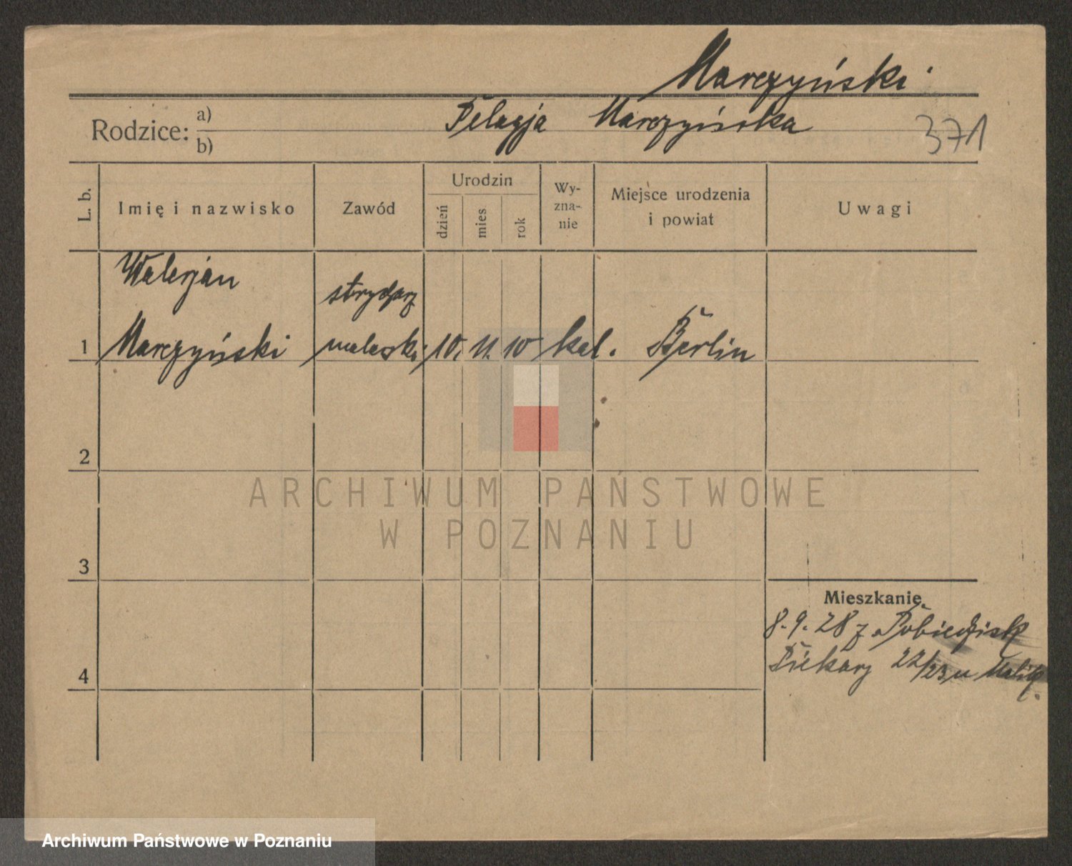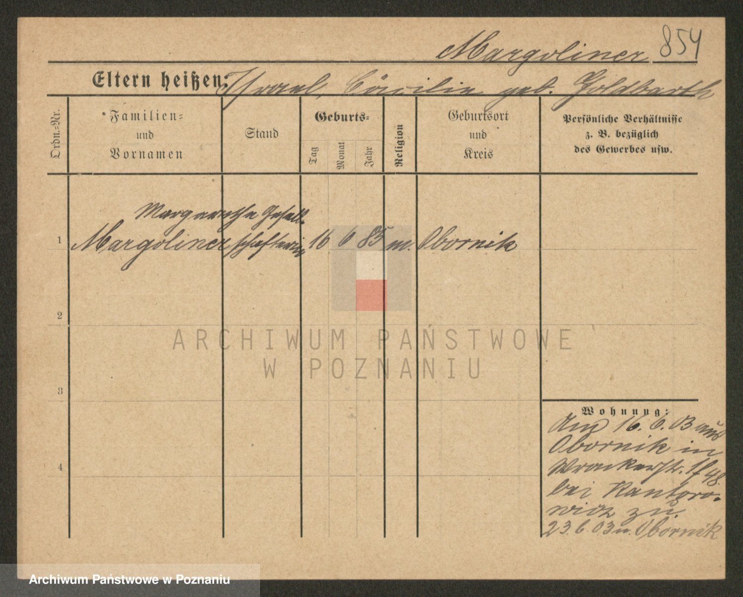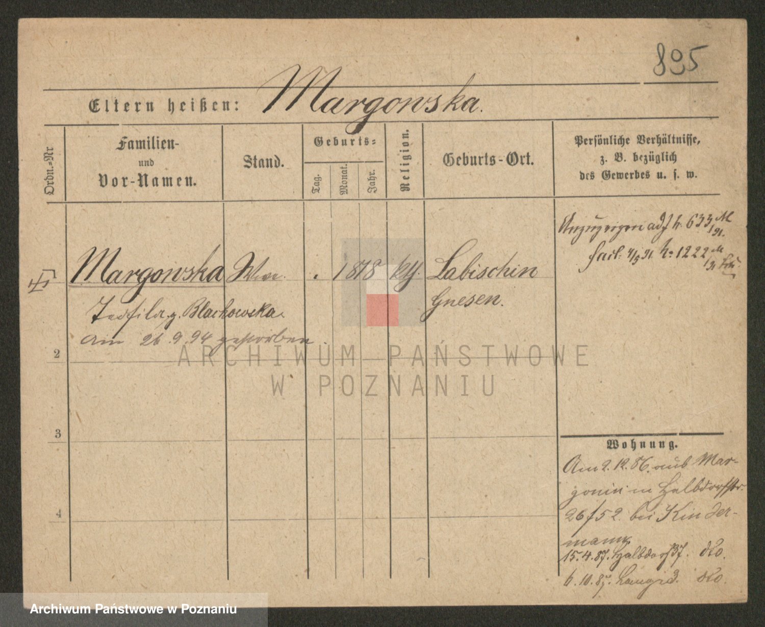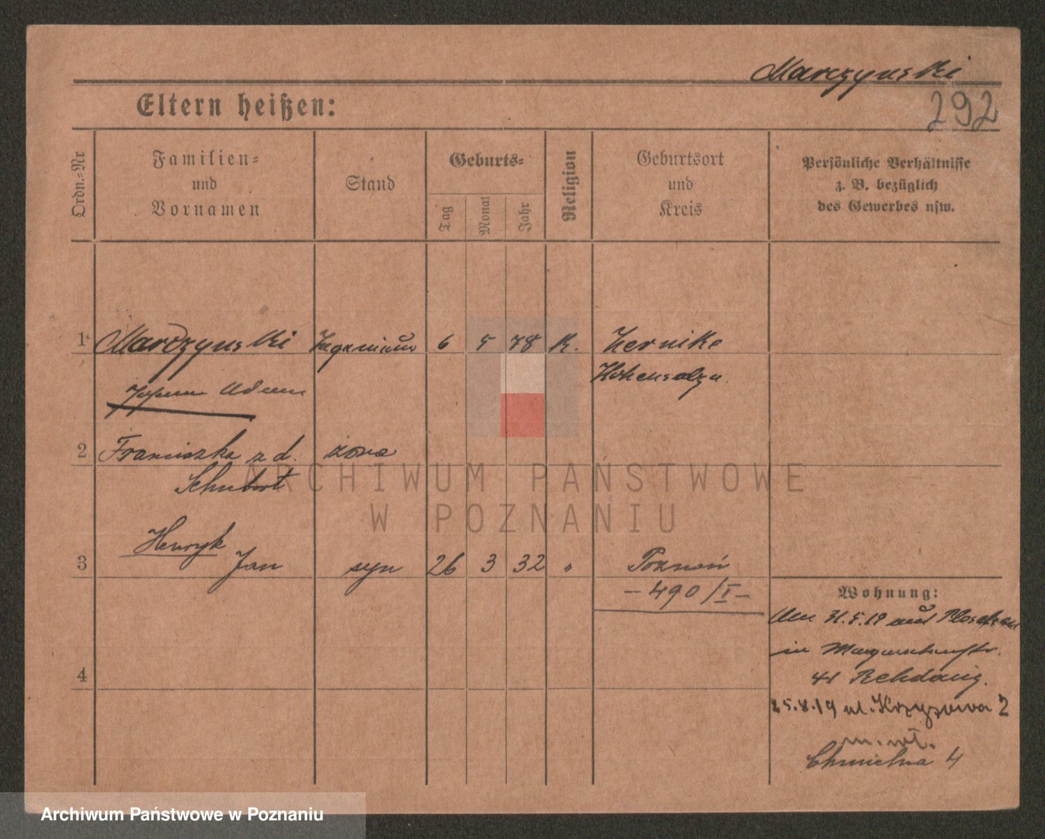 Podgląd karty osobowej dostępny jest po kliknięciu na nazwisko lub ikonkę karty. Można dokonywać powiększenia (ikony na górze) lub przechodzić między kolejnymi skanami (strzałki po bokach).