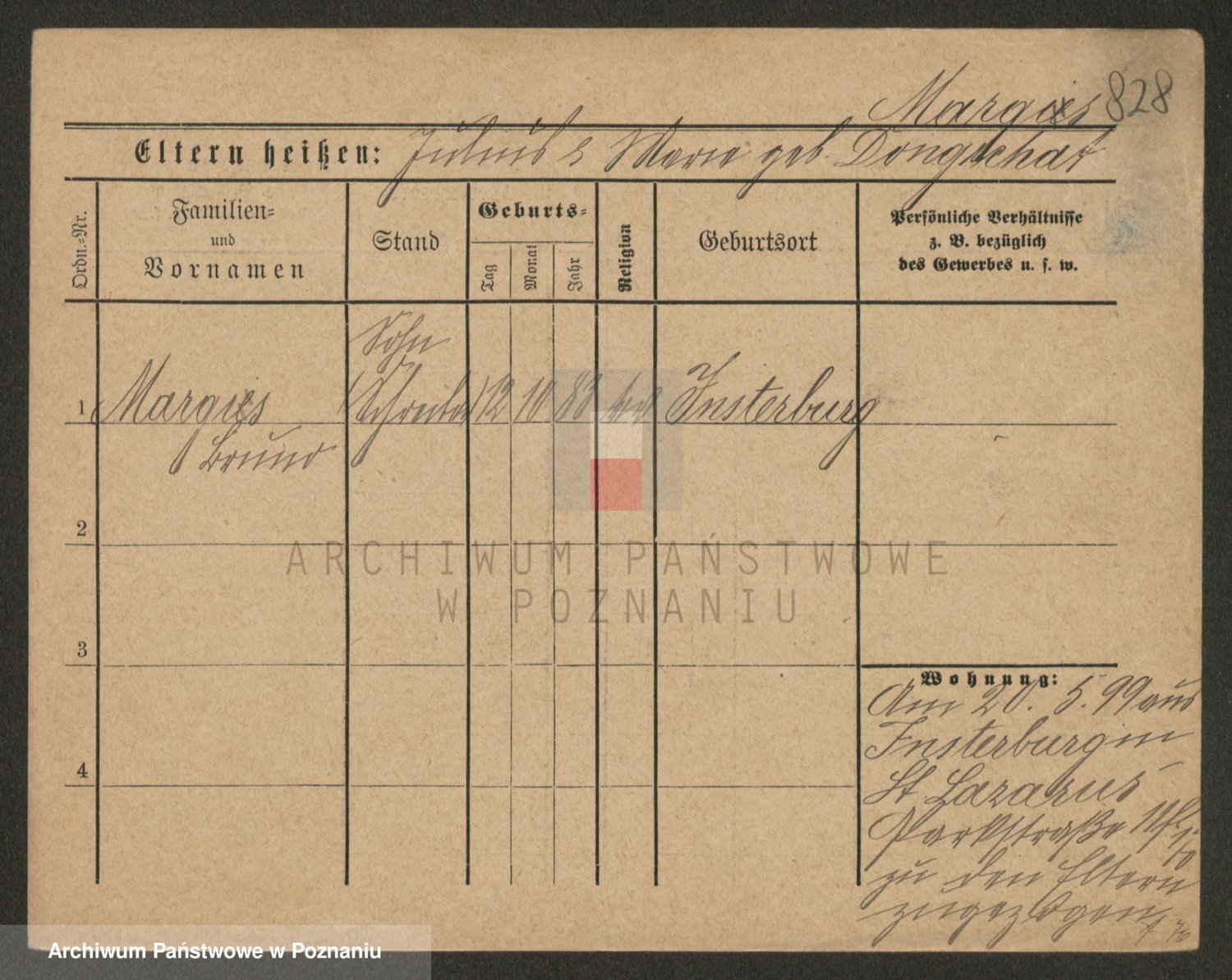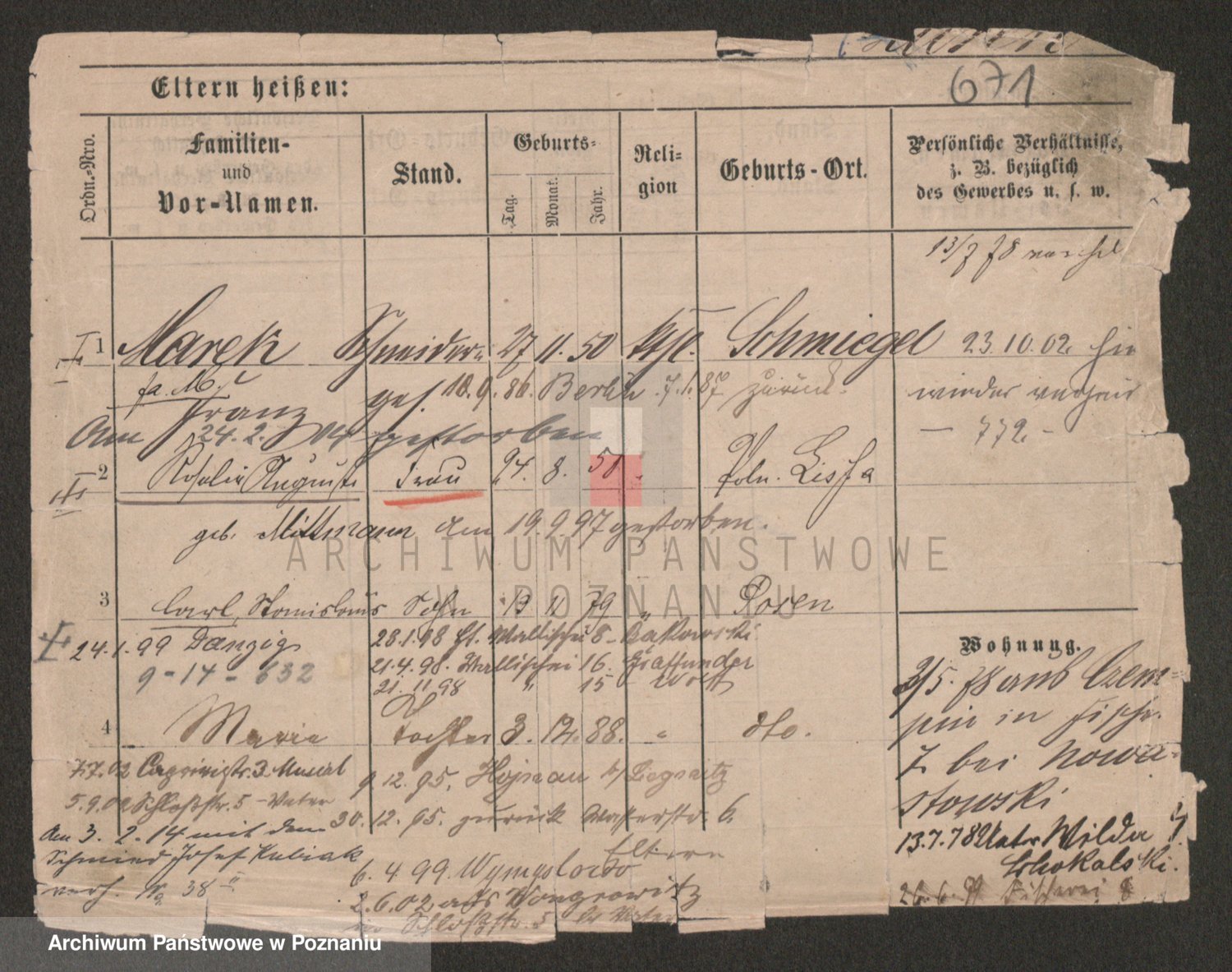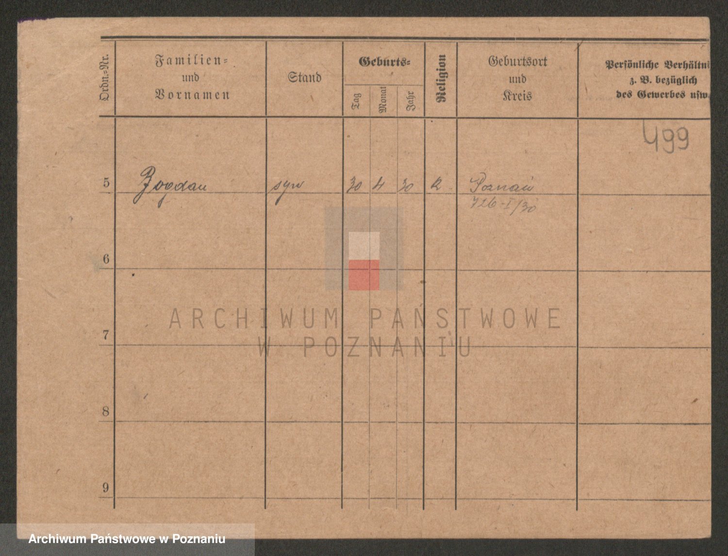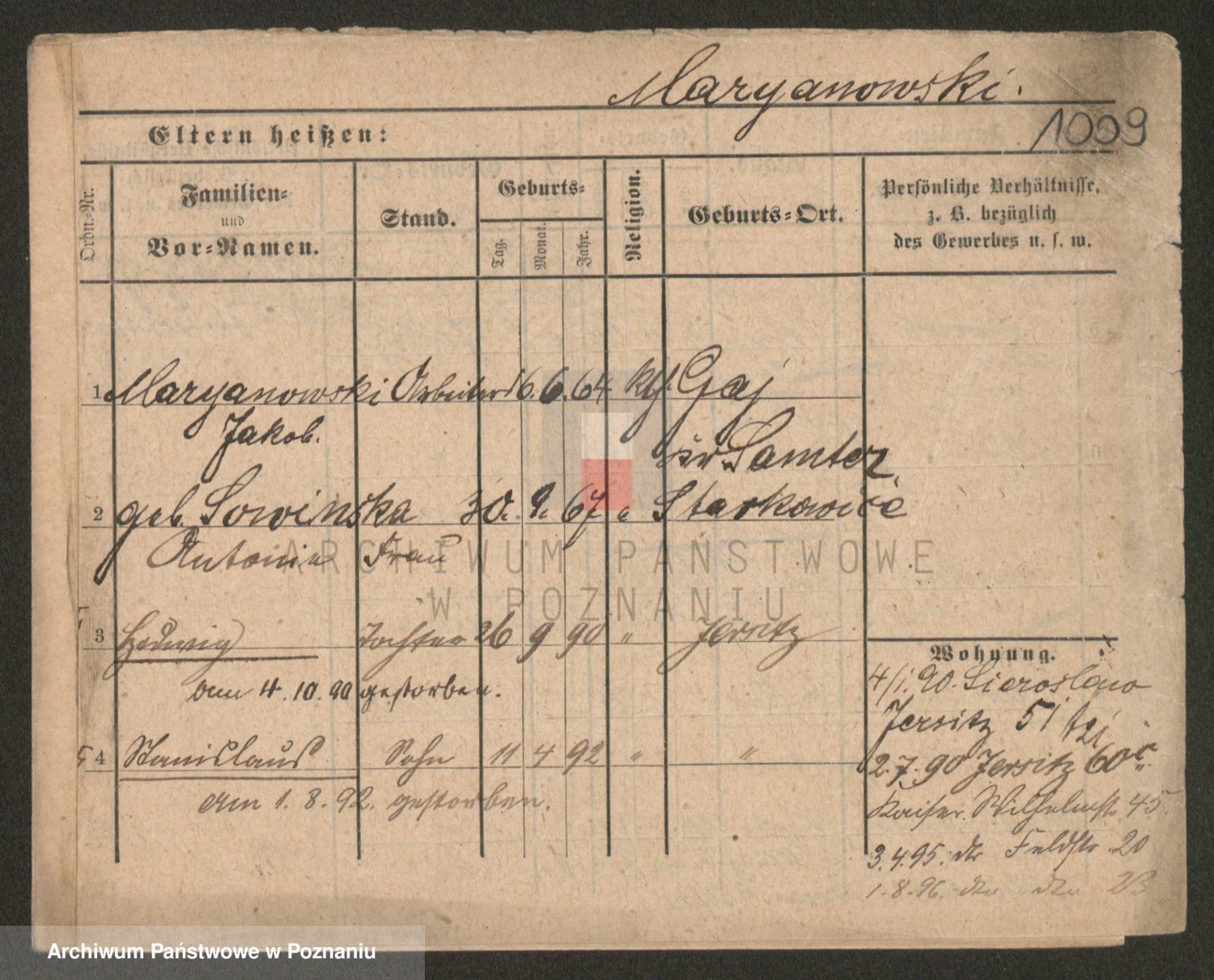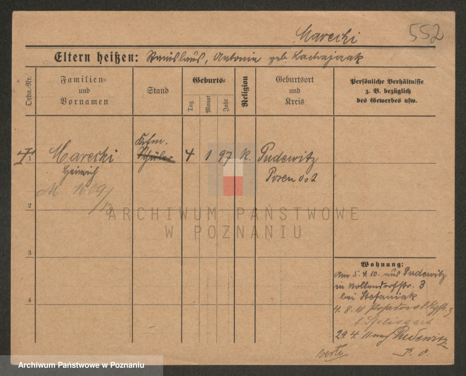 Podgląd karty osobowej dostępny jest po kliknięciu na nazwisko lub ikonkę karty. Można dokonywać powiększenia (ikony na górze) lub przechodzić między kolejnymi skanami (strzałki po bokach).