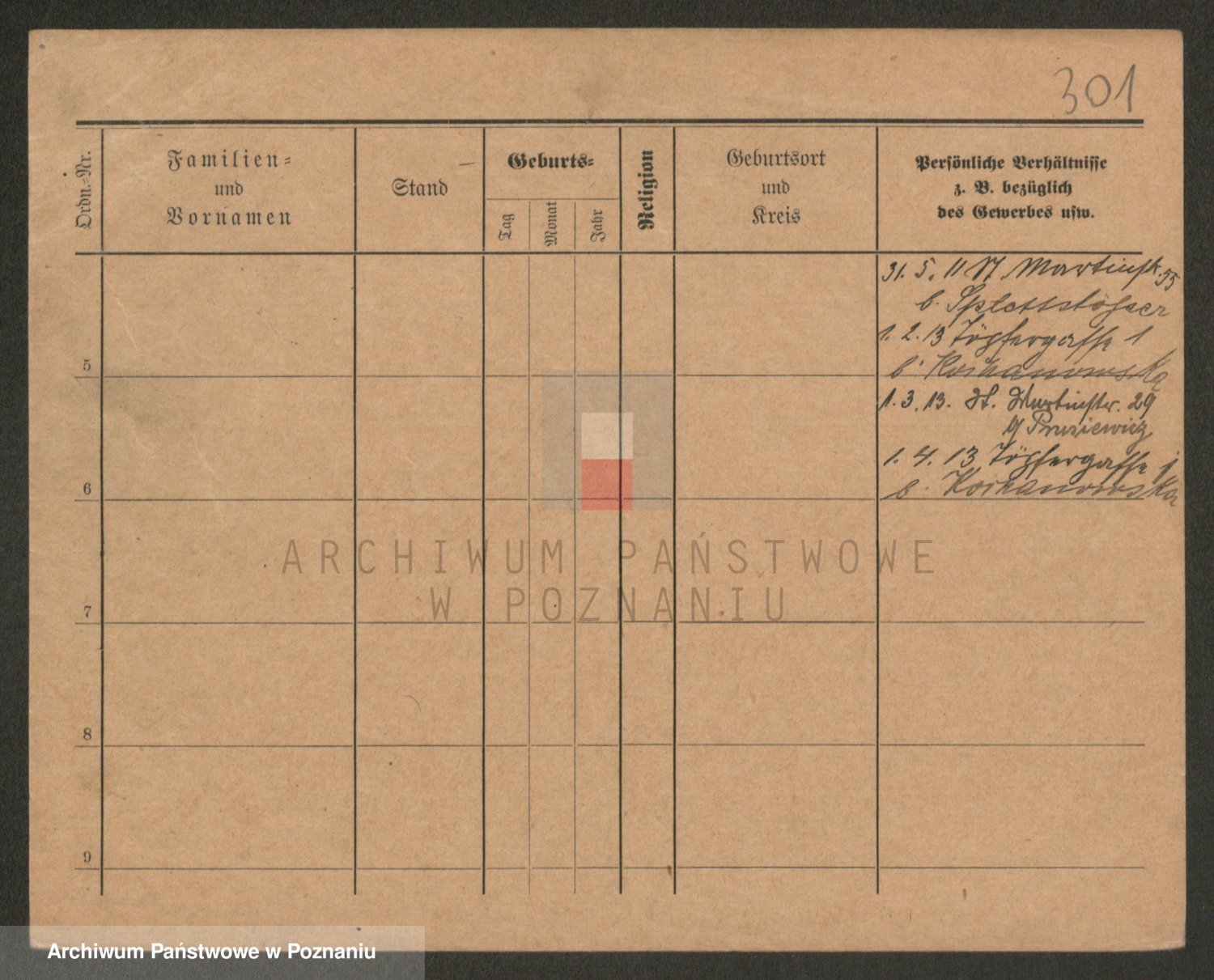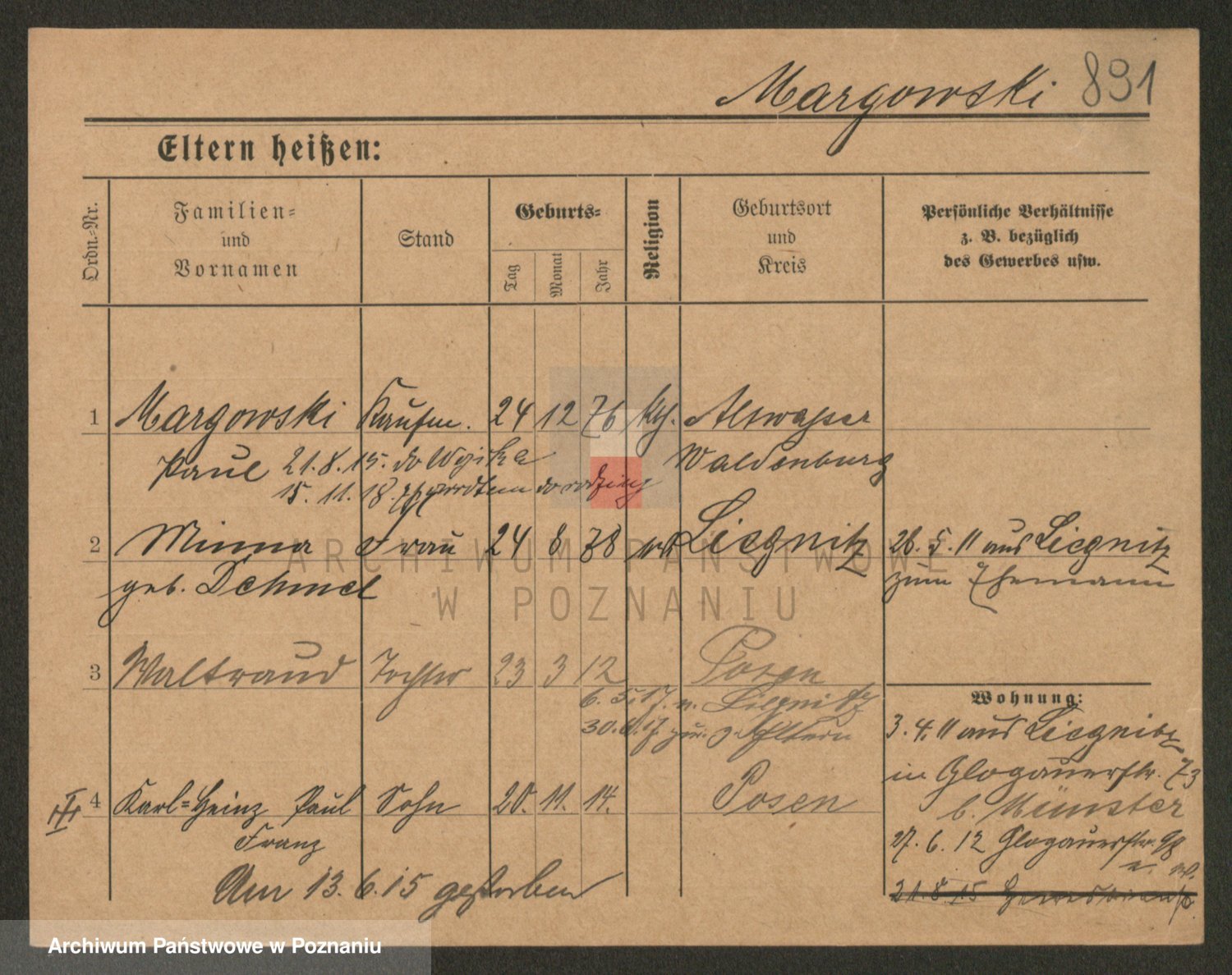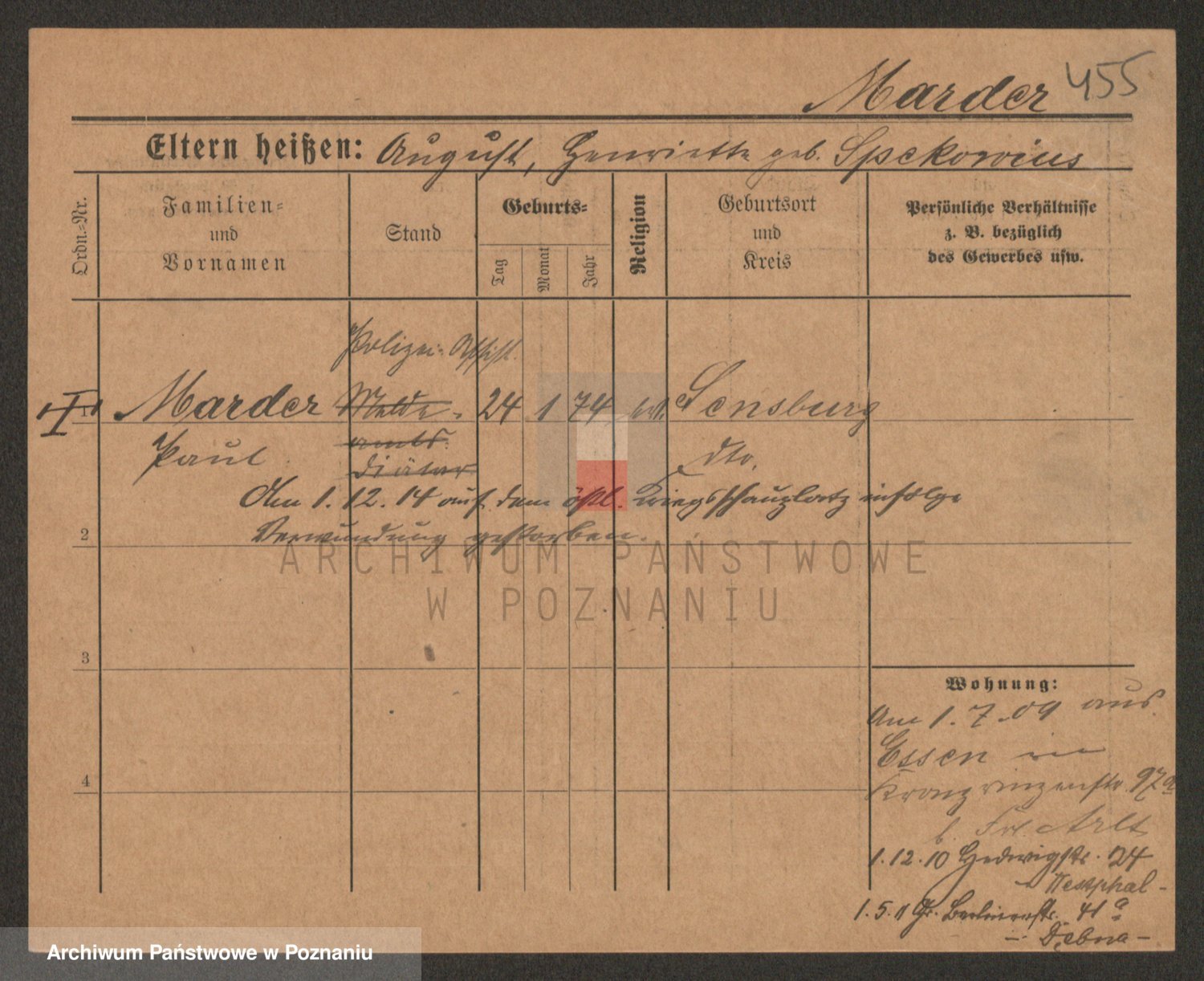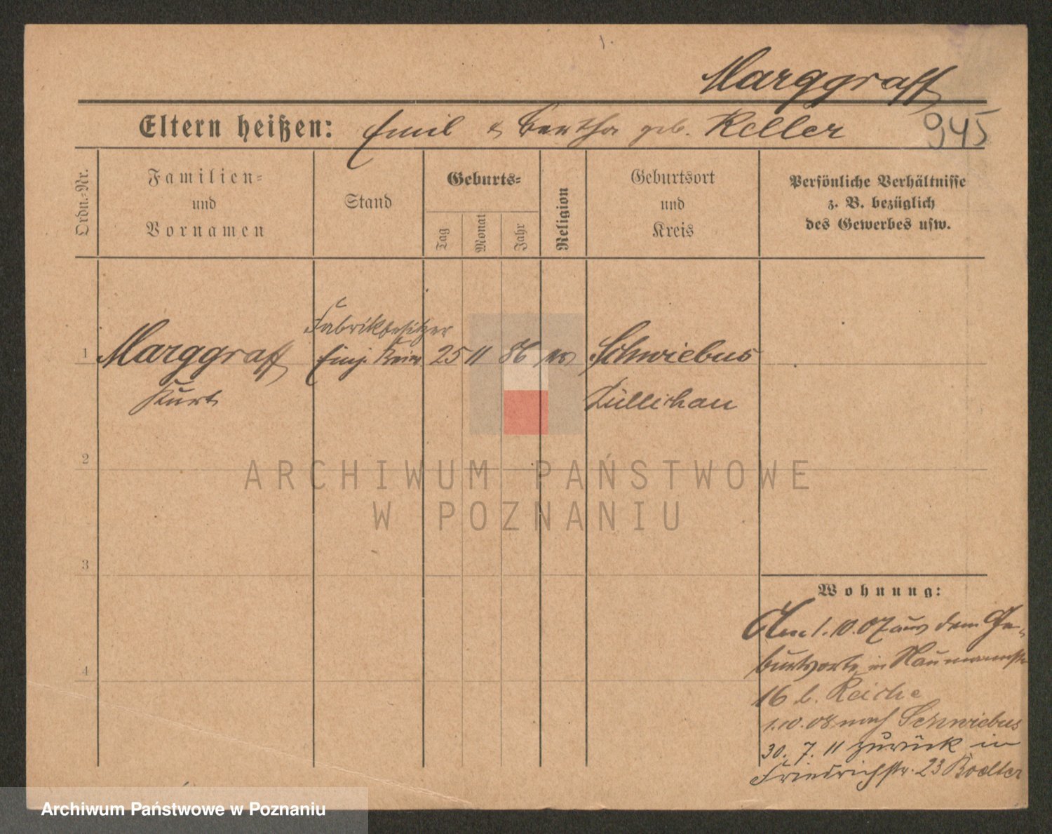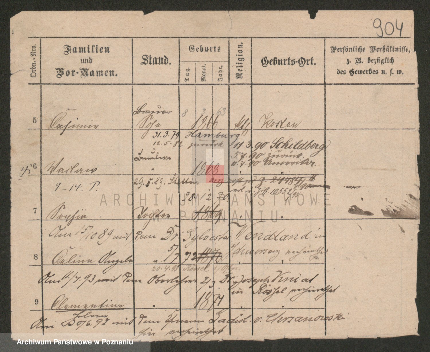 Podgląd karty osobowej dostępny jest po kliknięciu na nazwisko lub ikonkę karty. Można dokonywać powiększenia (ikony na górze) lub przechodzić między kolejnymi skanami (strzałki po bokach).