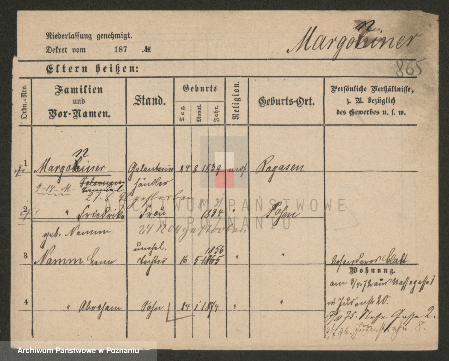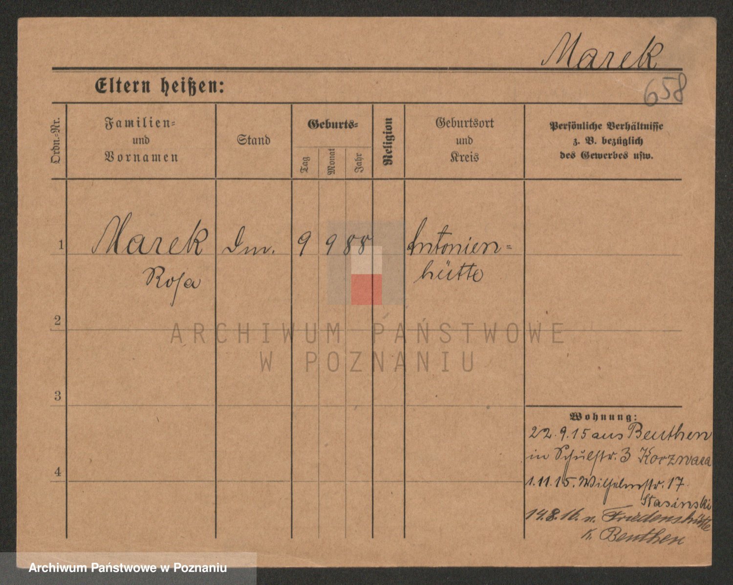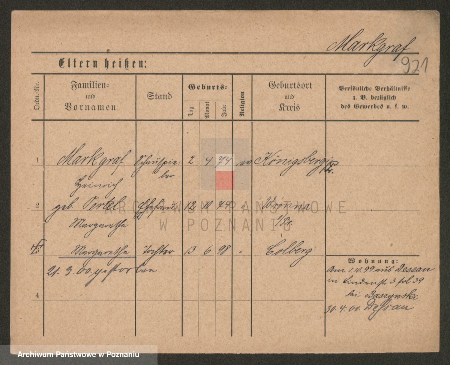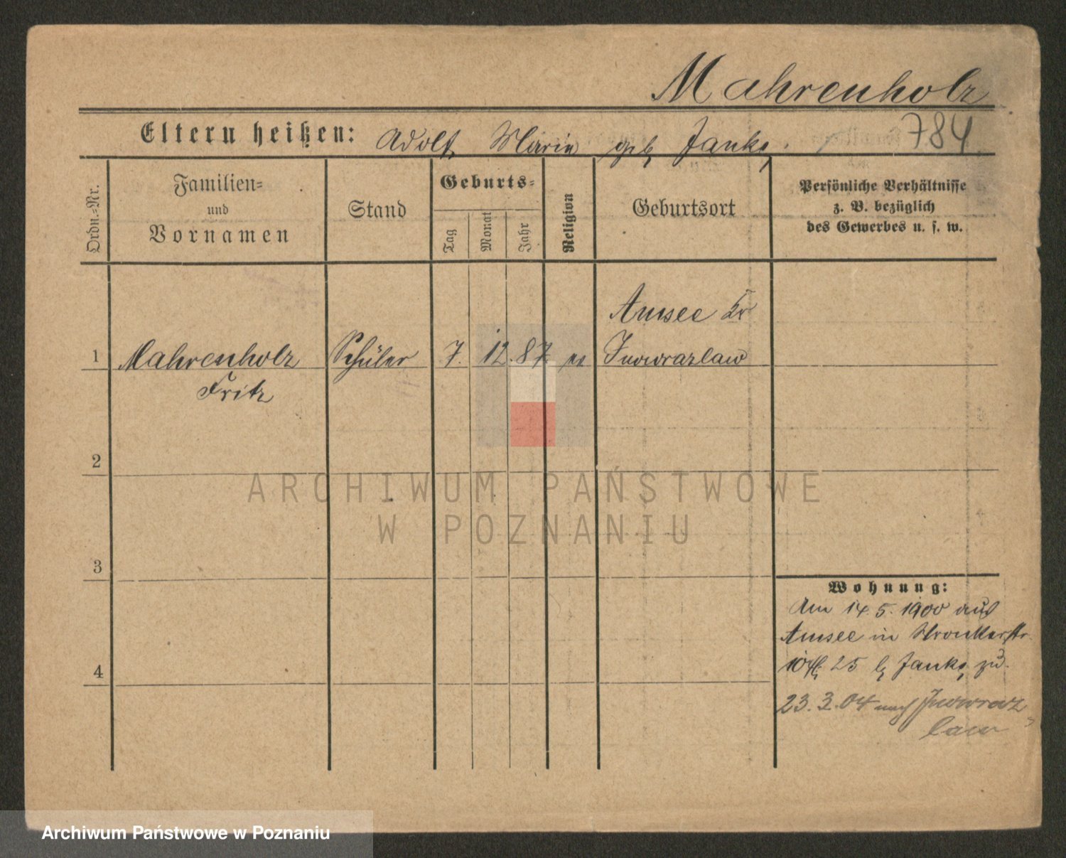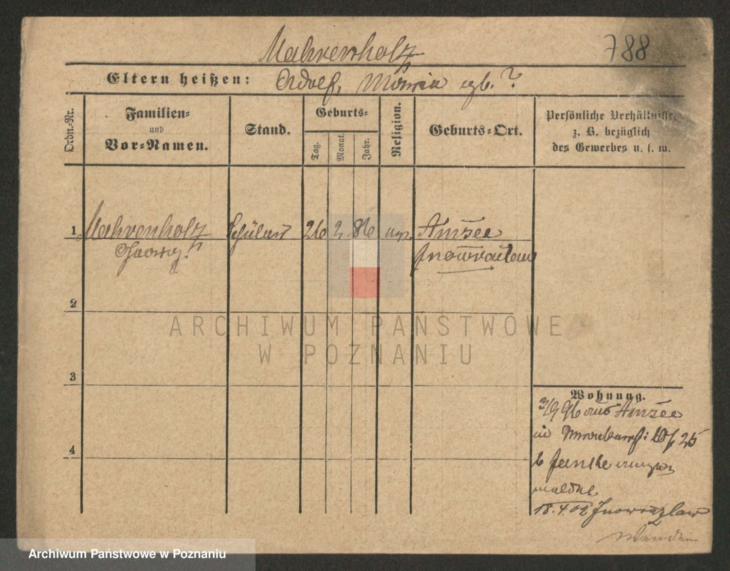 Podgląd karty osobowej dostępny jest po kliknięciu na nazwisko lub ikonkę karty. Można dokonywać powiększenia (ikony na górze) lub przechodzić między kolejnymi skanami (strzałki po bokach).