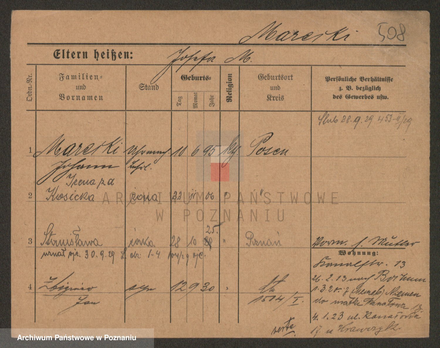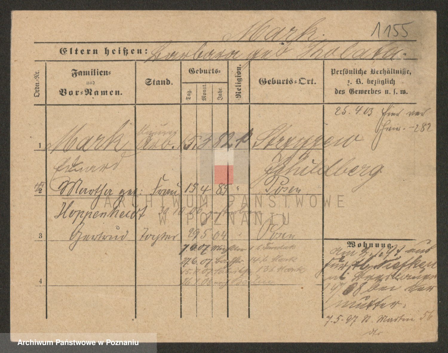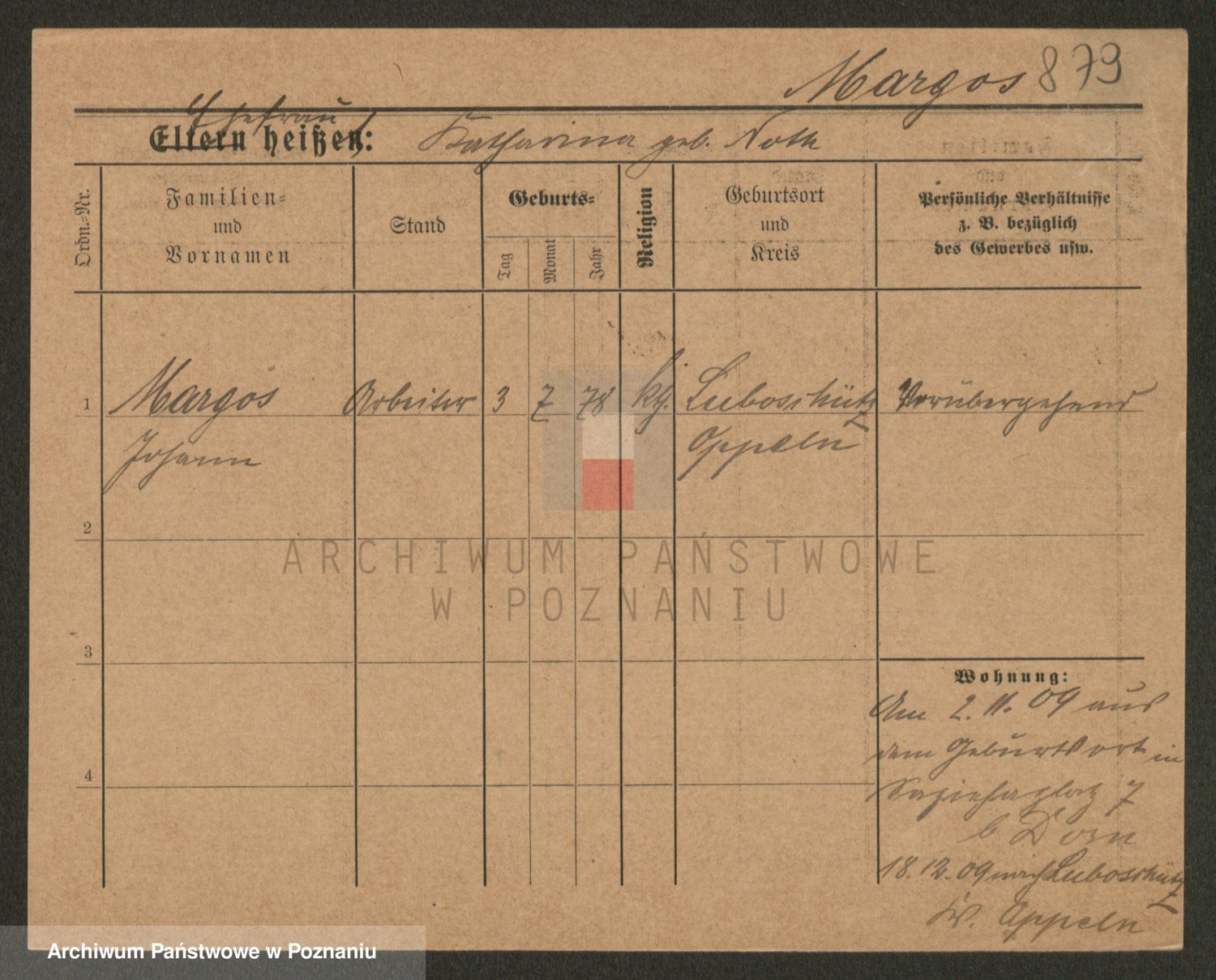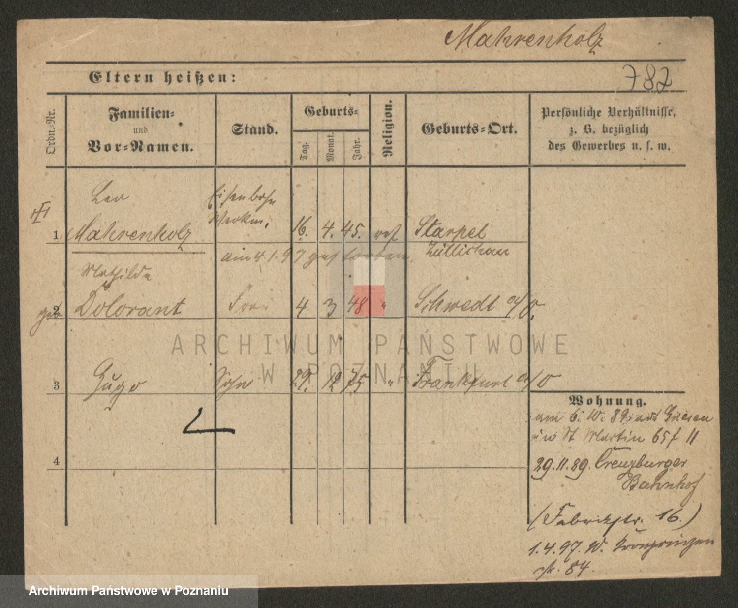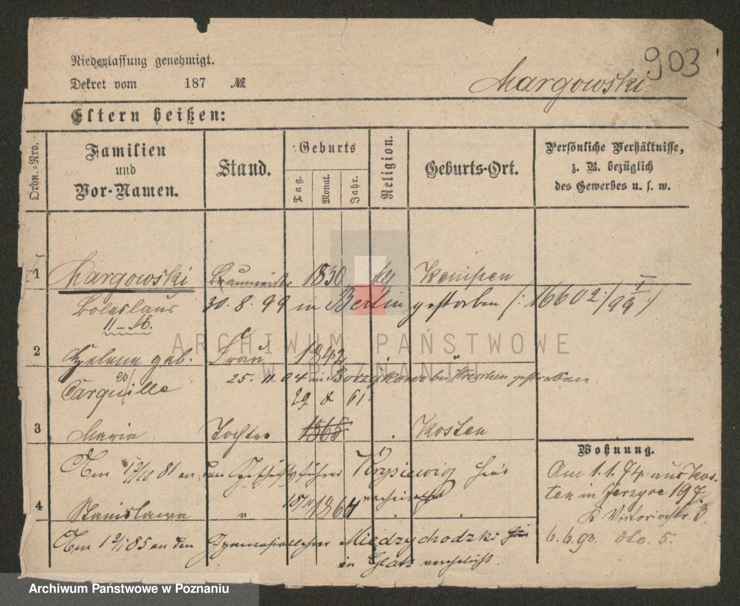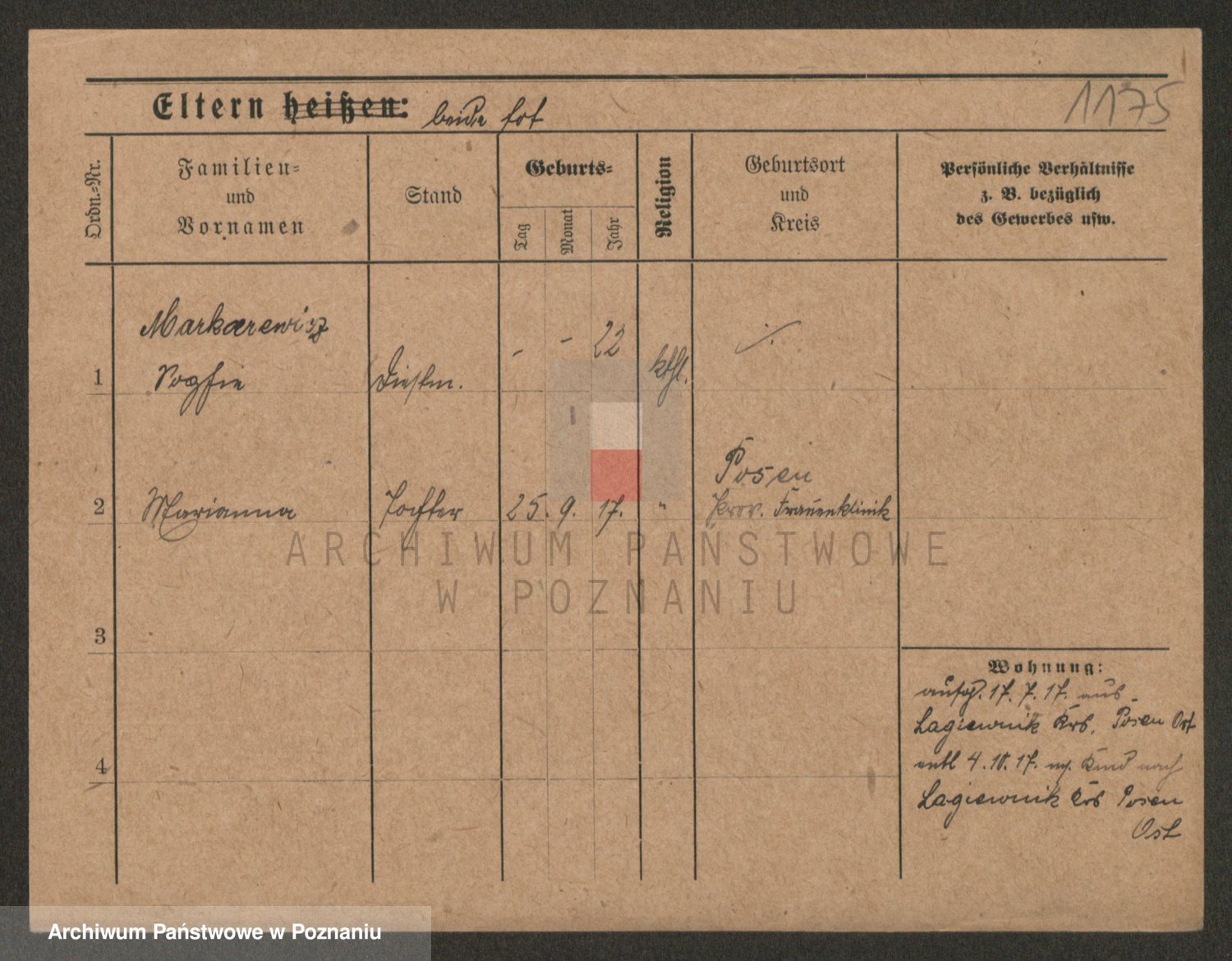 Podgląd karty osobowej dostępny jest po kliknięciu na nazwisko lub ikonkę karty. Można dokonywać powiększenia (ikony na górze) lub przechodzić między kolejnymi skanami (strzałki po bokach).