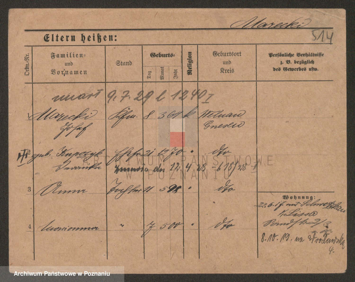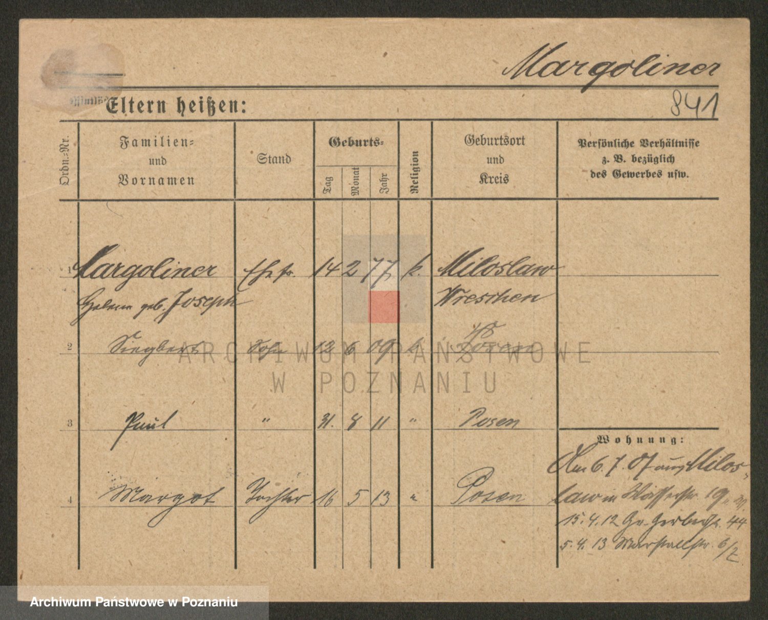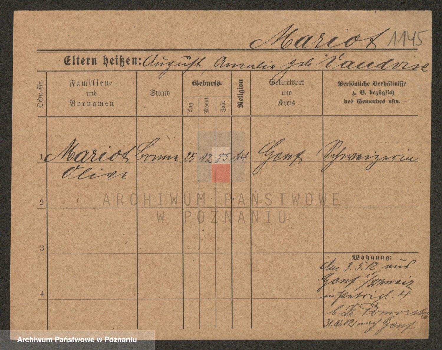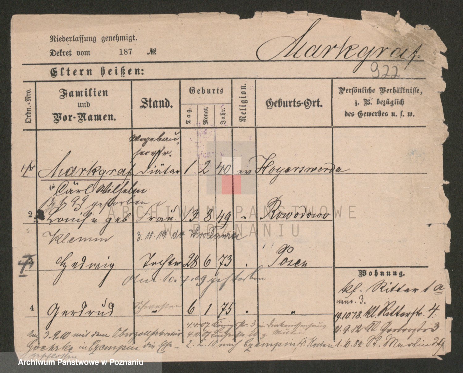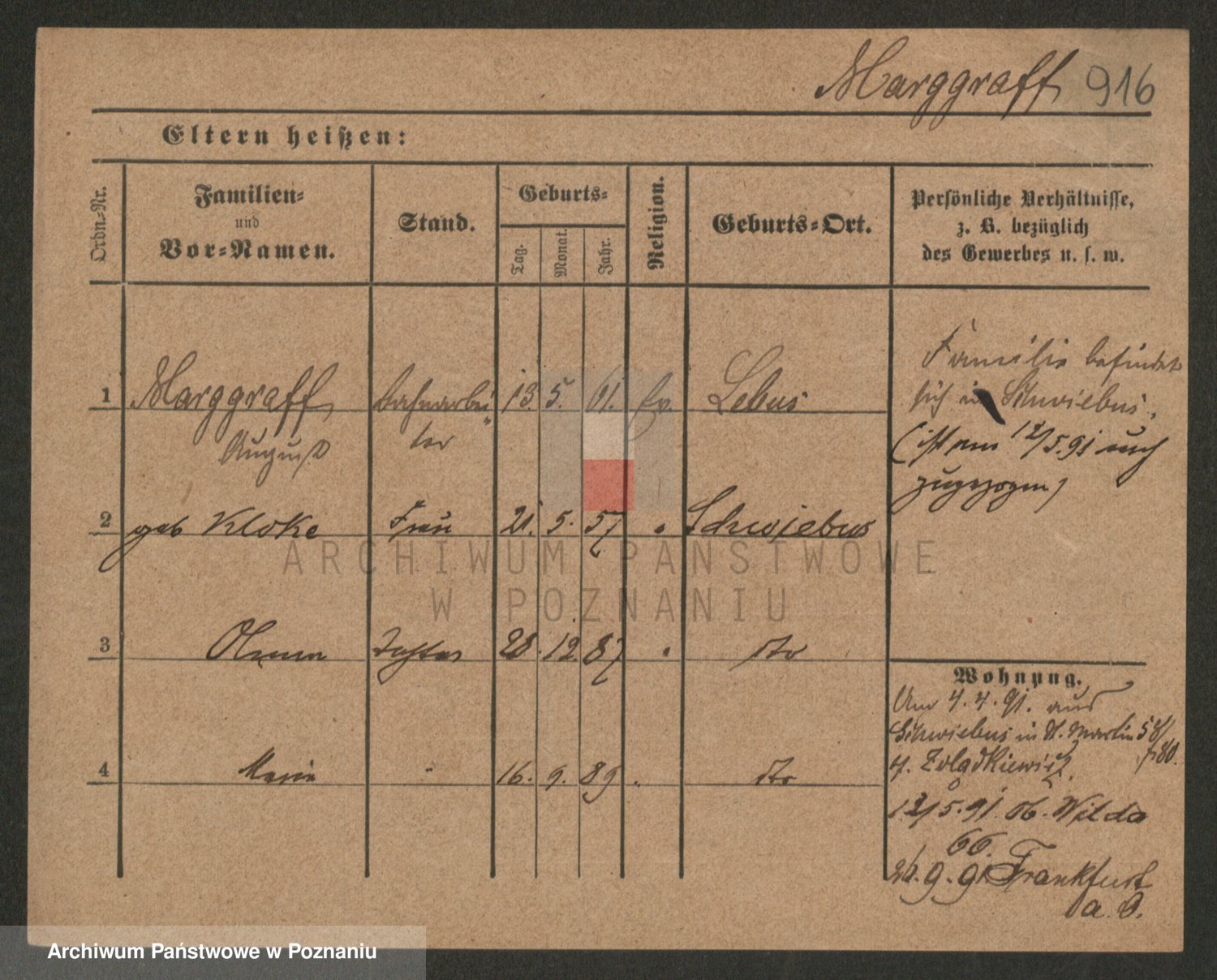 Podgląd karty osobowej dostępny jest po kliknięciu na nazwisko lub ikonkę karty. Można dokonywać powiększenia (ikony na górze) lub przechodzić między kolejnymi skanami (strzałki po bokach).