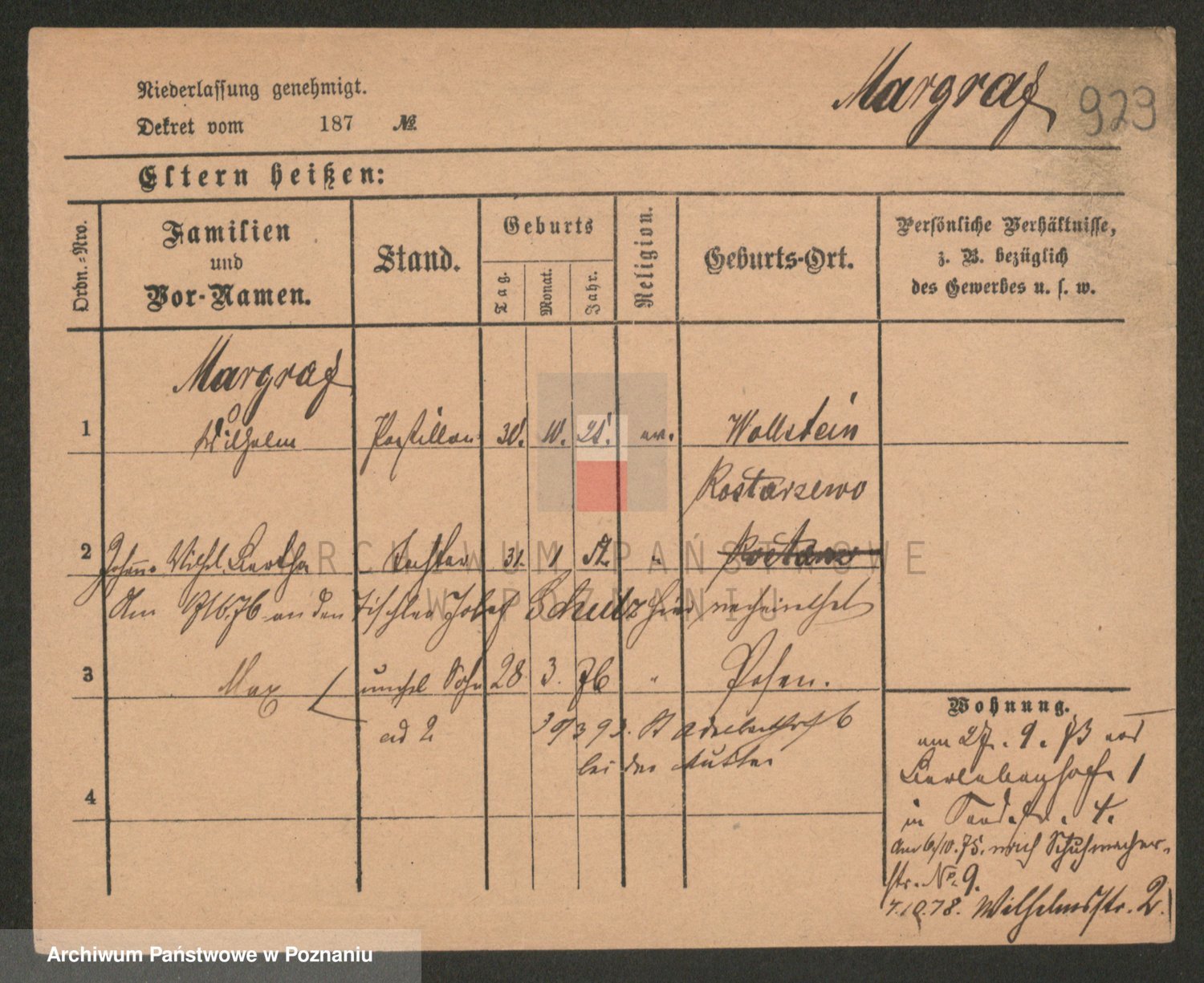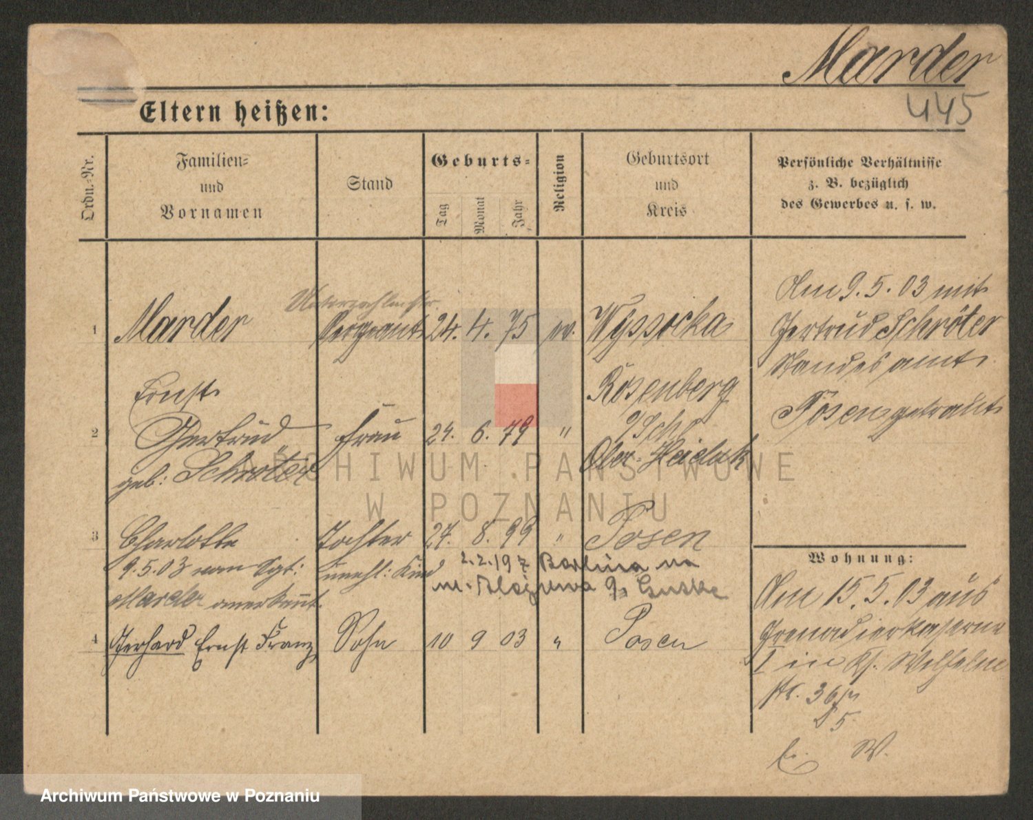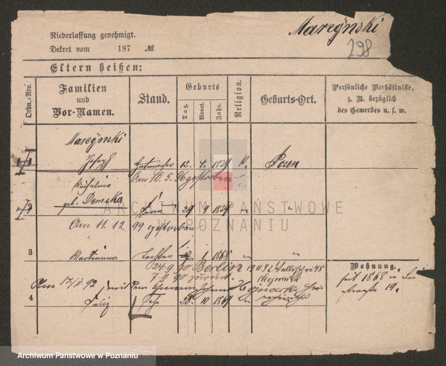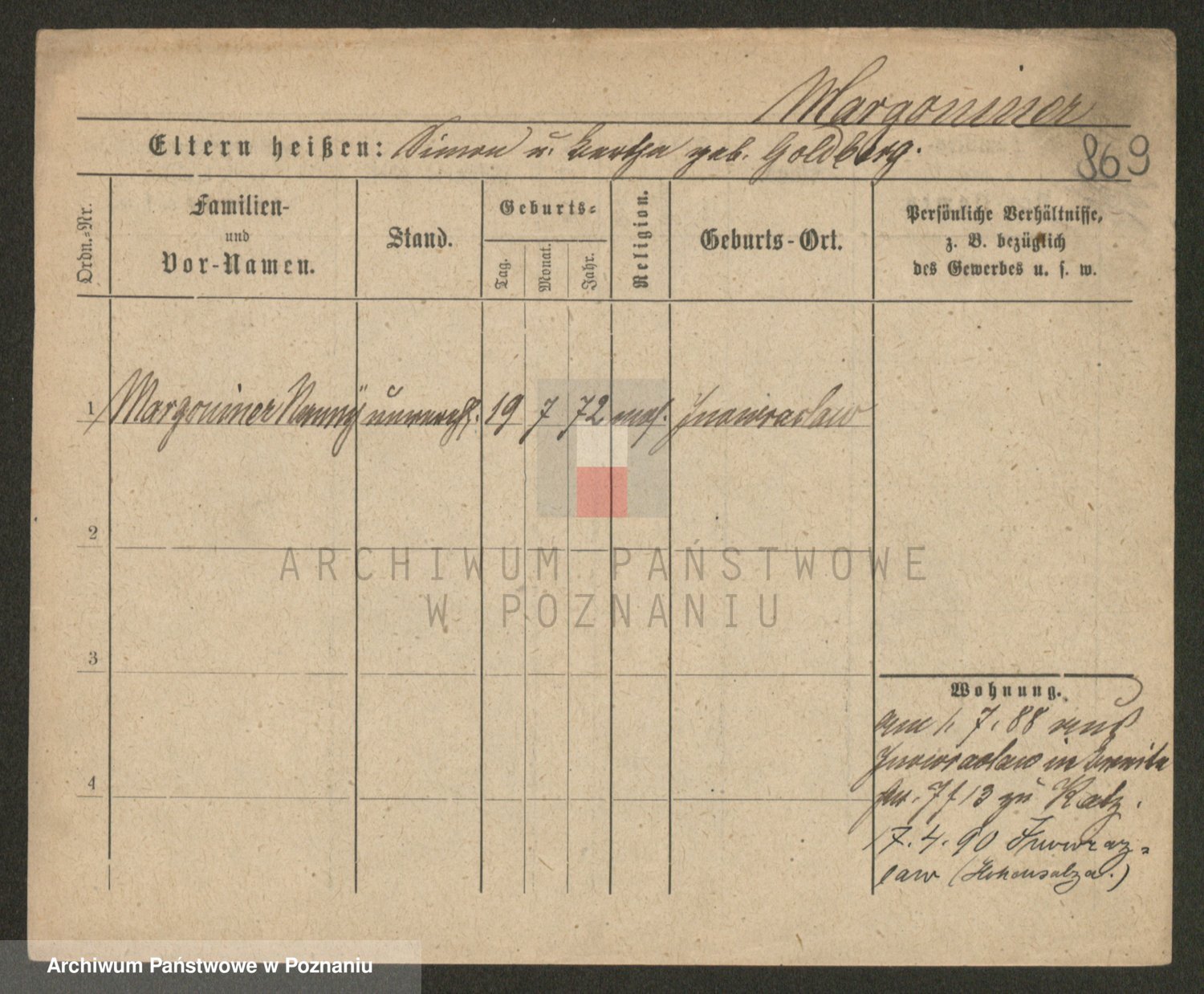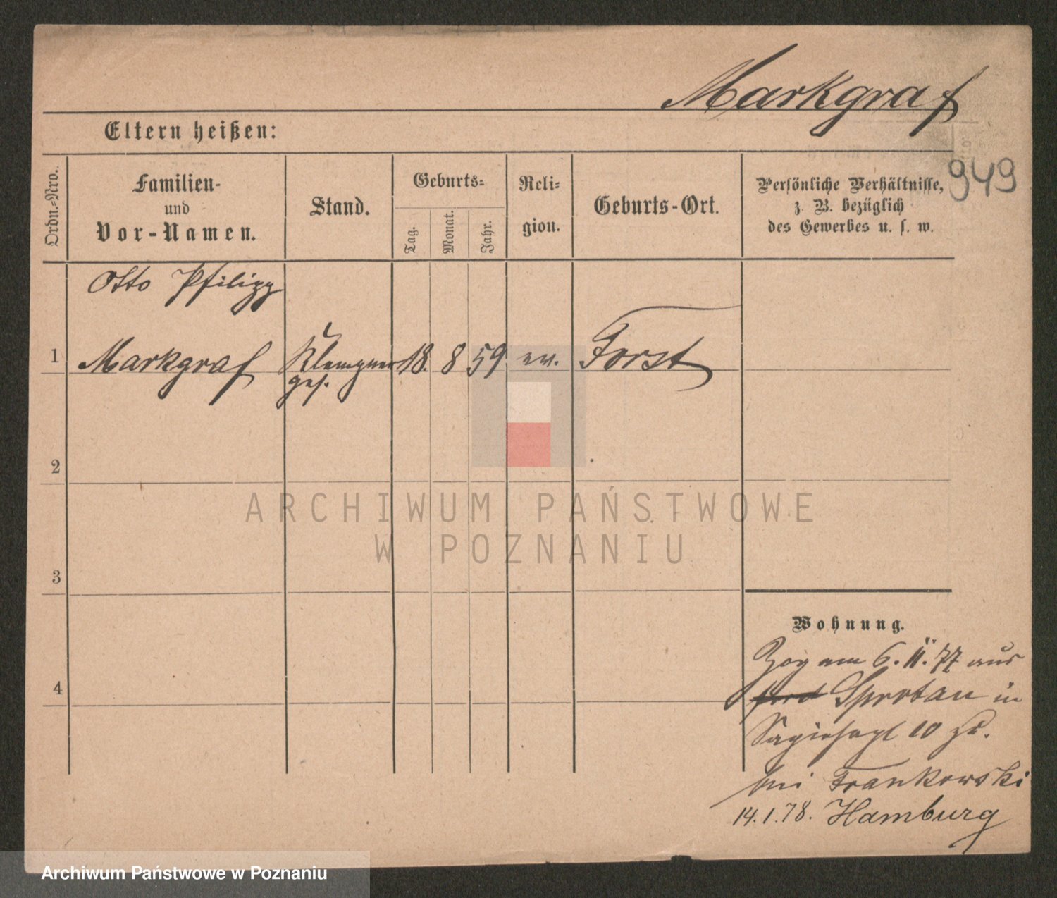 Podgląd karty osobowej dostępny jest po kliknięciu na nazwisko lub ikonkę karty. Można dokonywać powiększenia (ikony na górze) lub przechodzić między kolejnymi skanami (strzałki po bokach).