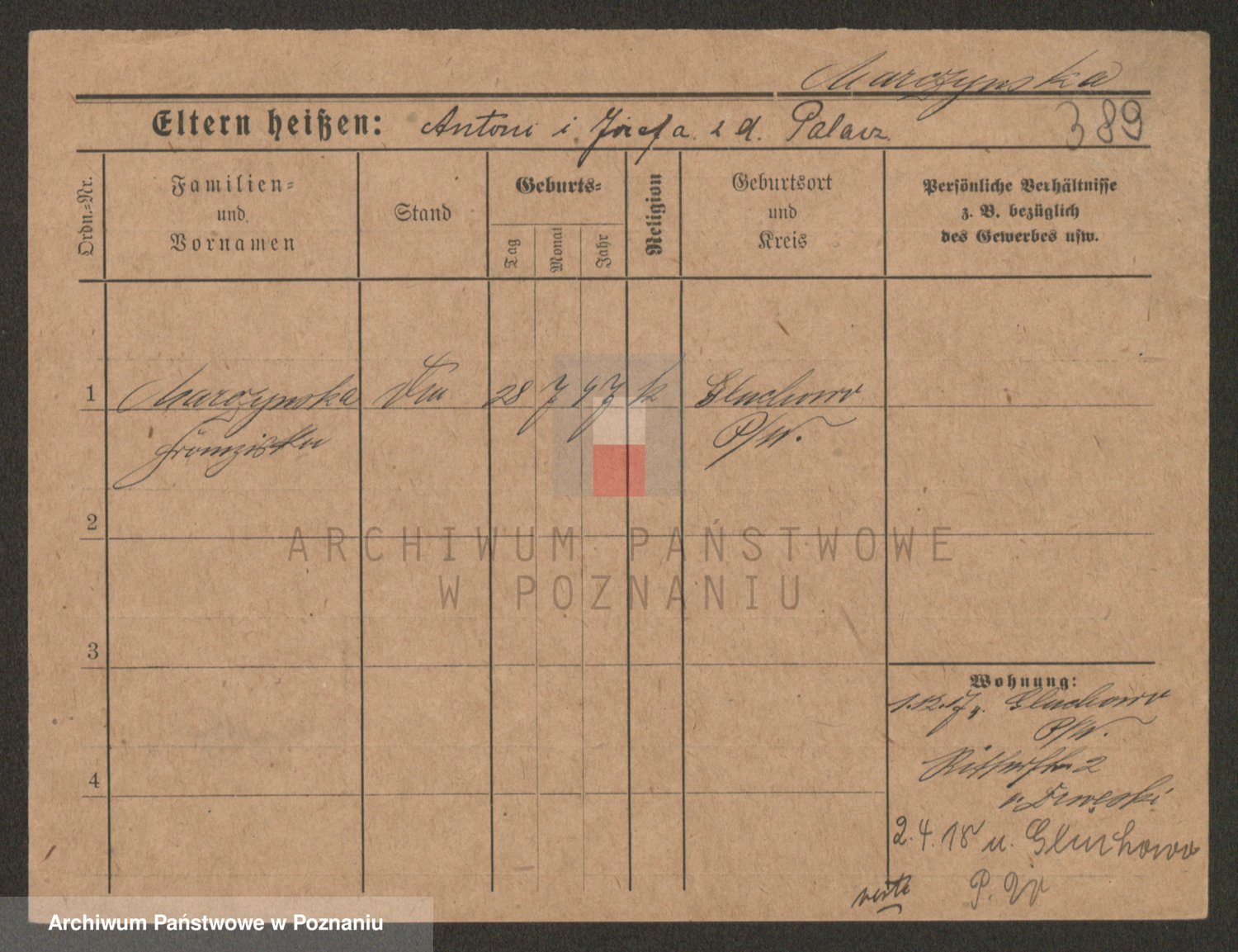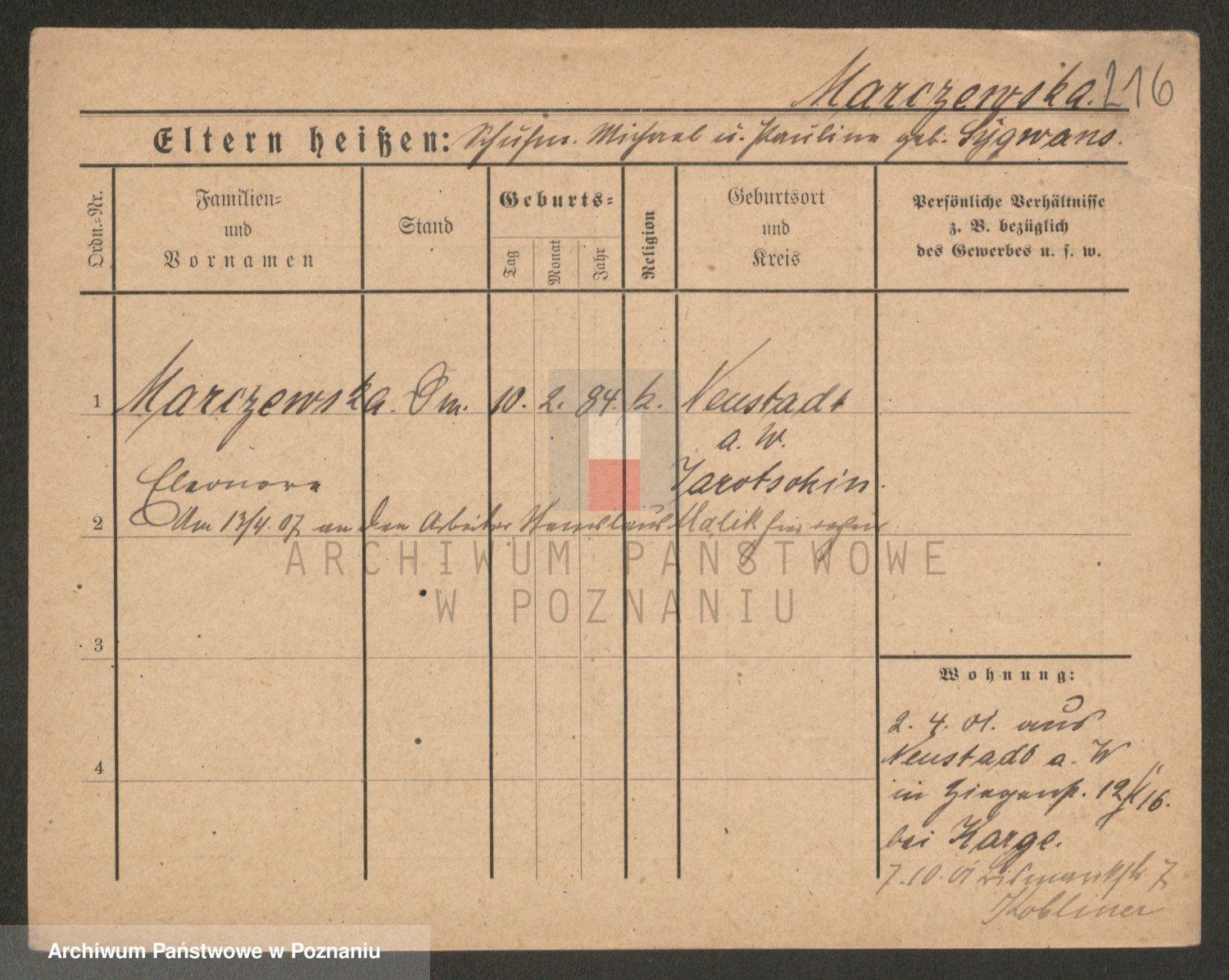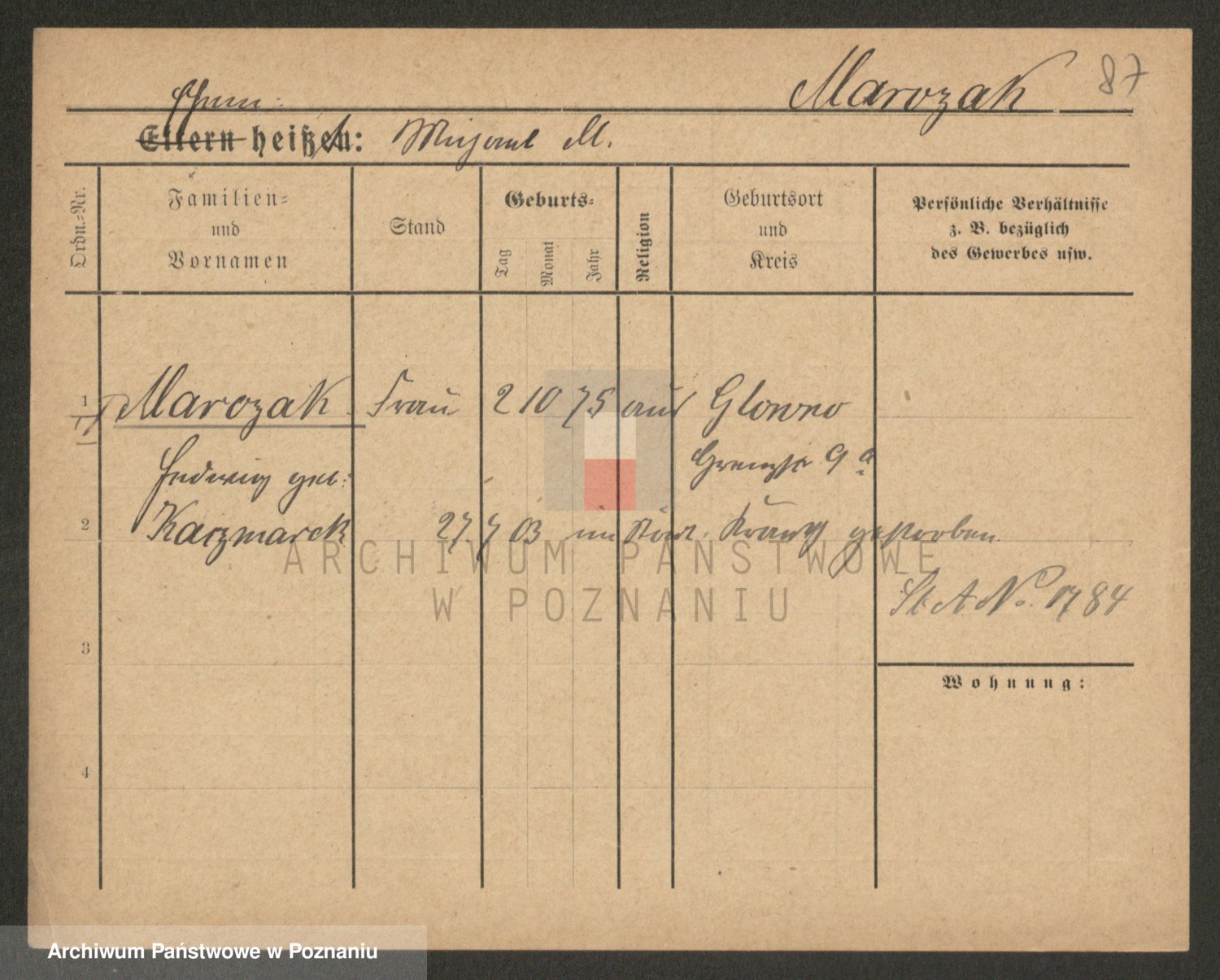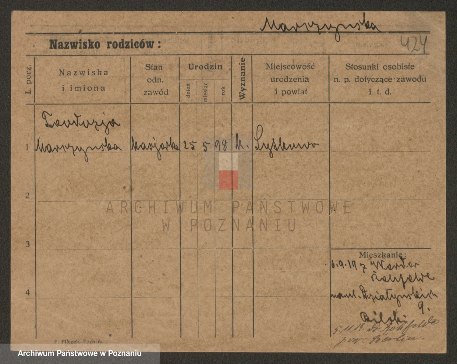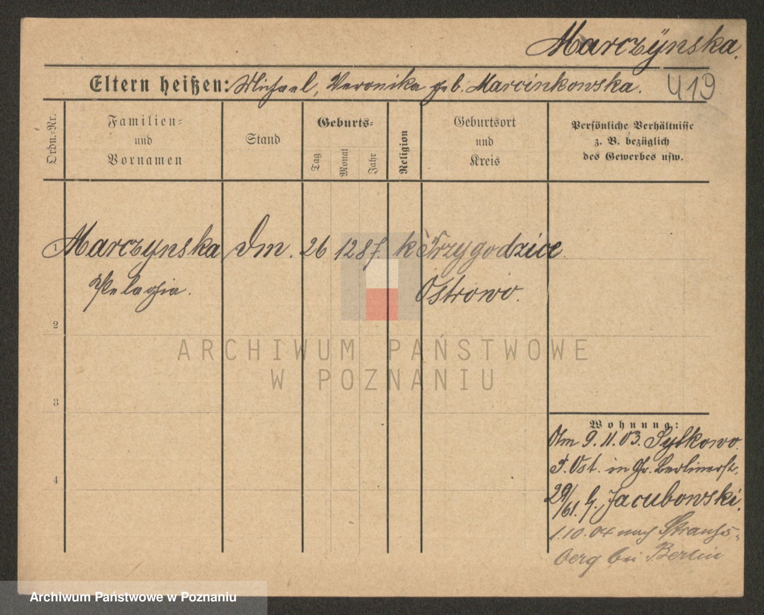 Marzykowska zd.Glemer, Teofila